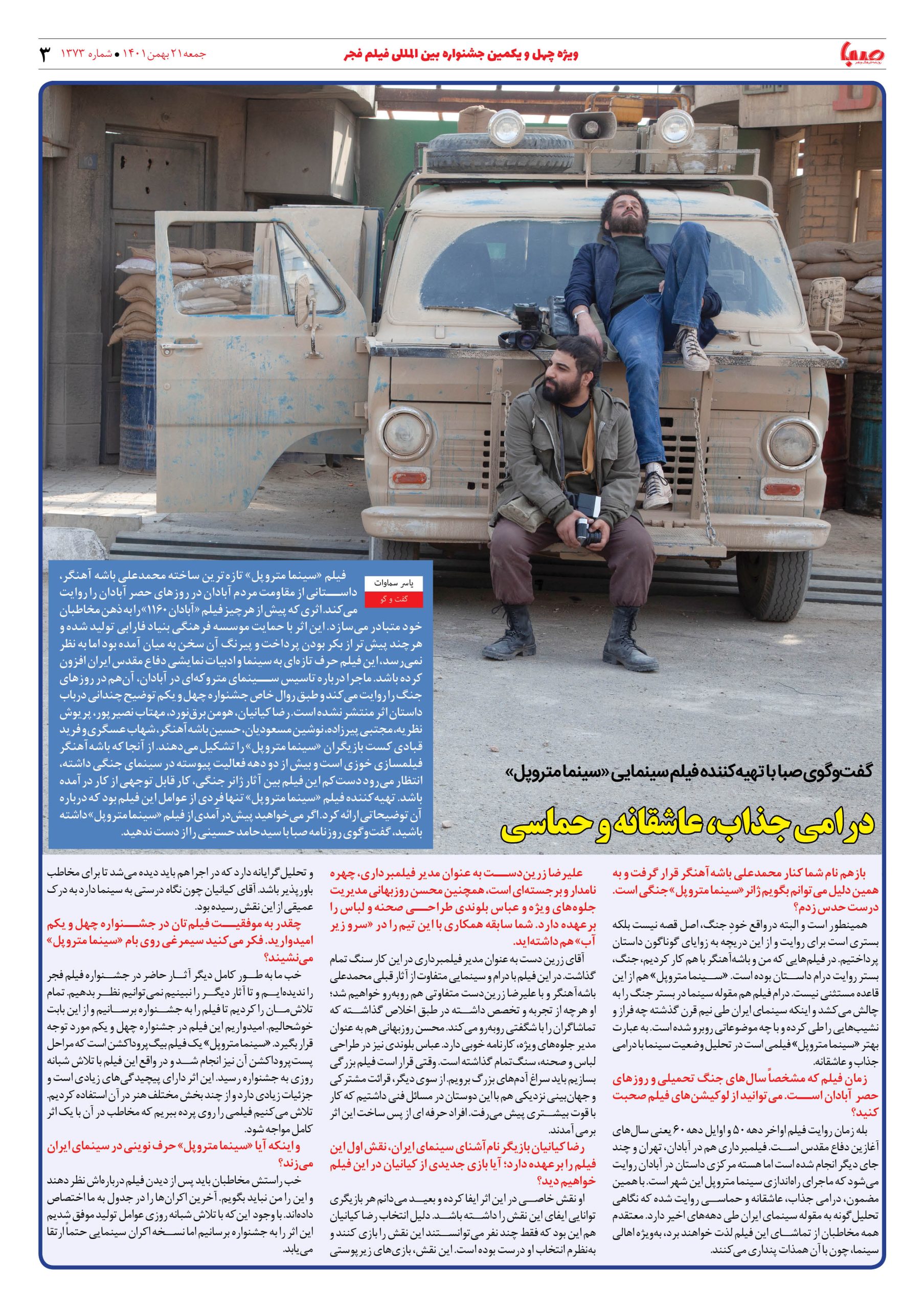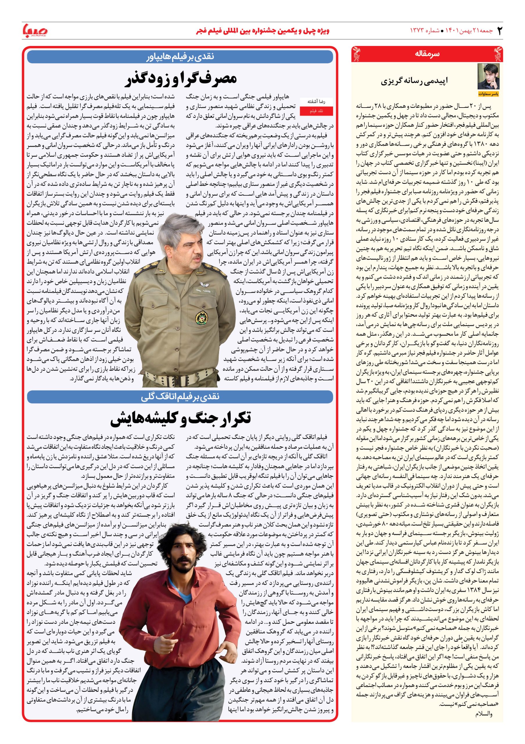 شماره ۱۳۷۳| روزنامه صبا جمعه ۲۱ بهمن ۱۴۰۱