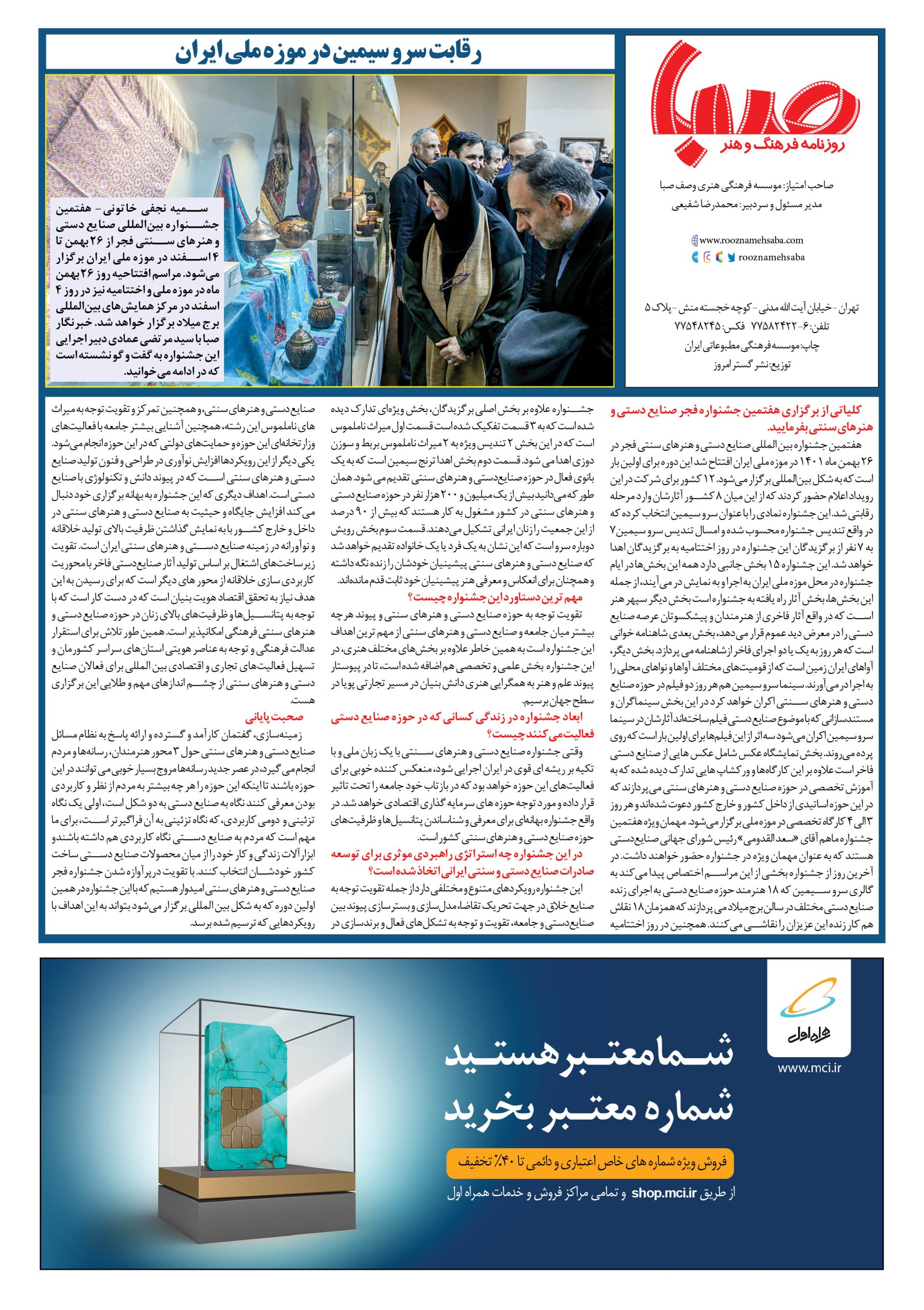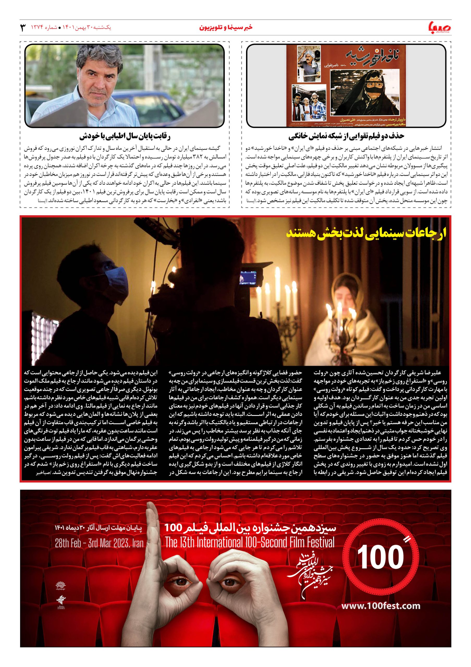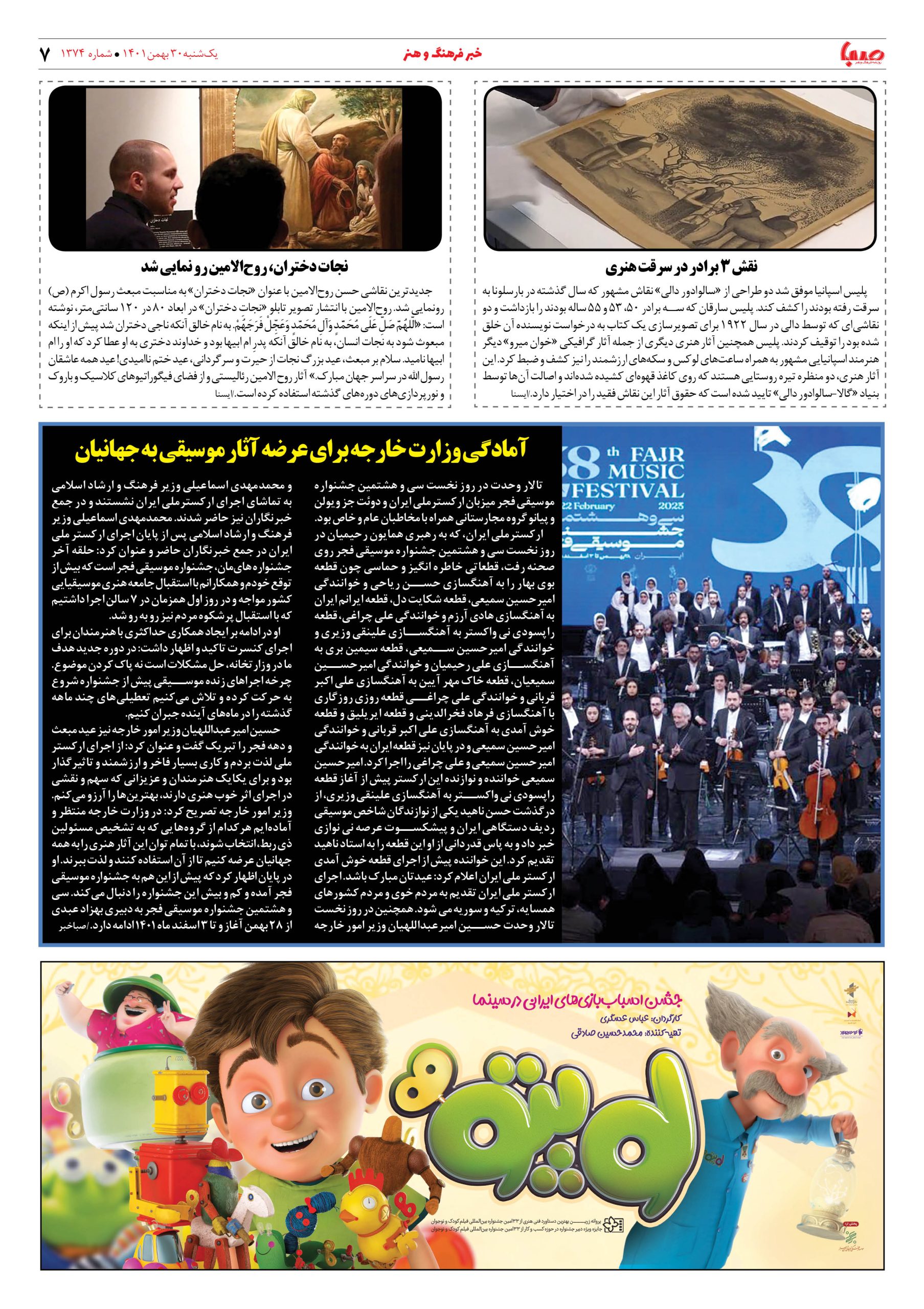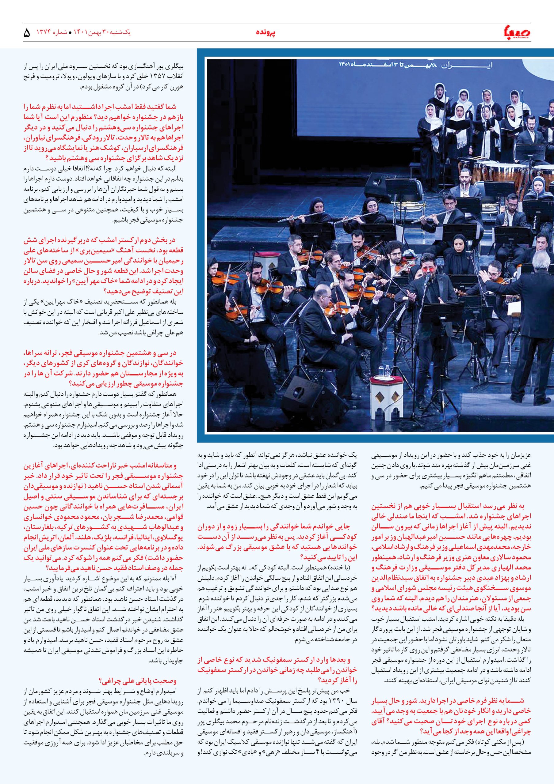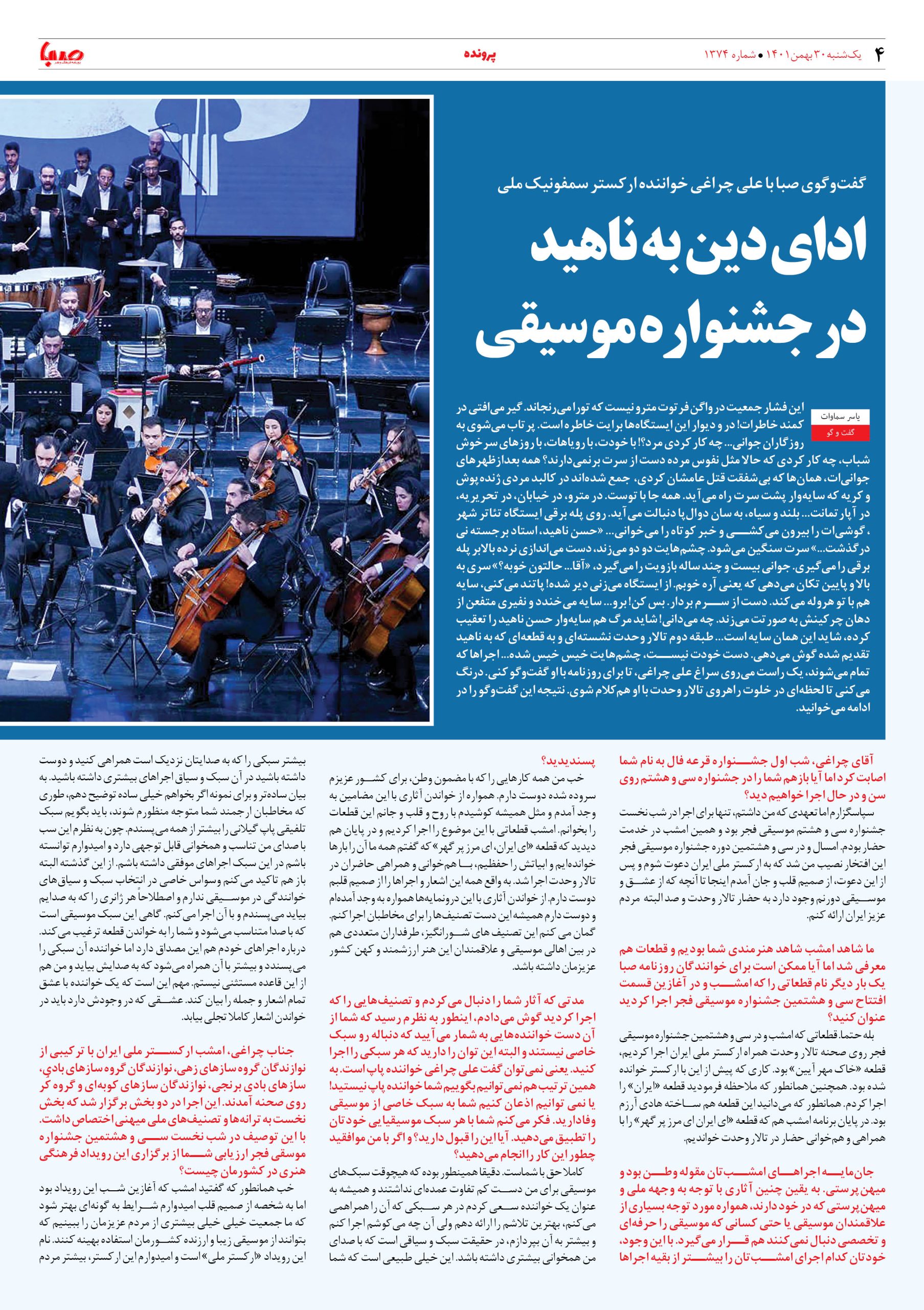 شماره ۱۳۷۴| روزنامه صبا یکشنبه ۳۰ بهمن ۱۴۰۱