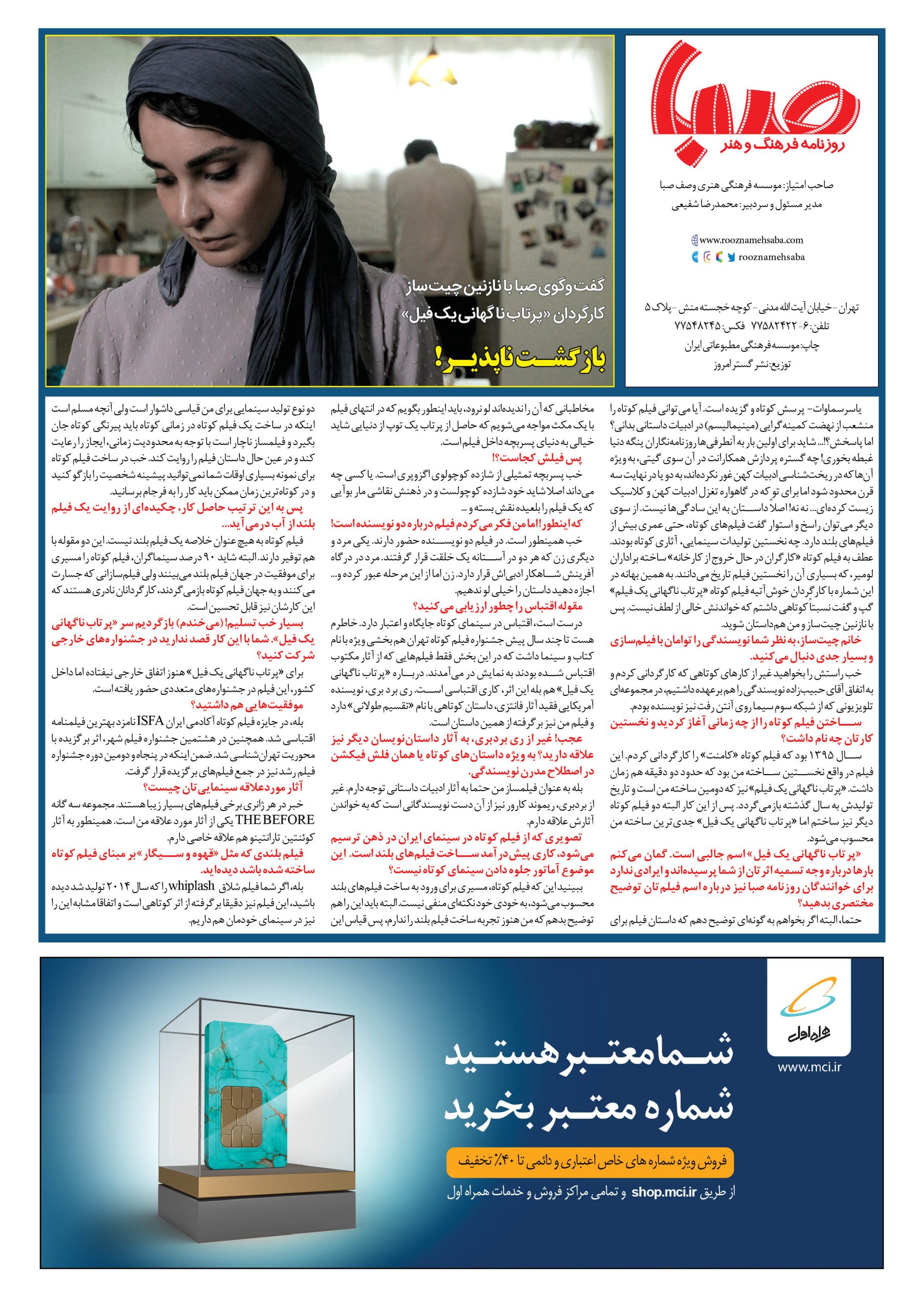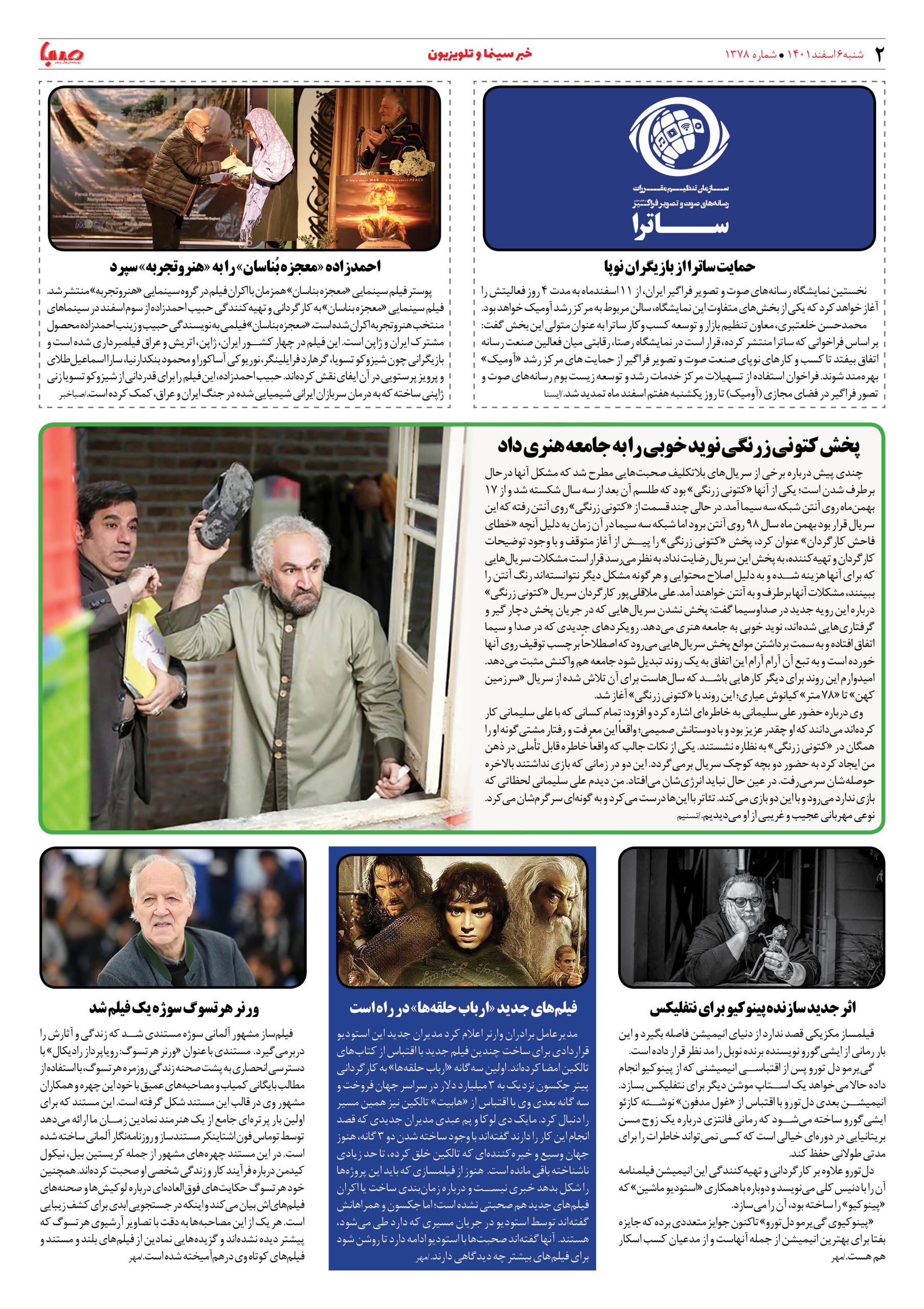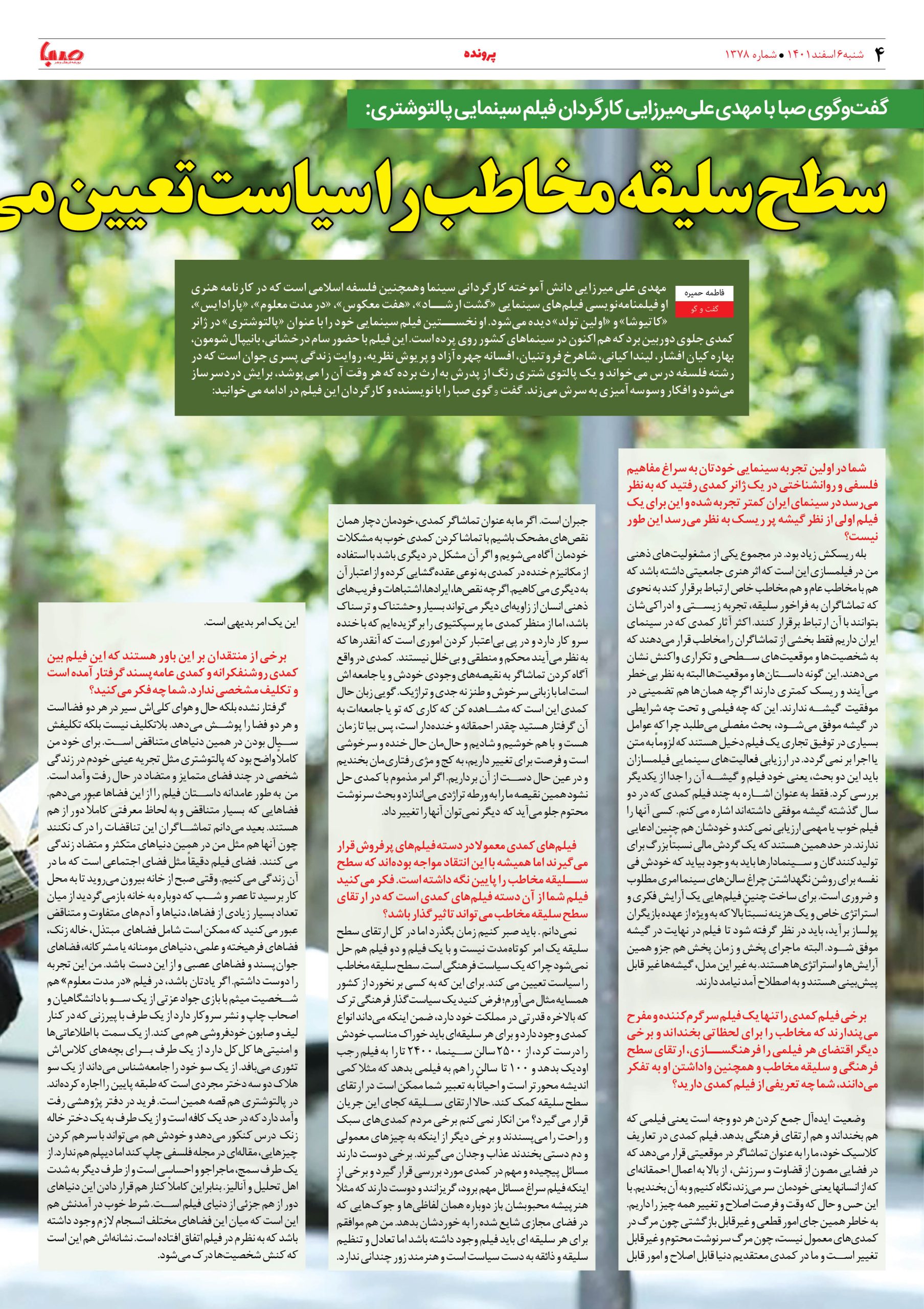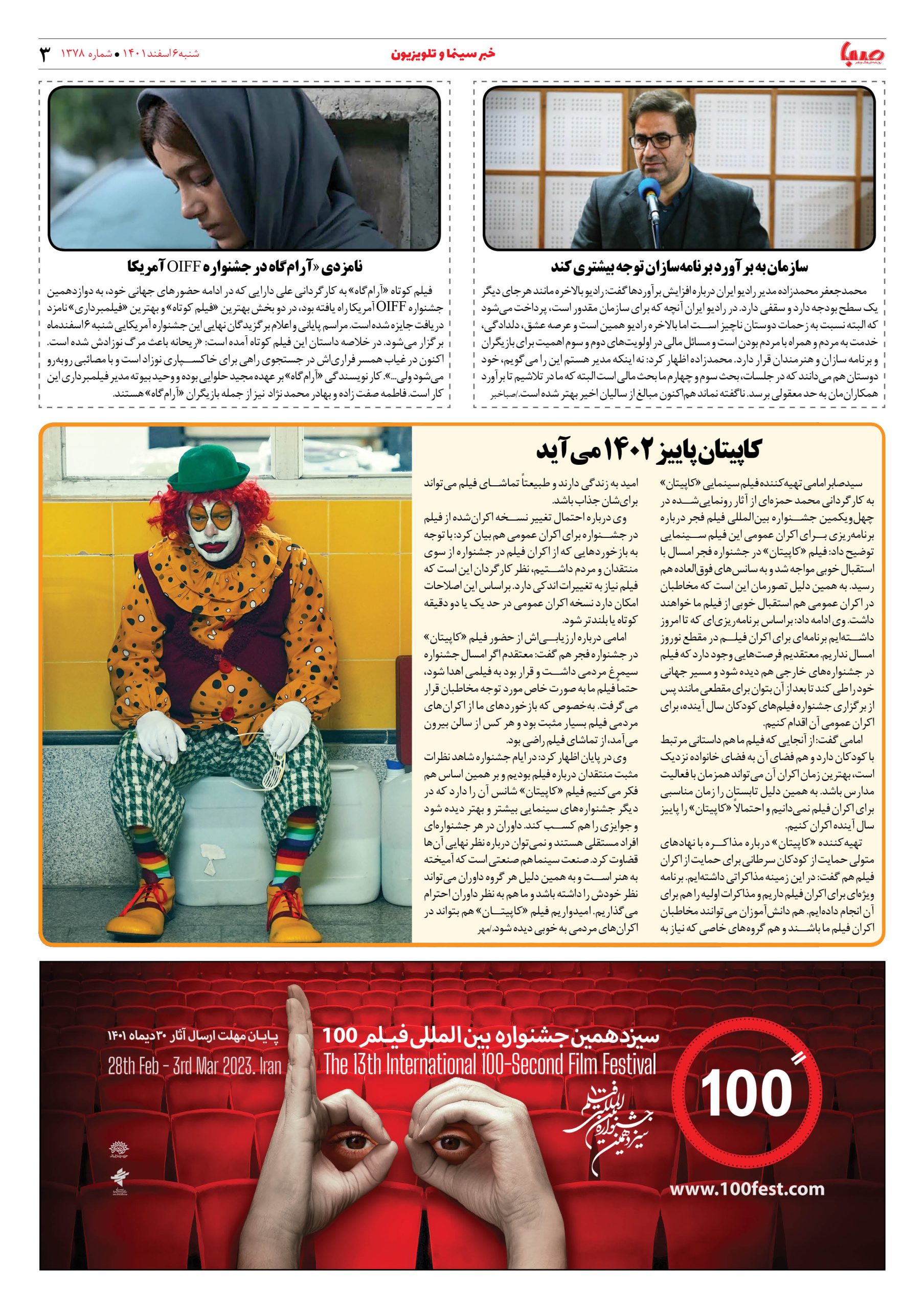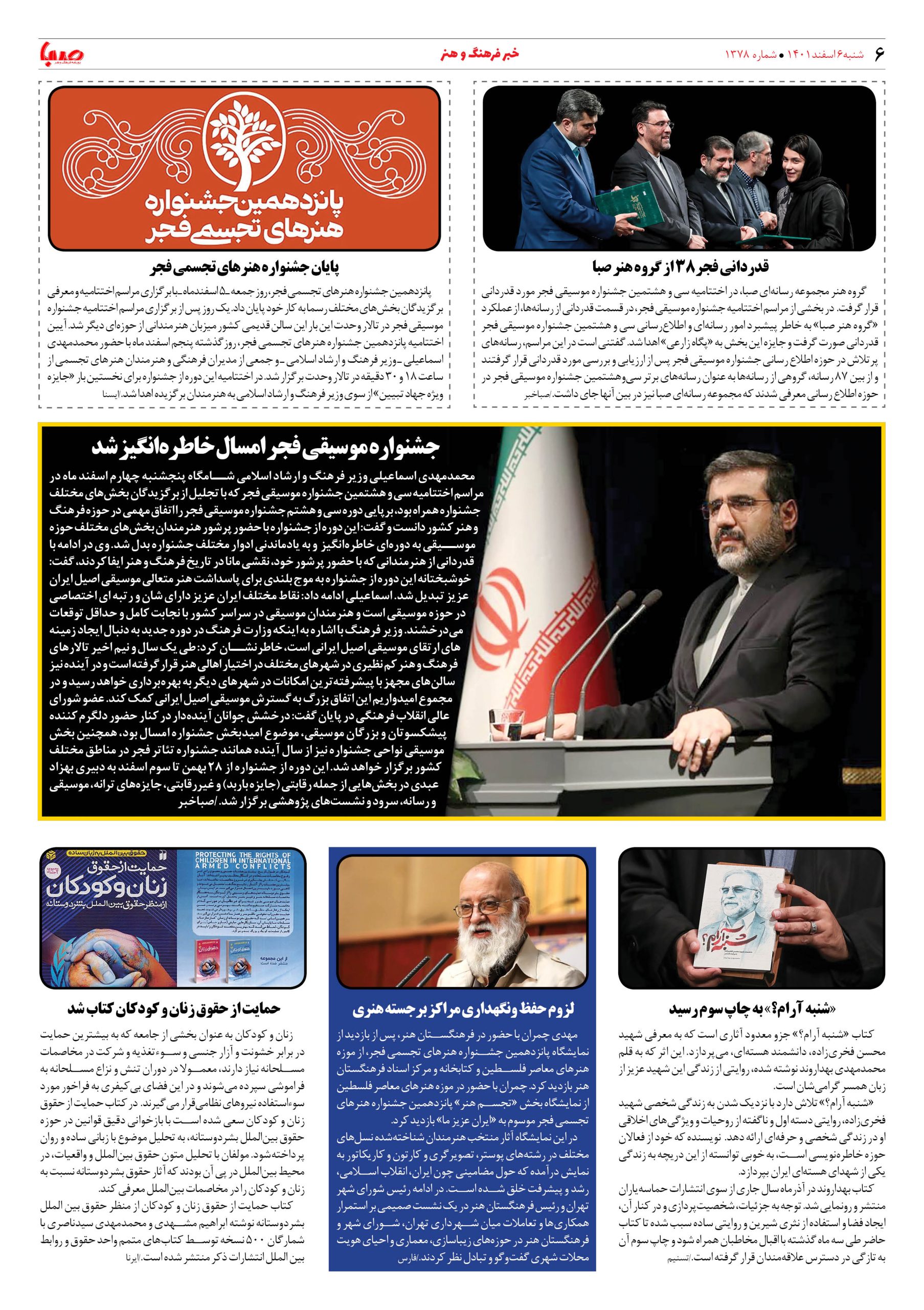 شماره ۱۳۷۸| روزنامه صبا شنبه ۶ اسفند ۱۴۰۱