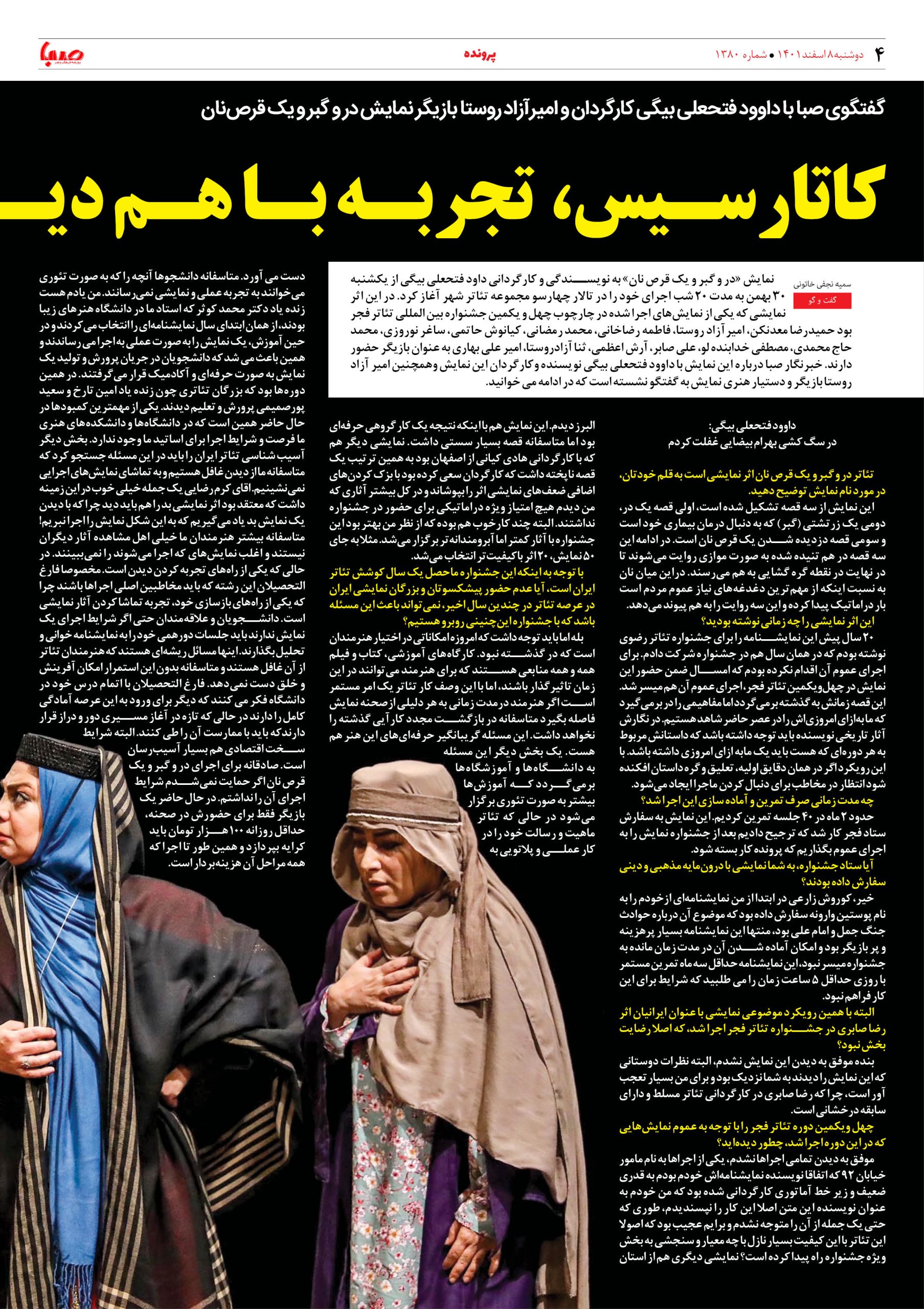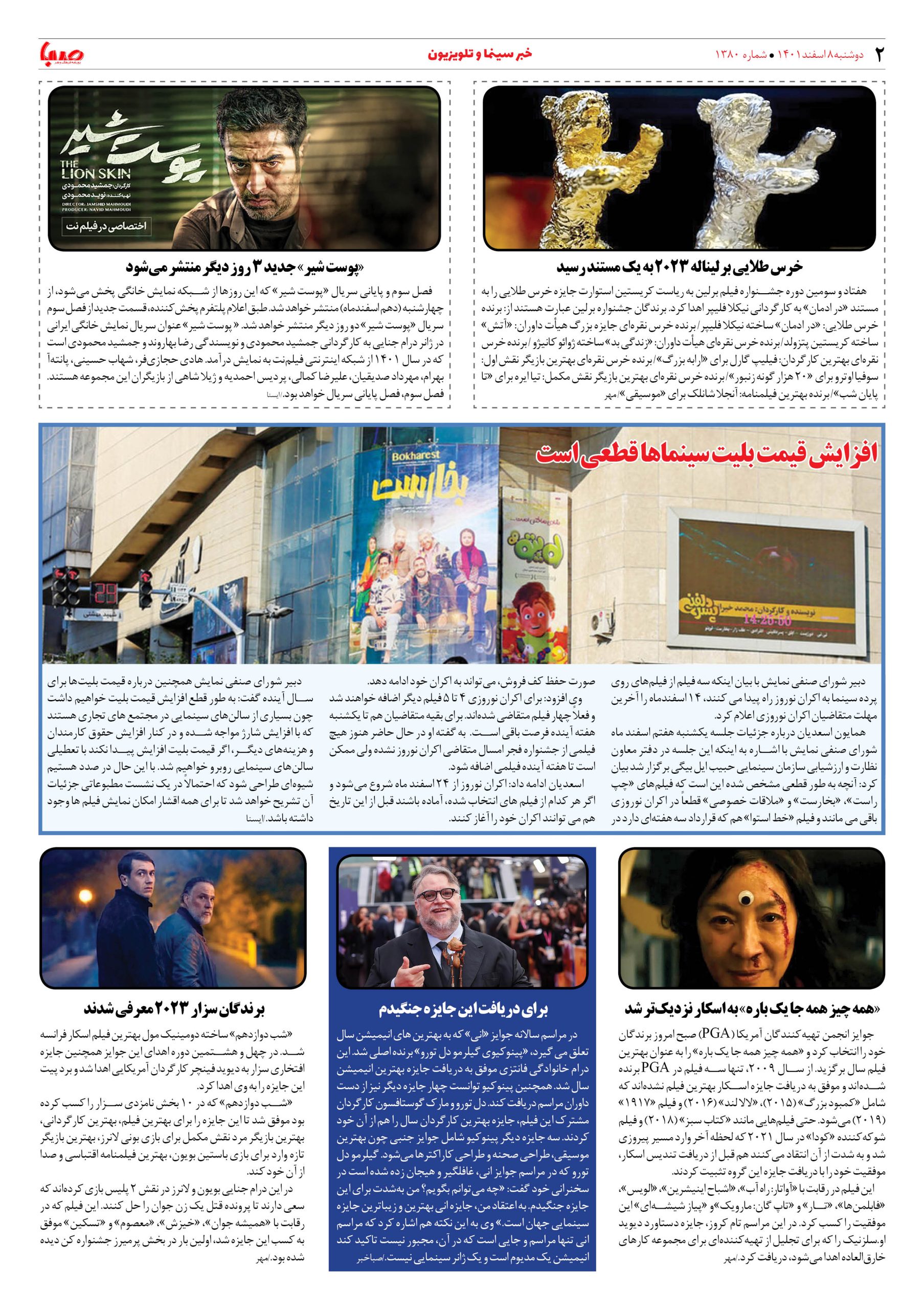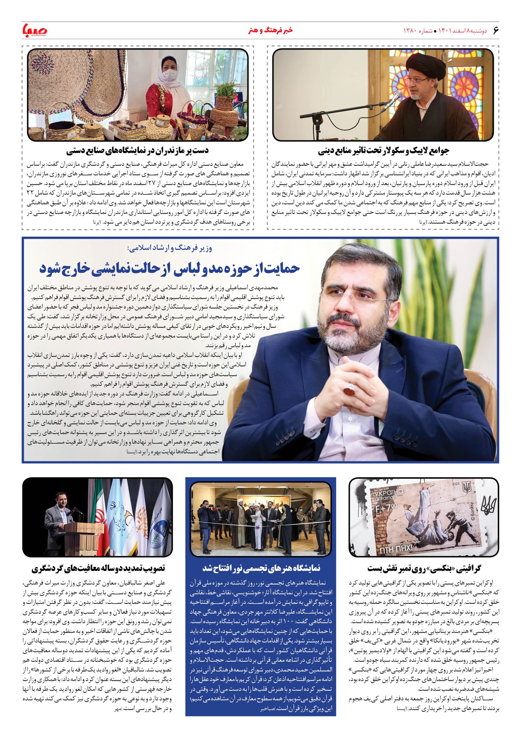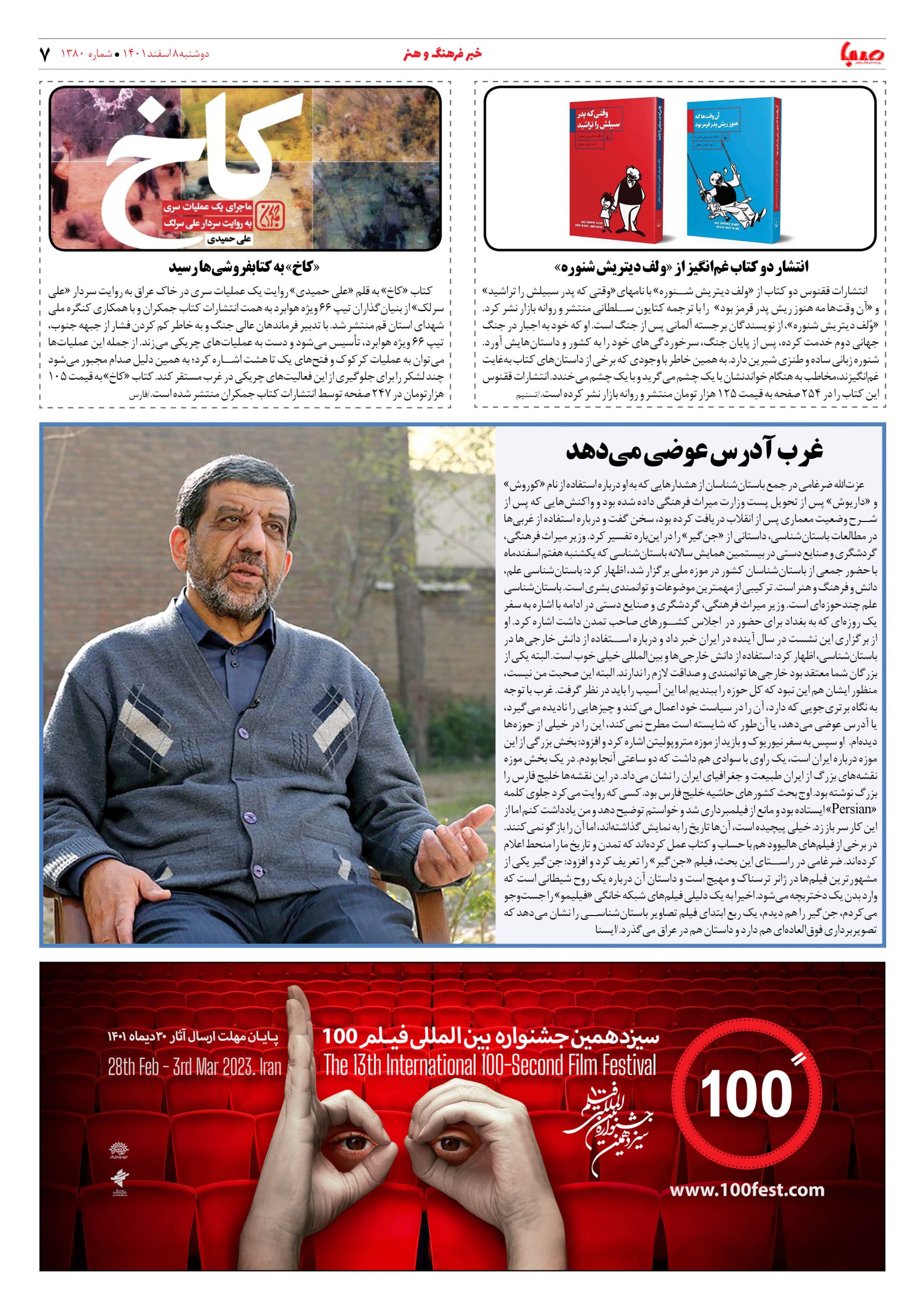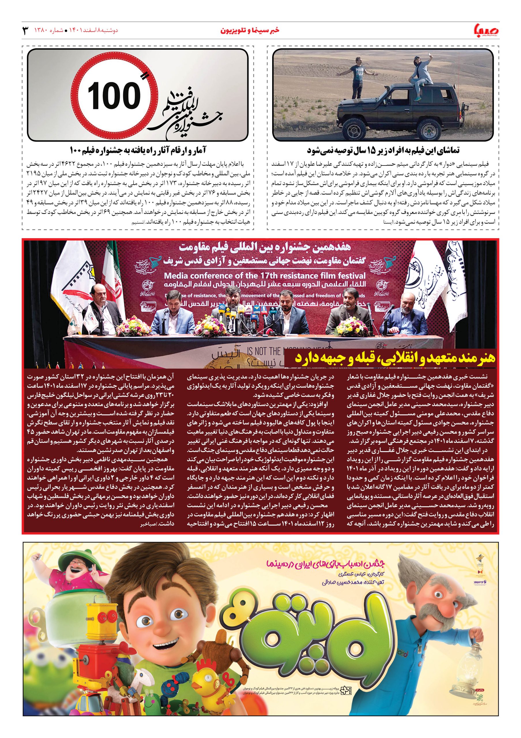شماره ۱۳۸۰| روزنامه صبا دوشنبه ۸ اسفند ۱۴۰۱