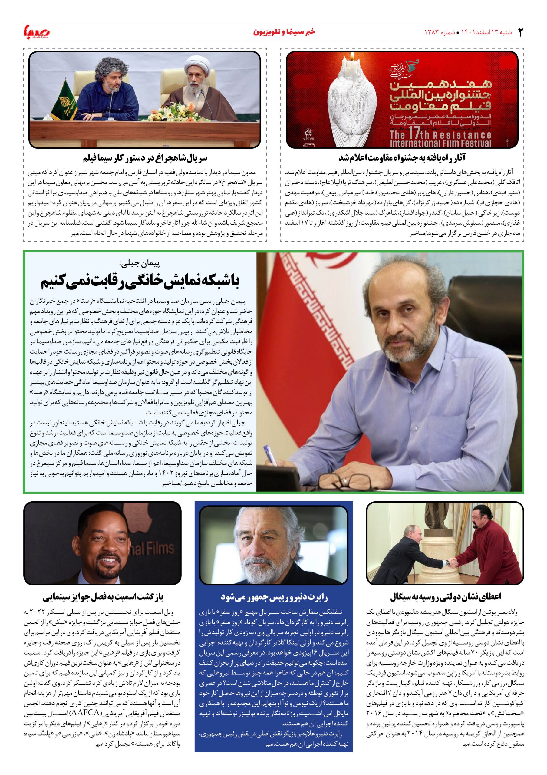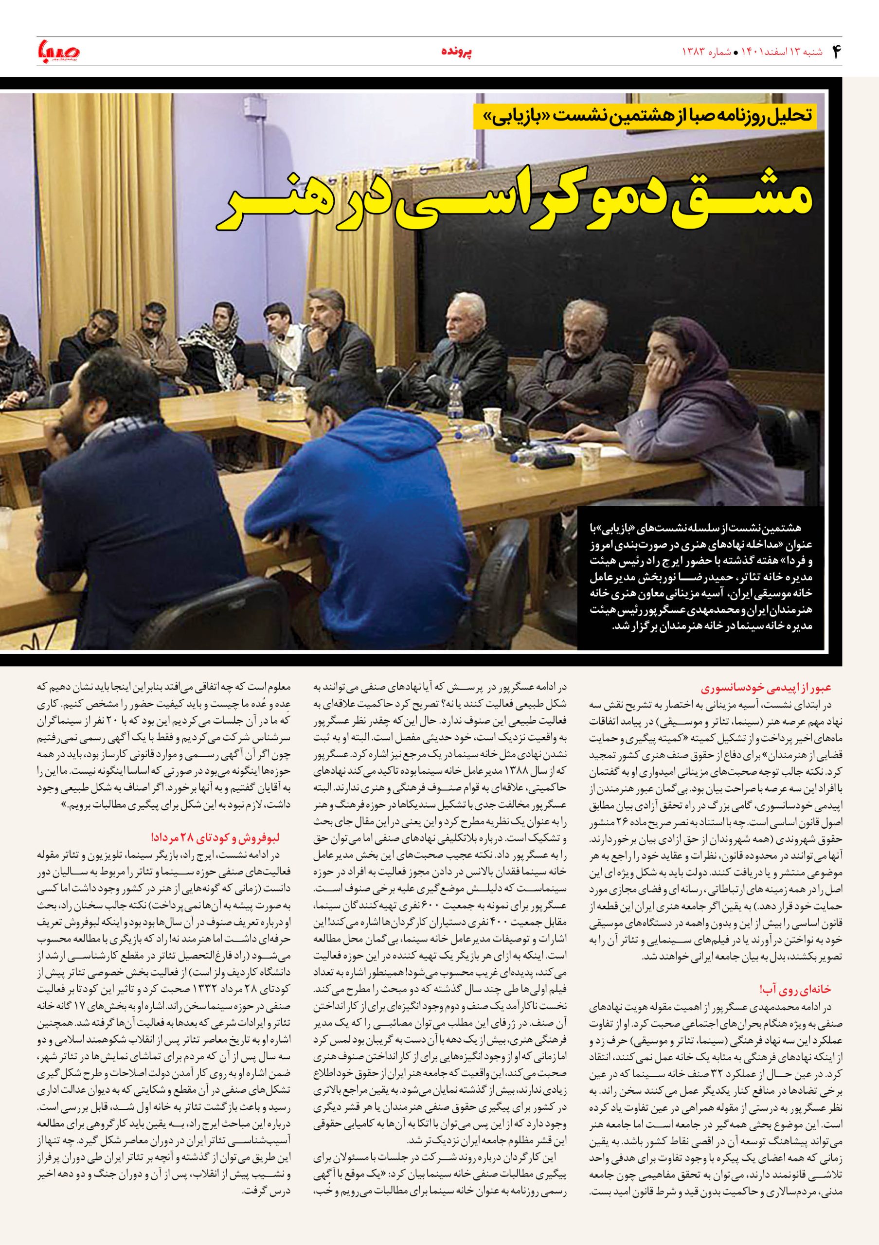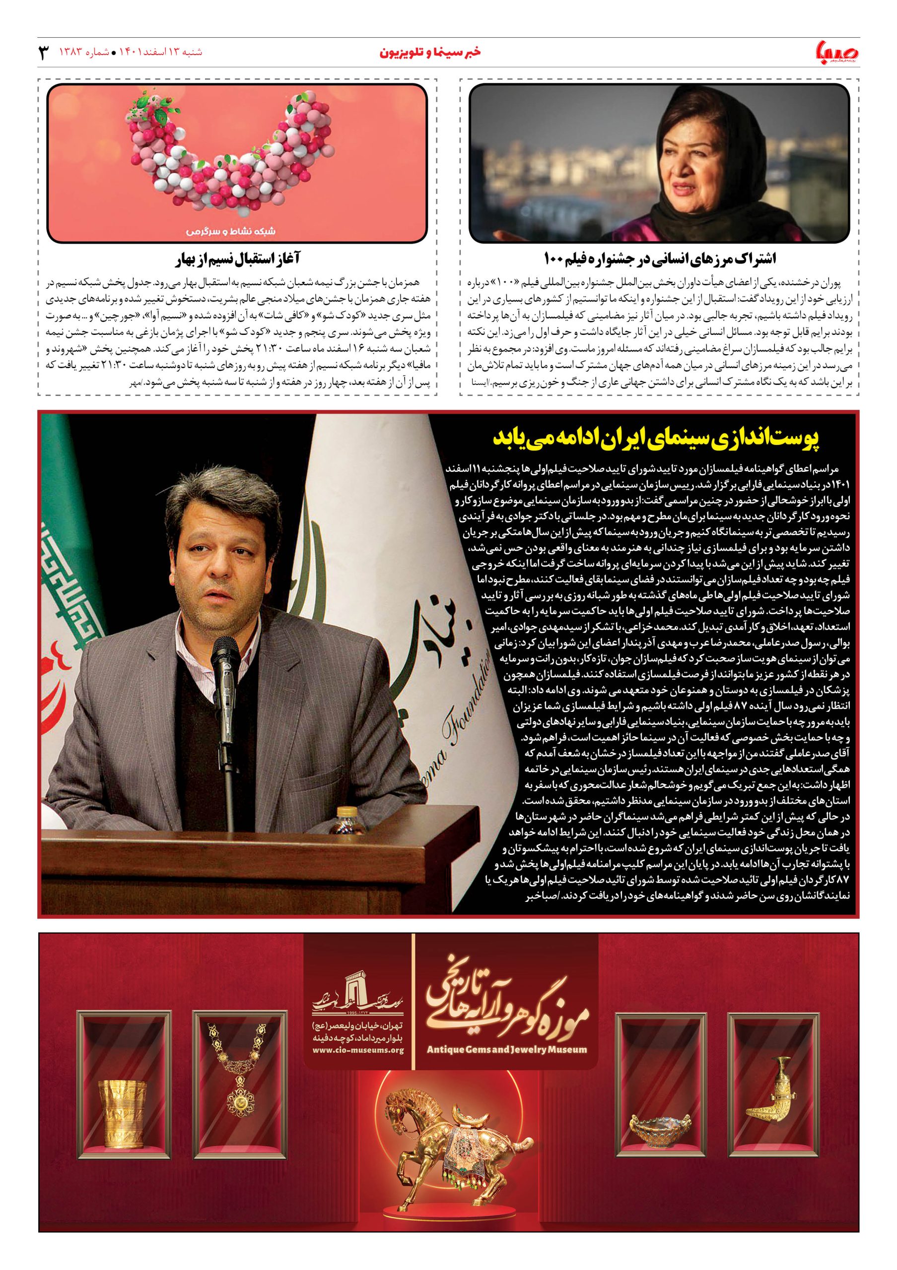 شماره ۱۳۸۳| روزنامه صبا شنبه ۱۳ اسفند ۱۴۰۱
