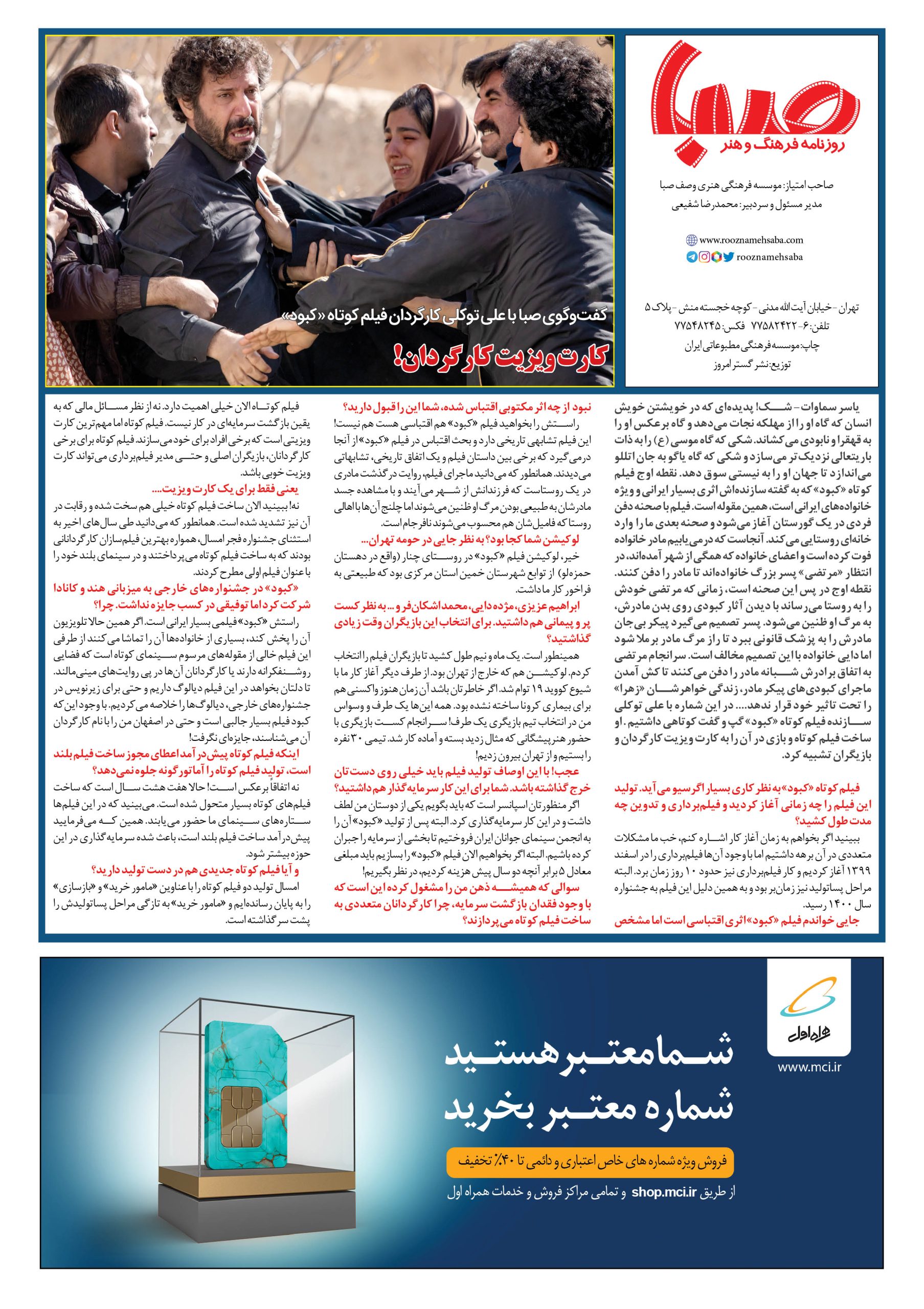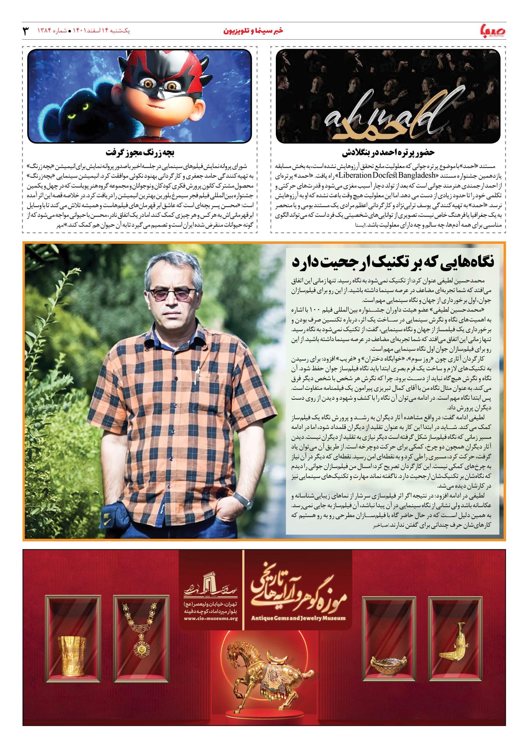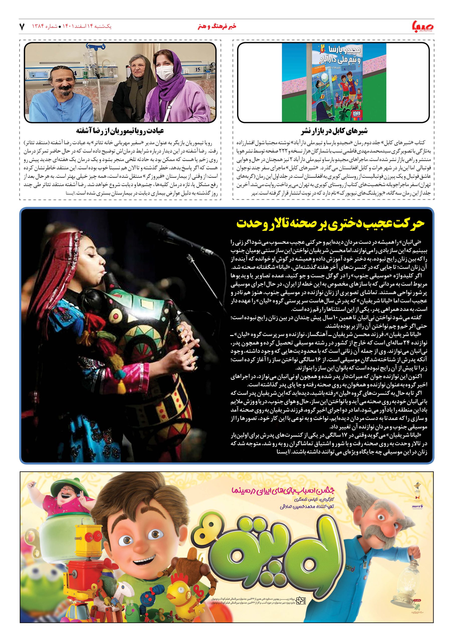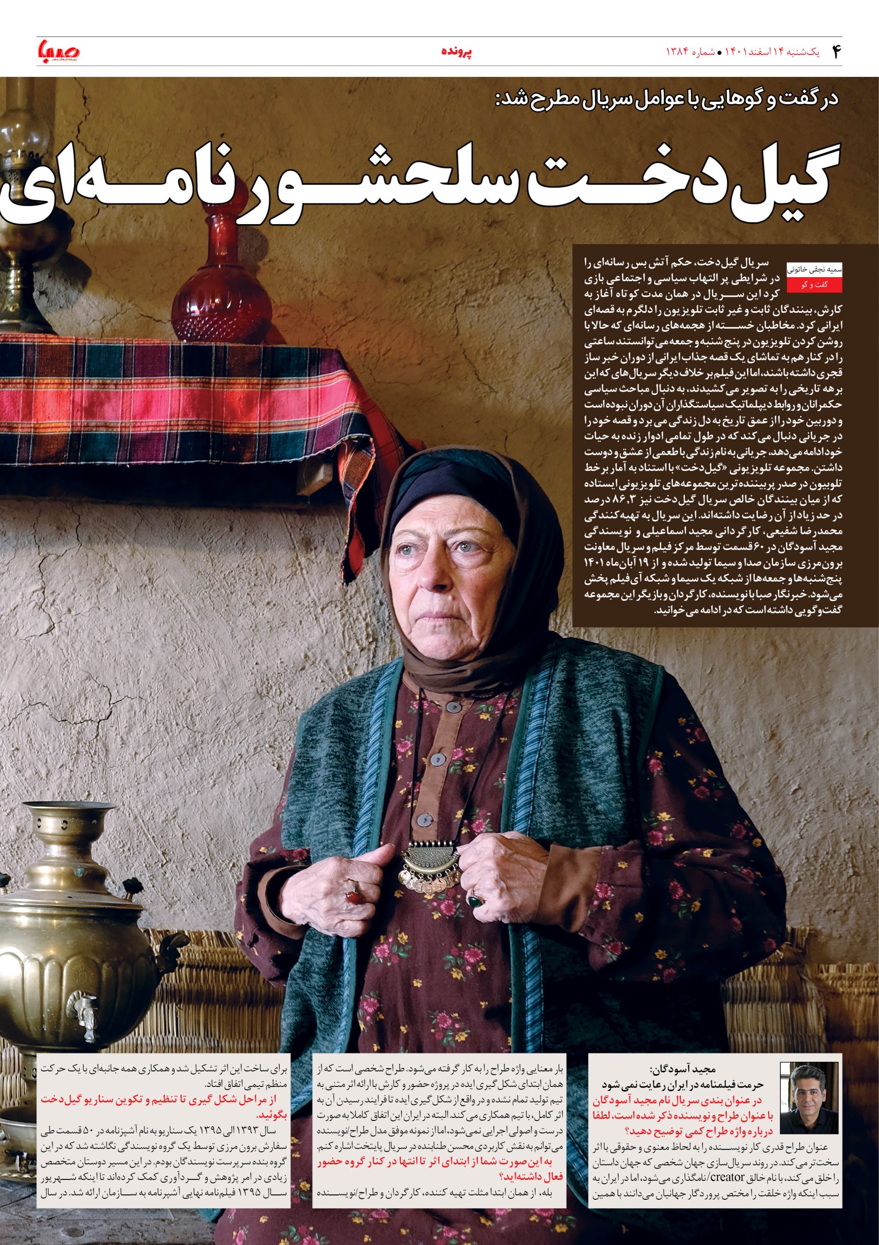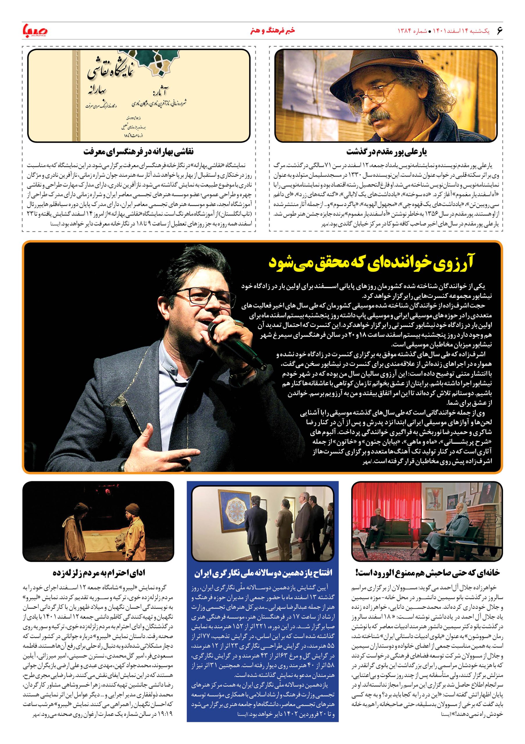 شماره ۱۳۸۴| روزنامه صبا یکشنبه ۱۴ اسفند ۱۴۰۱