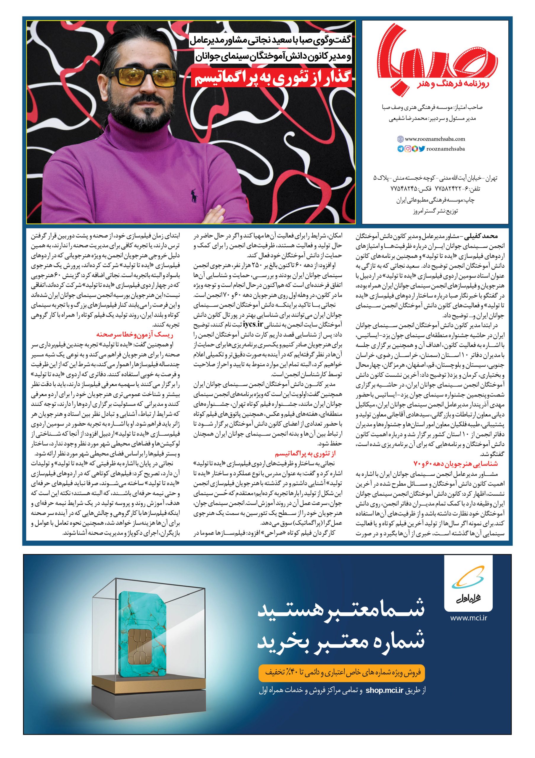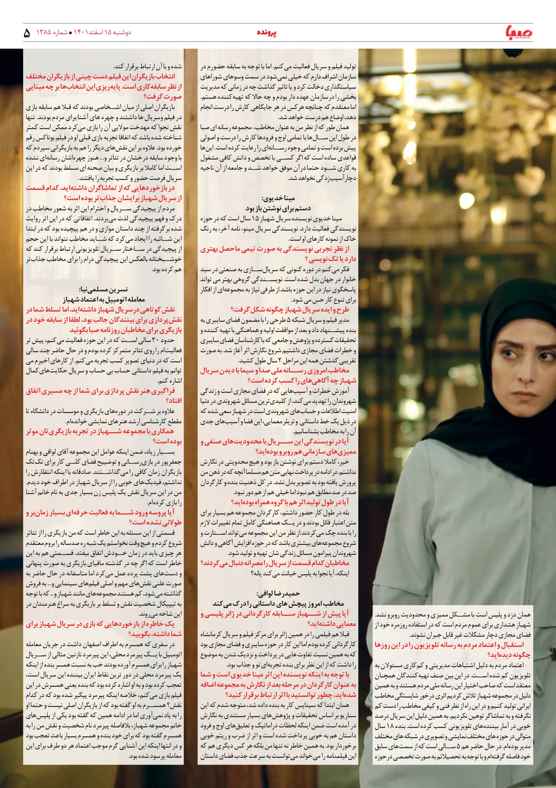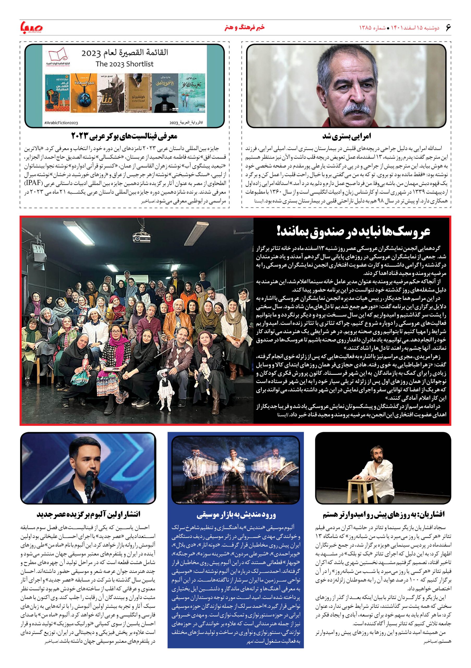 شماره ۱۳۸۵| روزنامه صبا دوشنبه ۱۵اسفند ۱۴۰۱