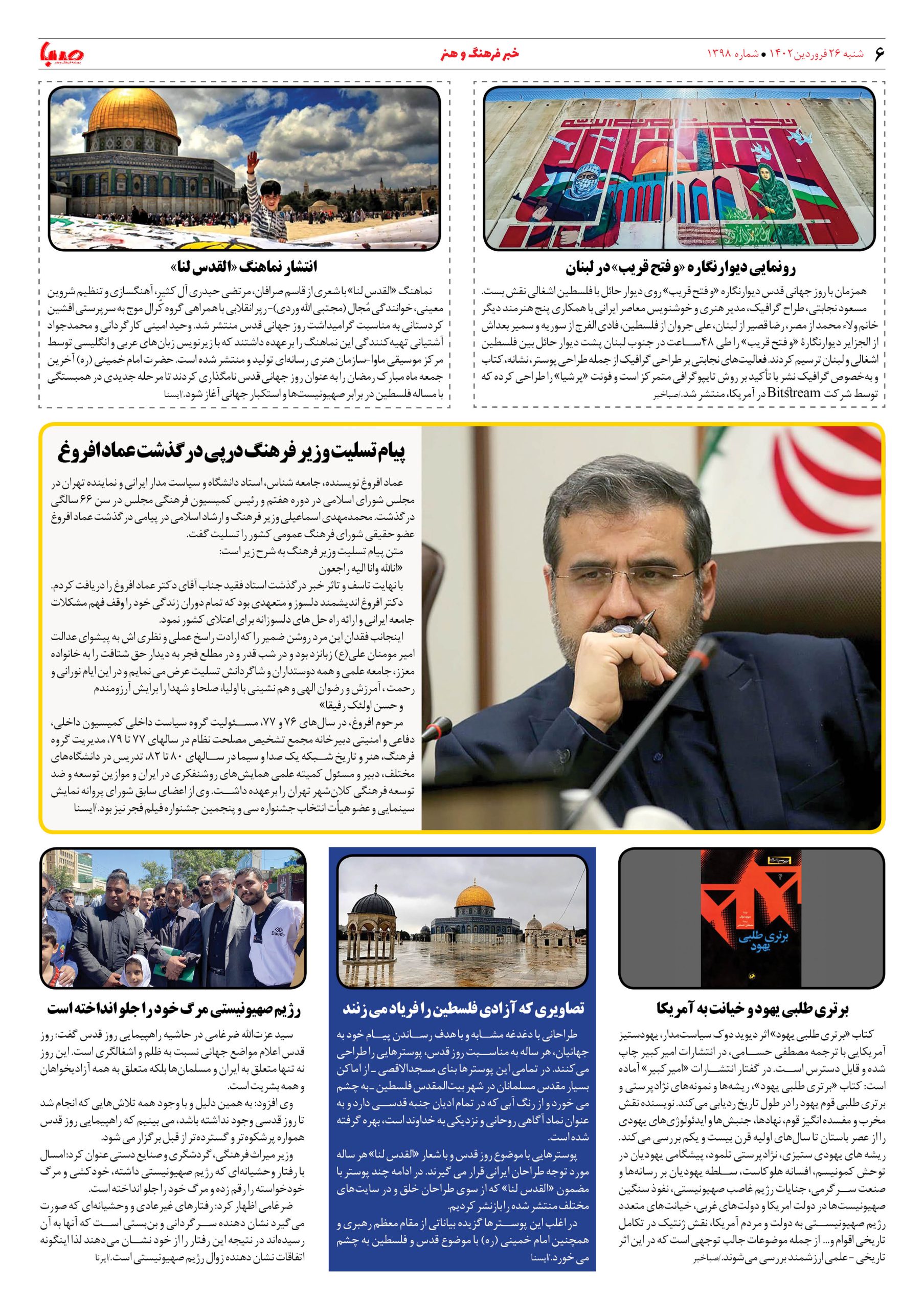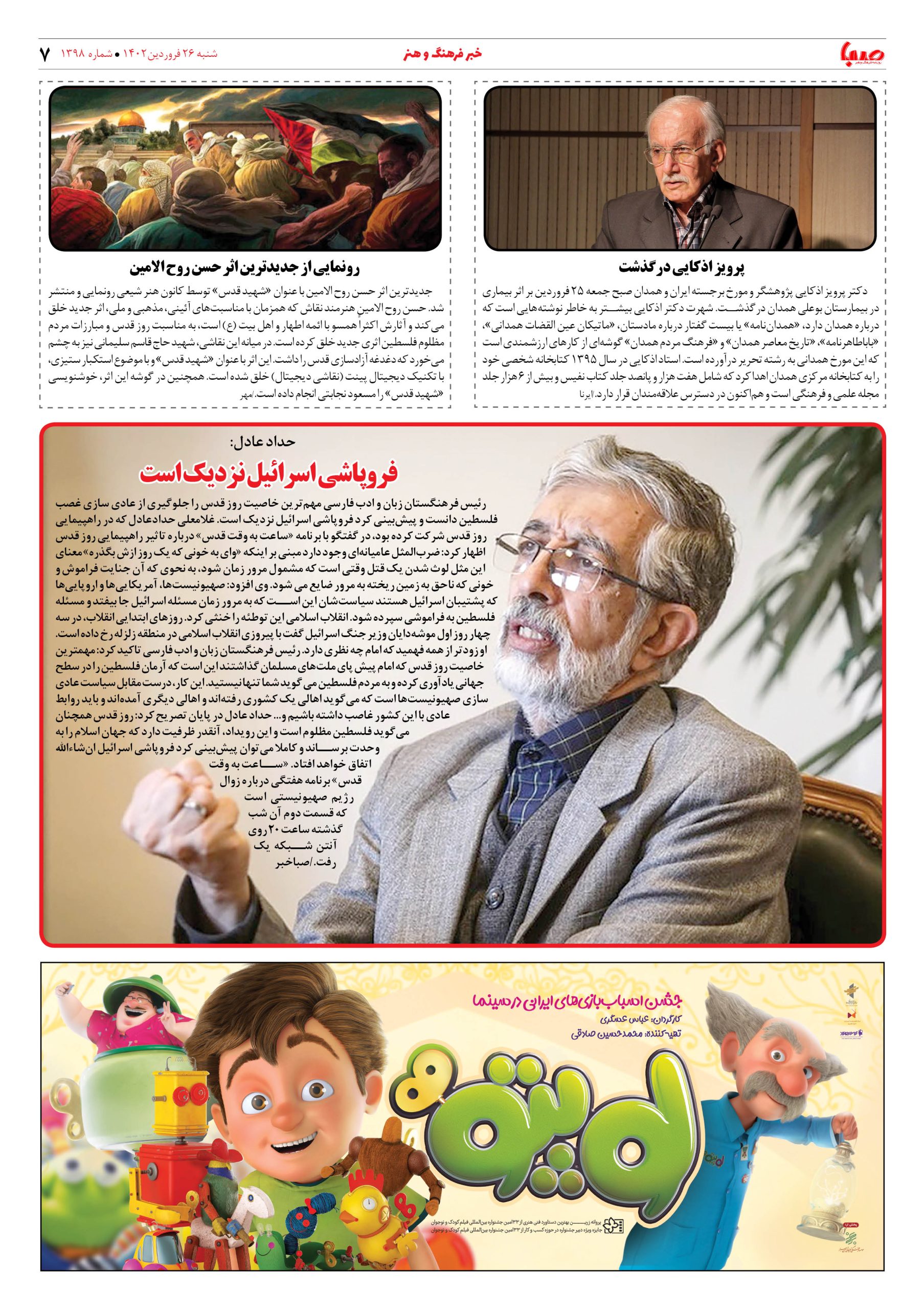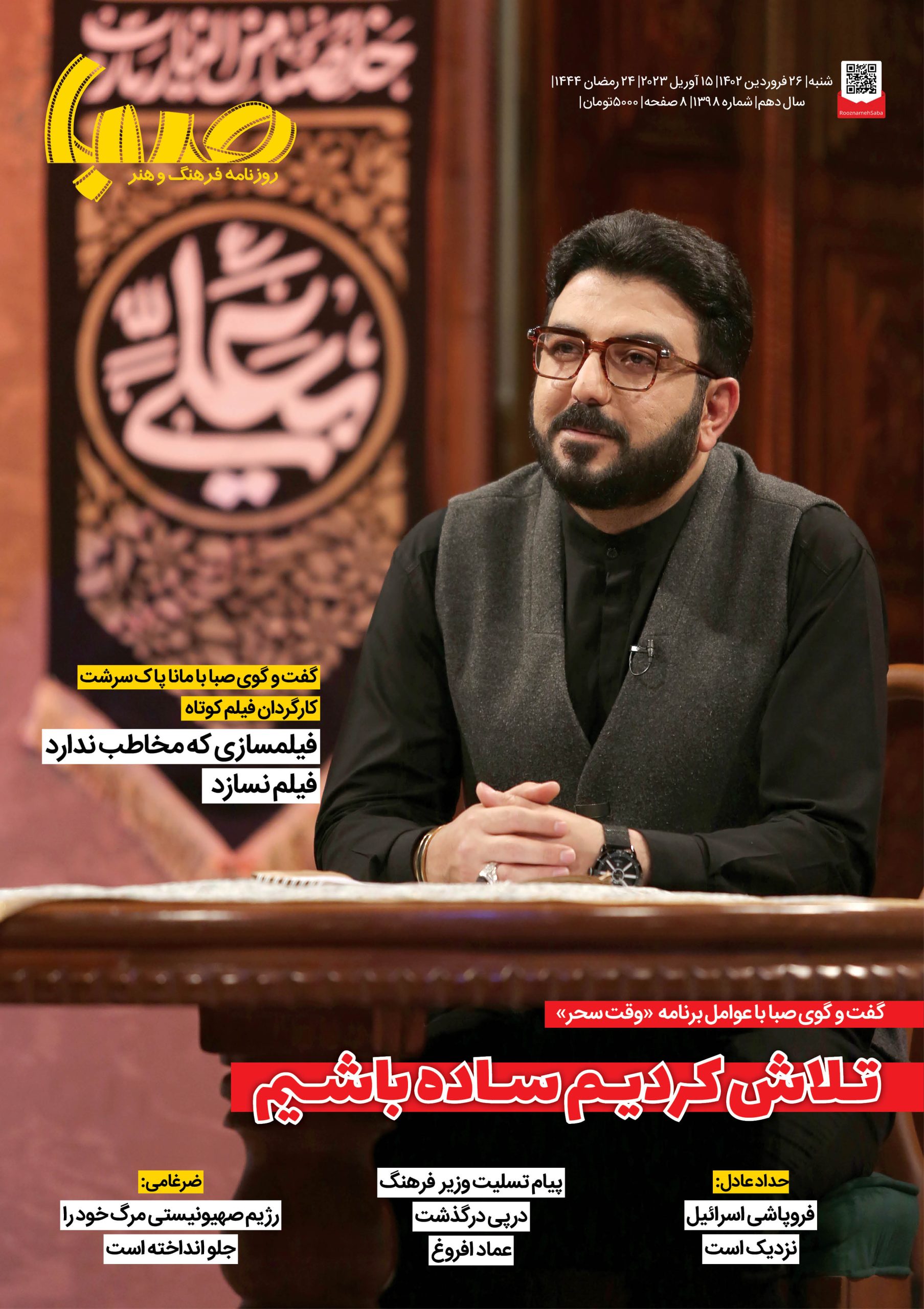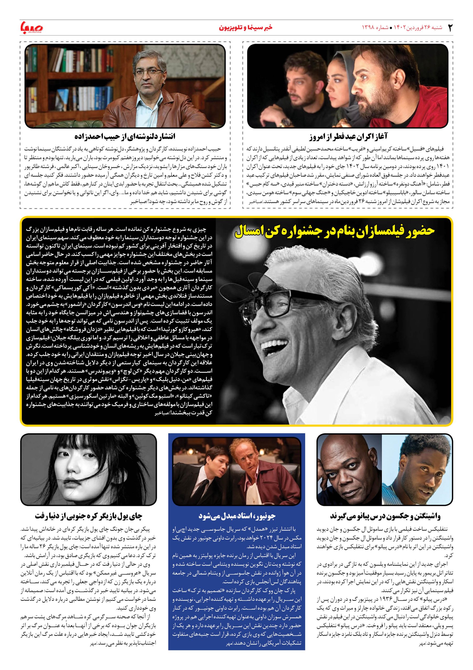 شماره ۱۳۹۸| روزنامه صبا شنبه ۲۶ فروردین ۱۴۰۲