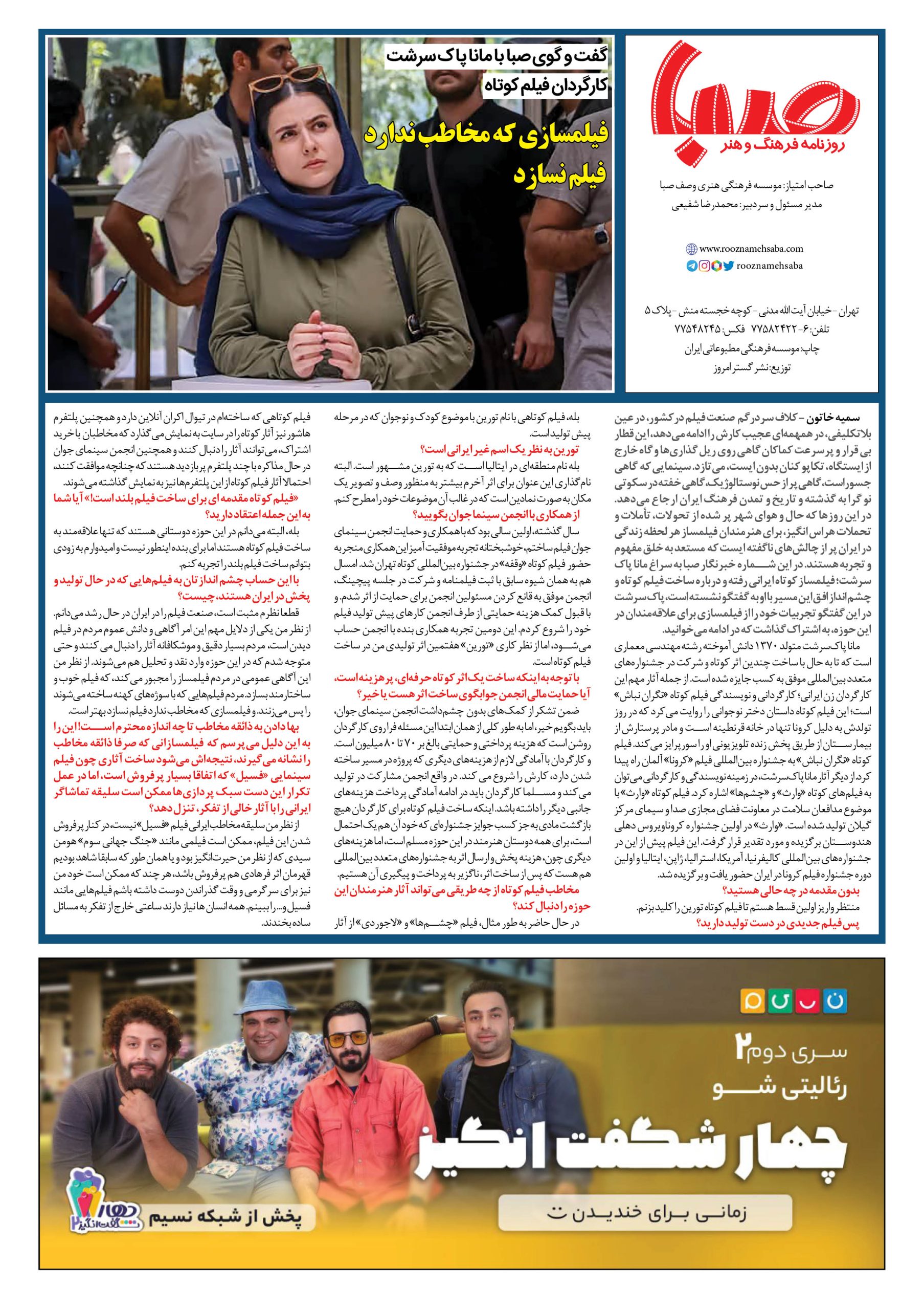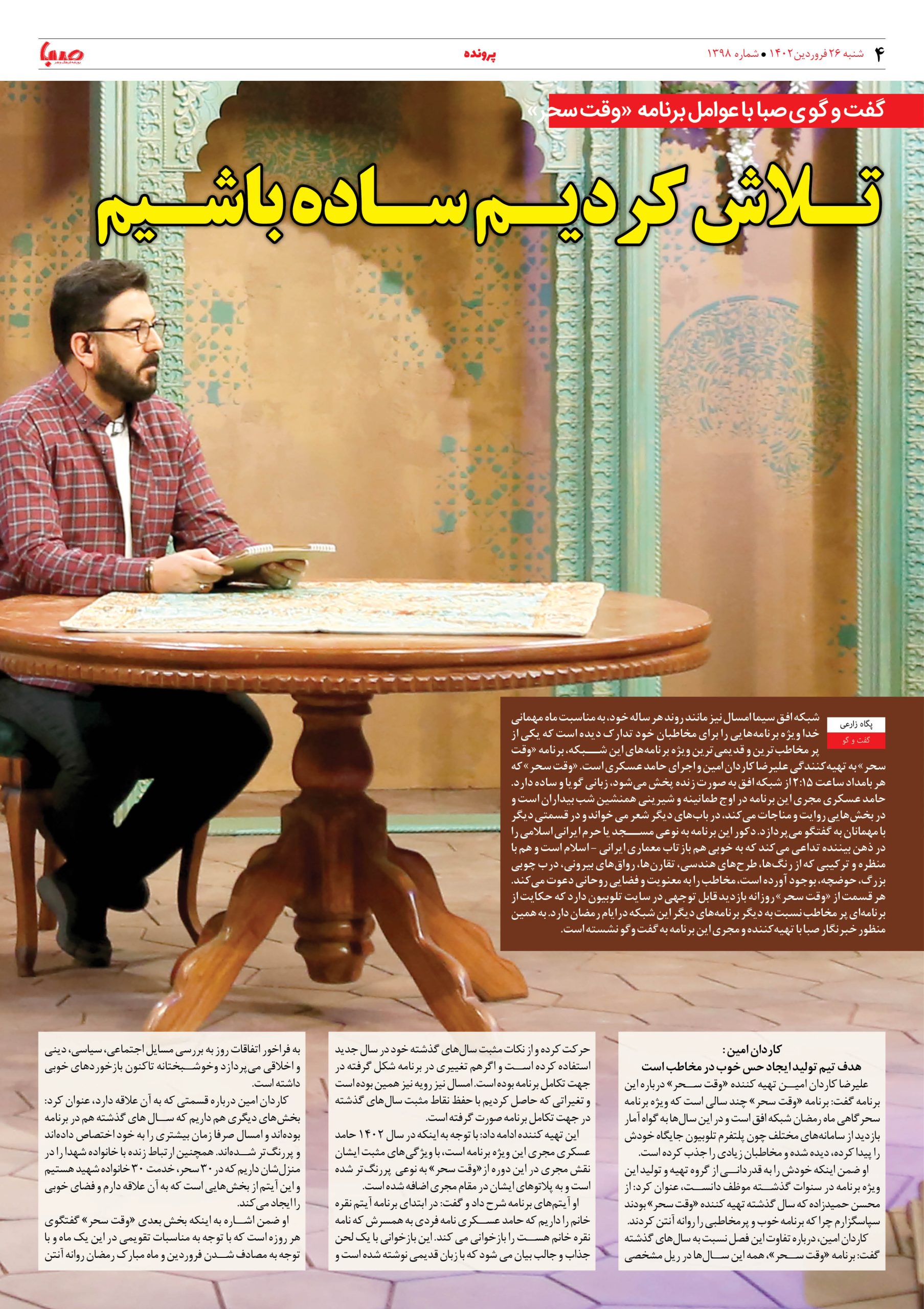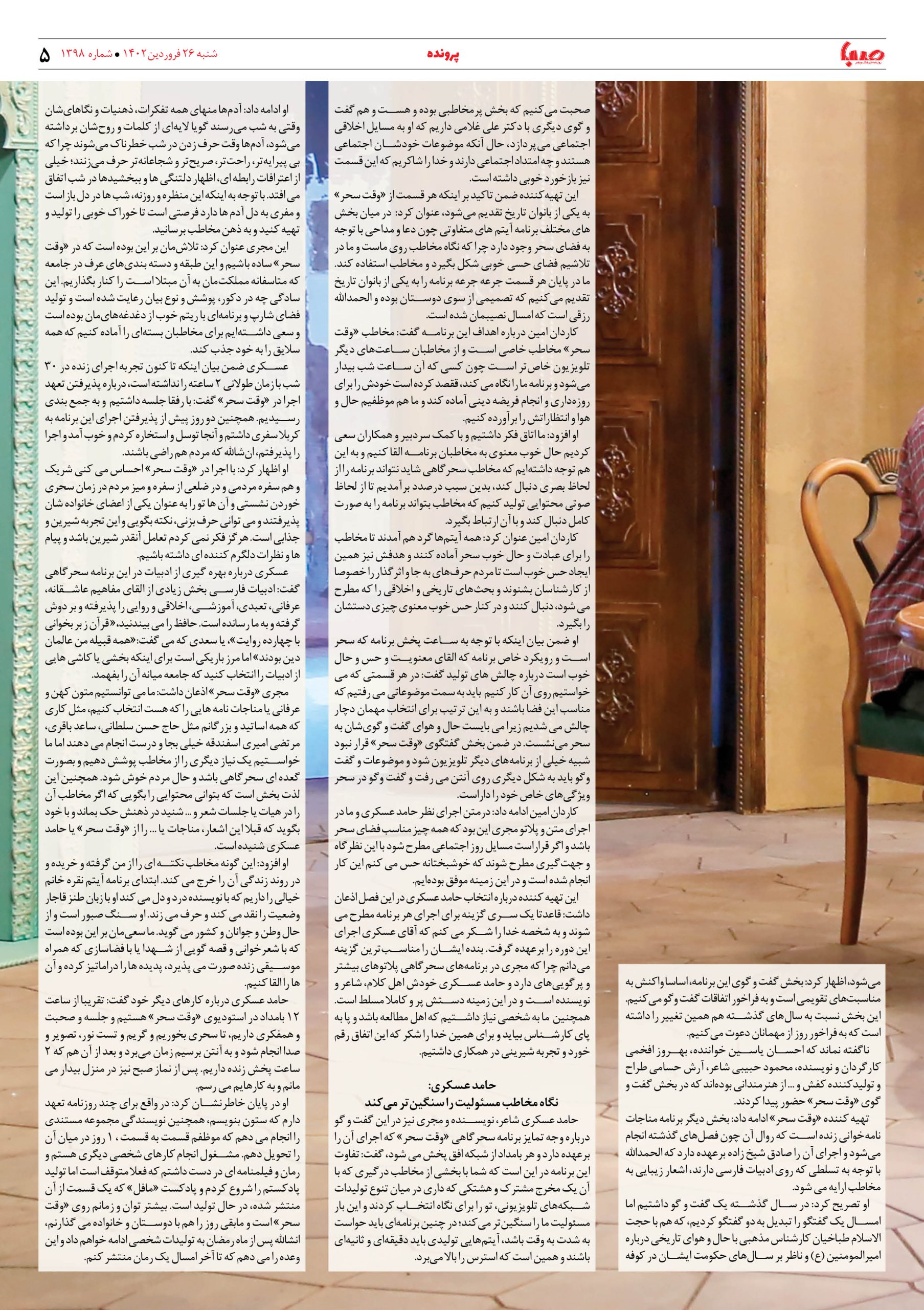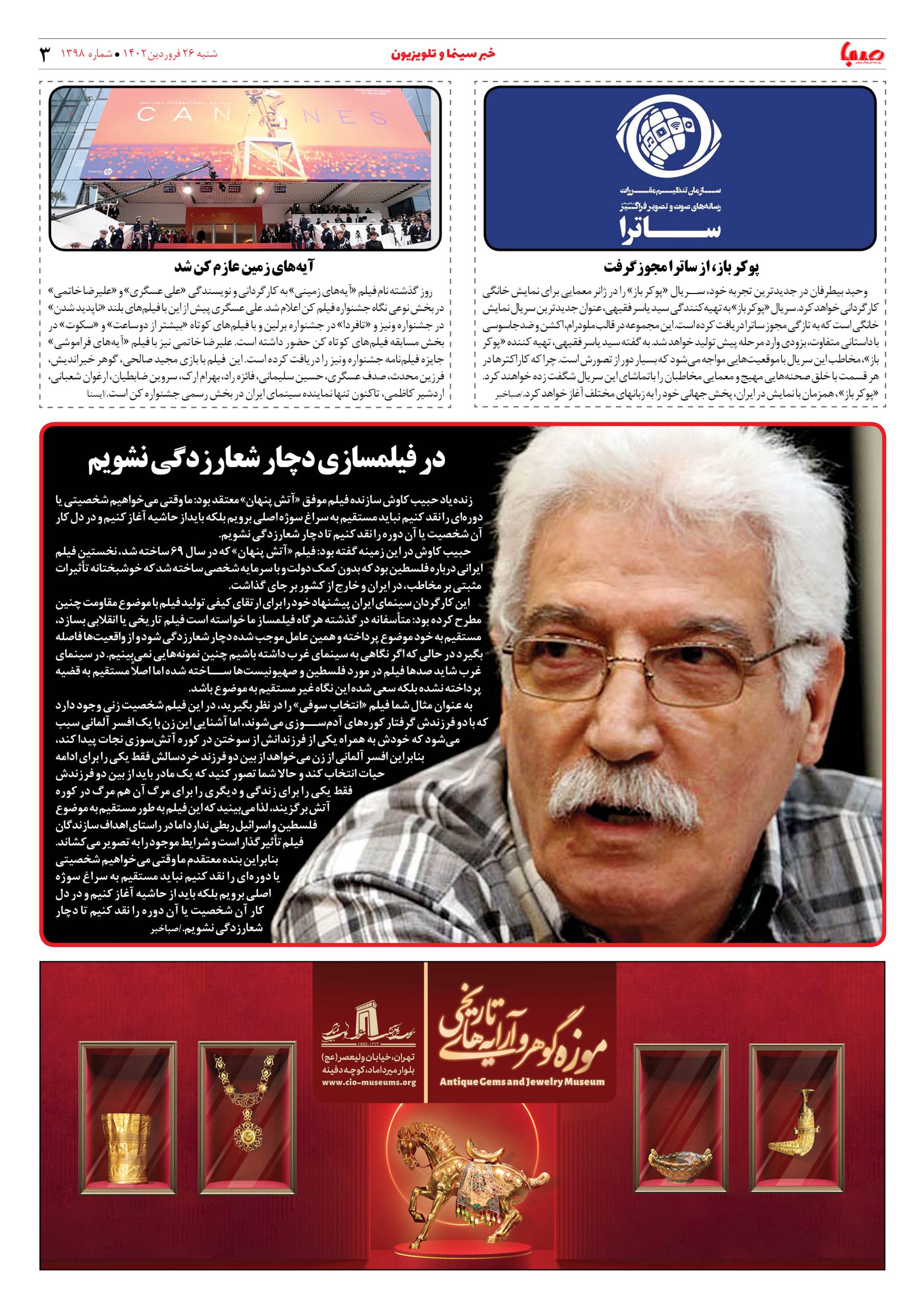 شماره ۱۳۹۸| روزنامه صبا شنبه ۲۶ فروردین ۱۴۰۲