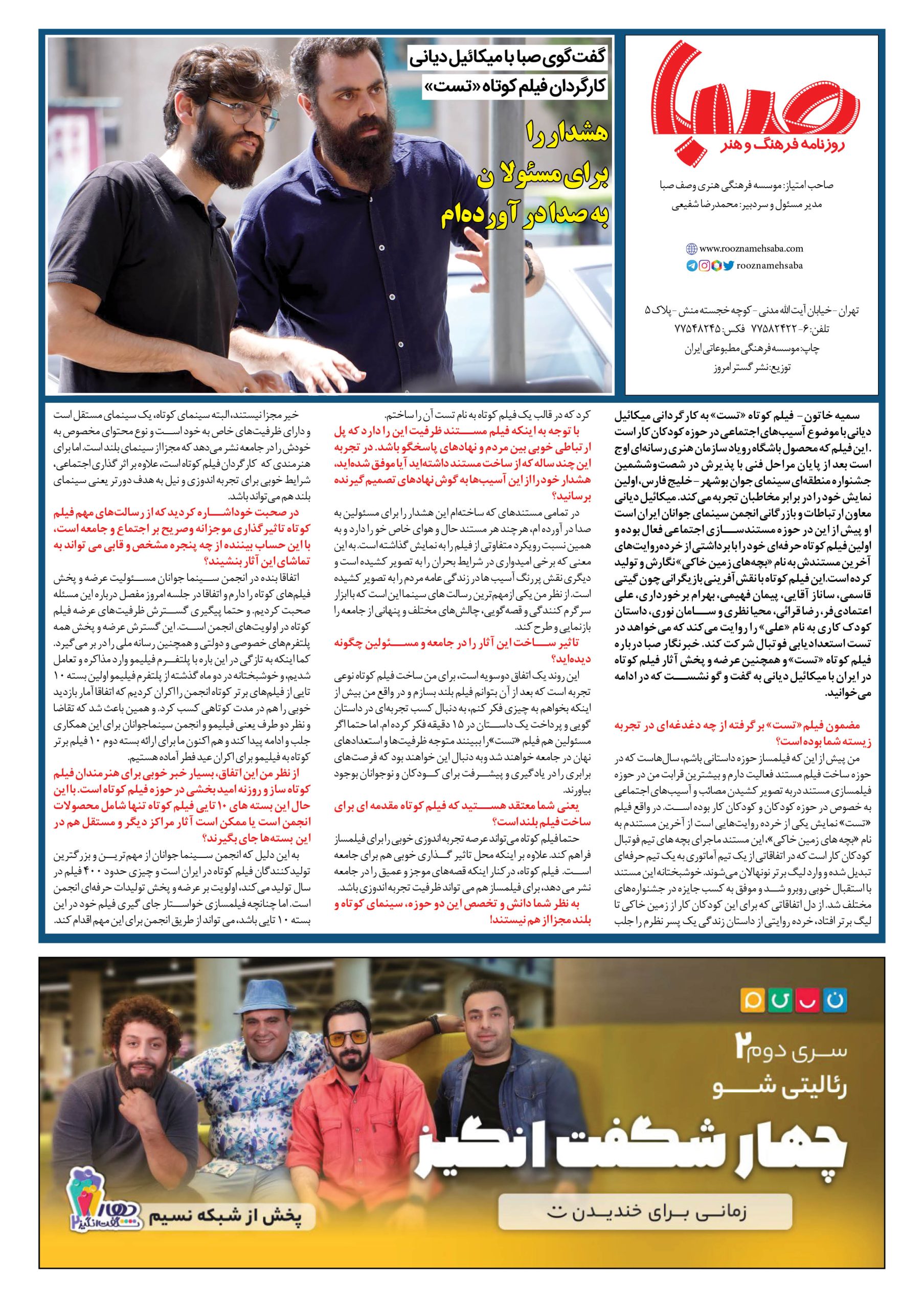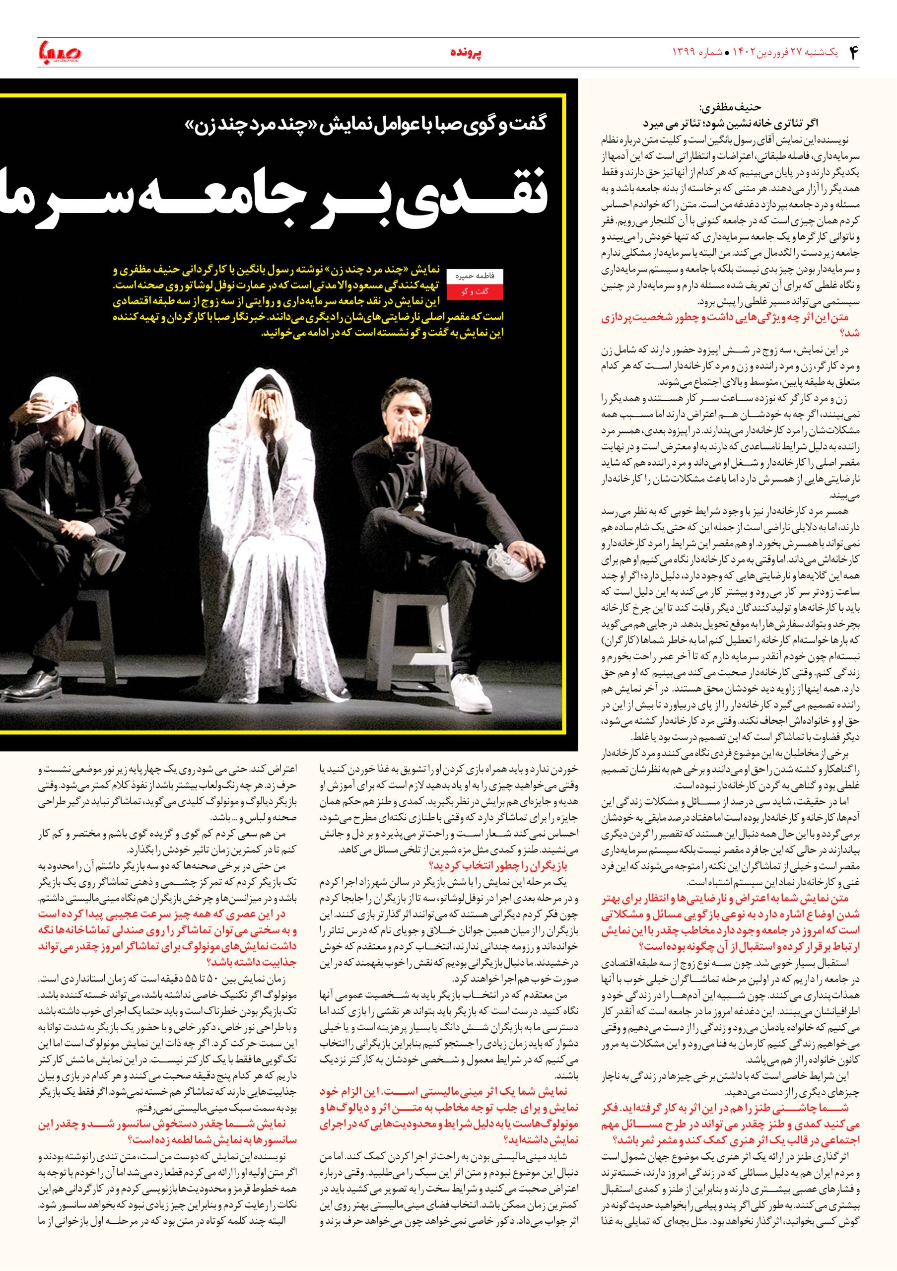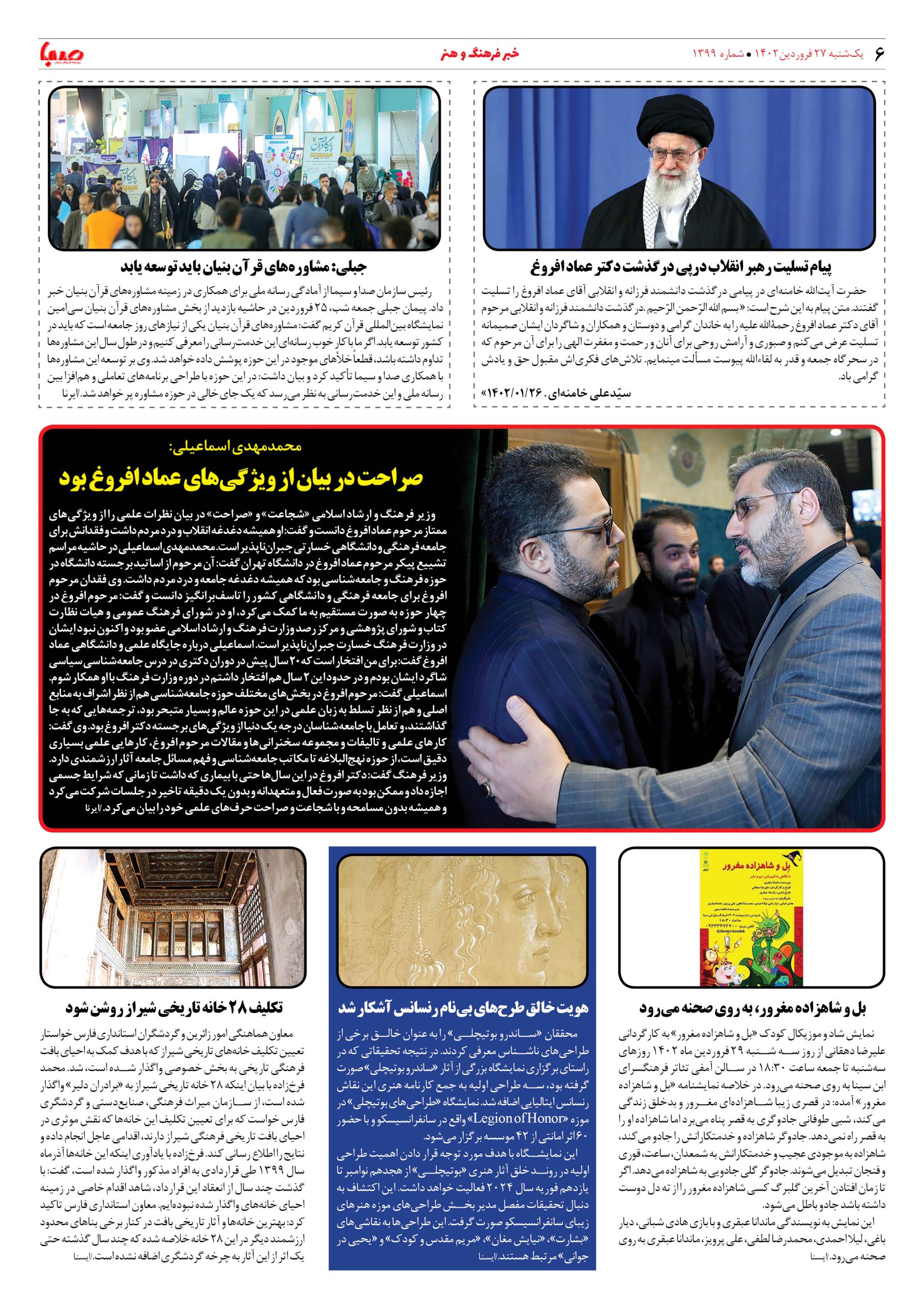 شماره ۱۳۹۹| روزنامه صبا یکشنبه ۲۷ فروردین ۱۴۰۲