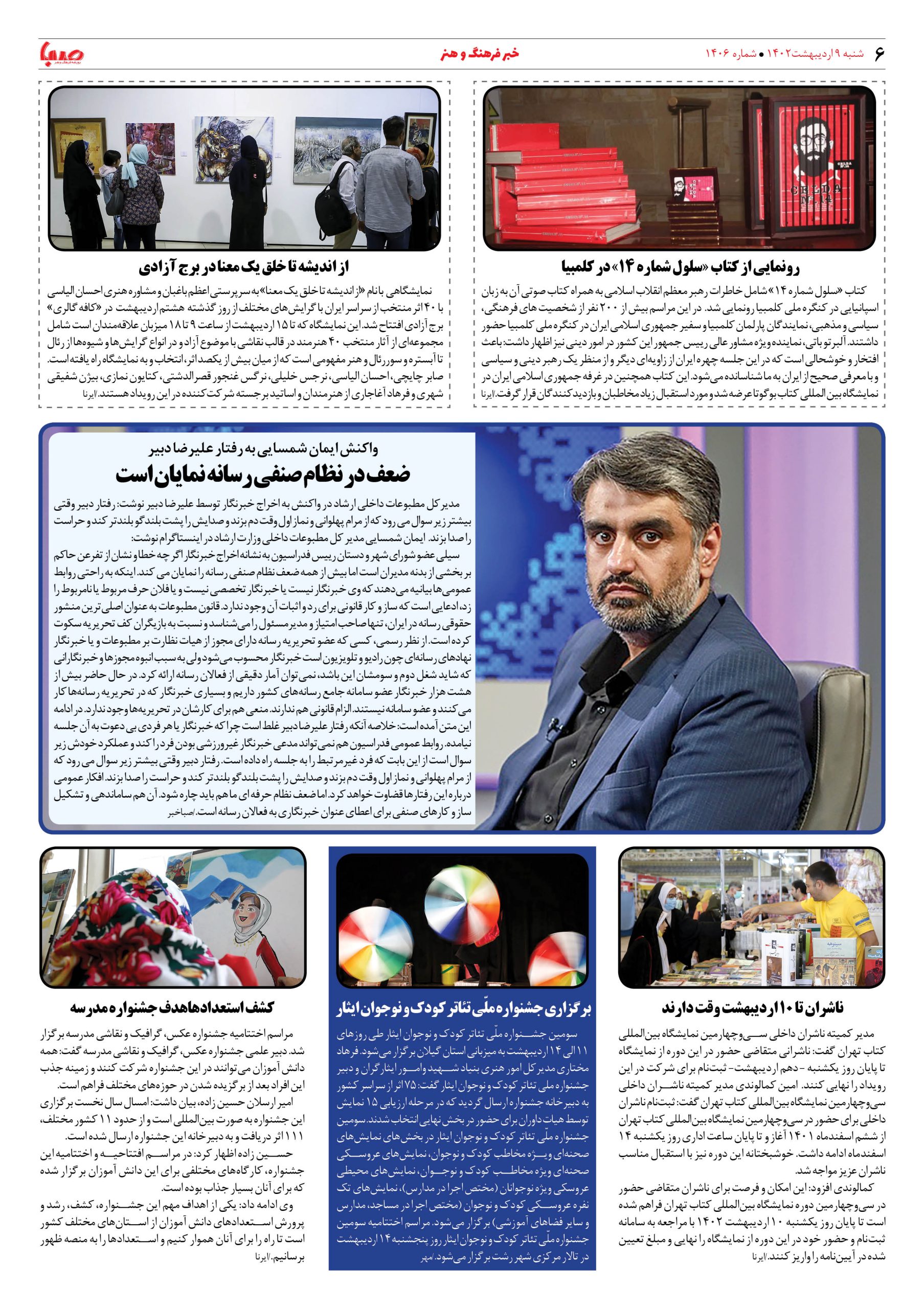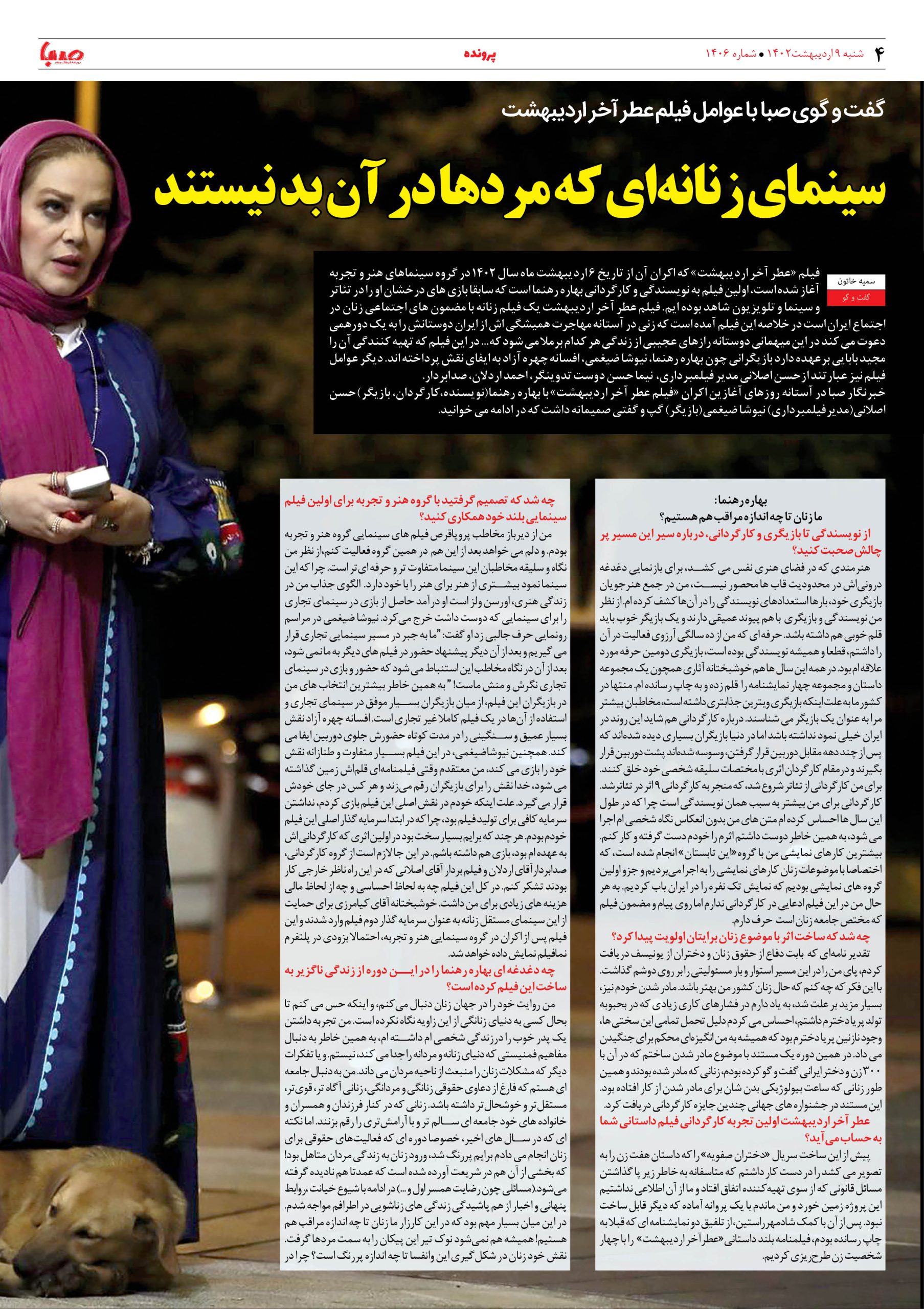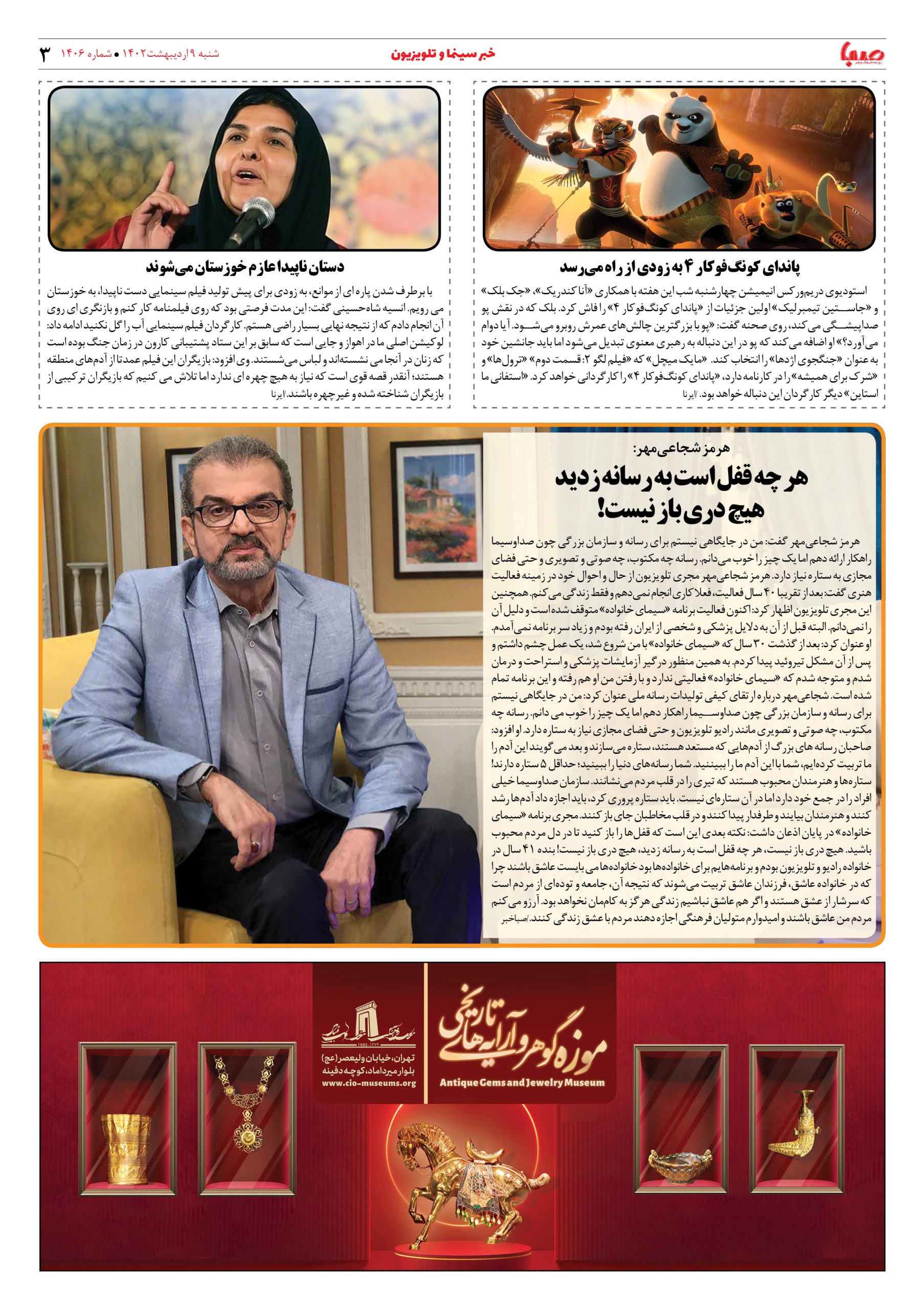 شماره ۱۴۰۶| روزنامه صبا شنبه ۹ اردیبهشت ۱۴۰۲