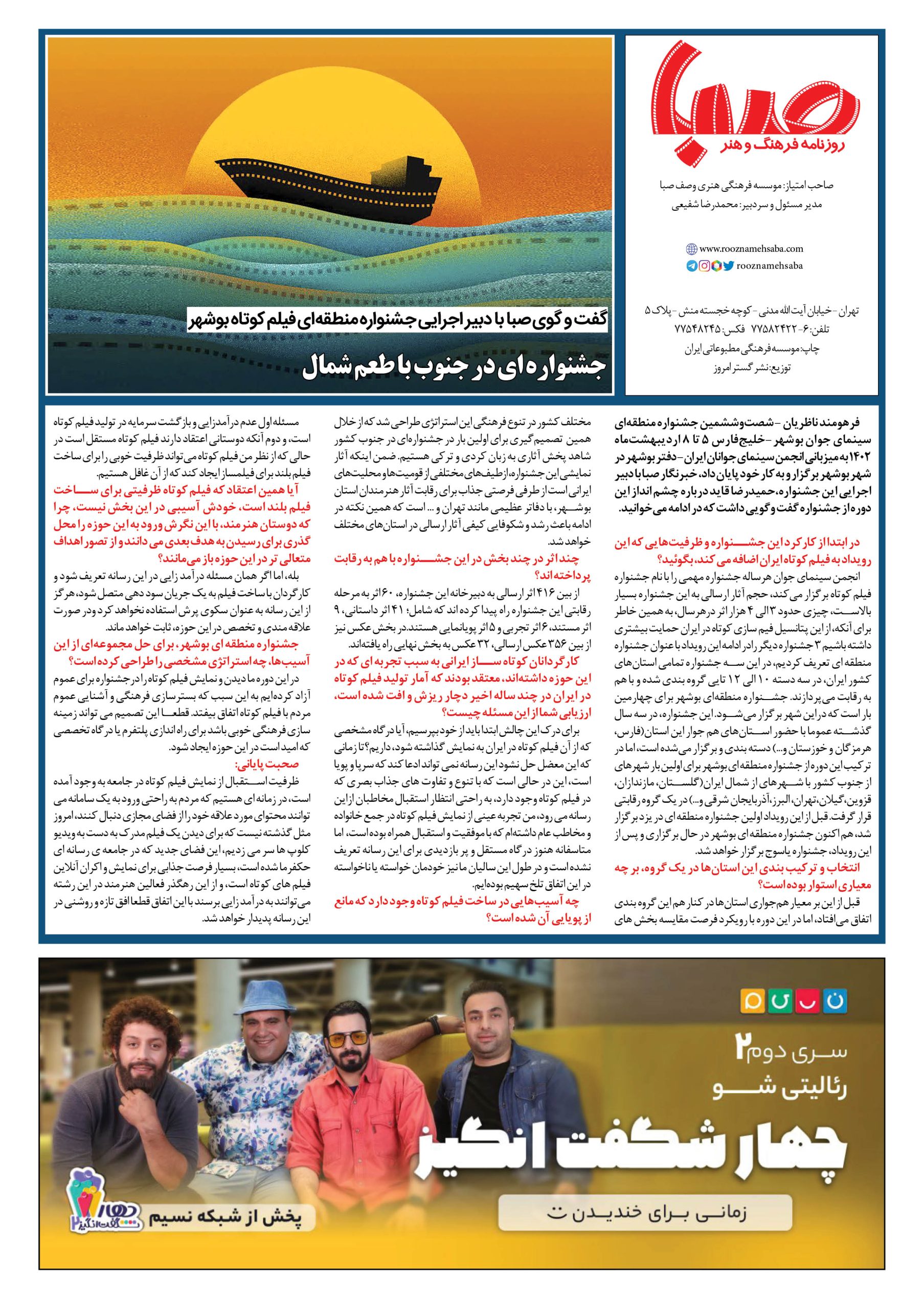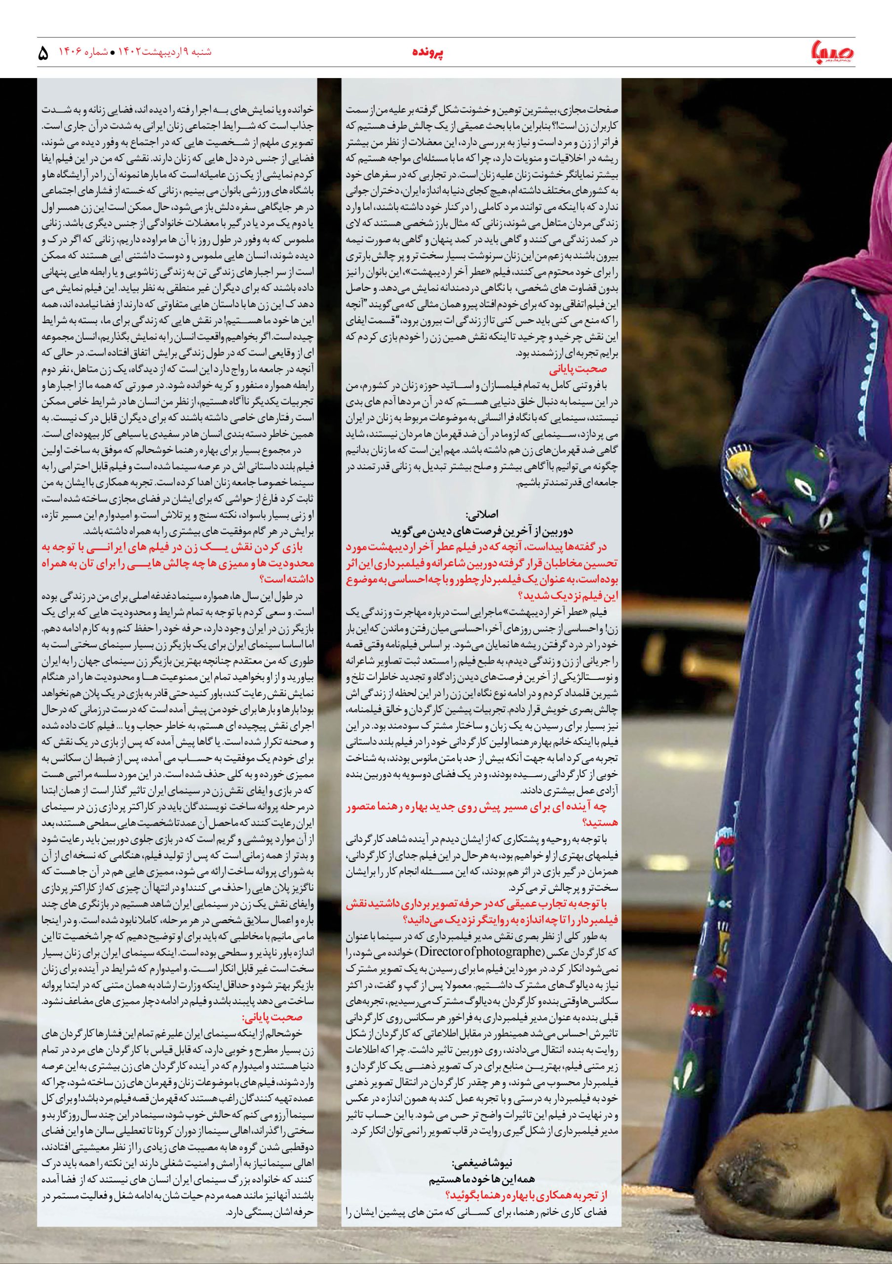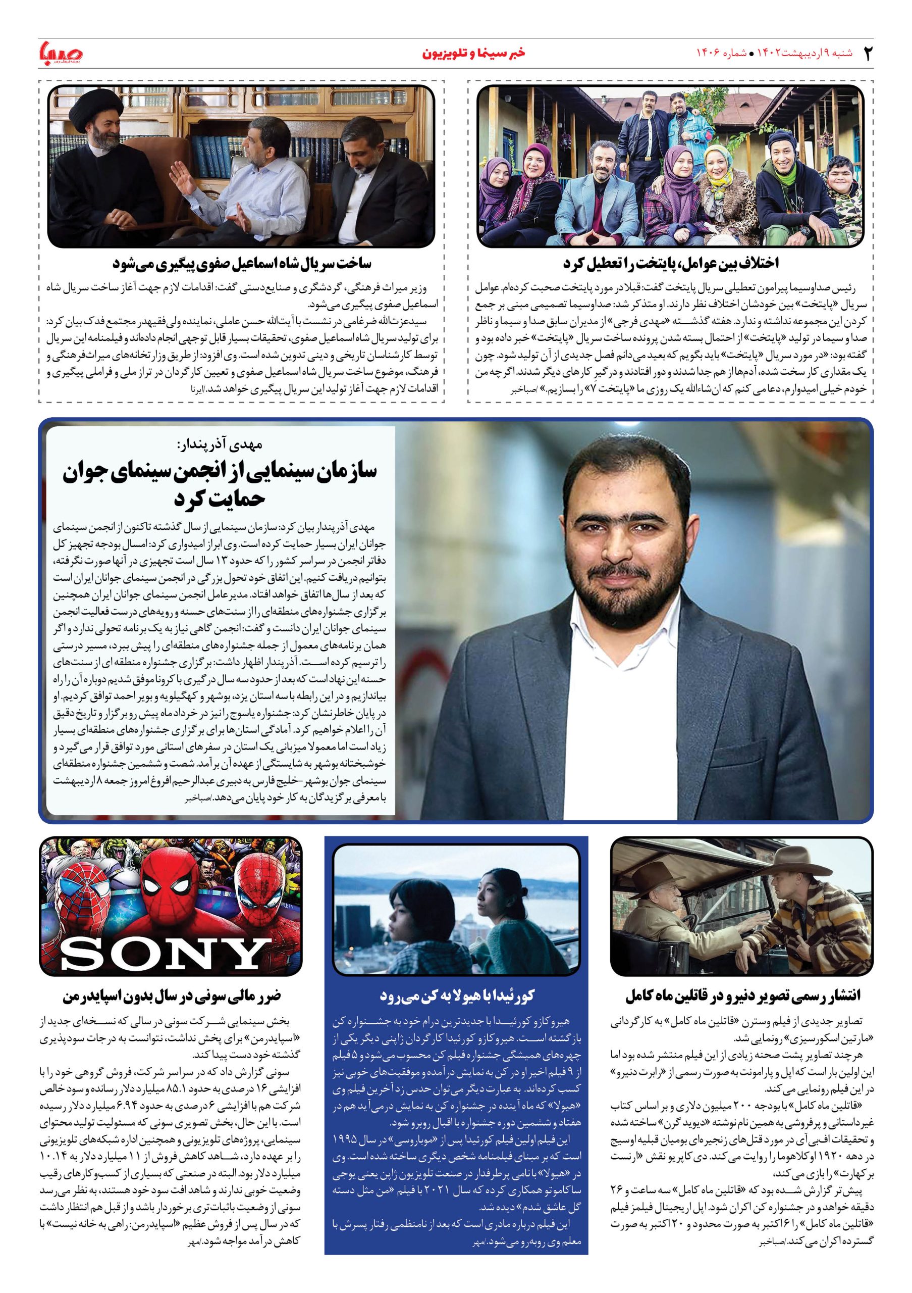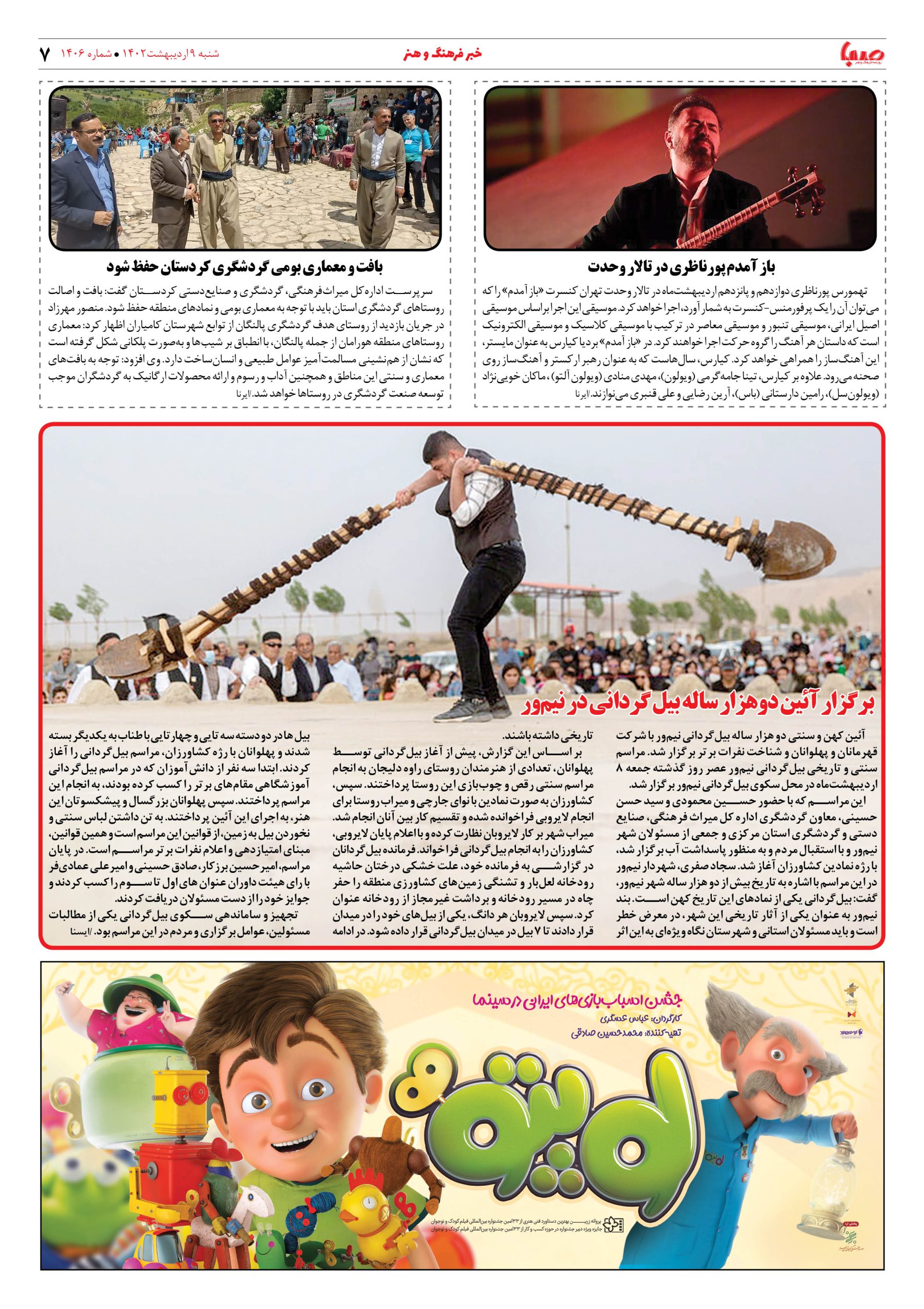 شماره ۱۴۰۶| روزنامه صبا شنبه ۹ اردیبهشت ۱۴۰۲