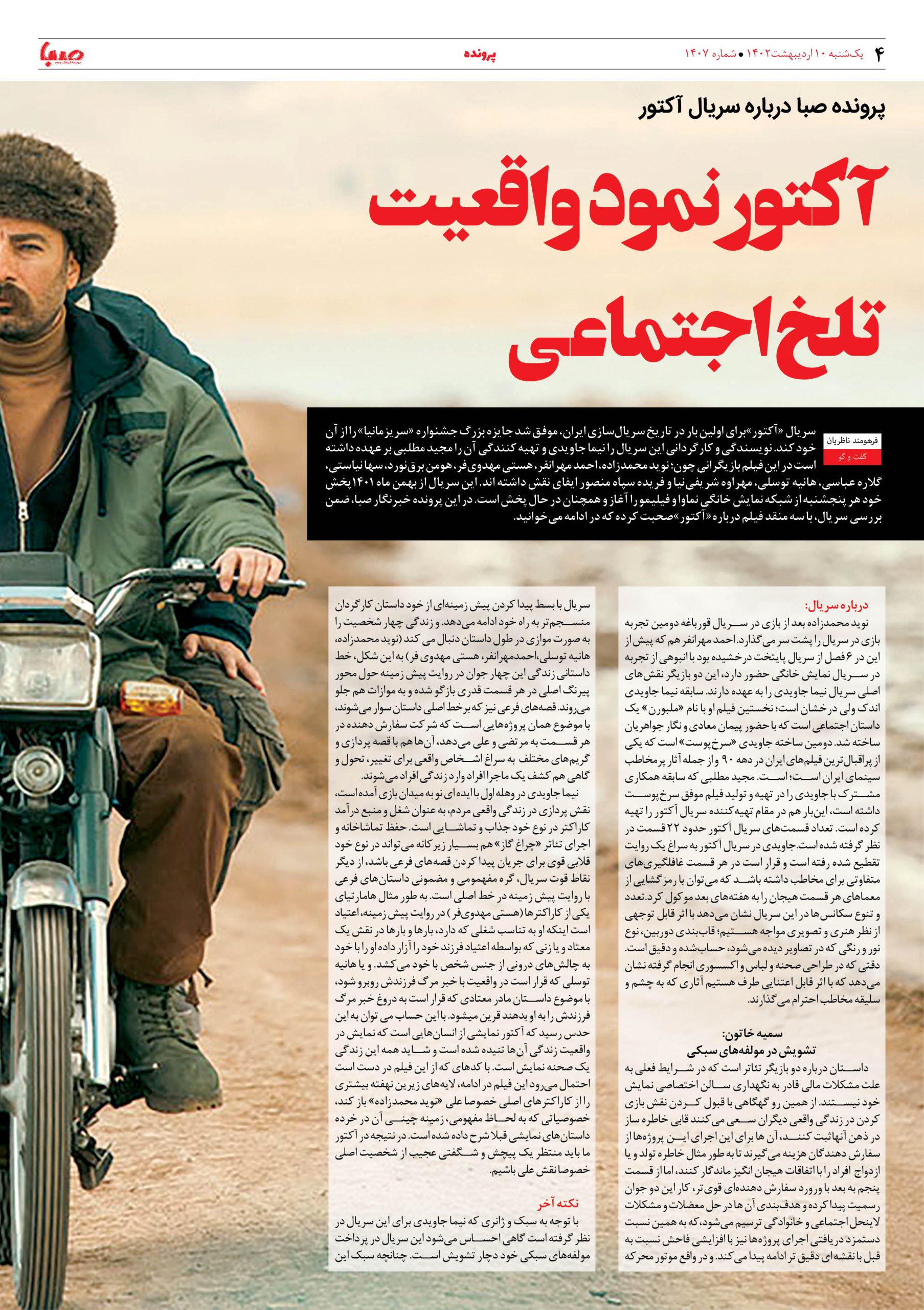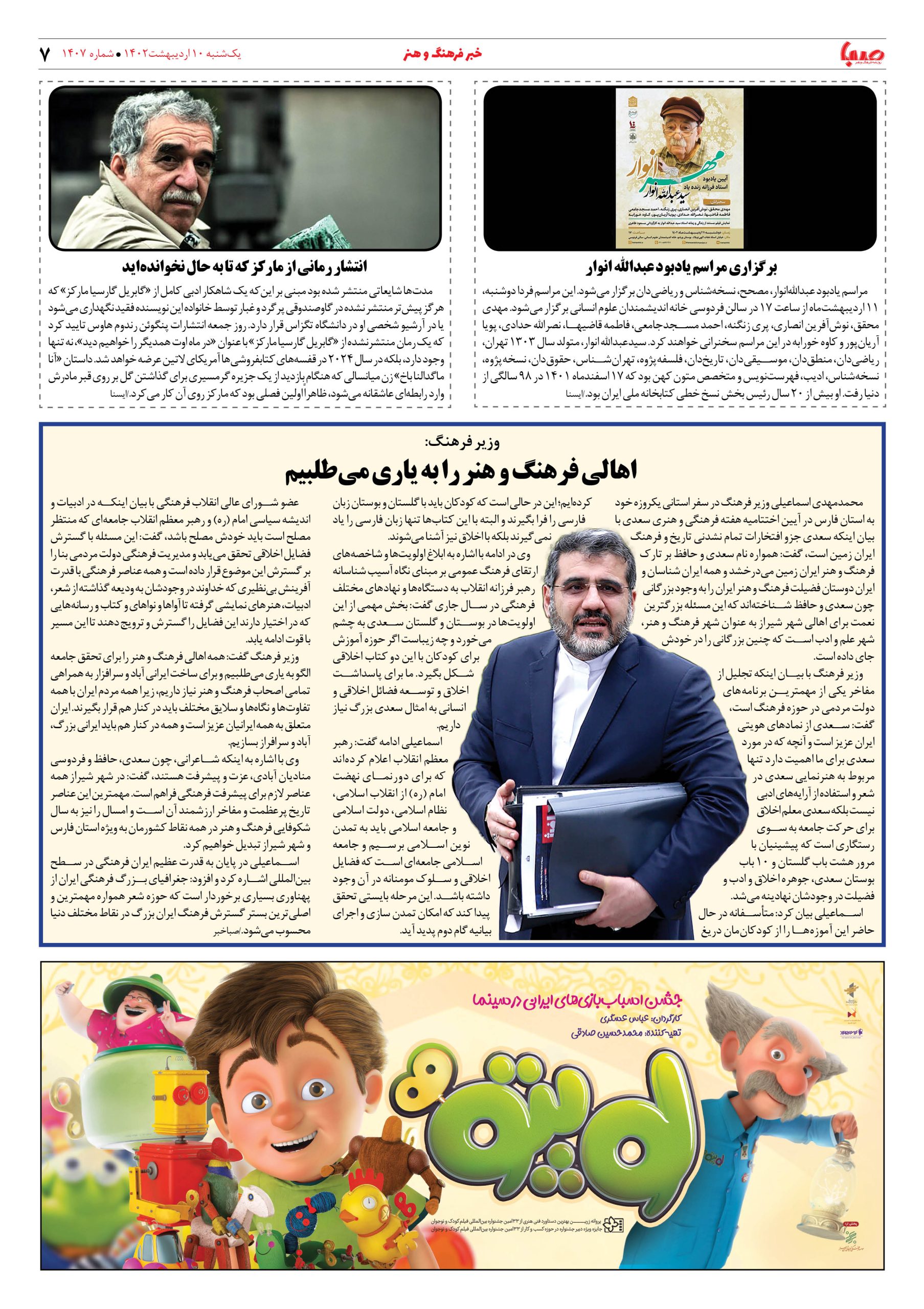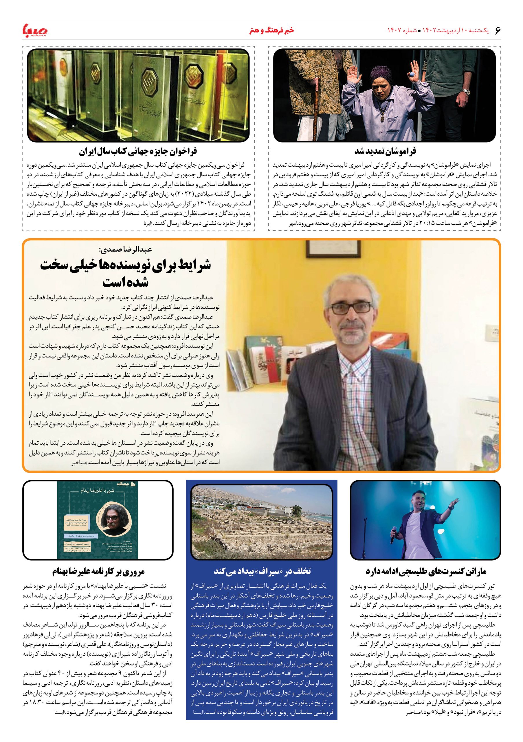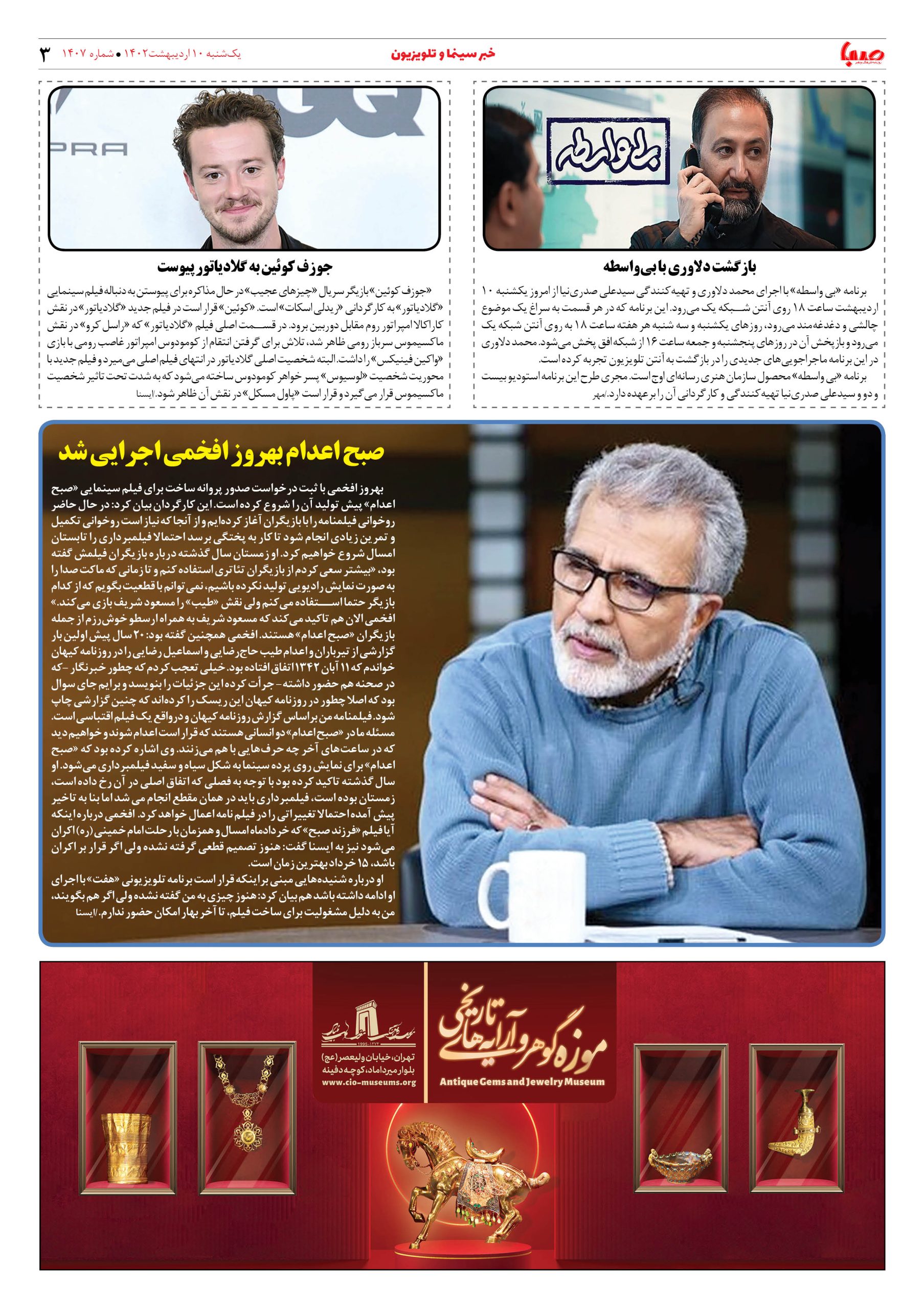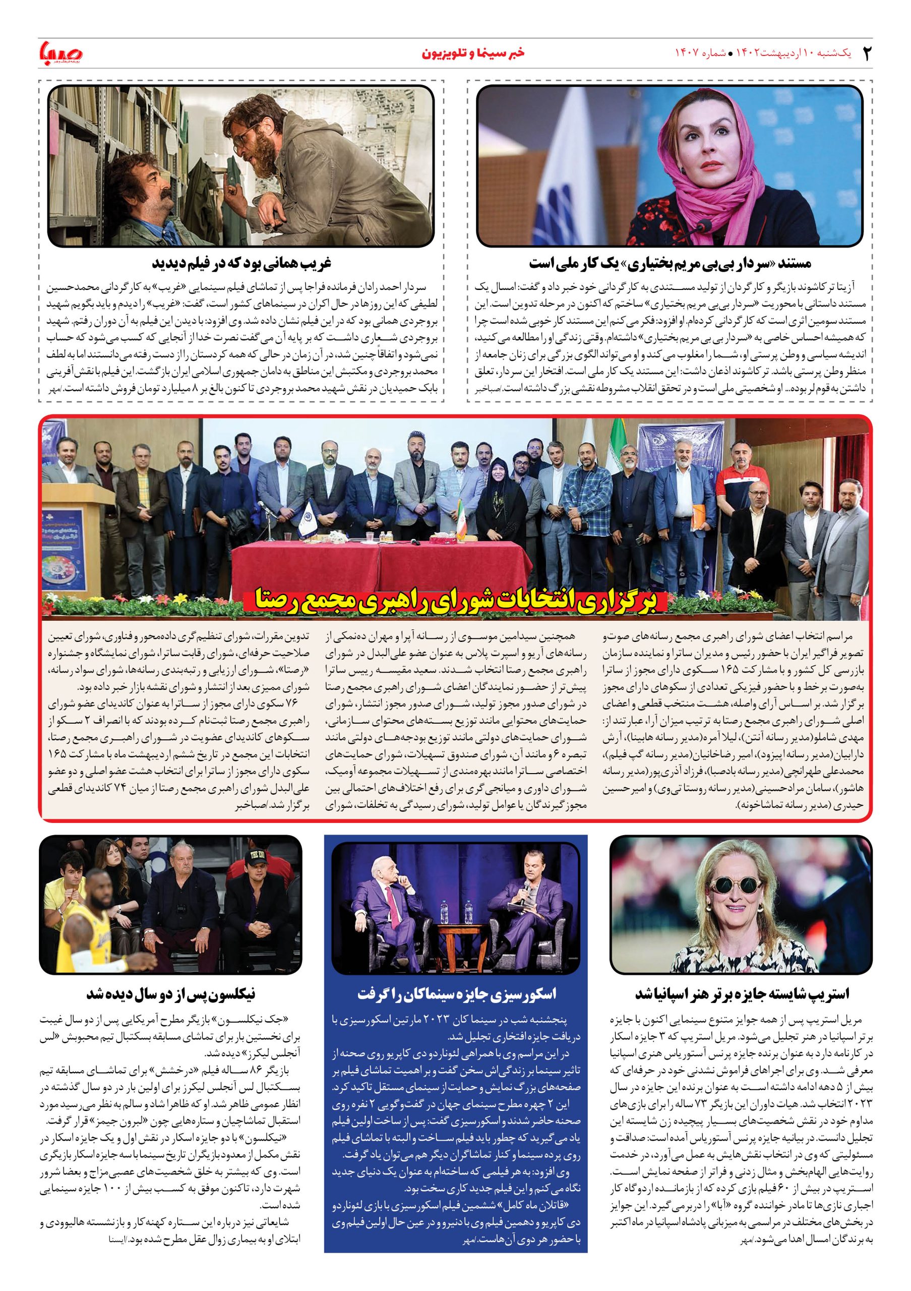 شماره ۱۴۰۷| روزنامه صبا یکشنبه ۱۰ اردیبهشت ۱۴۰۲
