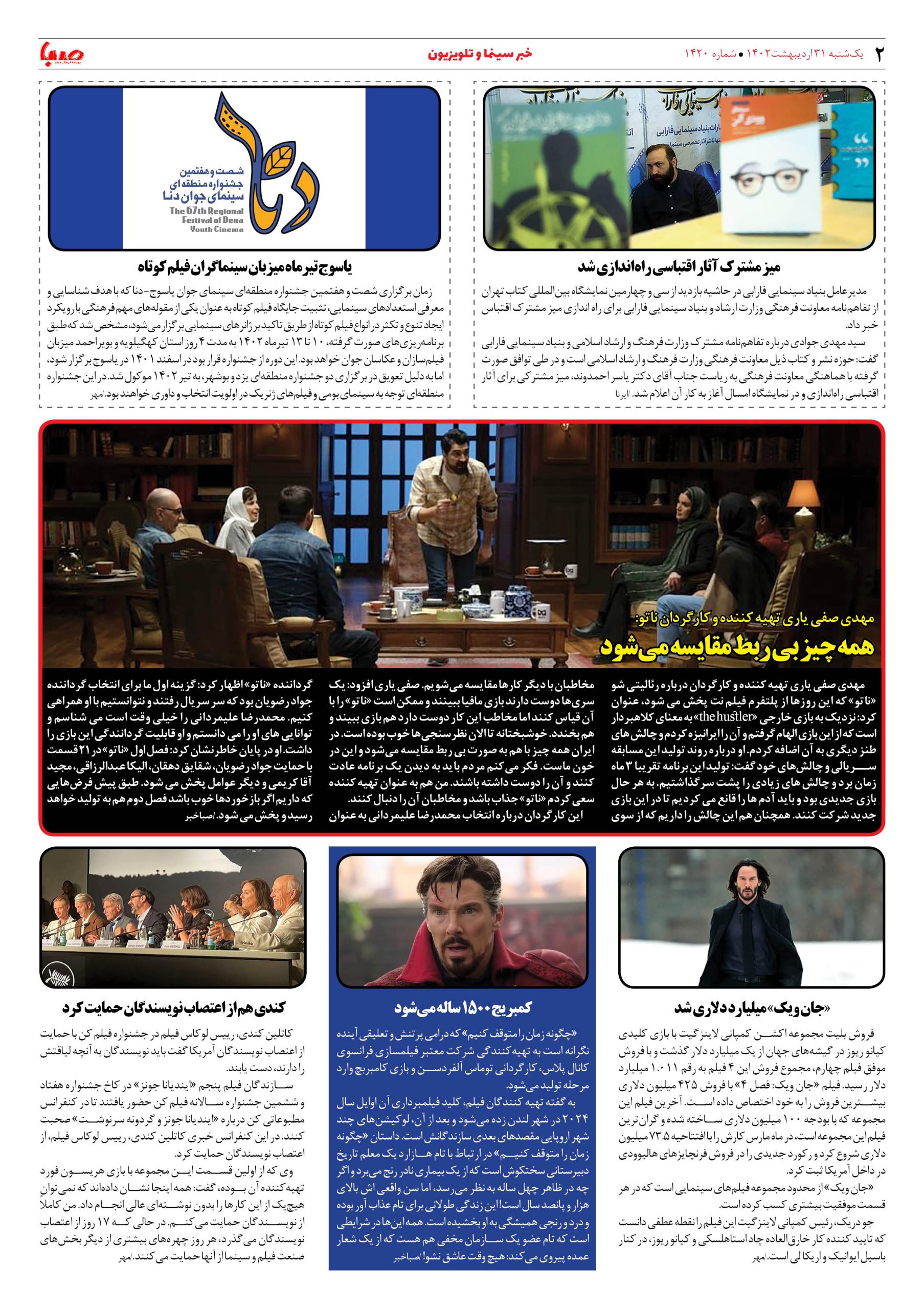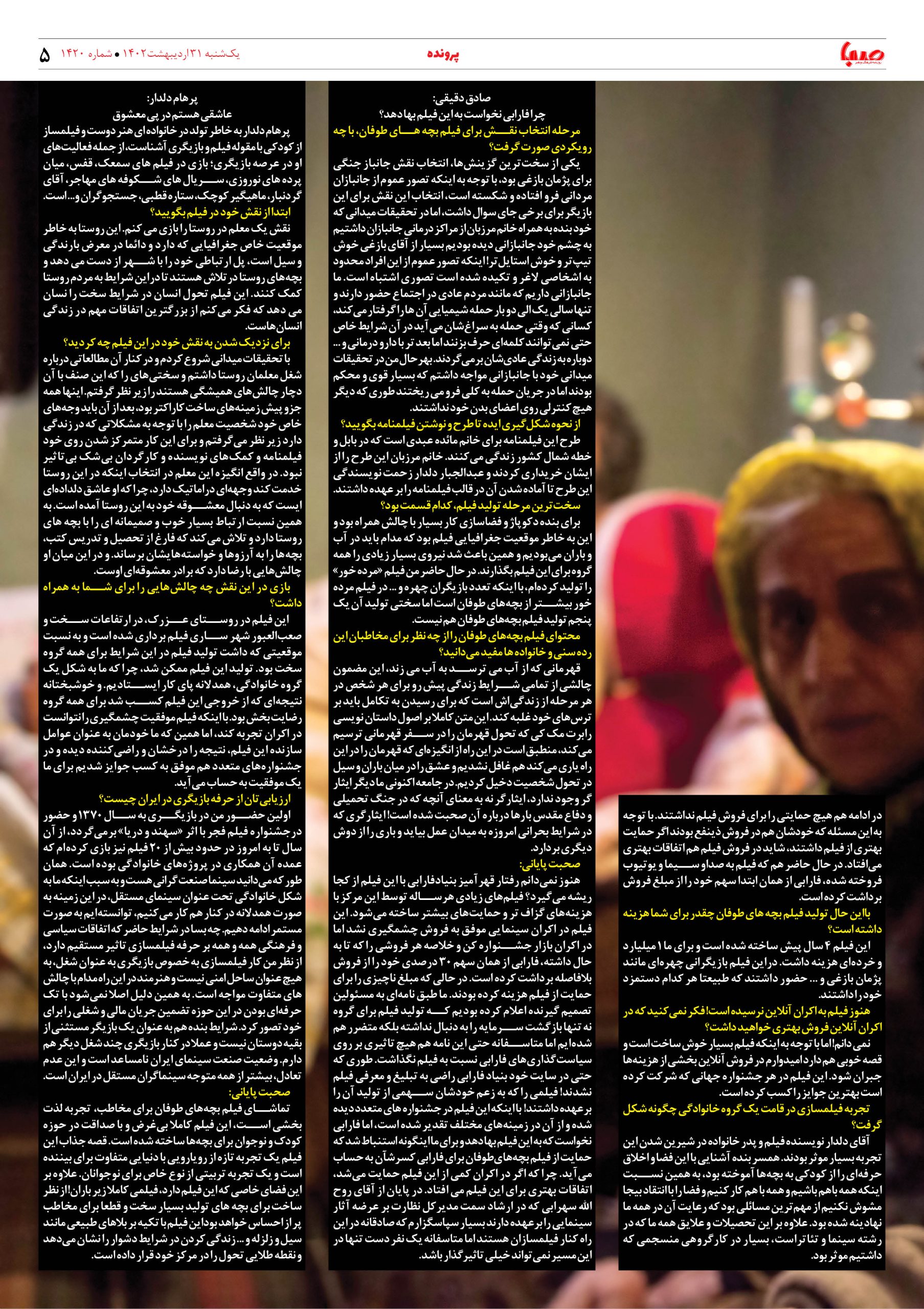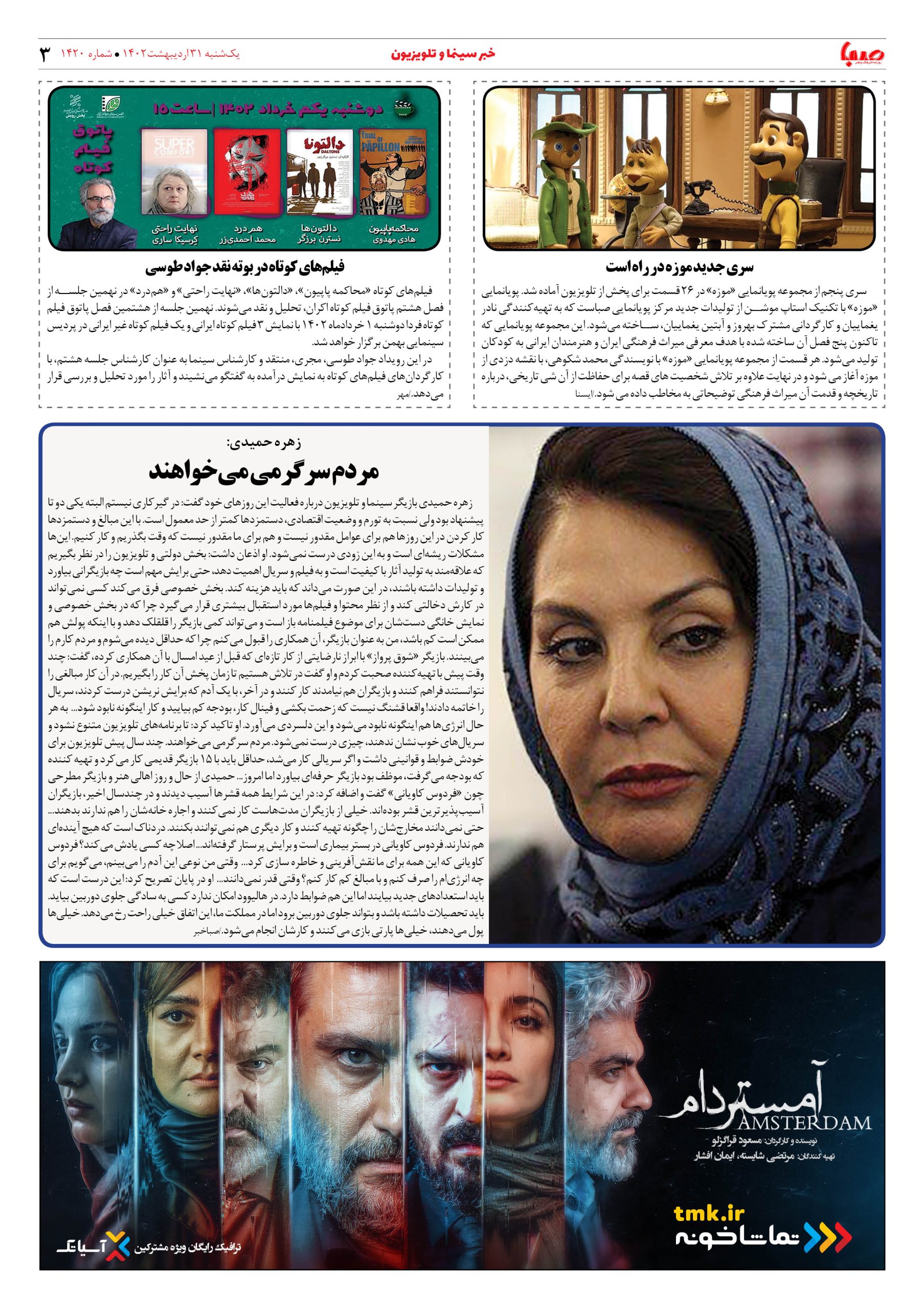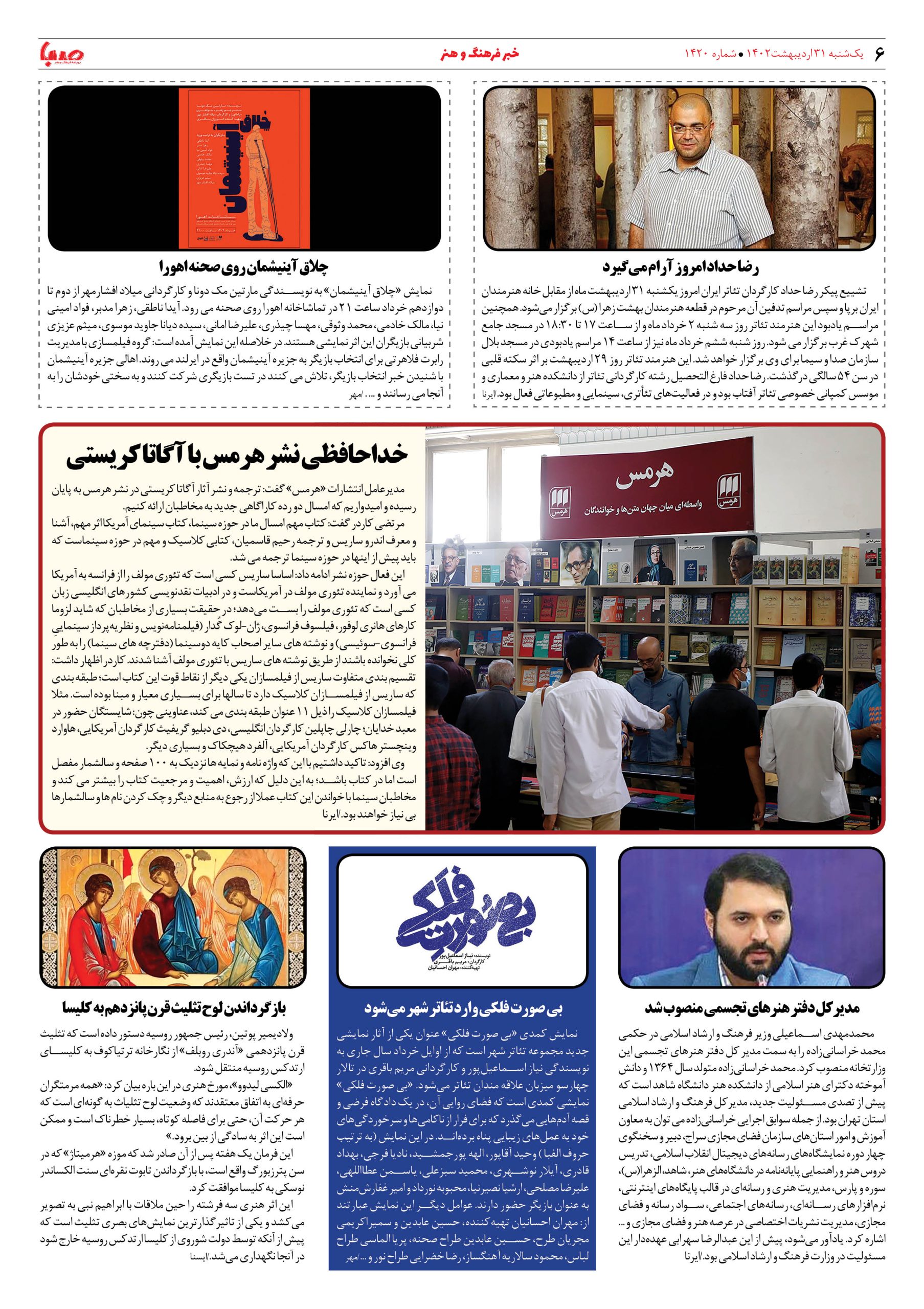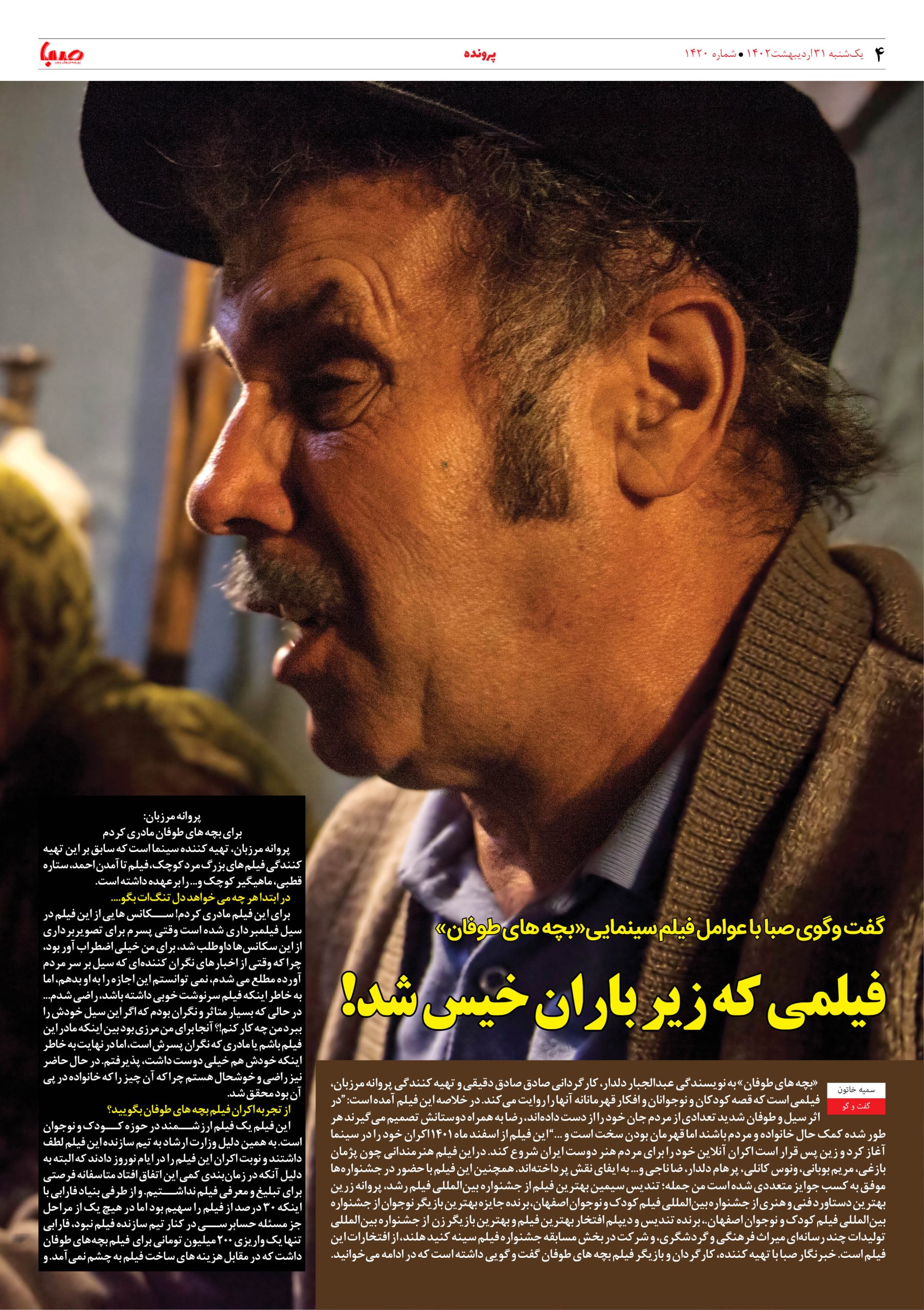شماره ۱۴۲۰| روزنامه صبا یکشنبه۳۱اردیبهشت
