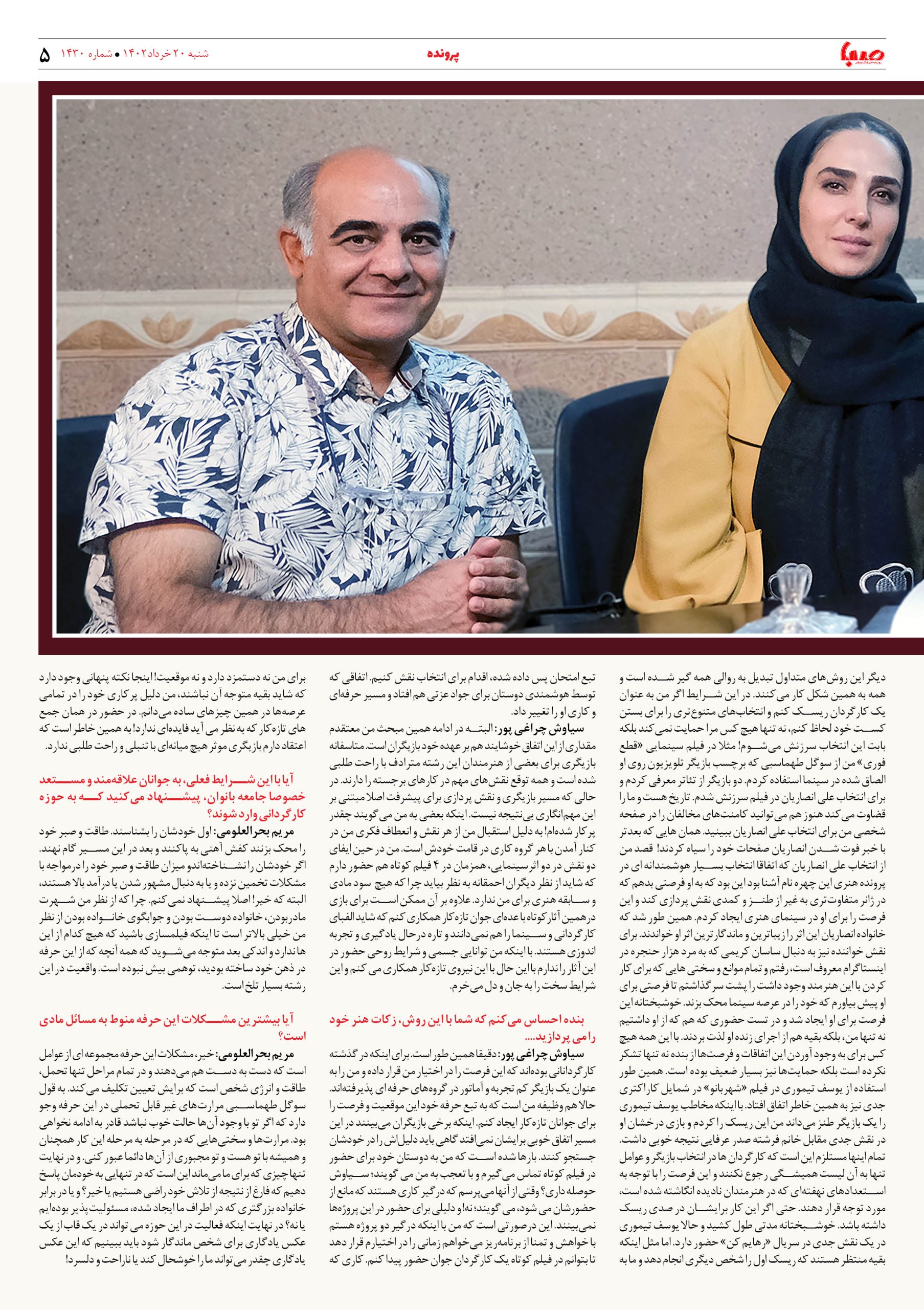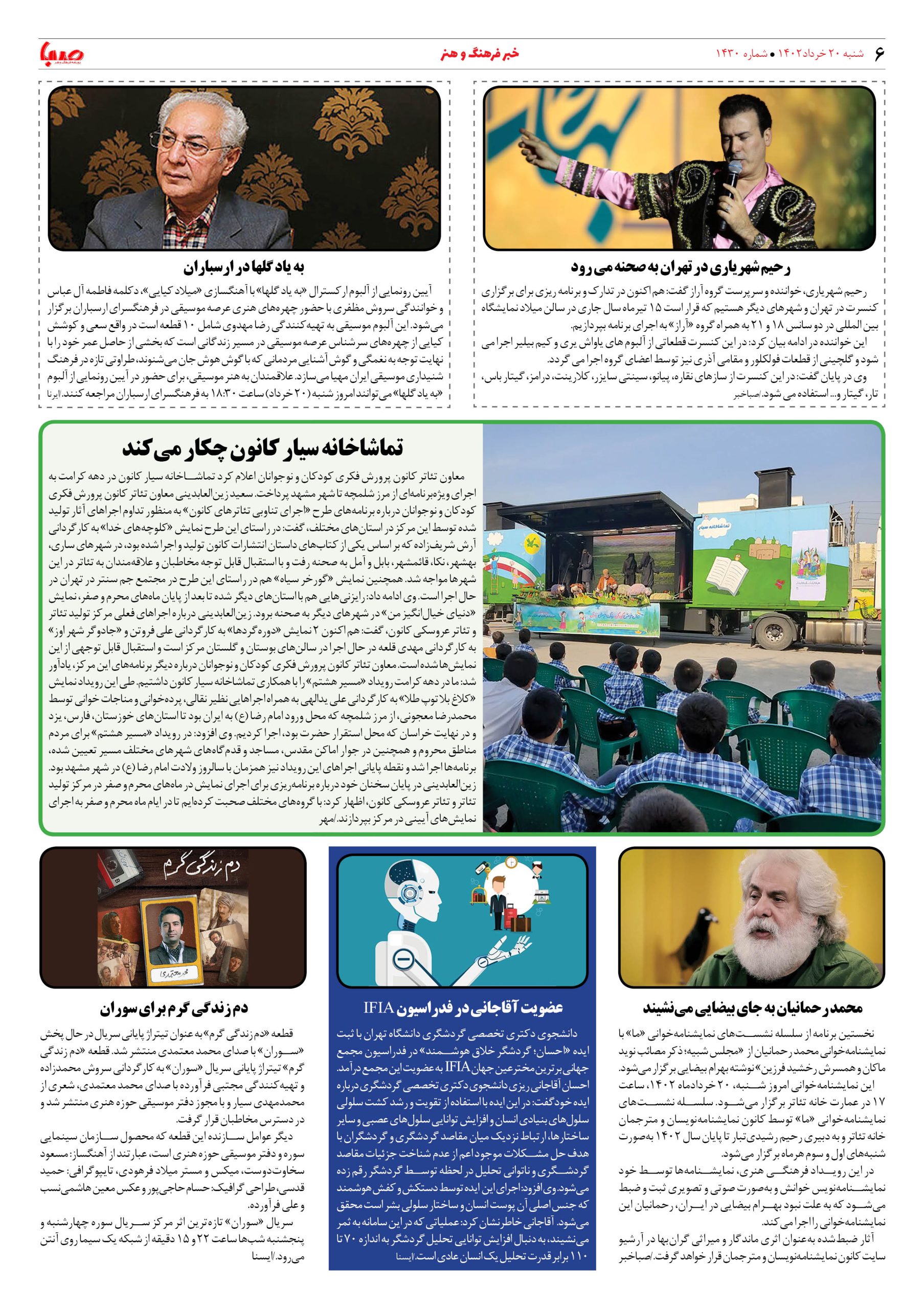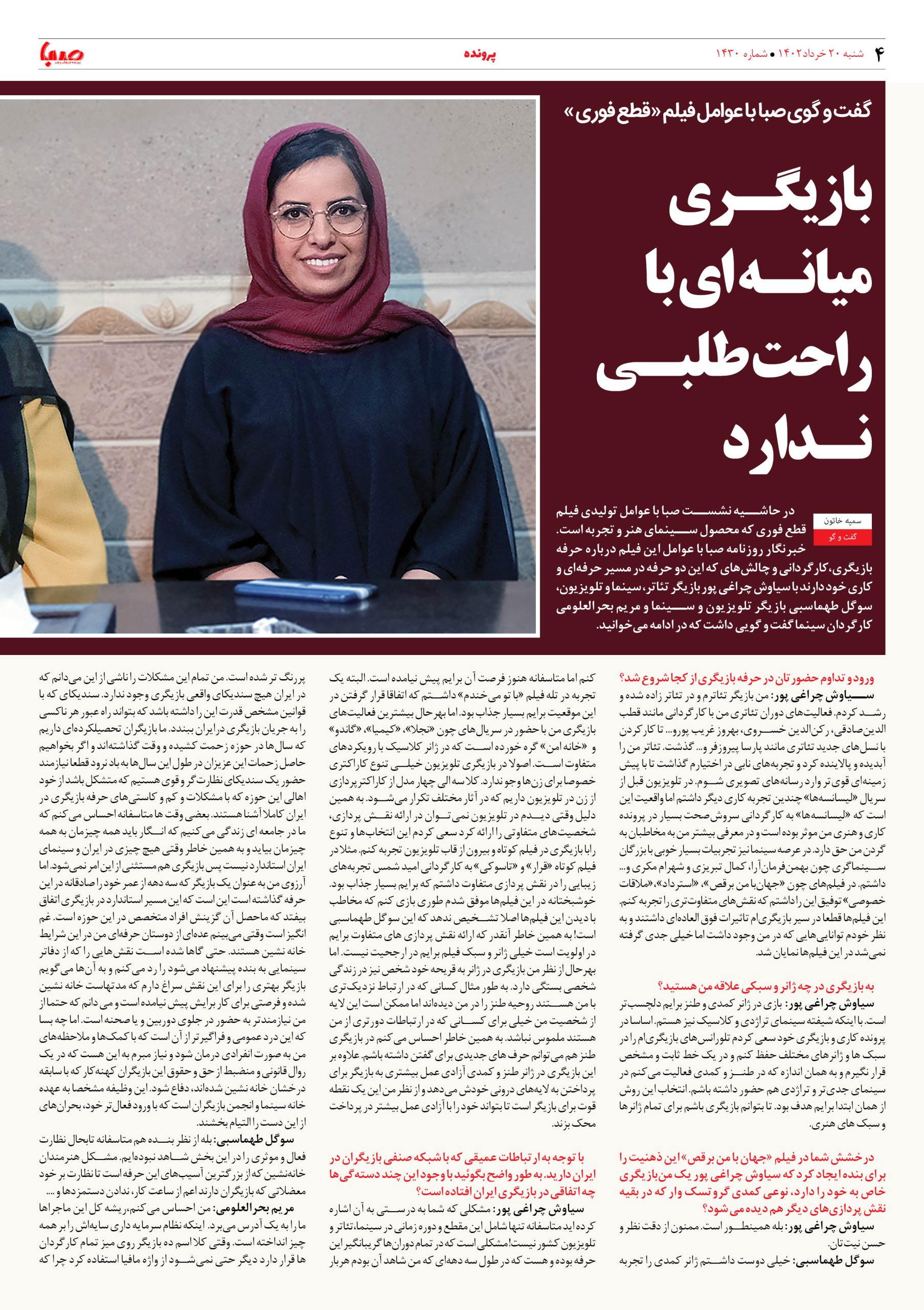 شماره۱۴۳۰| روزنامه صبا شنبه۲۰خرداد