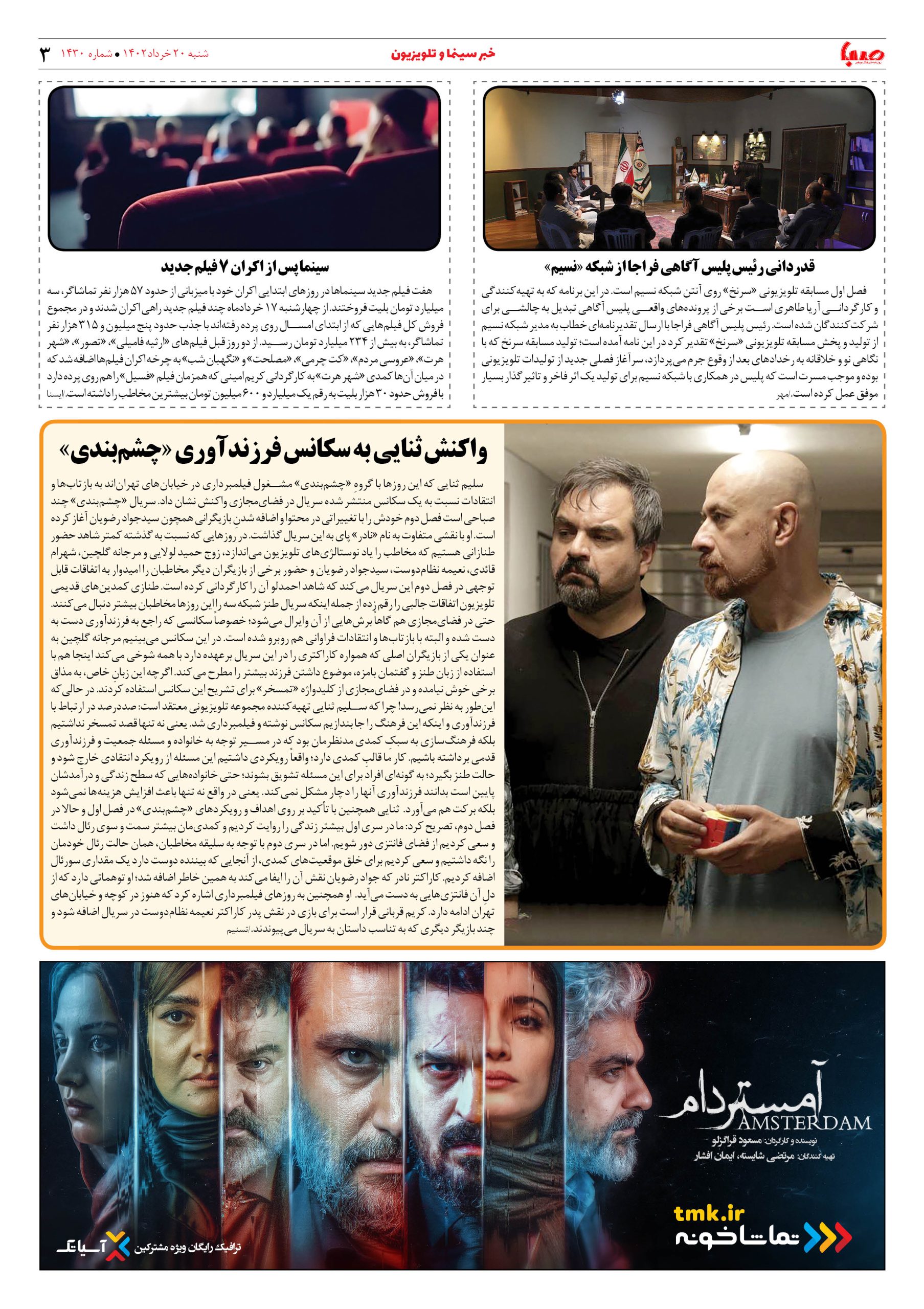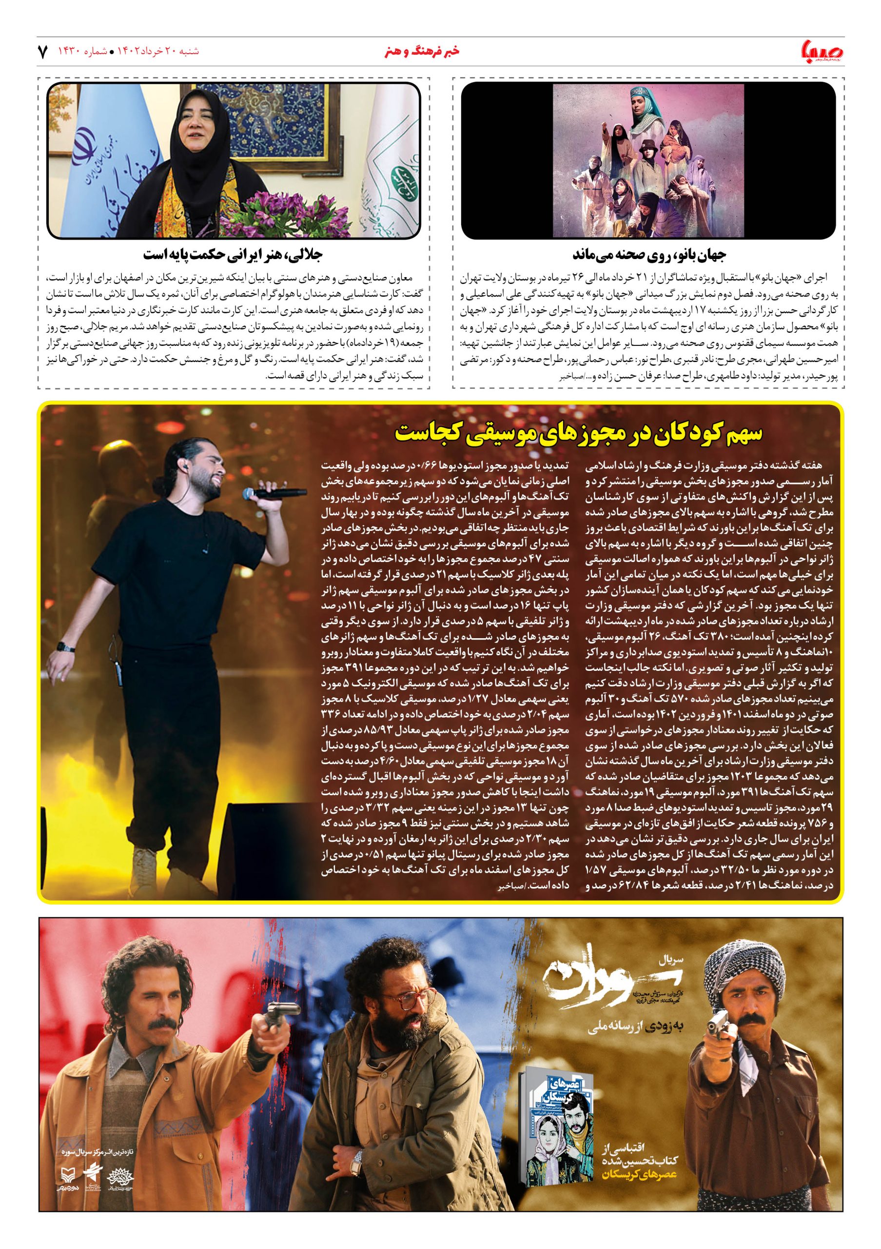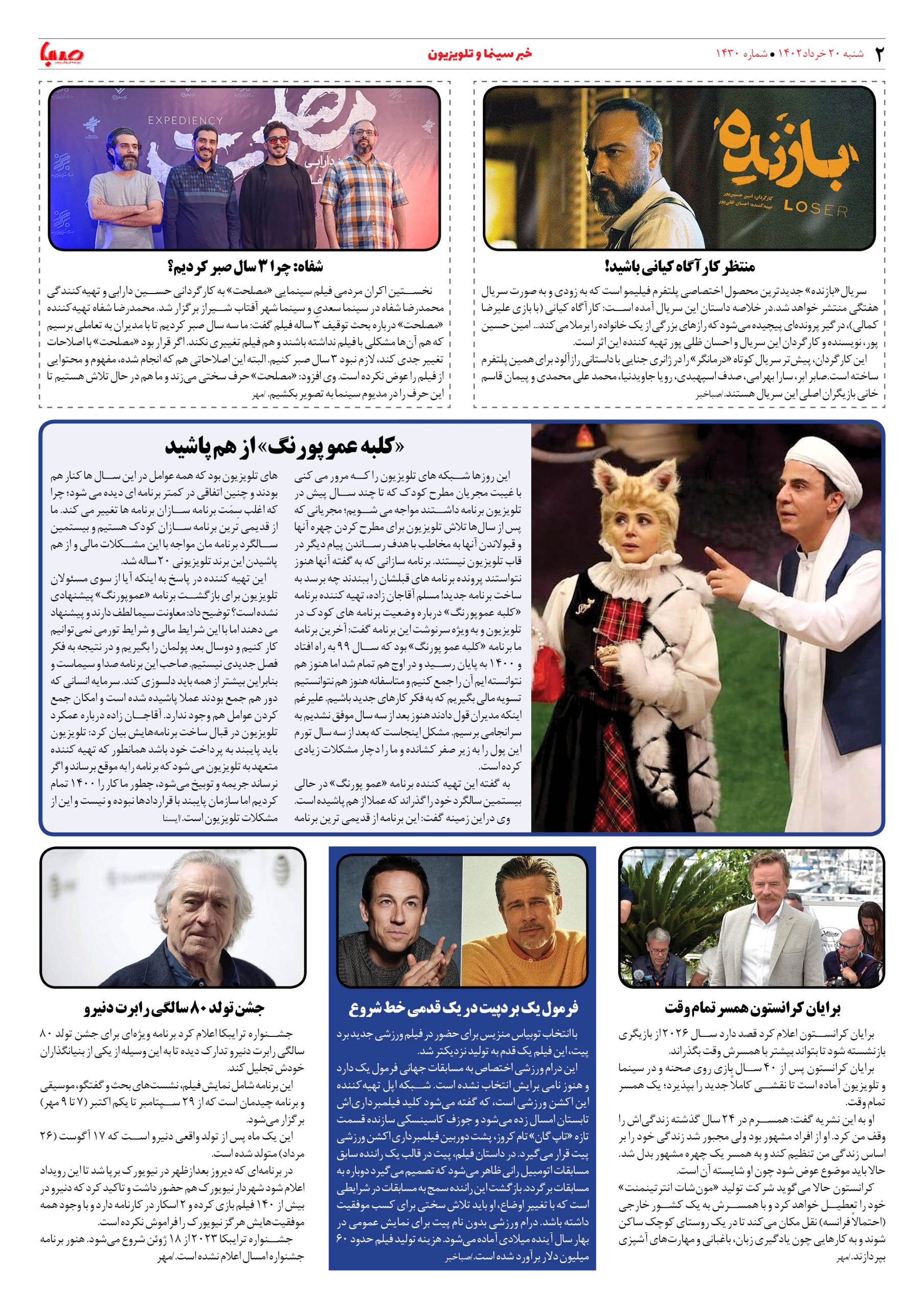 شماره۱۴۳۰| روزنامه صبا شنبه۲۰خرداد