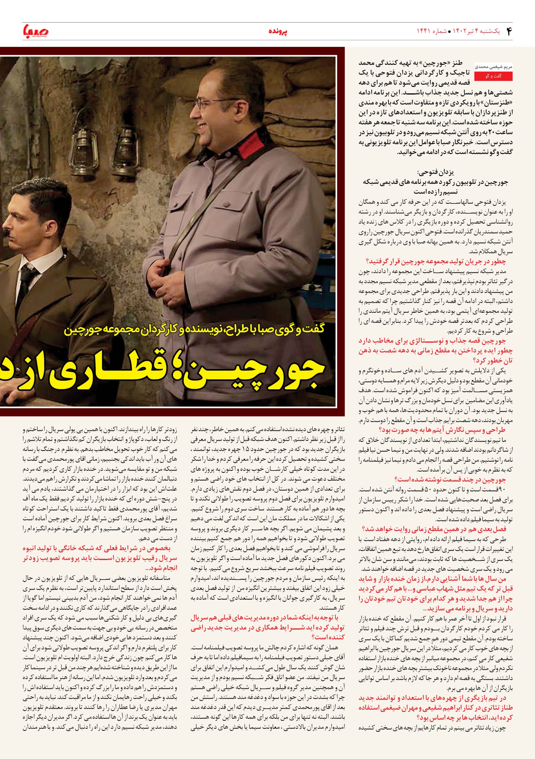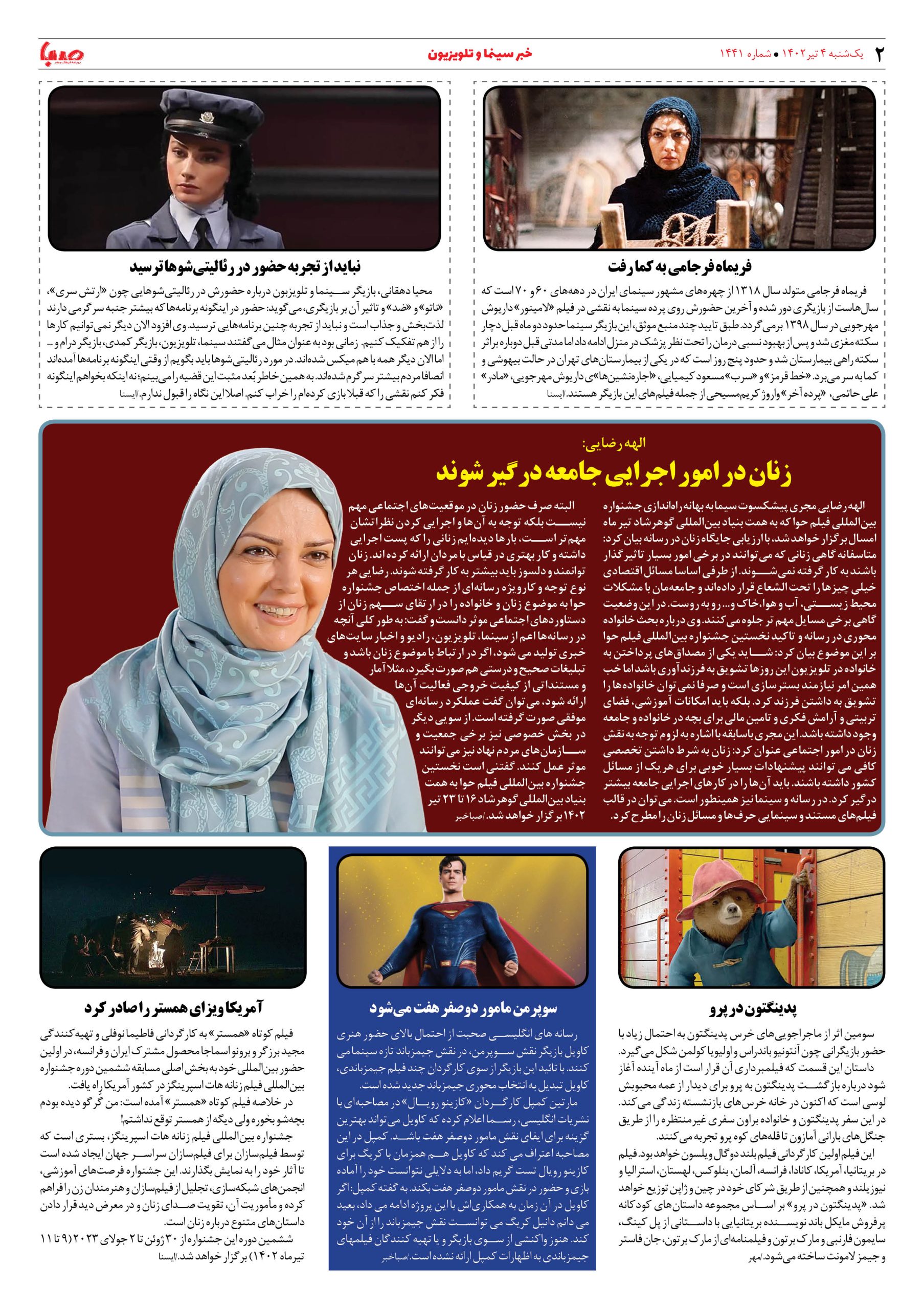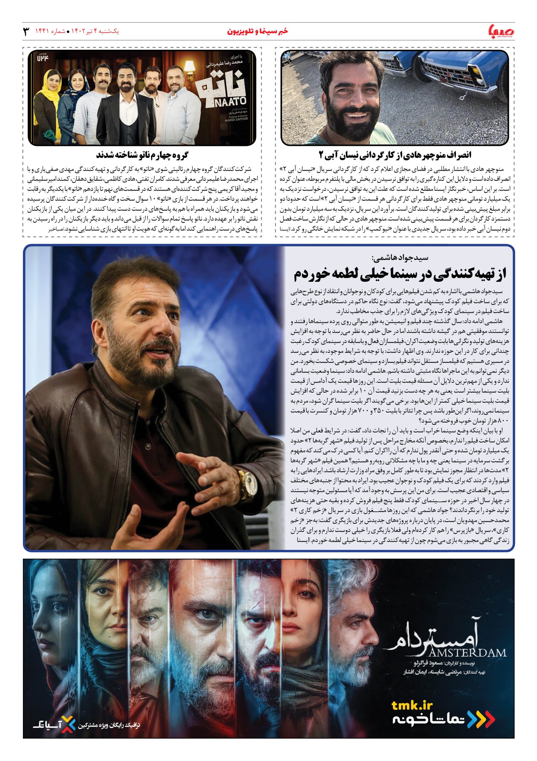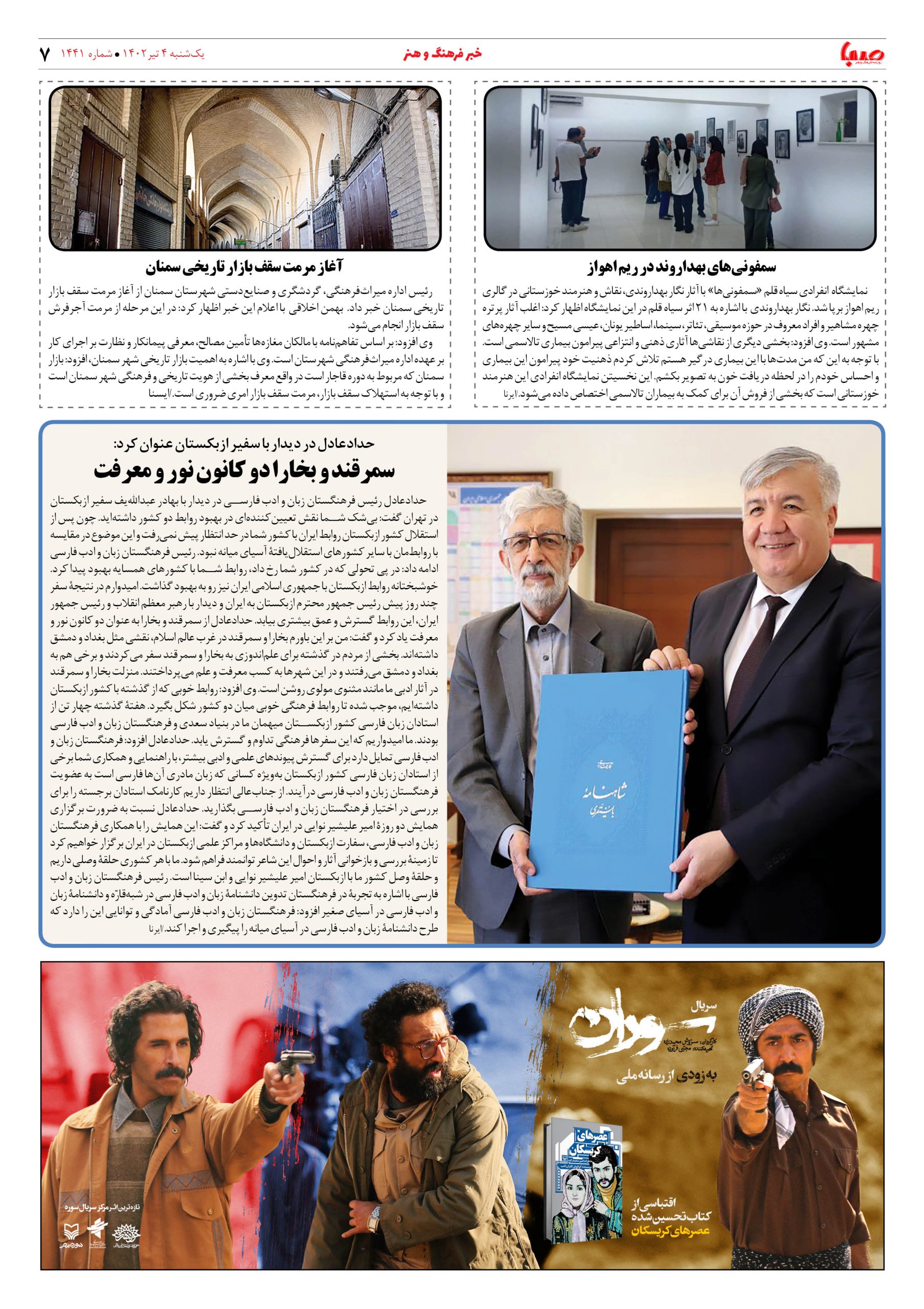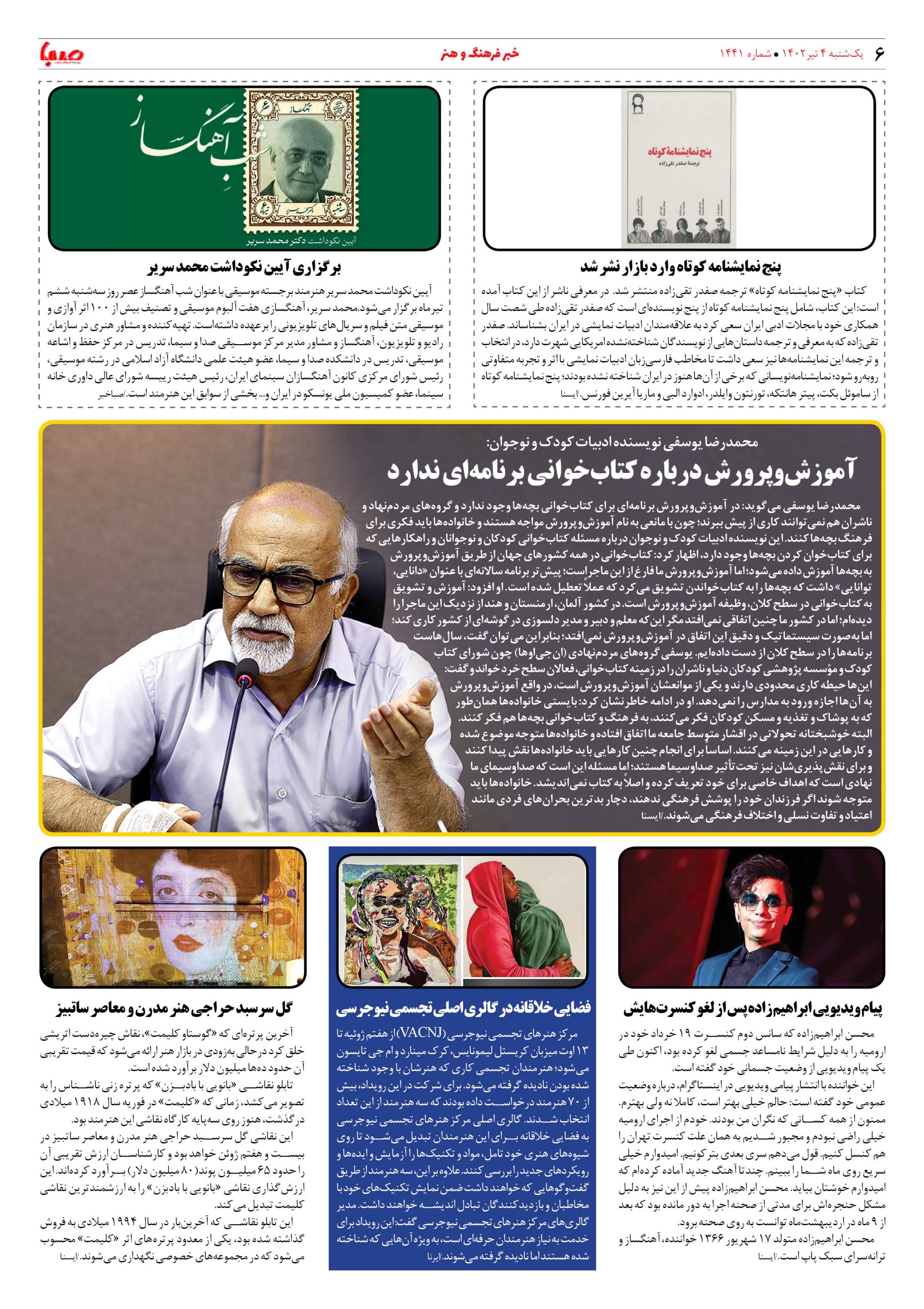 شماره ۱۴۴۱| روزنامه صبا یکشنبه ۴ تیر