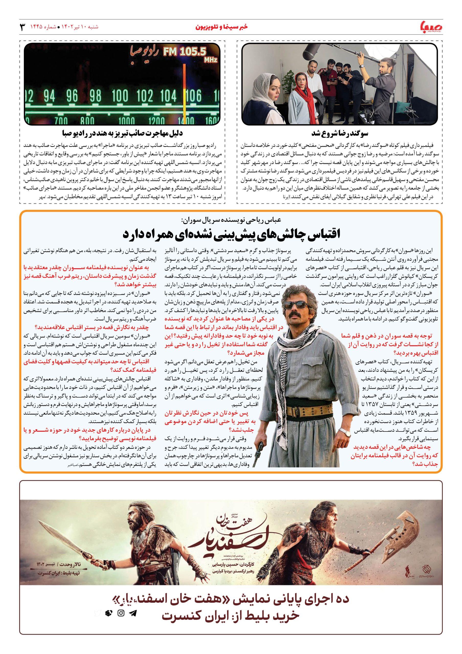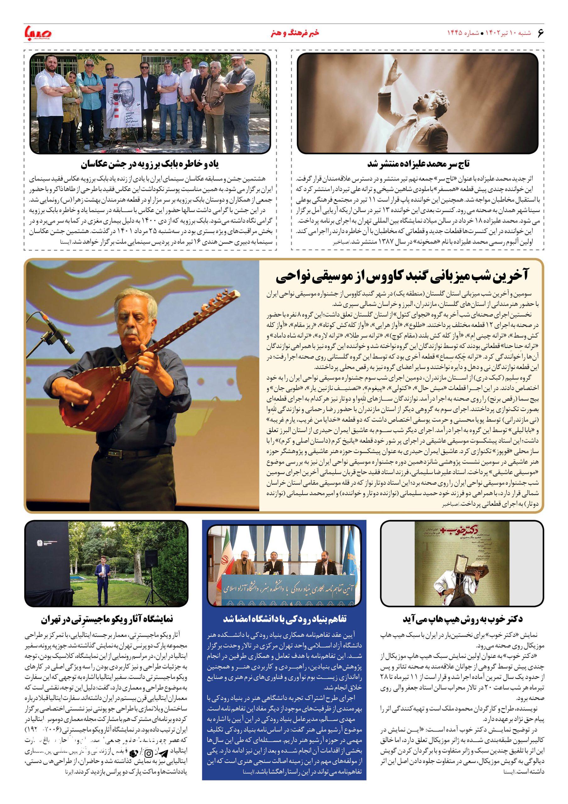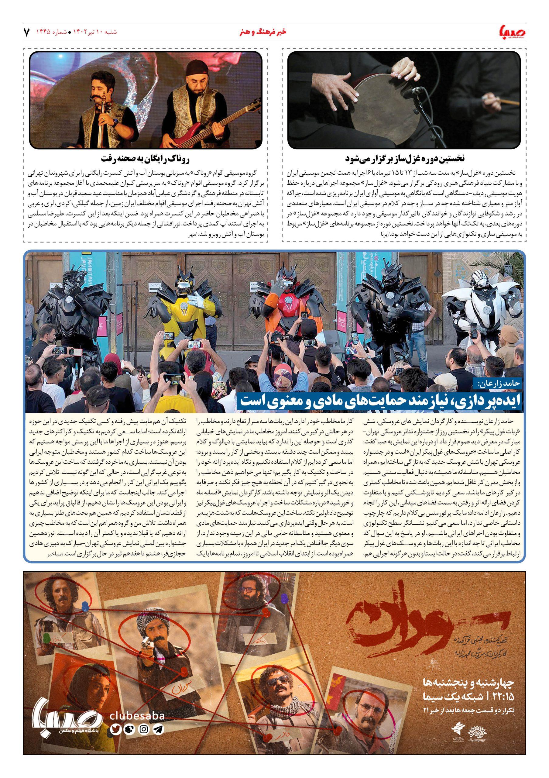 شماره ۱۴۴۵| روزنامه صبا شنبه ۱۰تیر