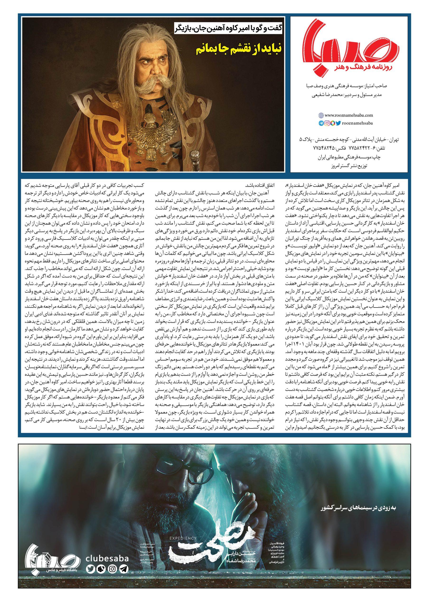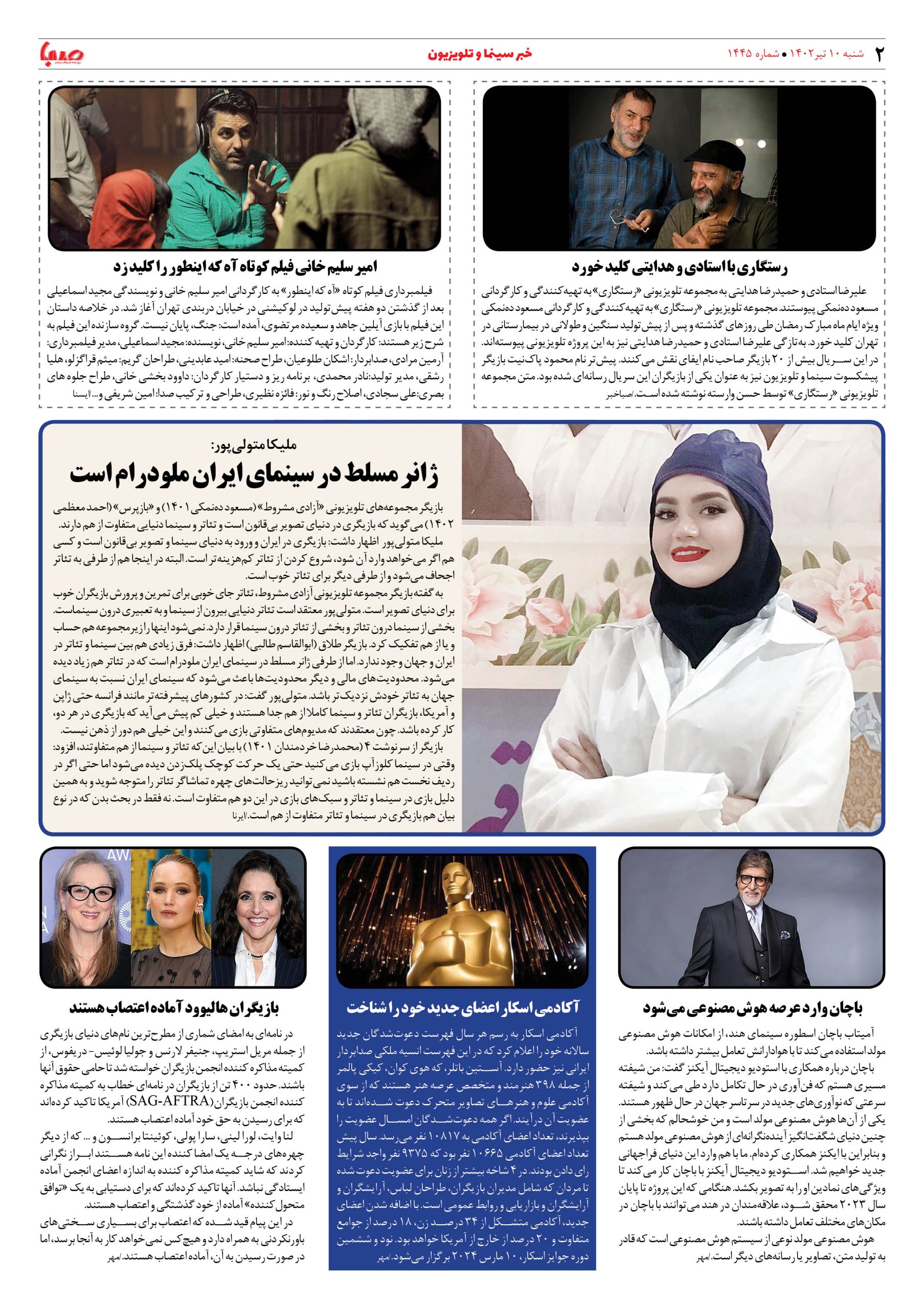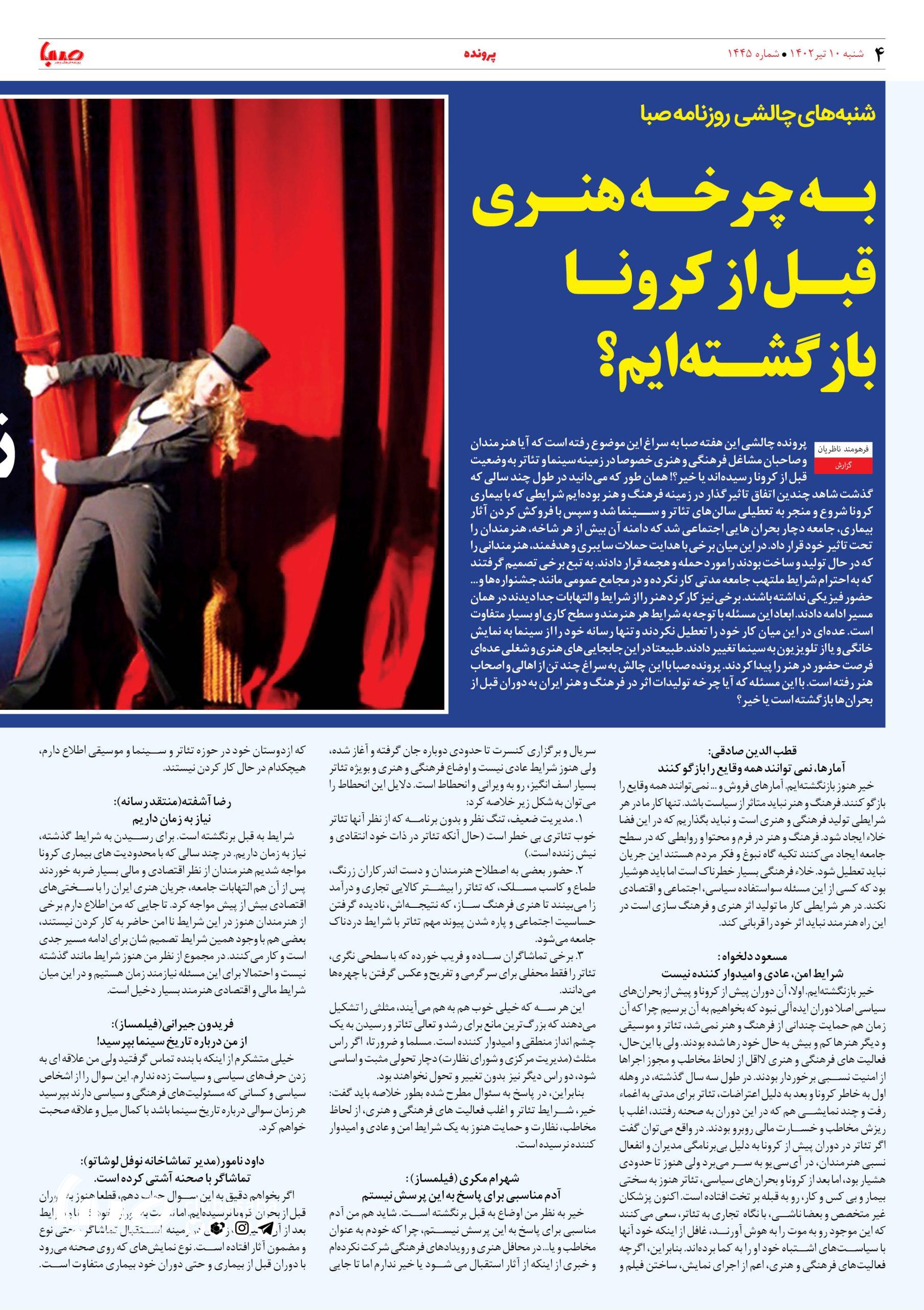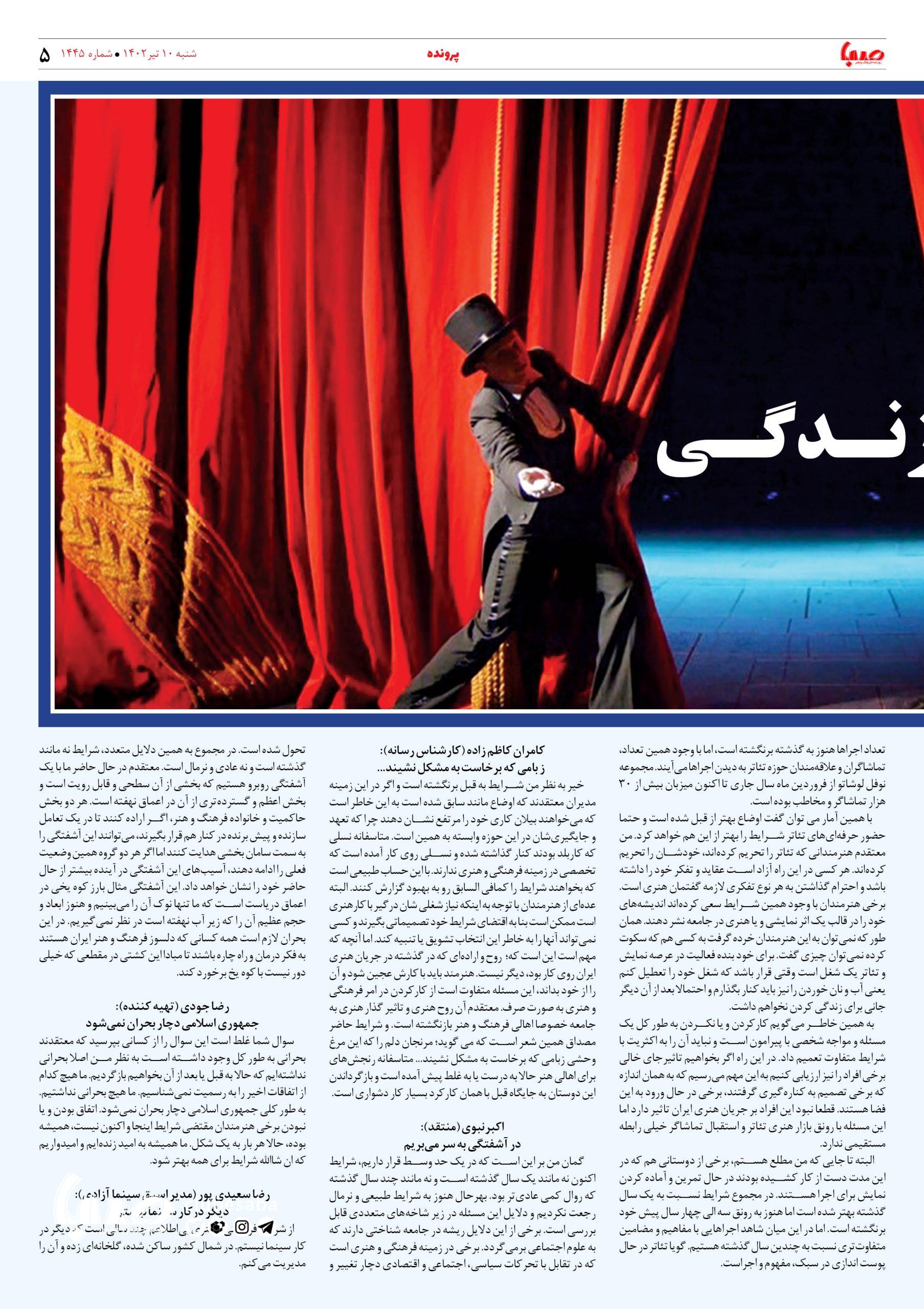 شماره ۱۴۴۵| روزنامه صبا شنبه ۱۰تیر