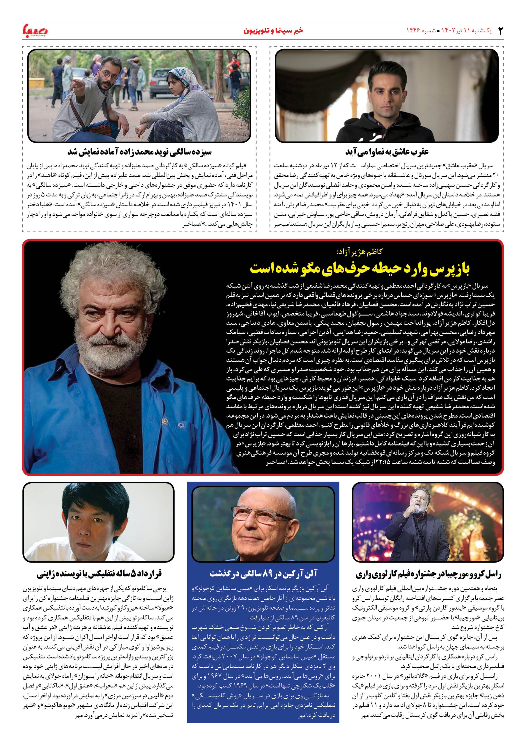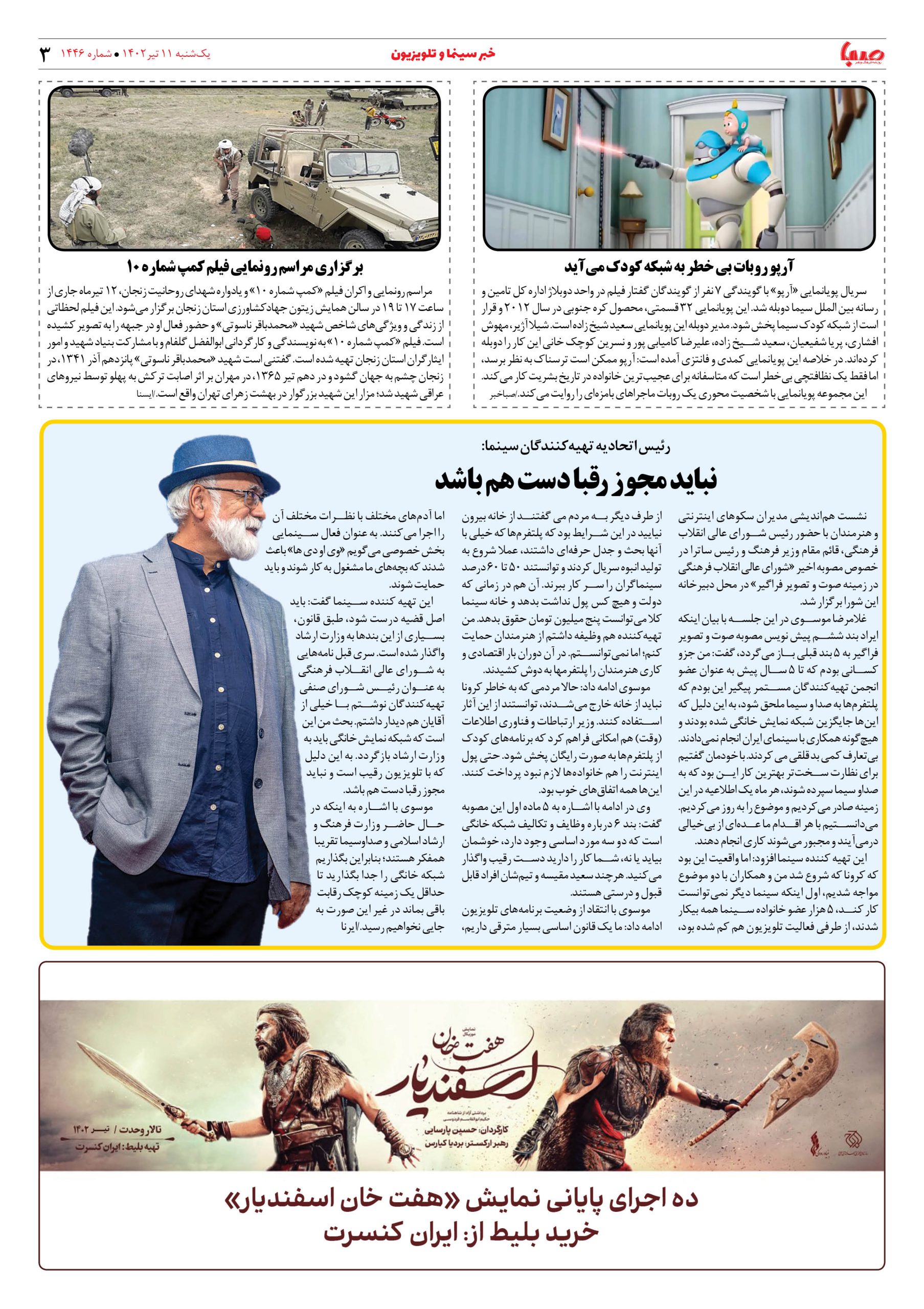 شماره ۱۴۴۶| روزنامه صبا یکشنبه ۱۱تیر
