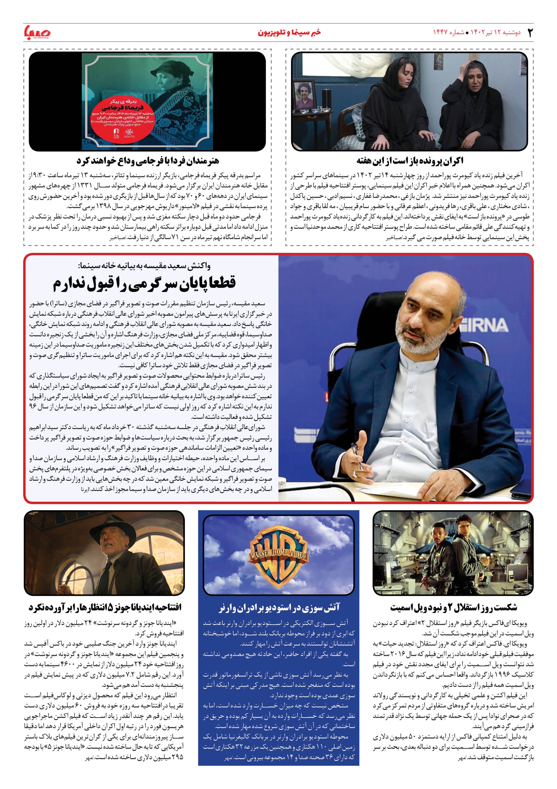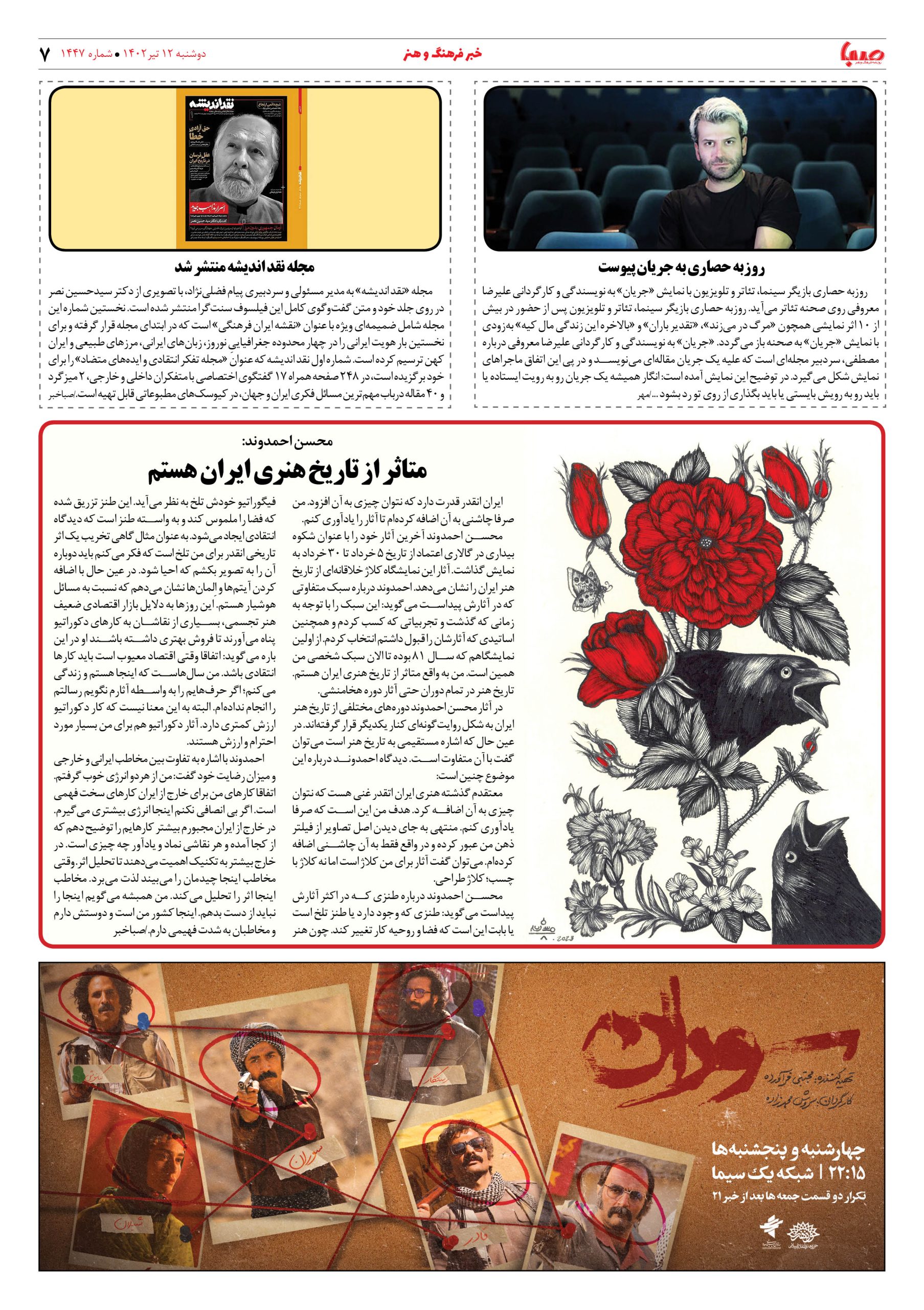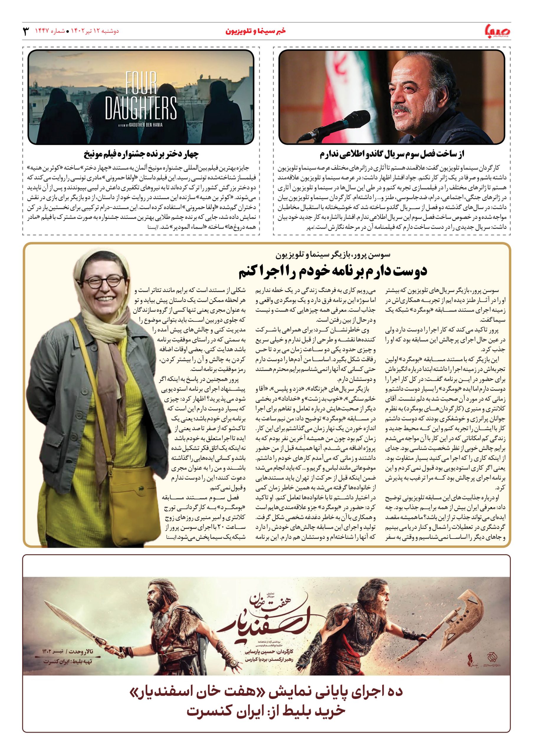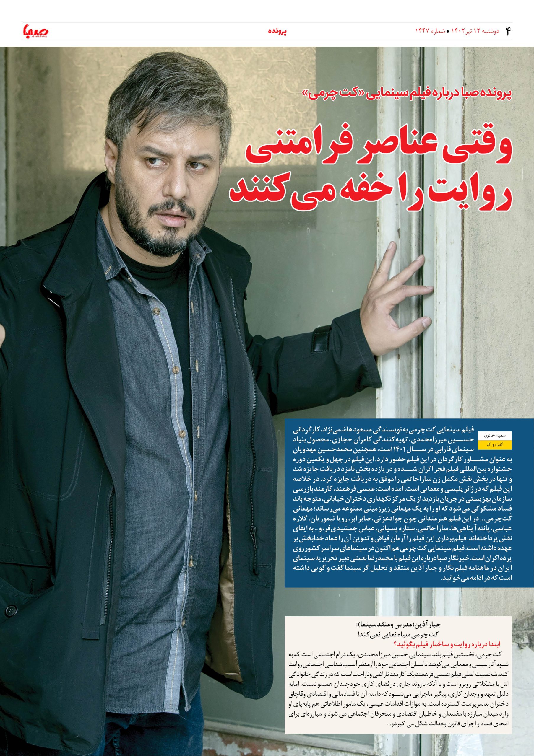 شماره ۱۴۴۷| روزنامه صبا دوشنبه ۱۲تیر