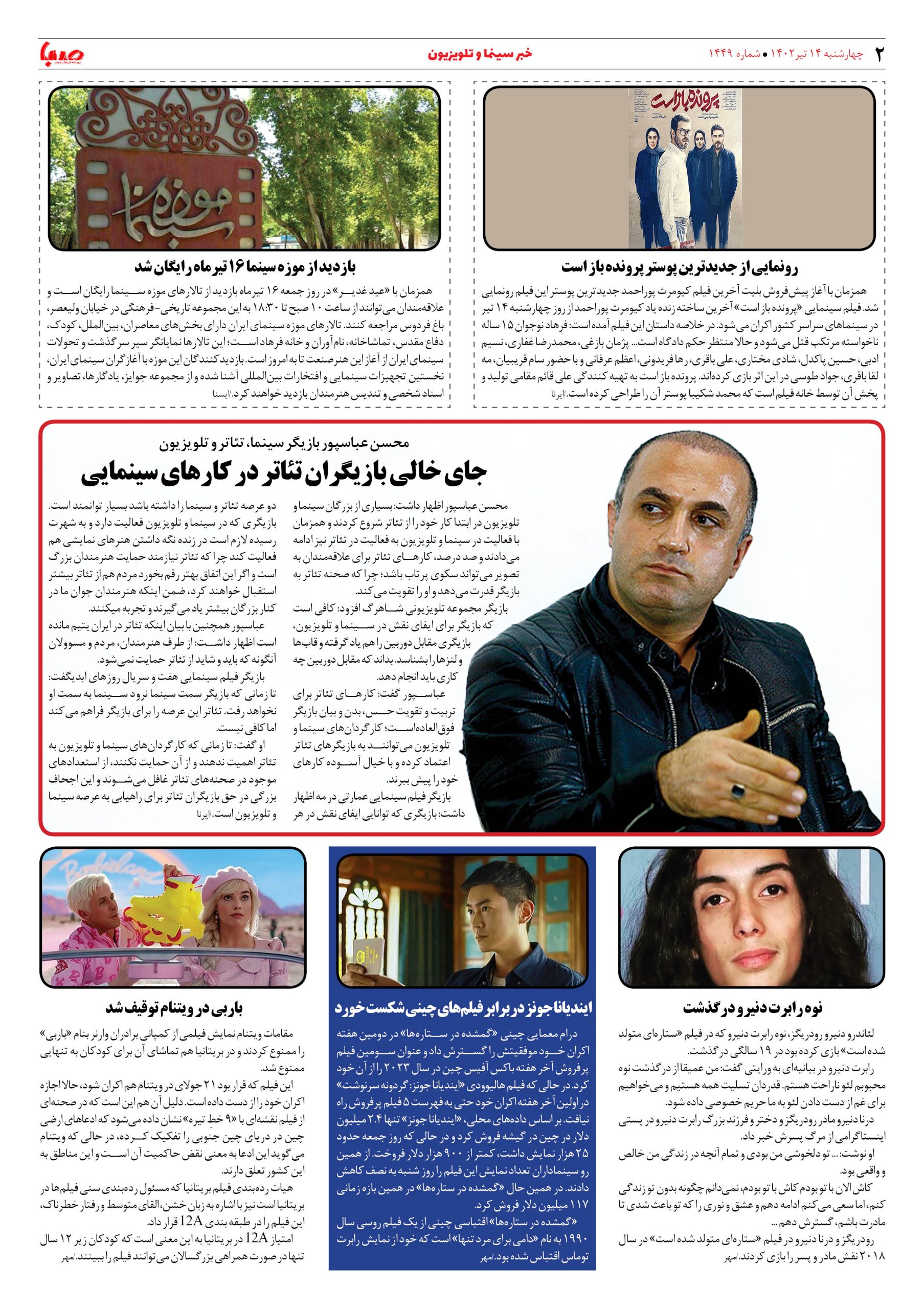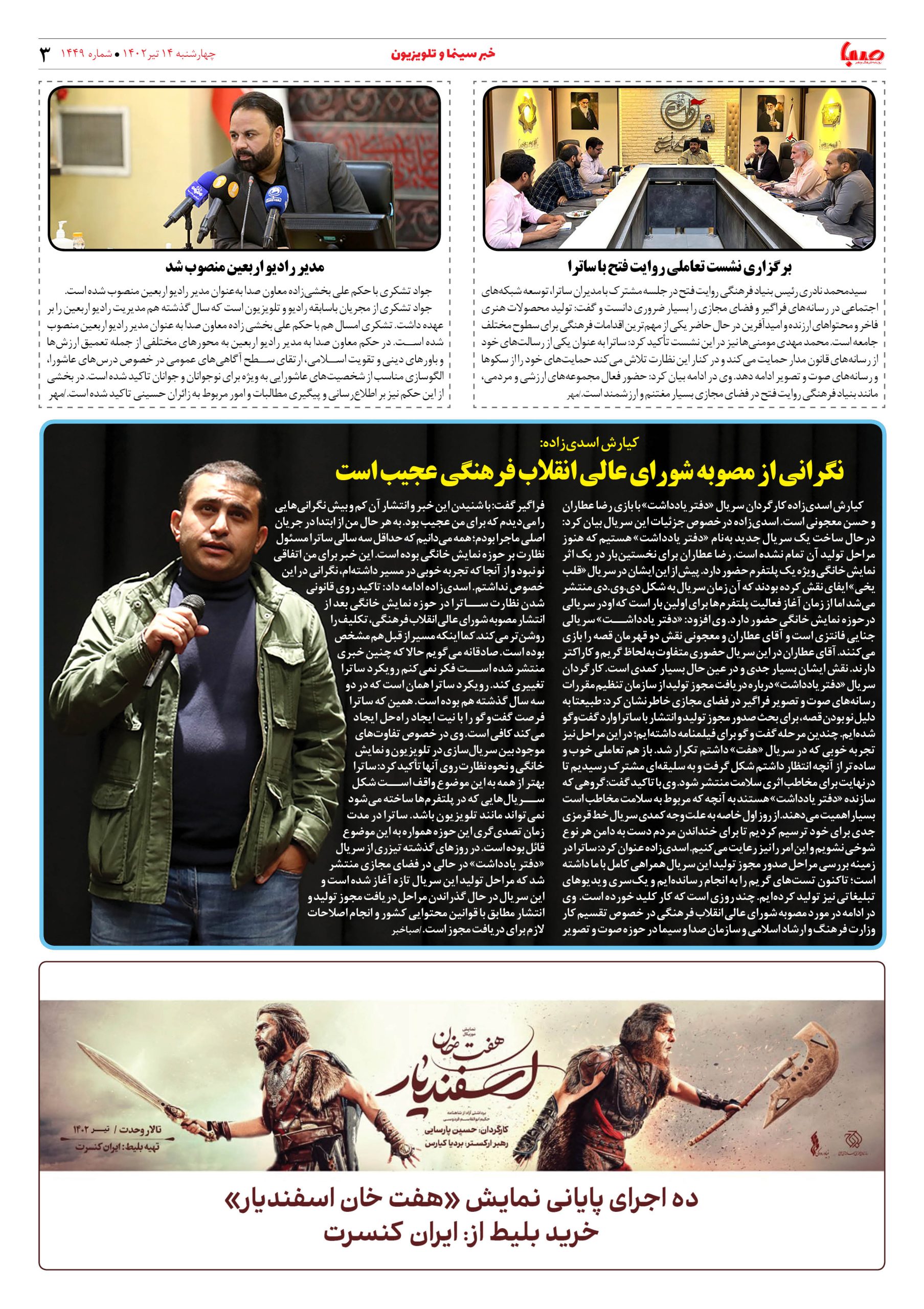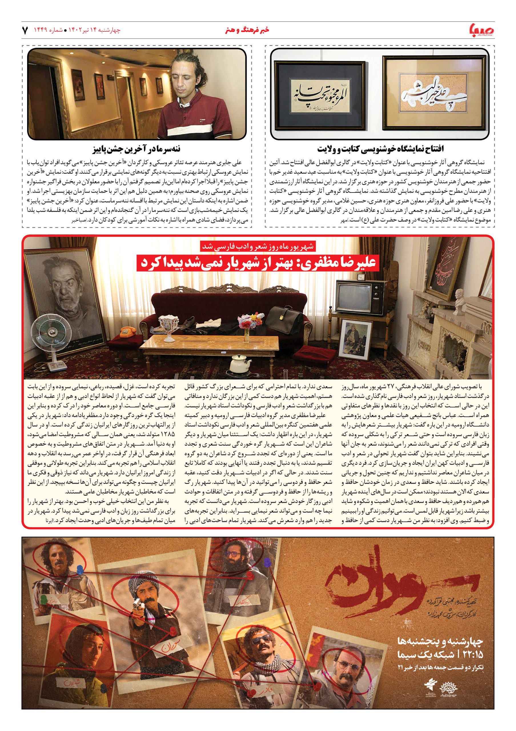 شماره ۱۴۴۹| روزنامه صبا چهارشنبه ۱۴تیر