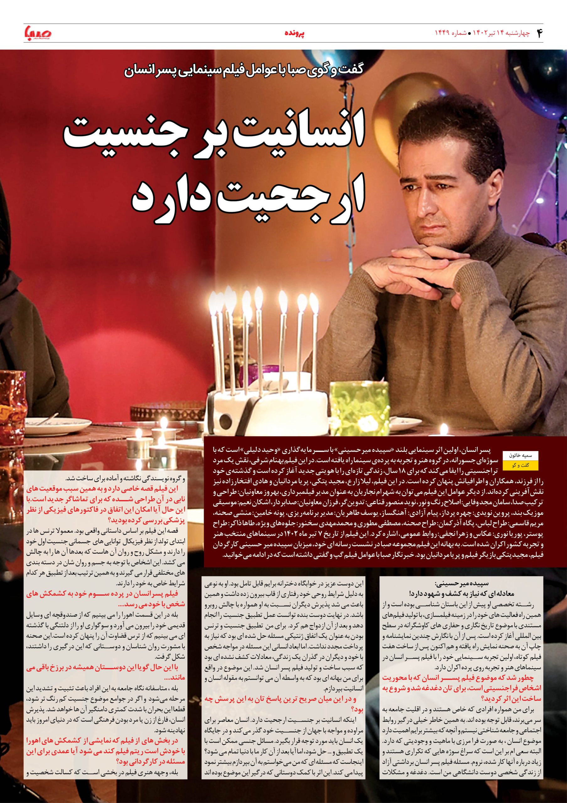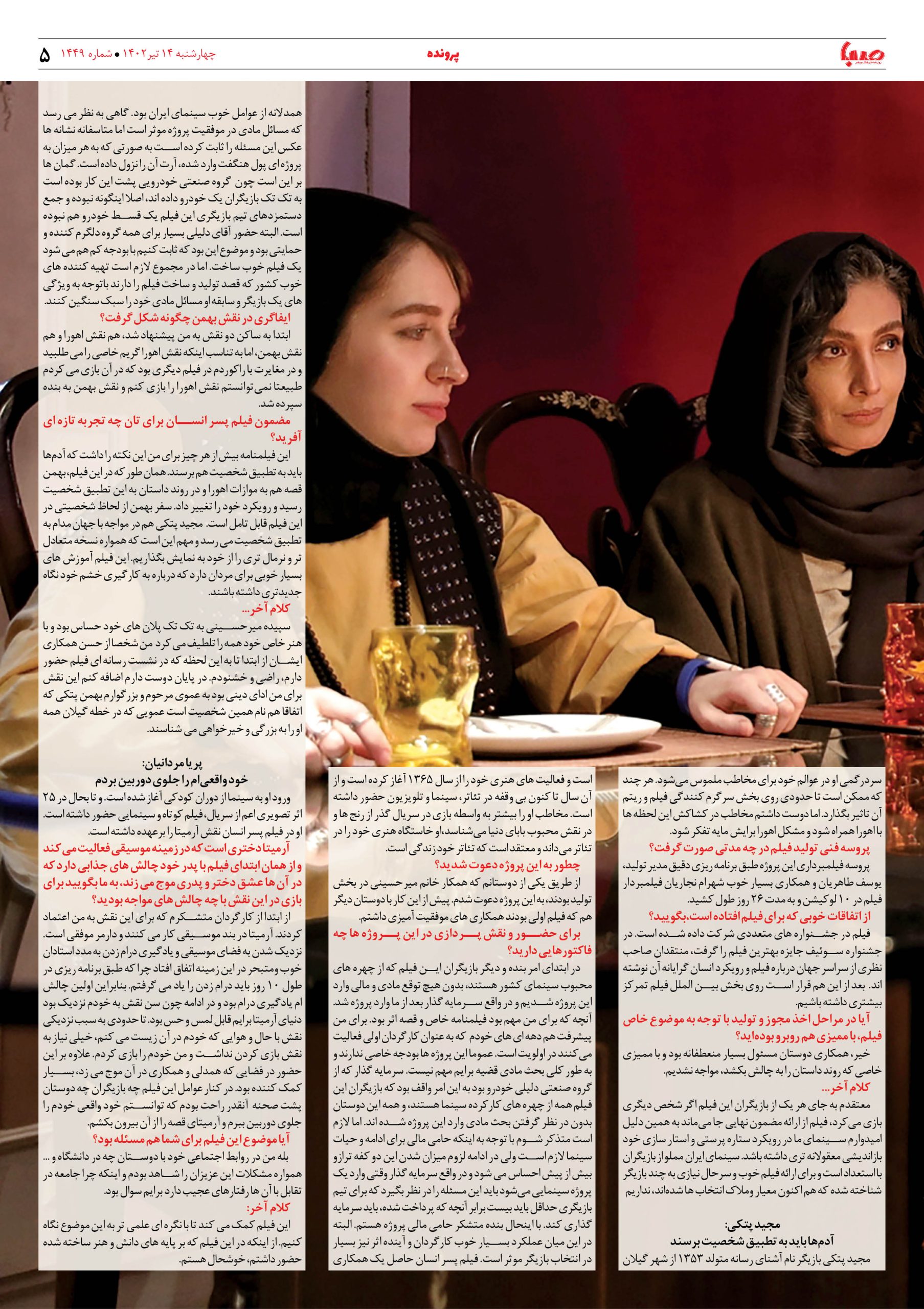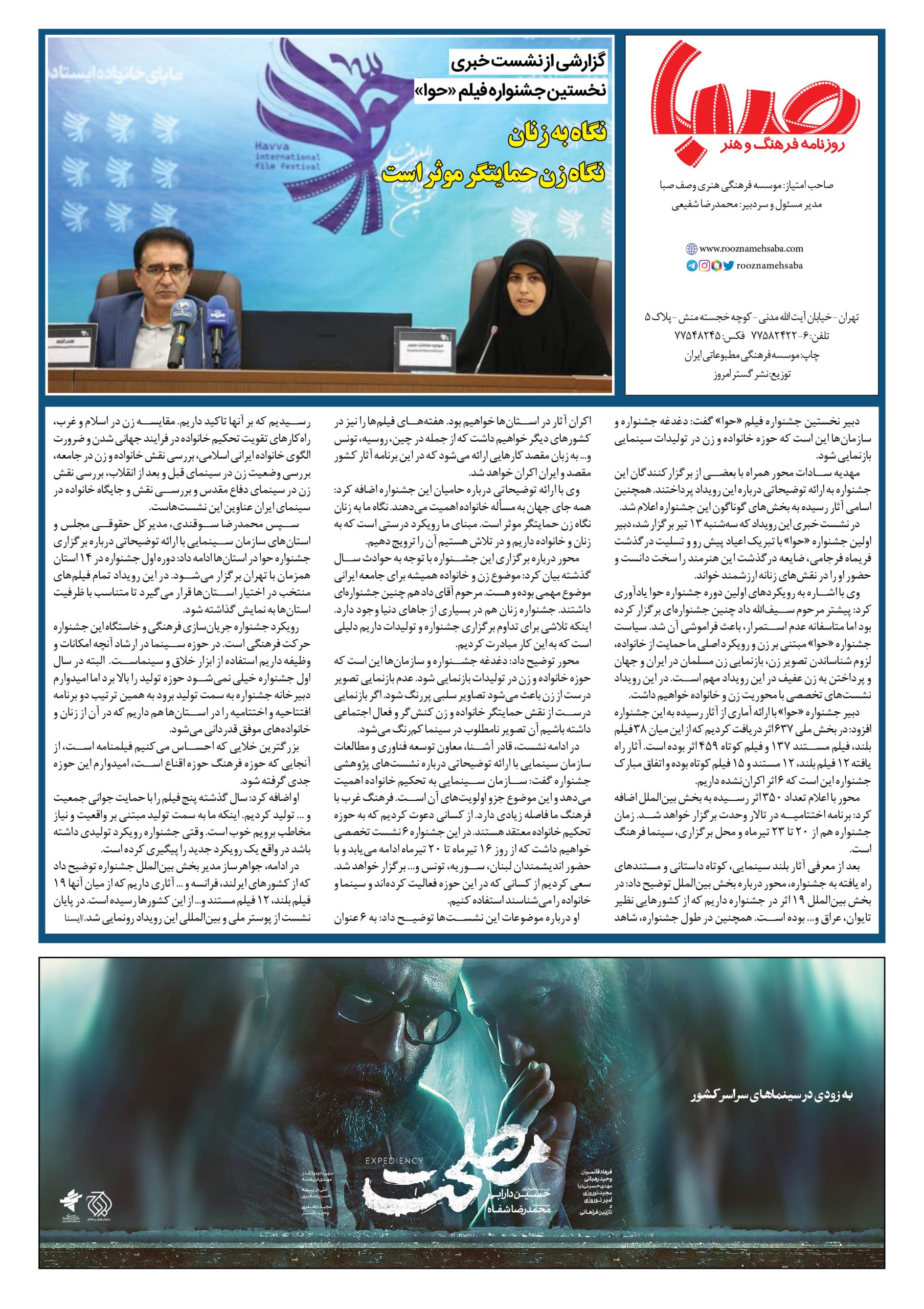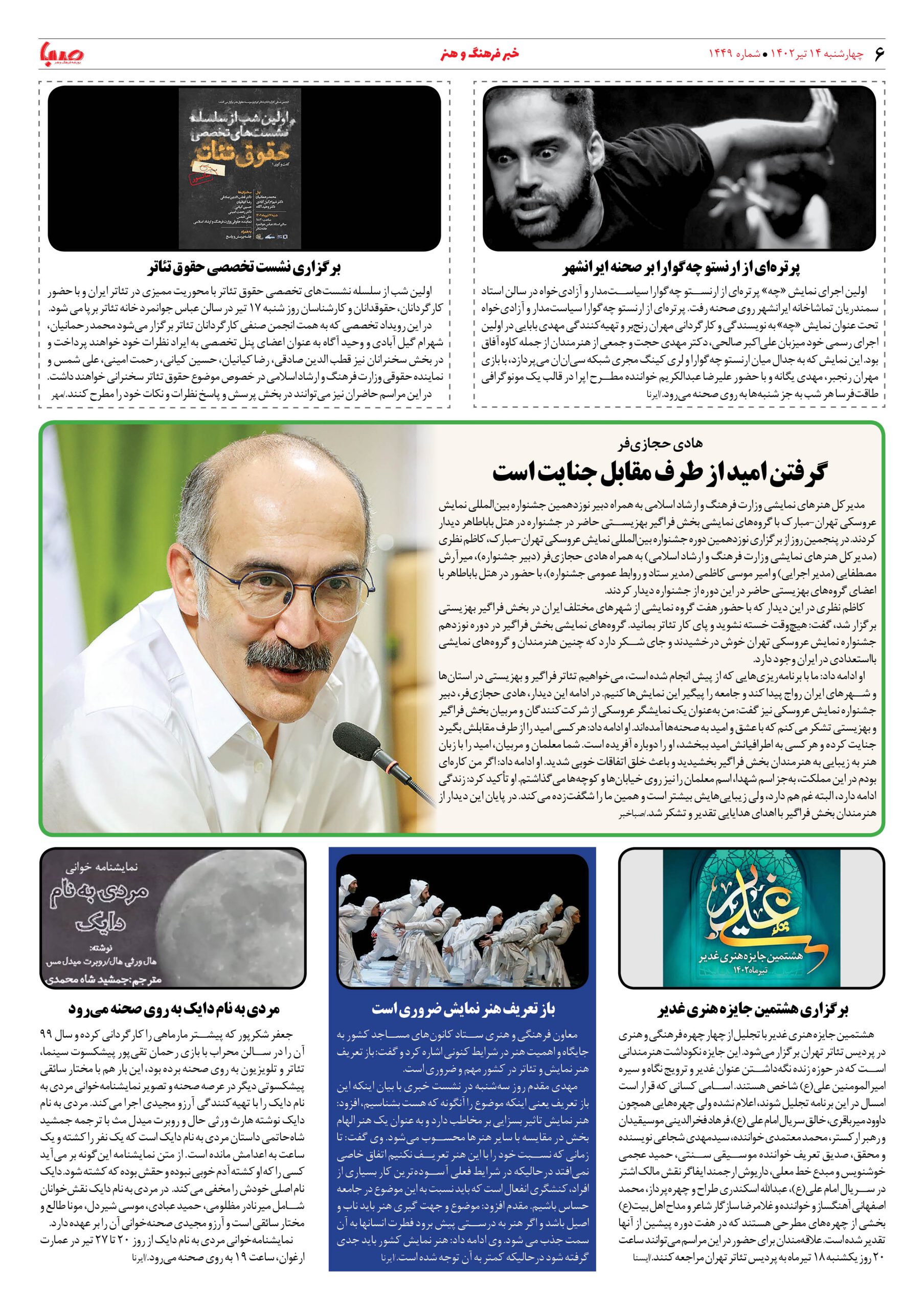 شماره ۱۴۴۹| روزنامه صبا چهارشنبه ۱۴تیر