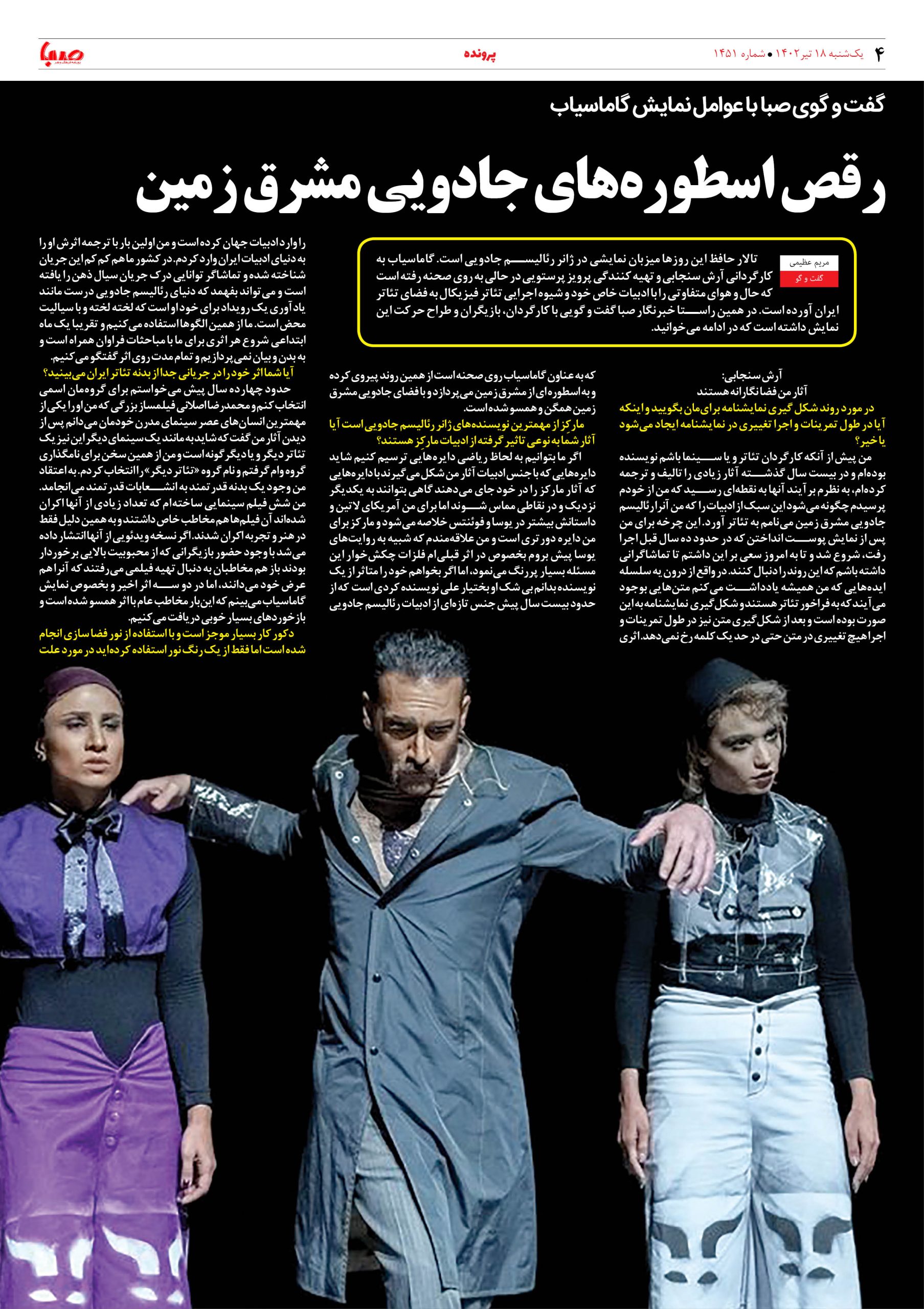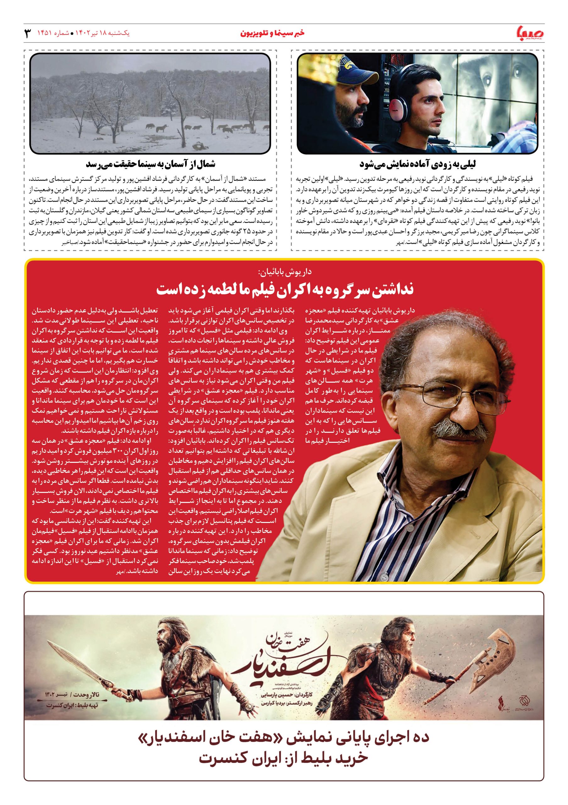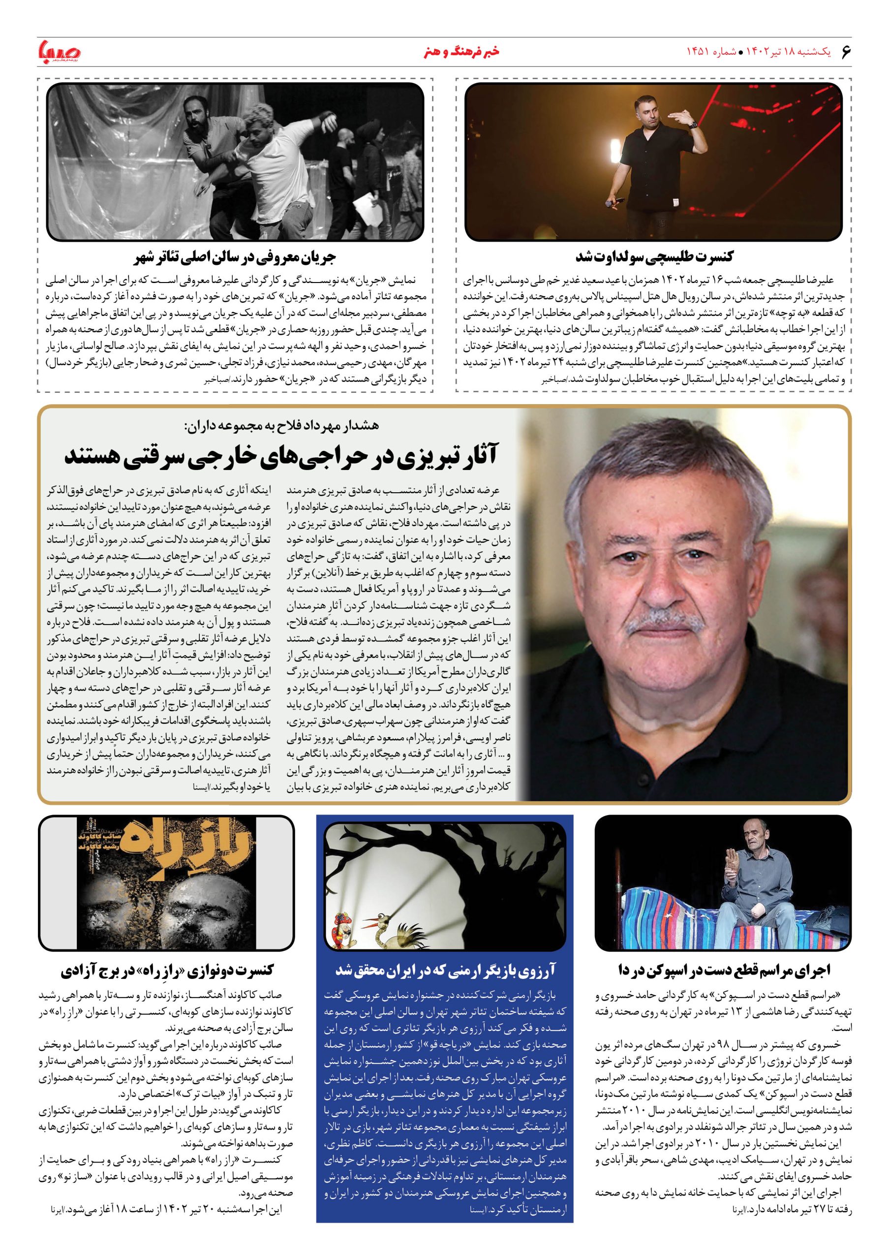 شماره ۱۴۵۱| روزنامه صبا یکشنبه ۱۸تیر