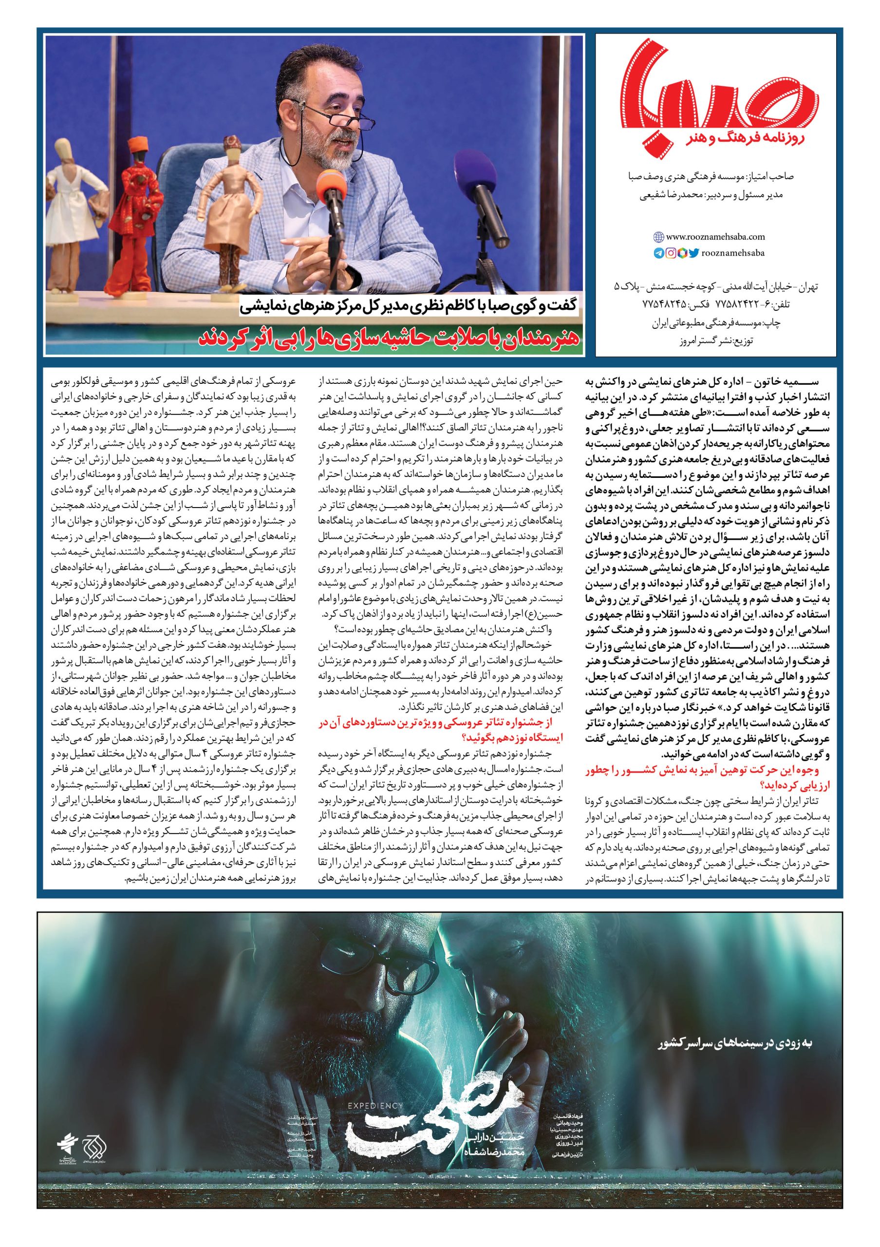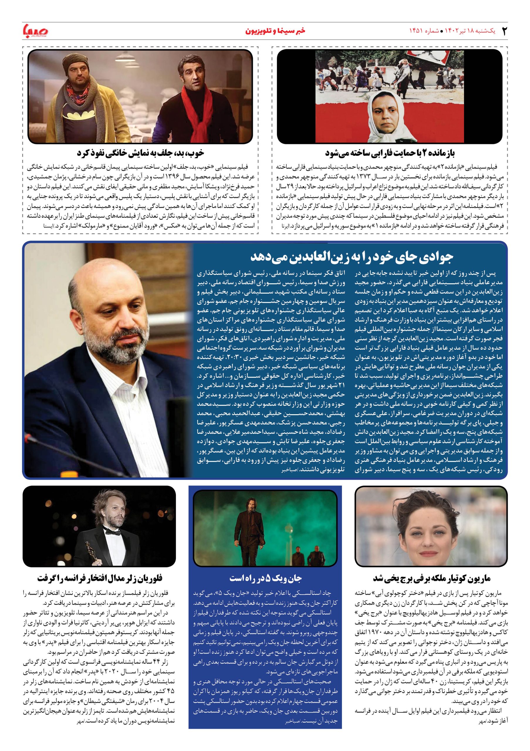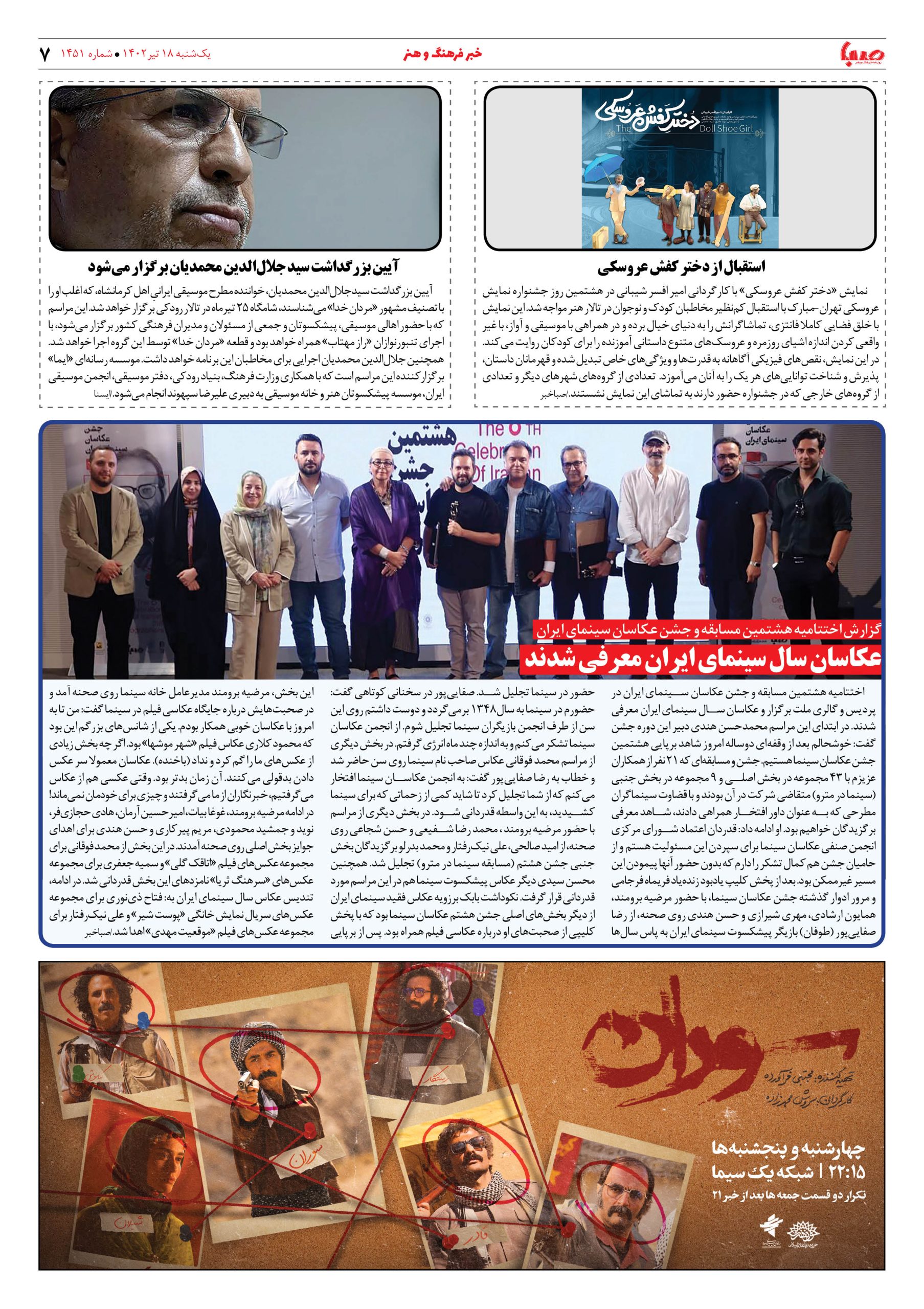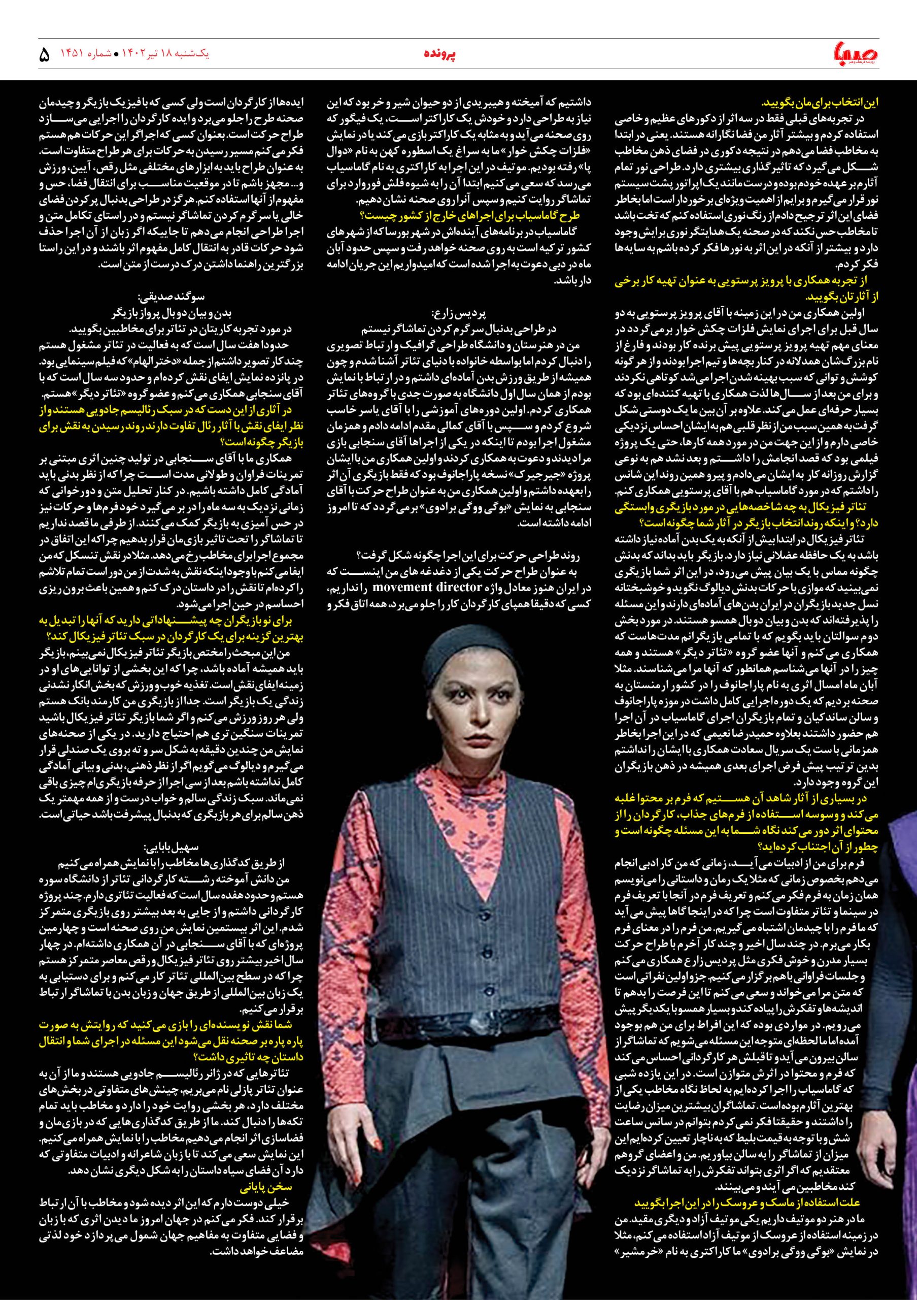 شماره ۱۴۵۱| روزنامه صبا یکشنبه ۱۸تیر