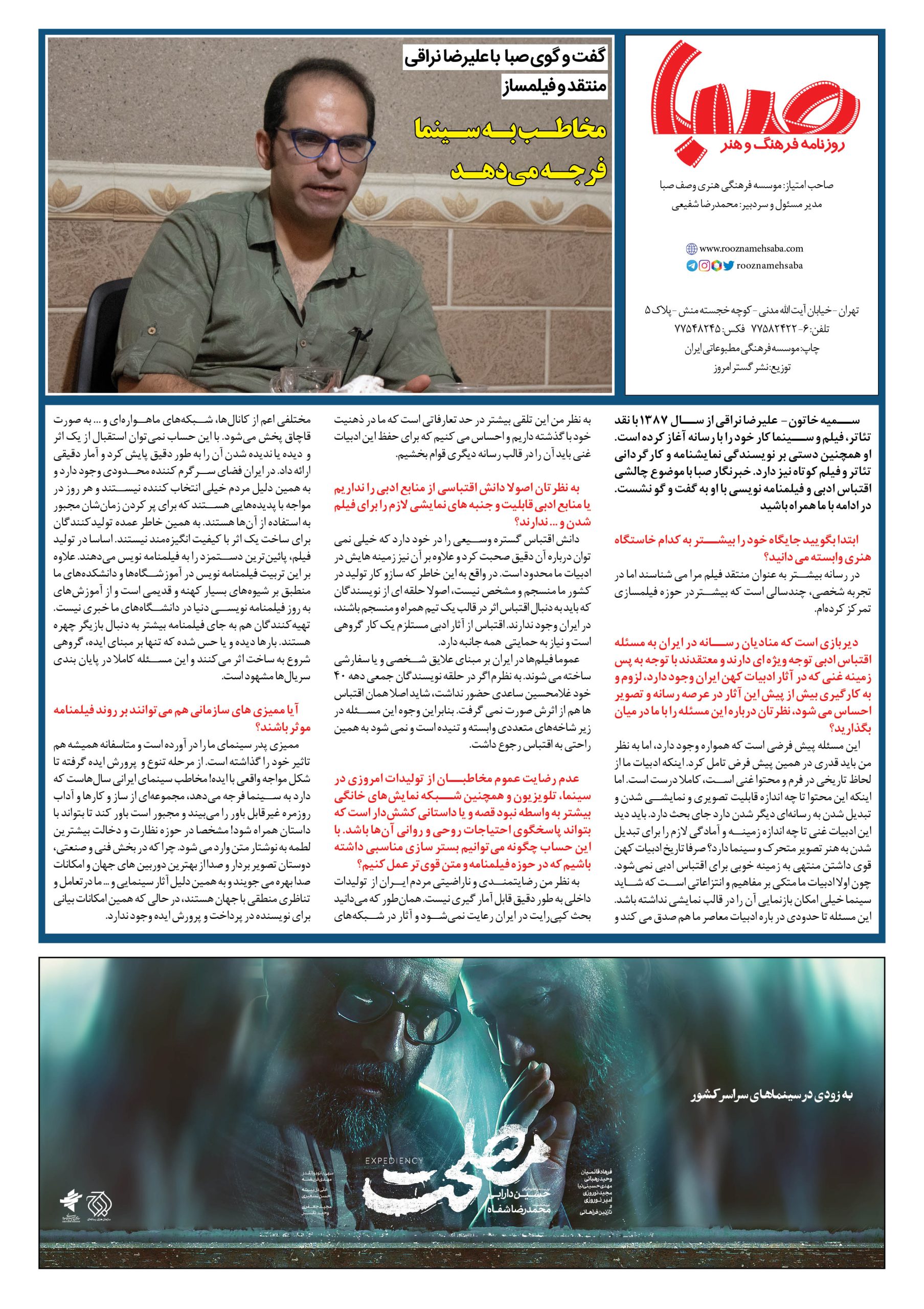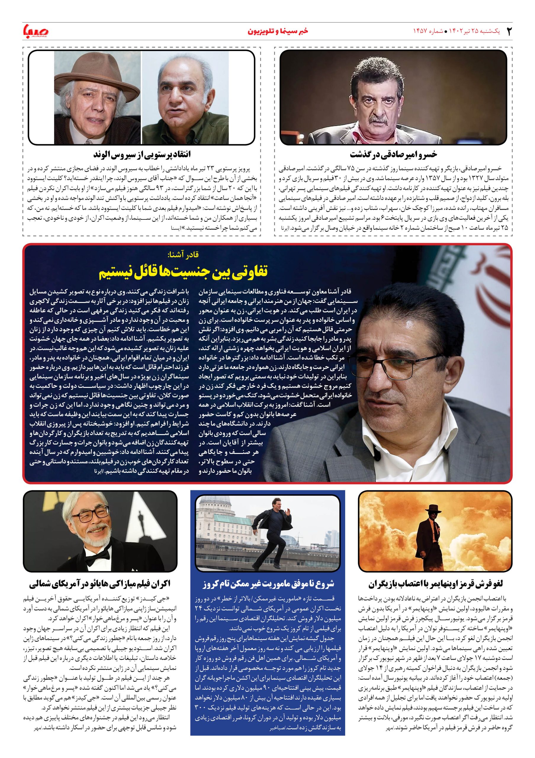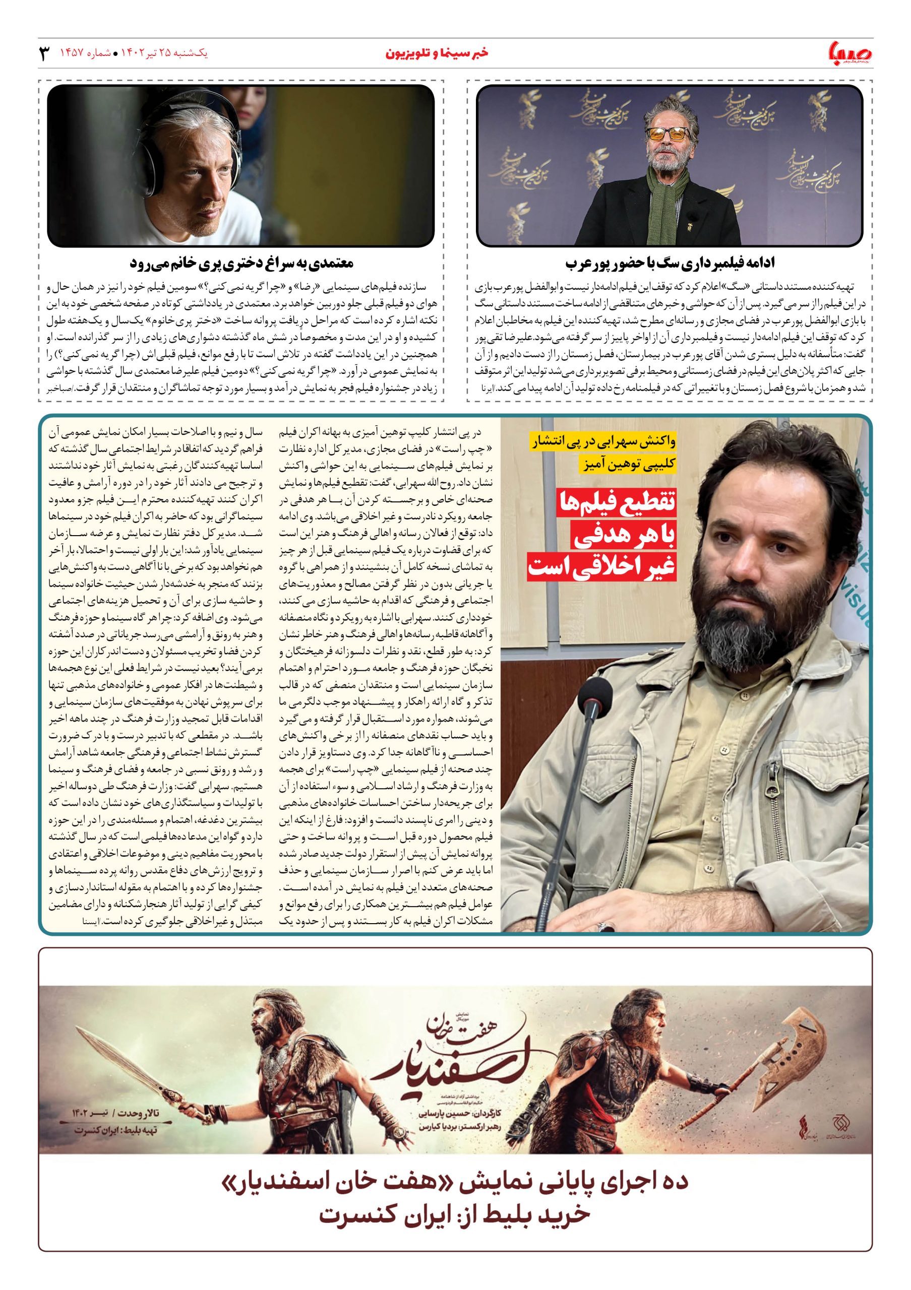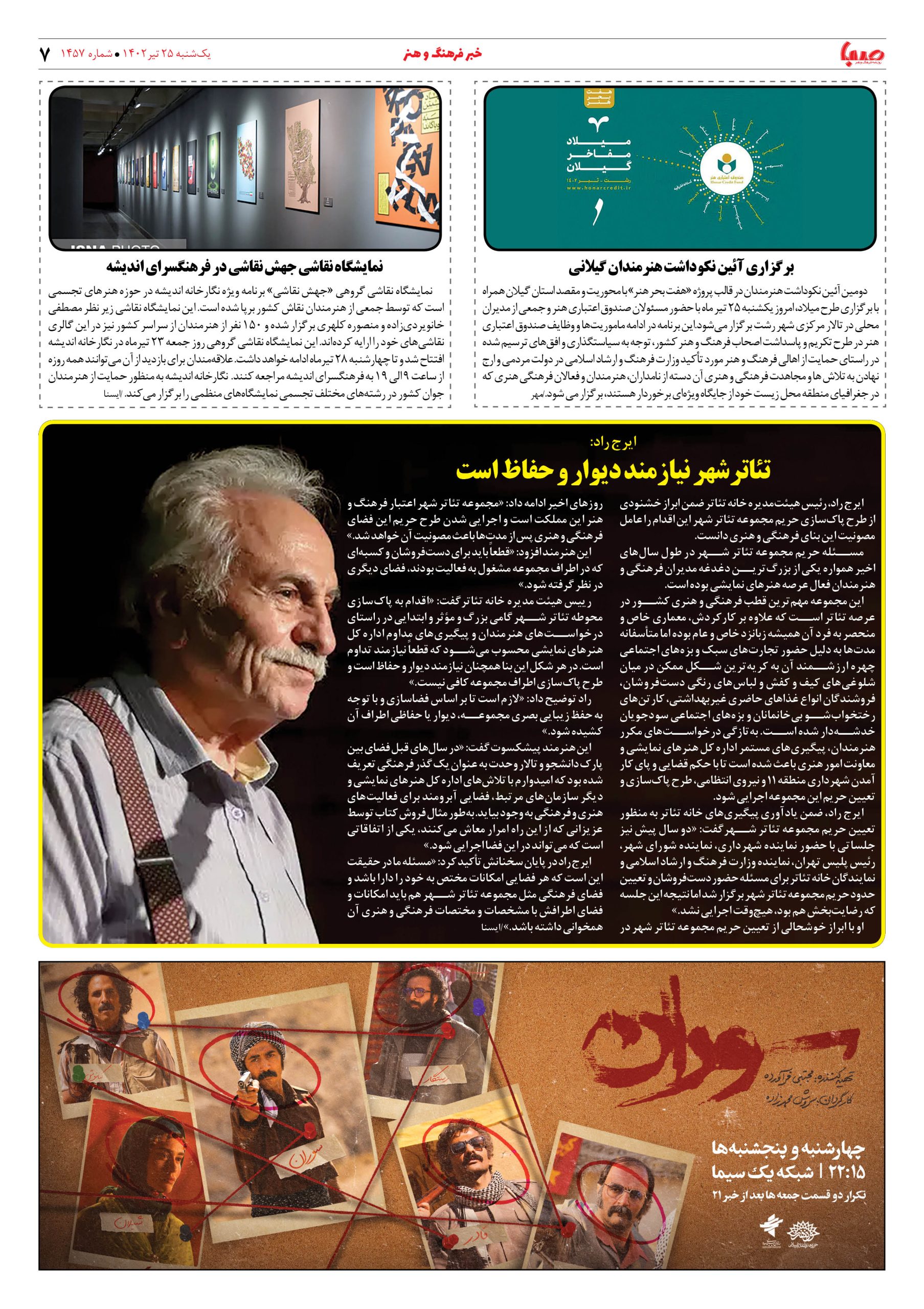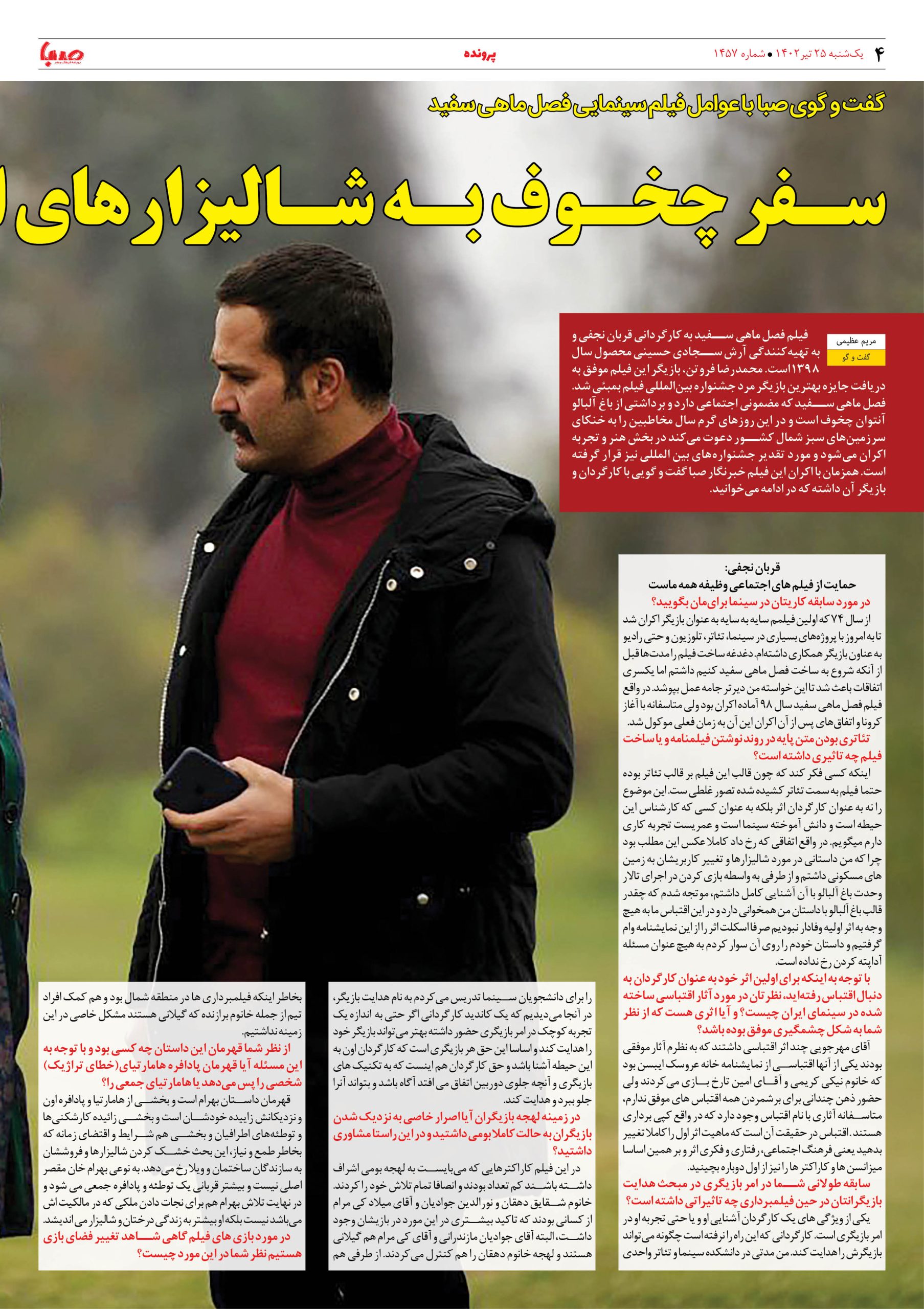 شماره ۱۴۵۷| روزنامه صبا یکشنبه۲۵تیر