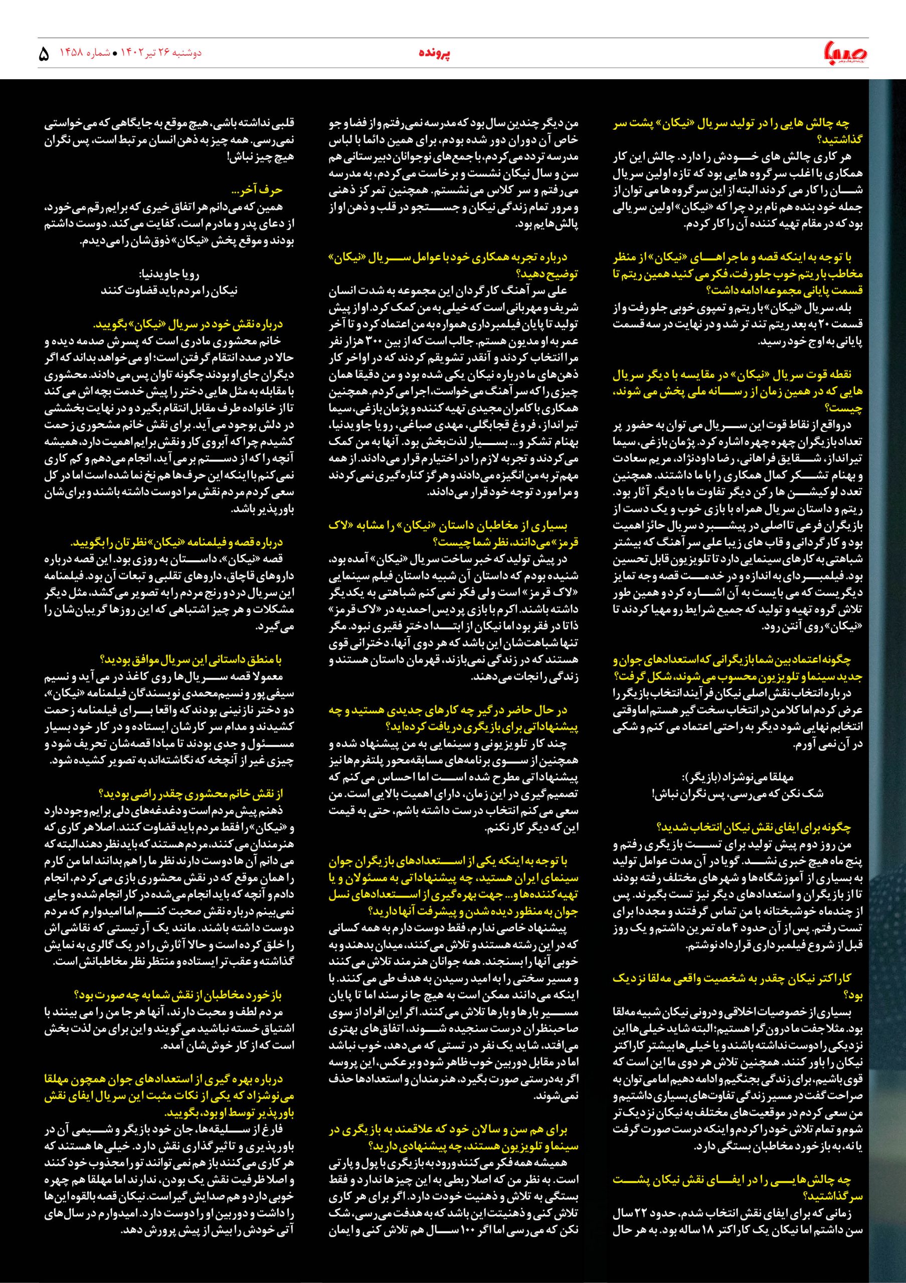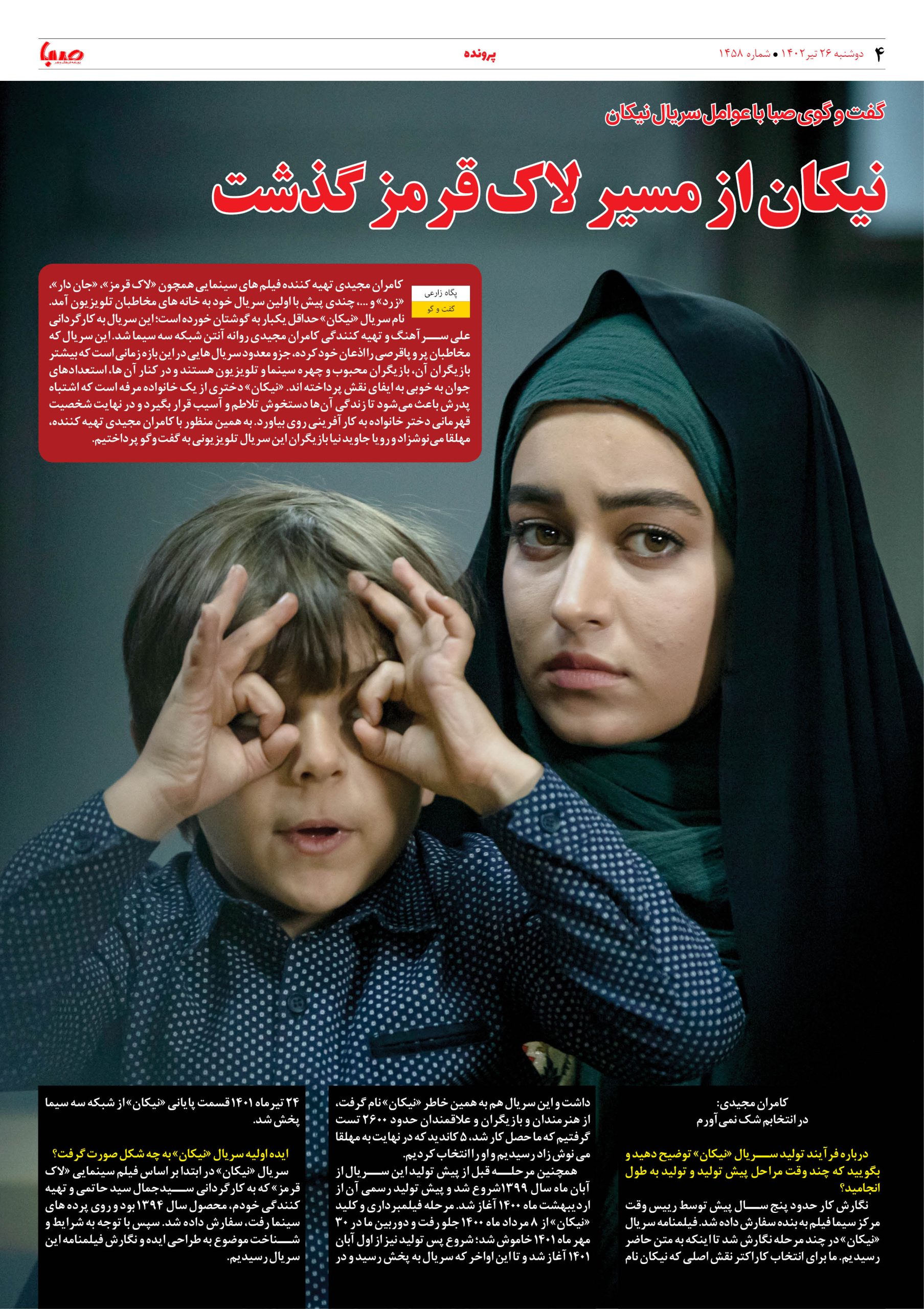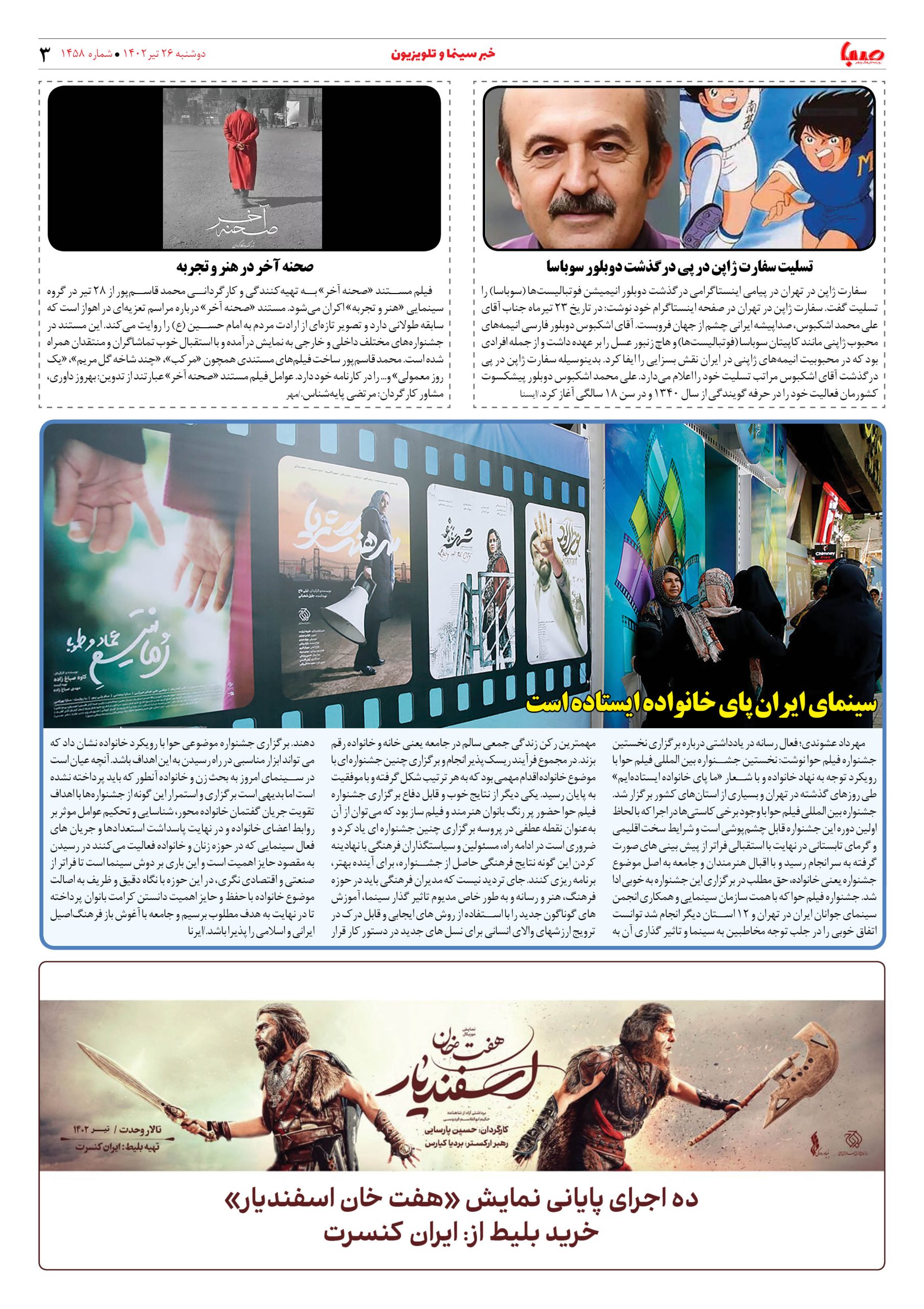 شماره۱۴۵۸| روزنامه صبا دوشنبه۲۶تیر