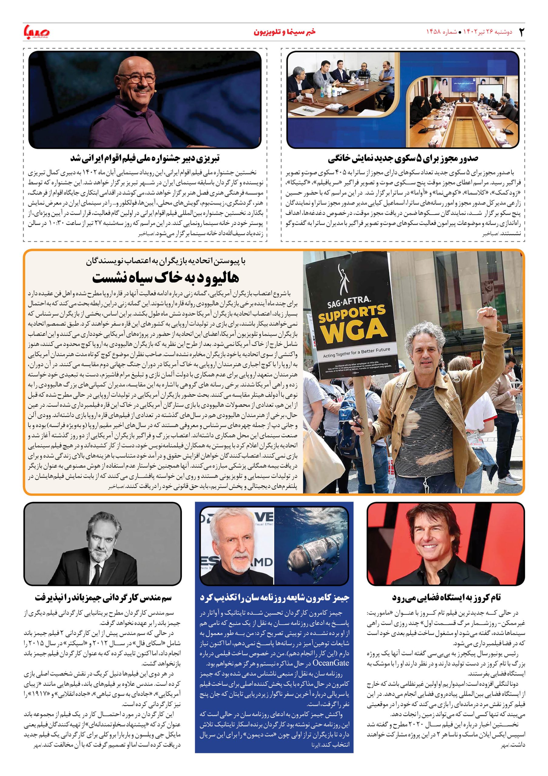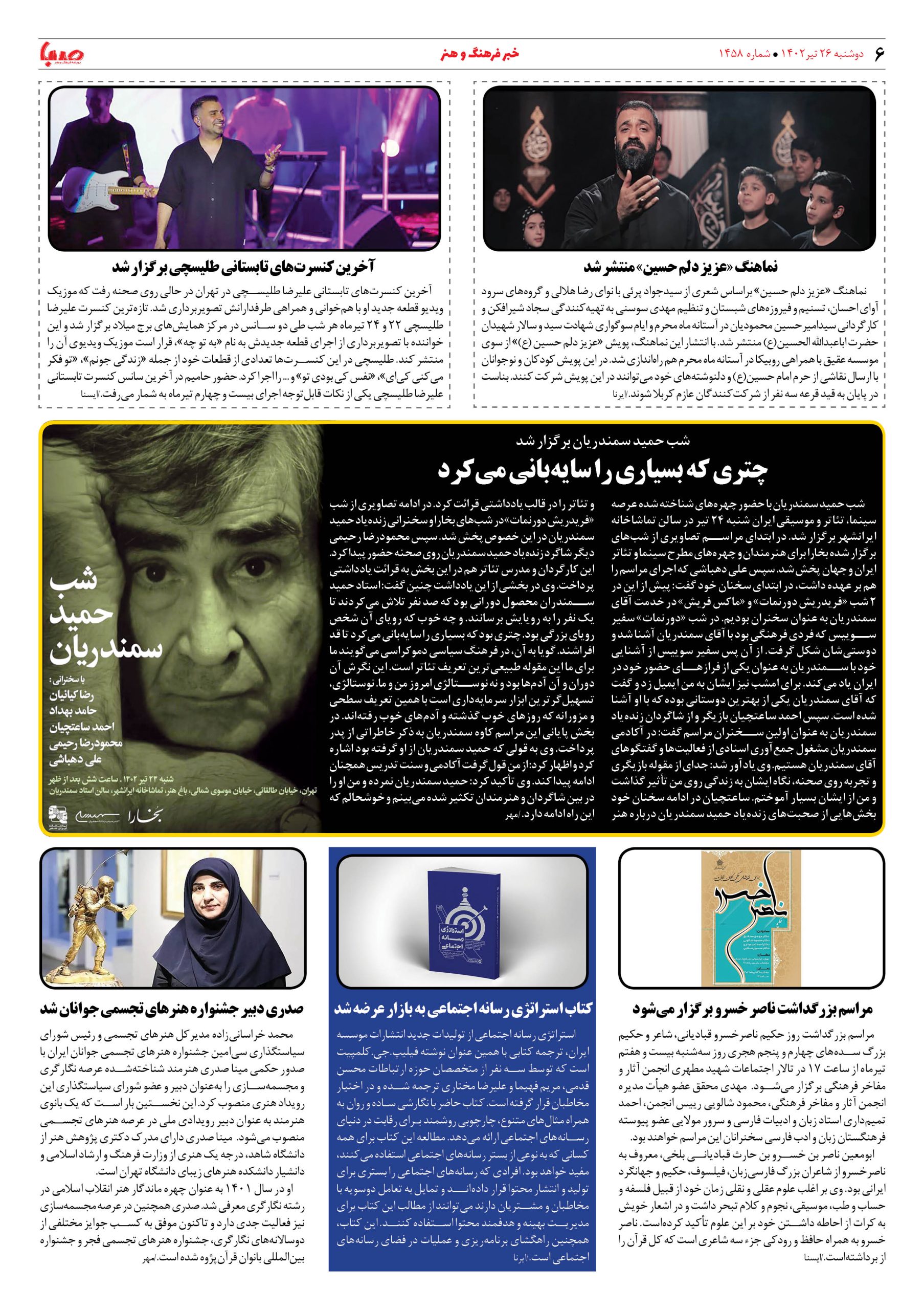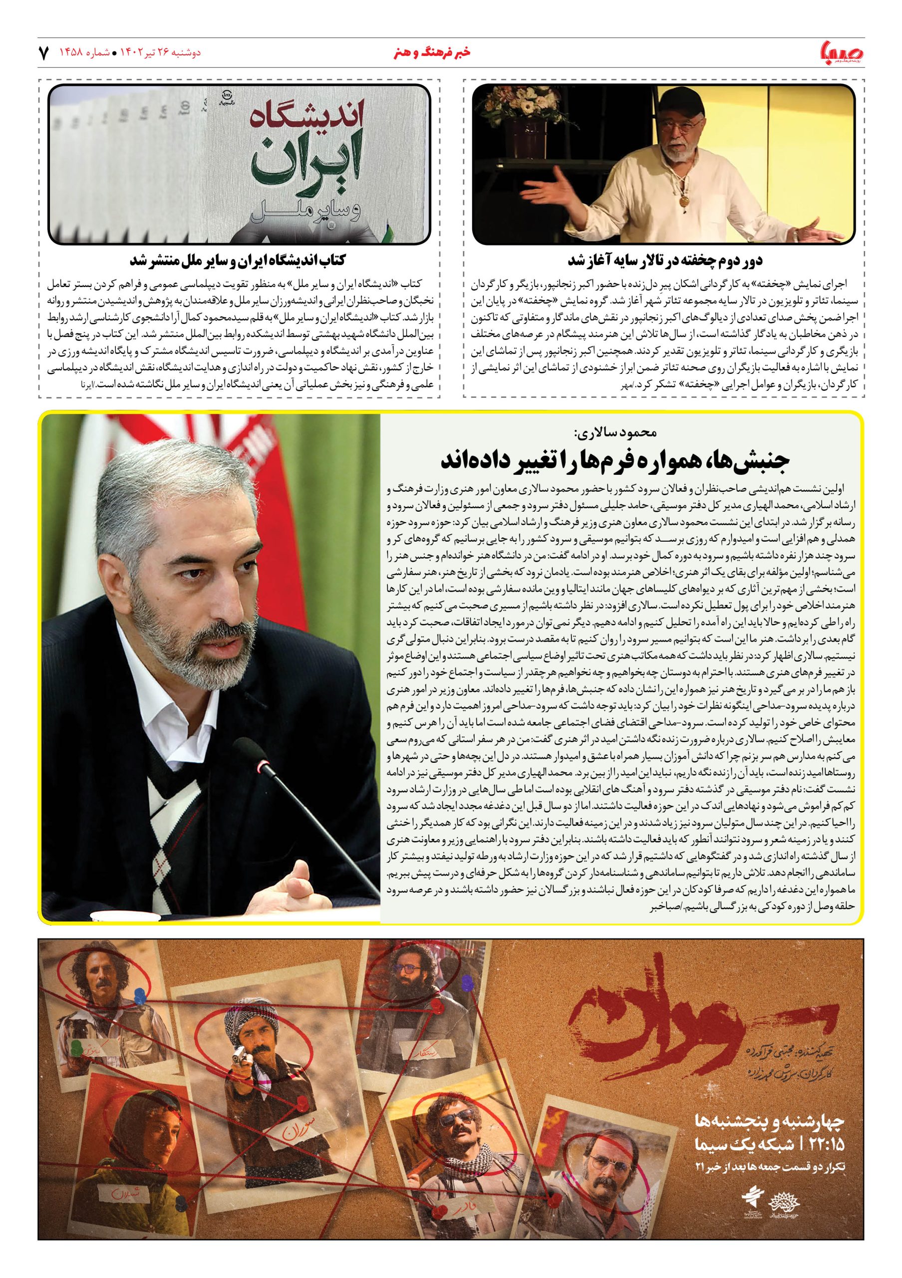 شماره۱۴۵۸| روزنامه صبا دوشنبه۲۶تیر