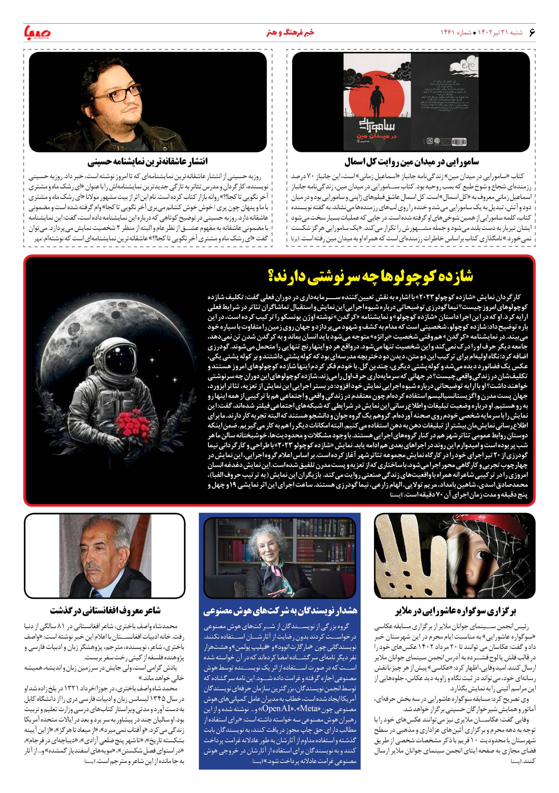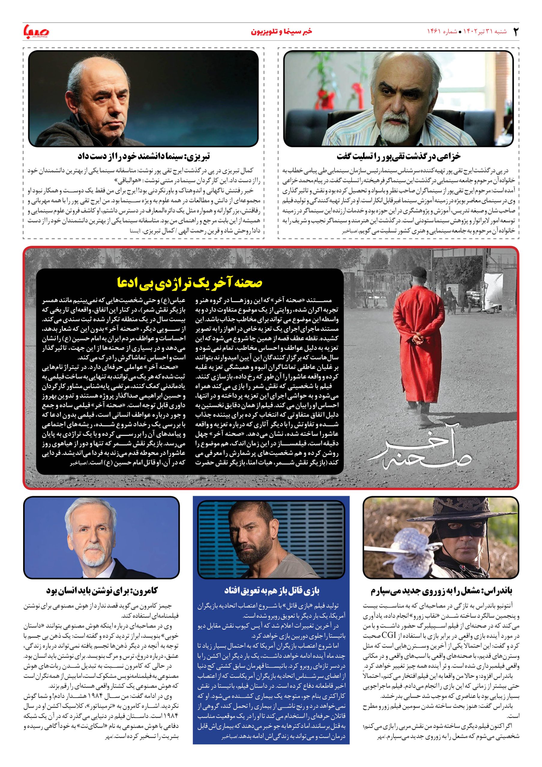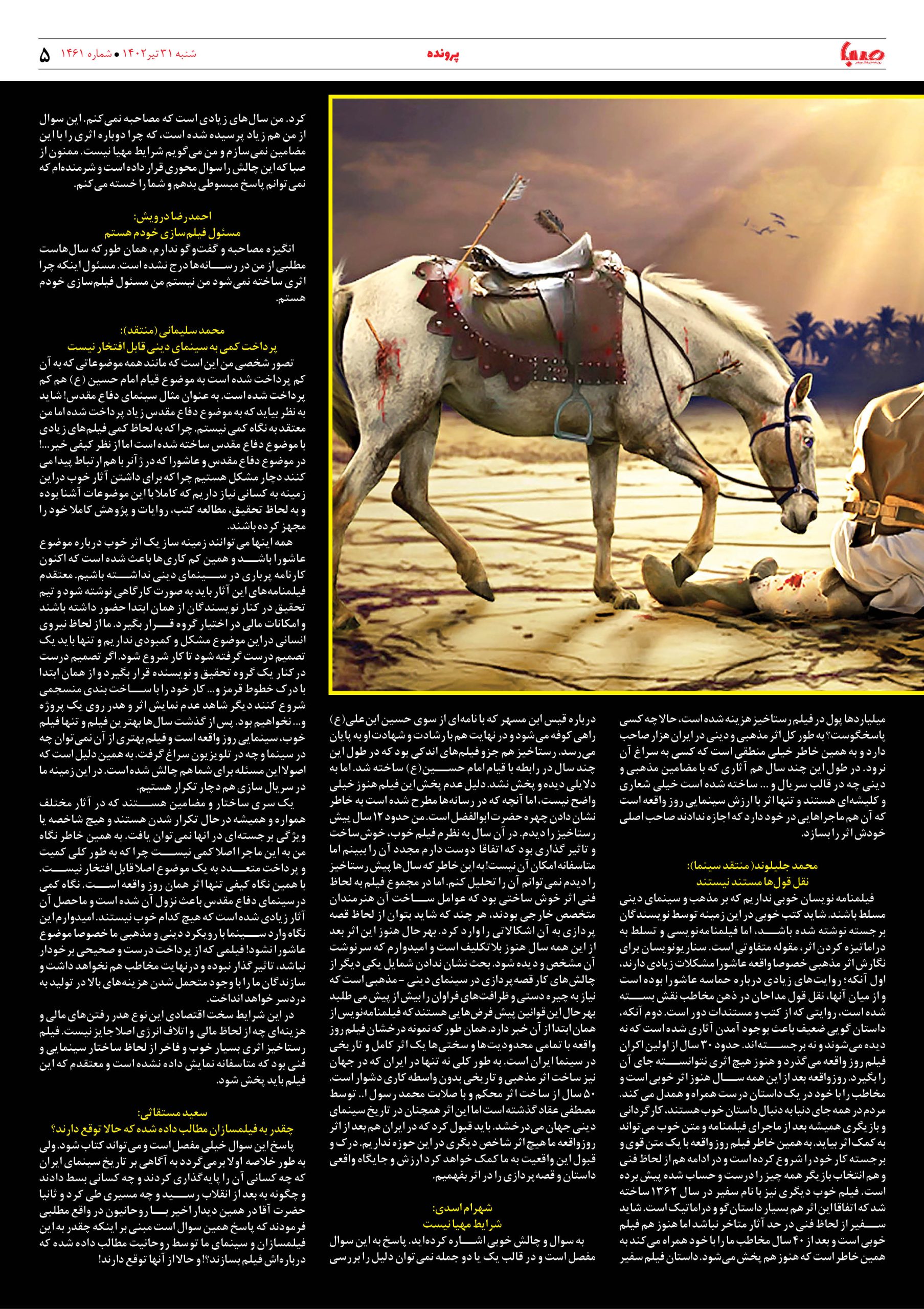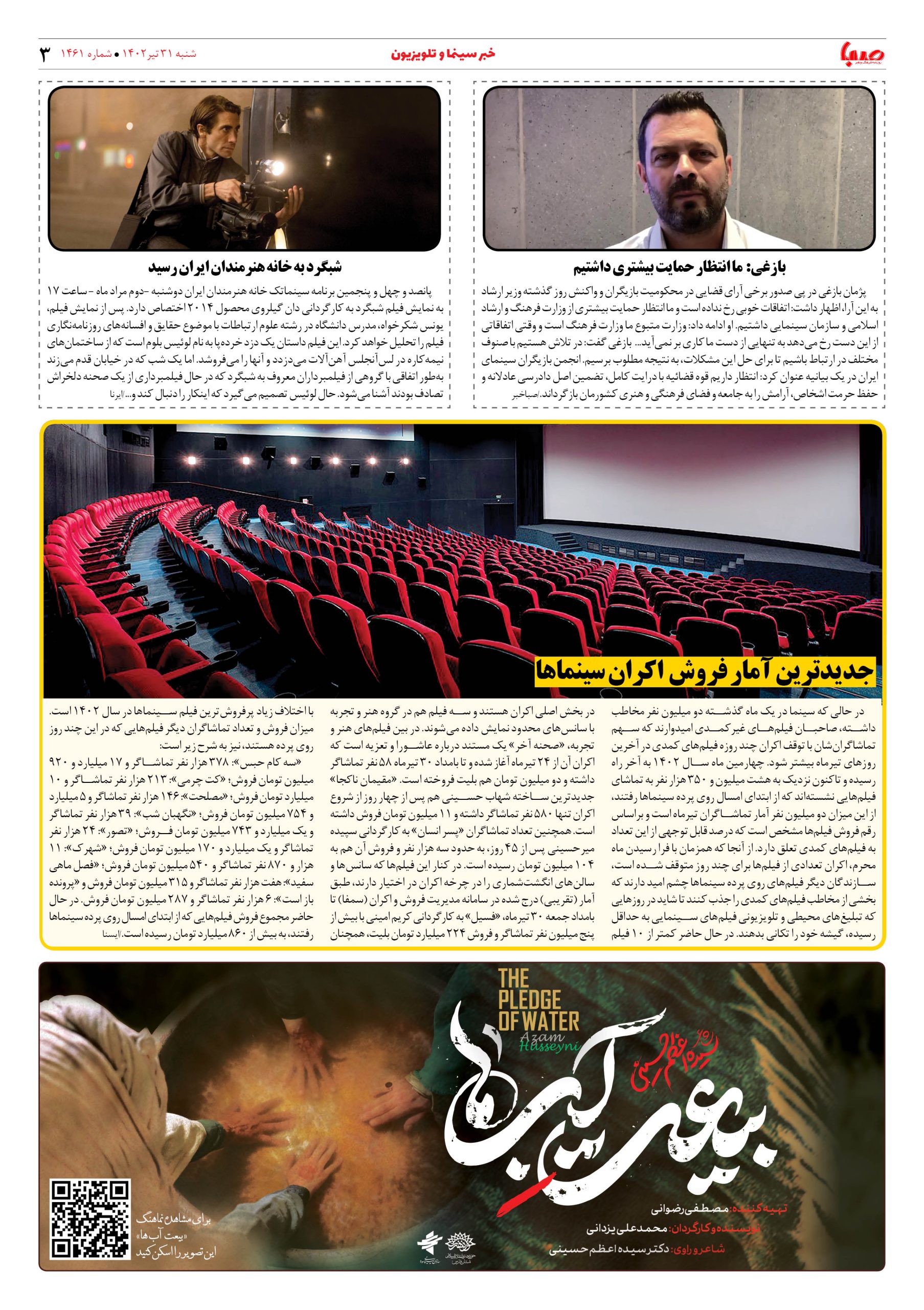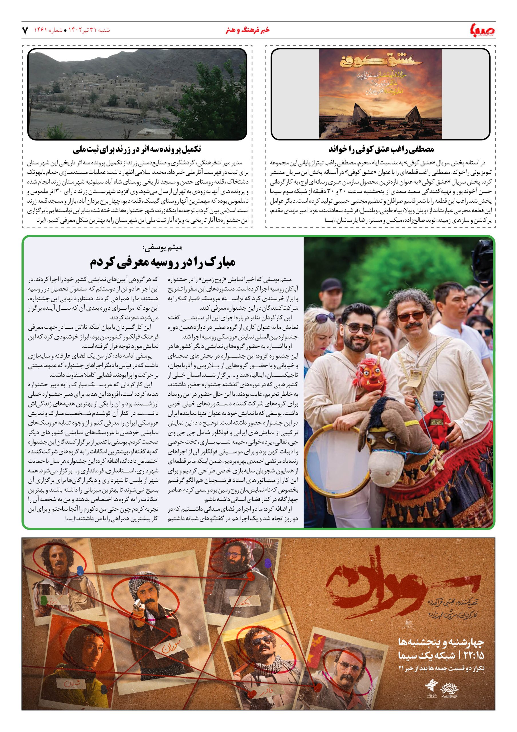 شماره۱۴۶۱| روزنامه صبا شنبه۳۱تیر
