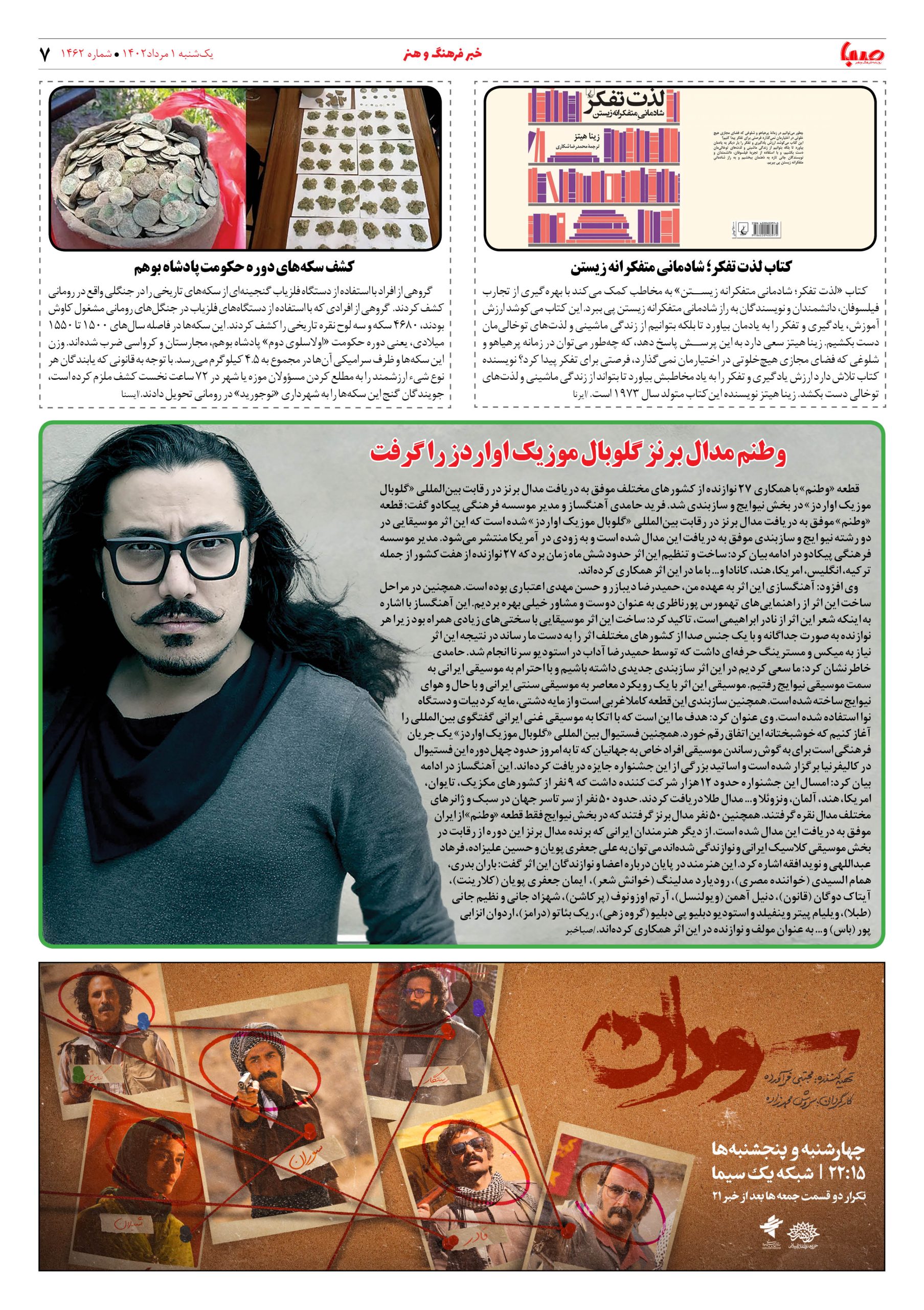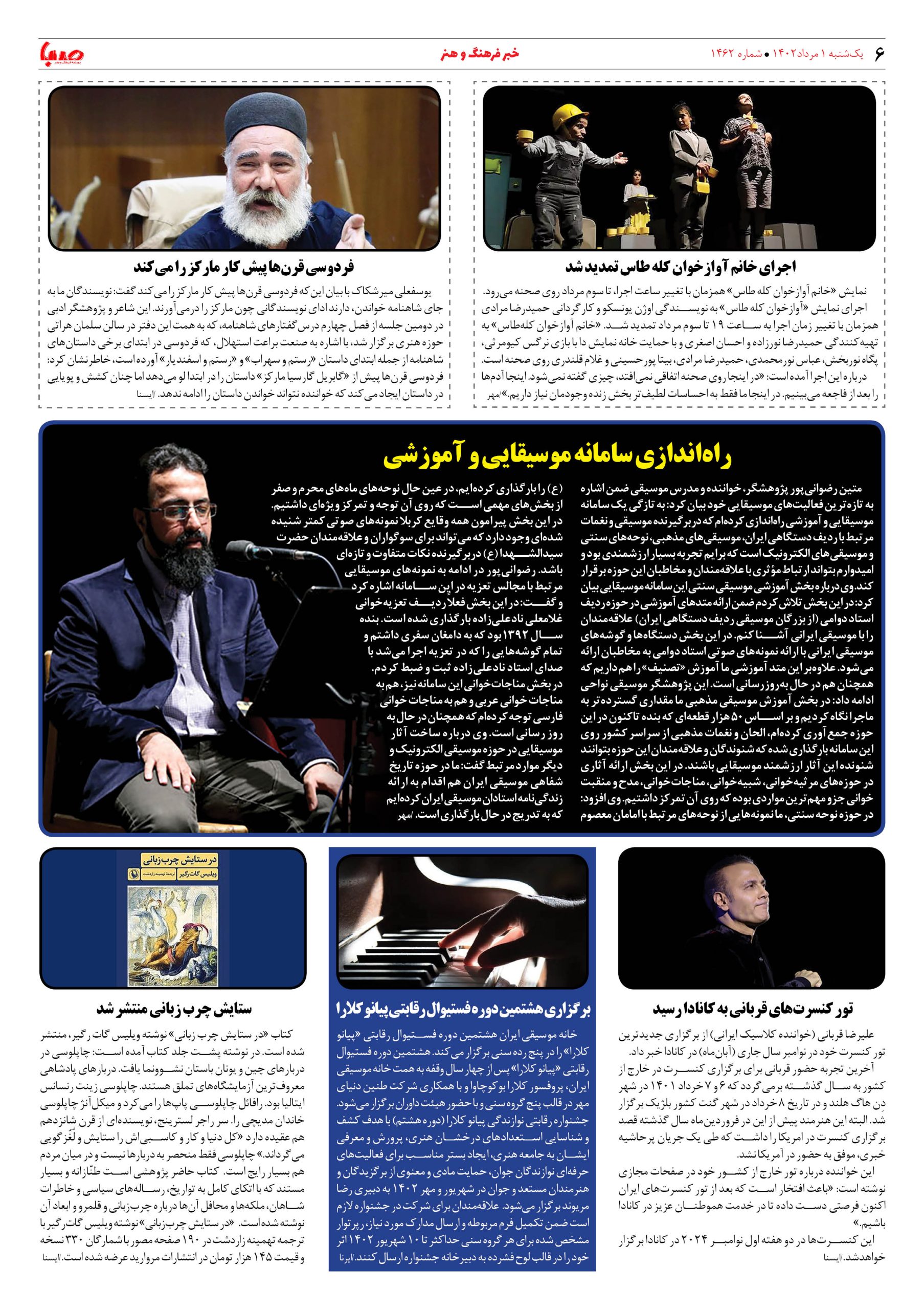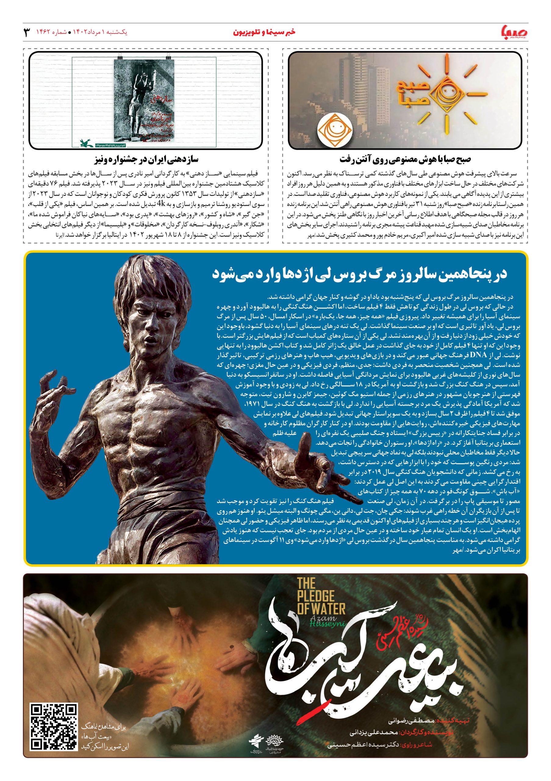 شماره۱۴۶۲| روزنامه صبا یکشنبه۱مرداد