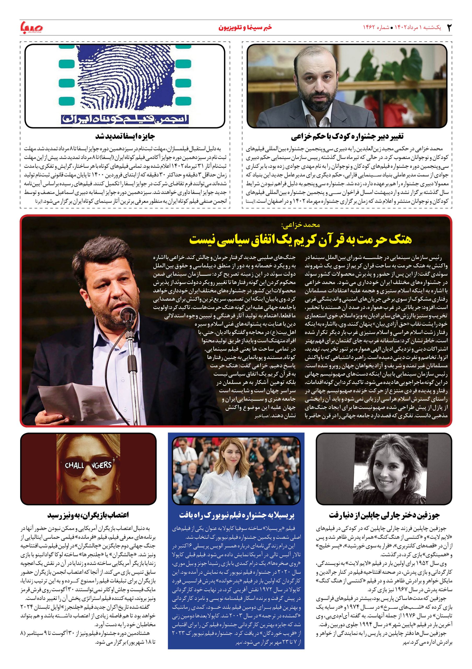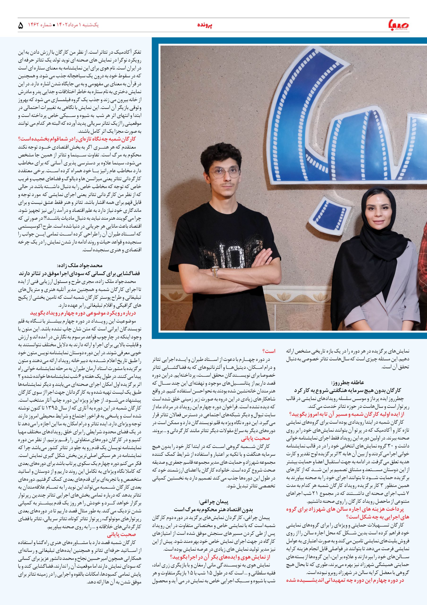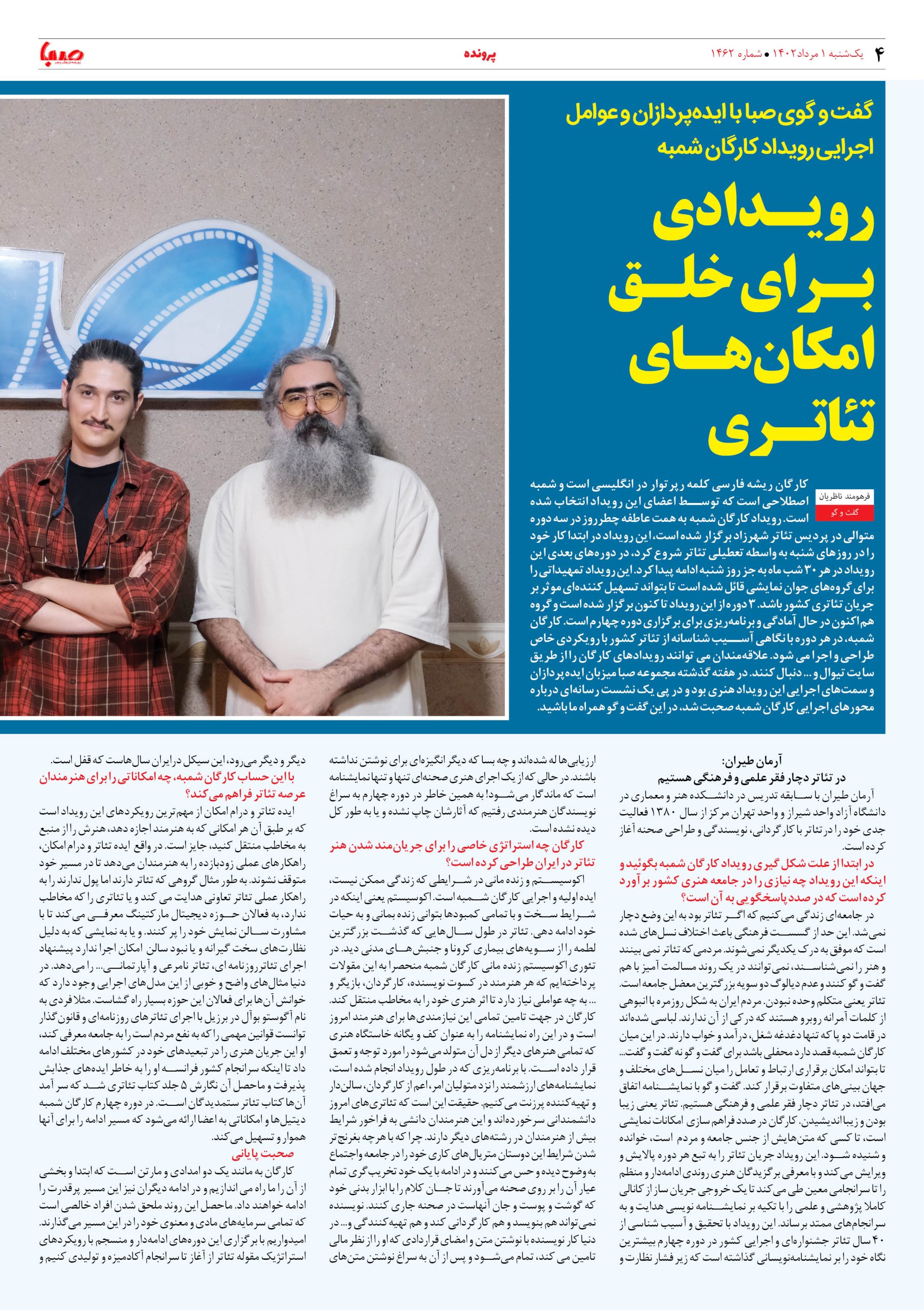 شماره۱۴۶۲| روزنامه صبا یکشنبه۱مرداد