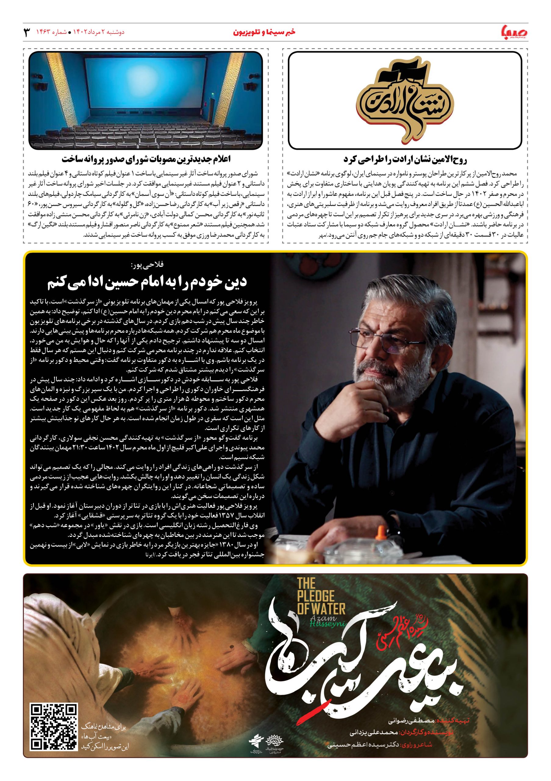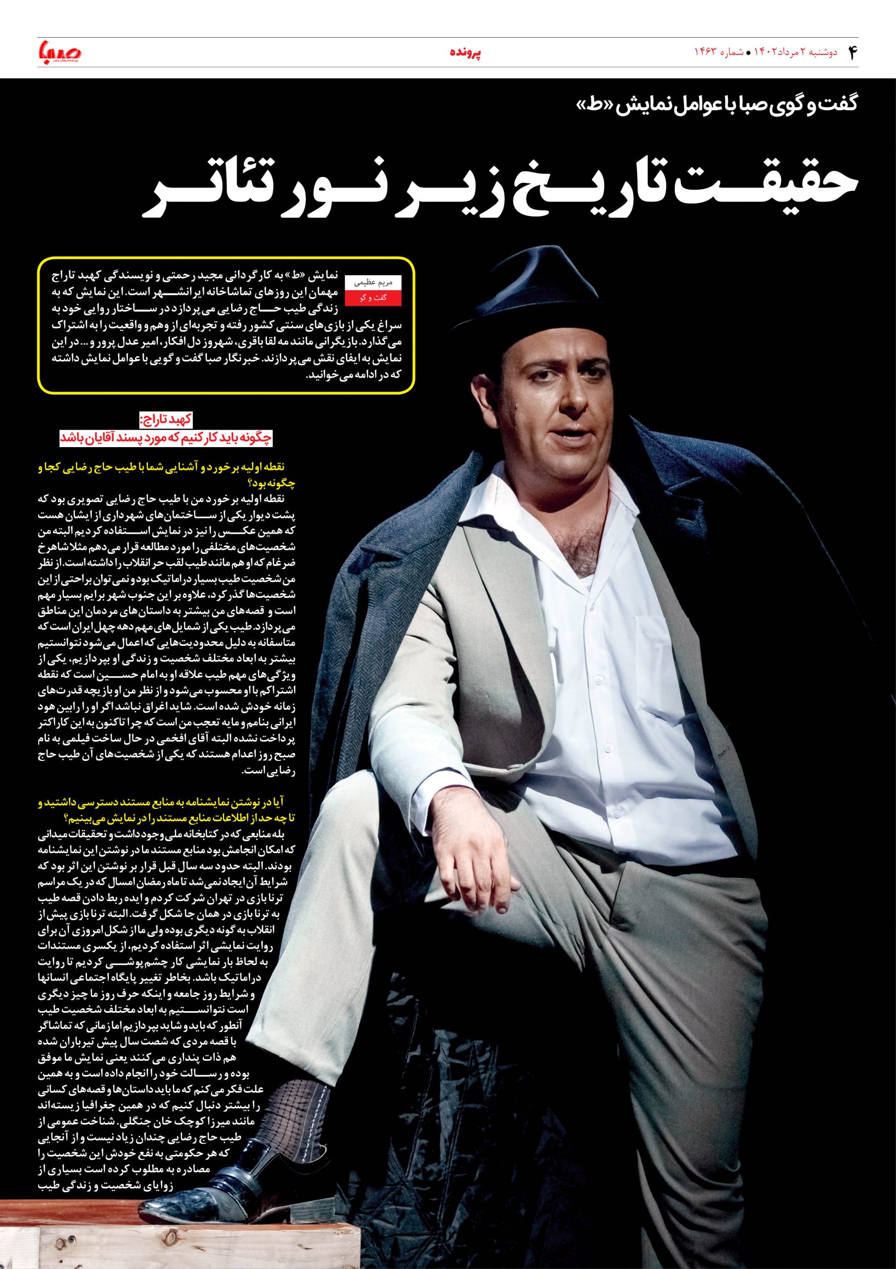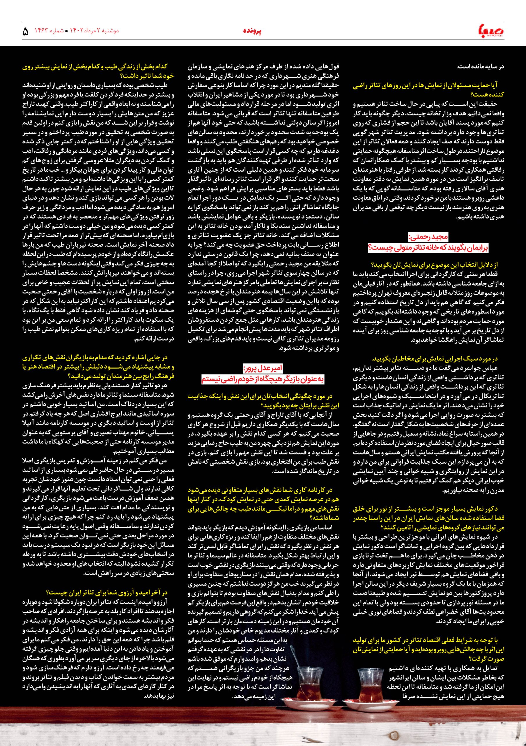 شماره۱۴۶۳| روزنامه صبا دوشنبه۲مرداد