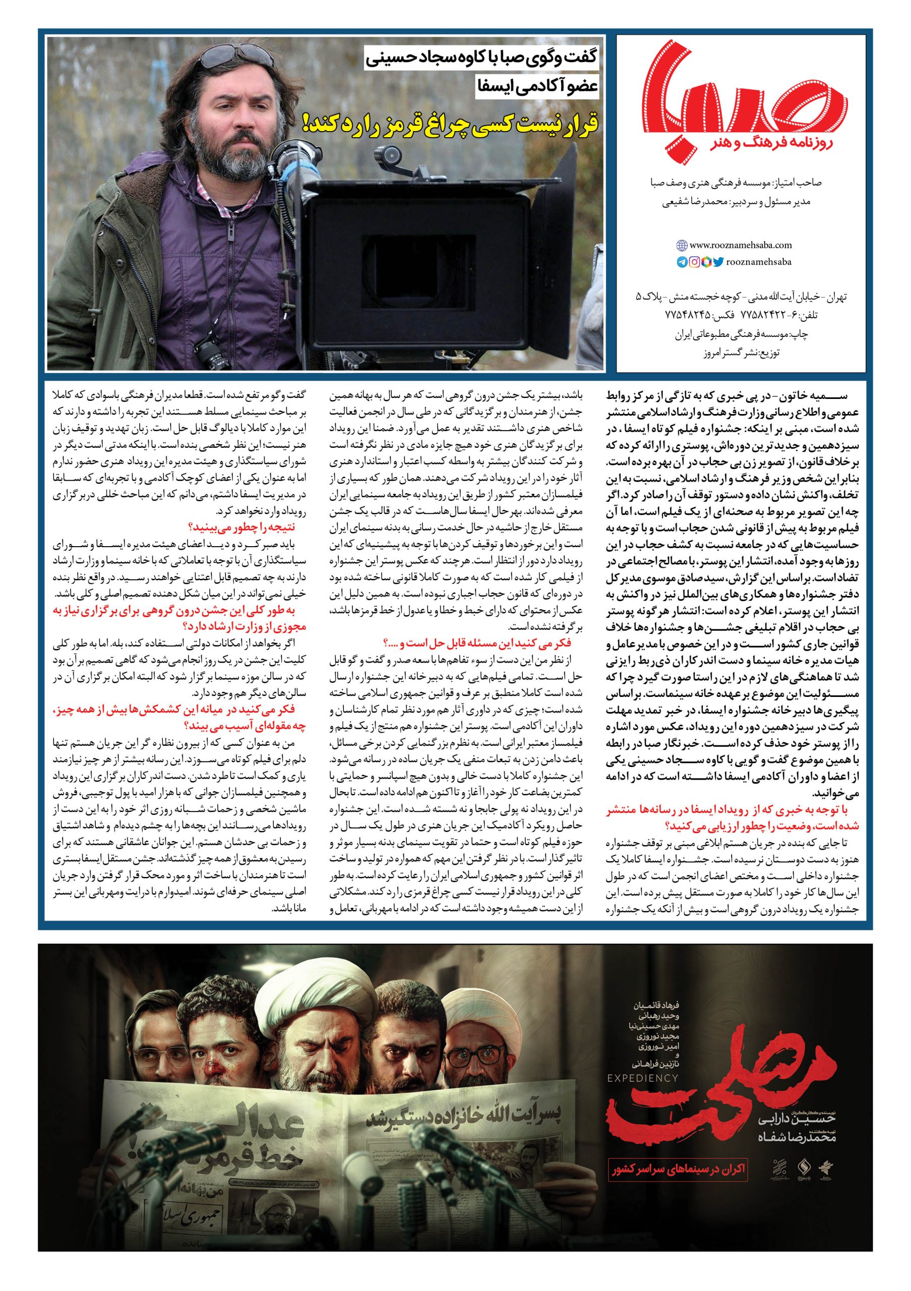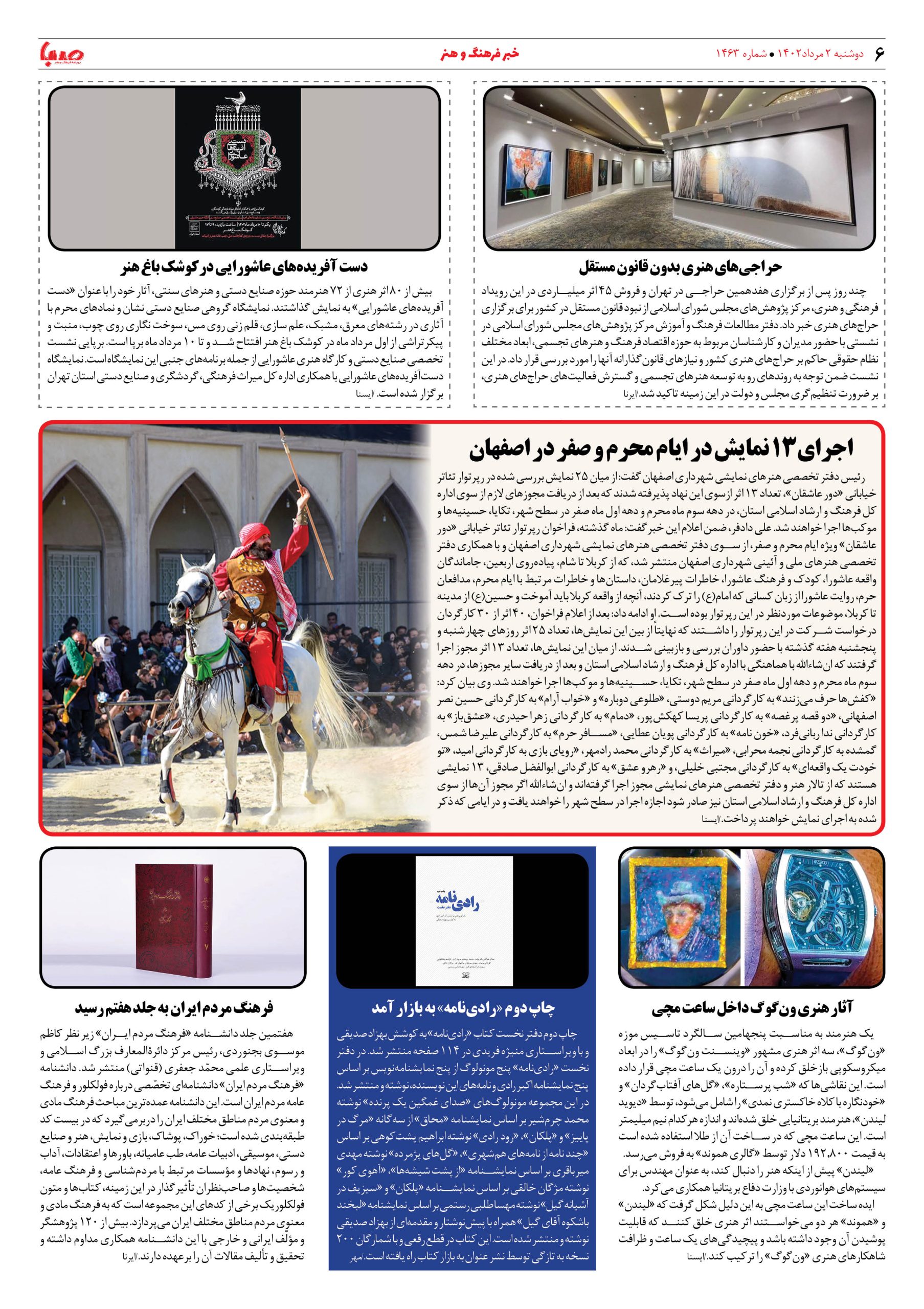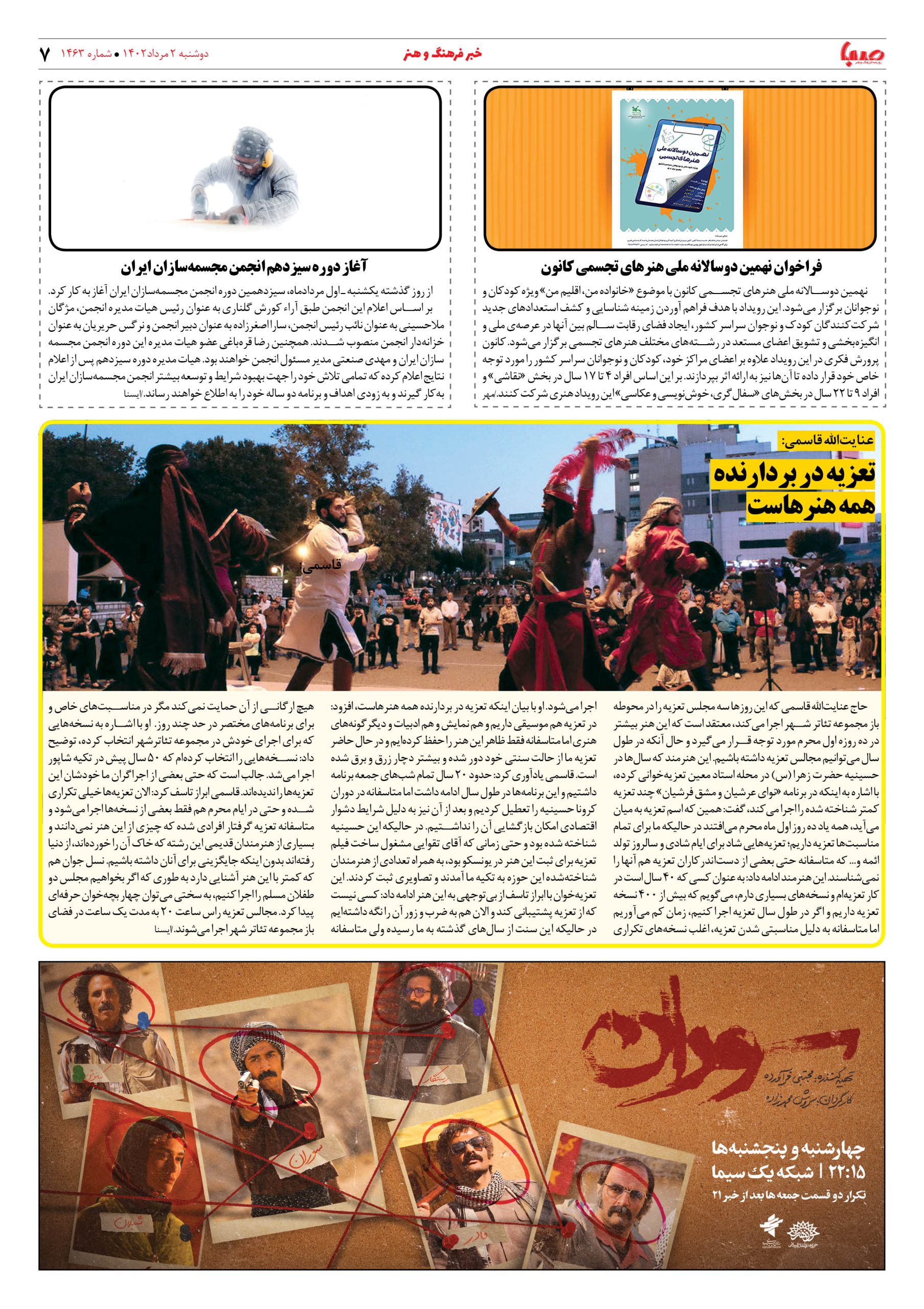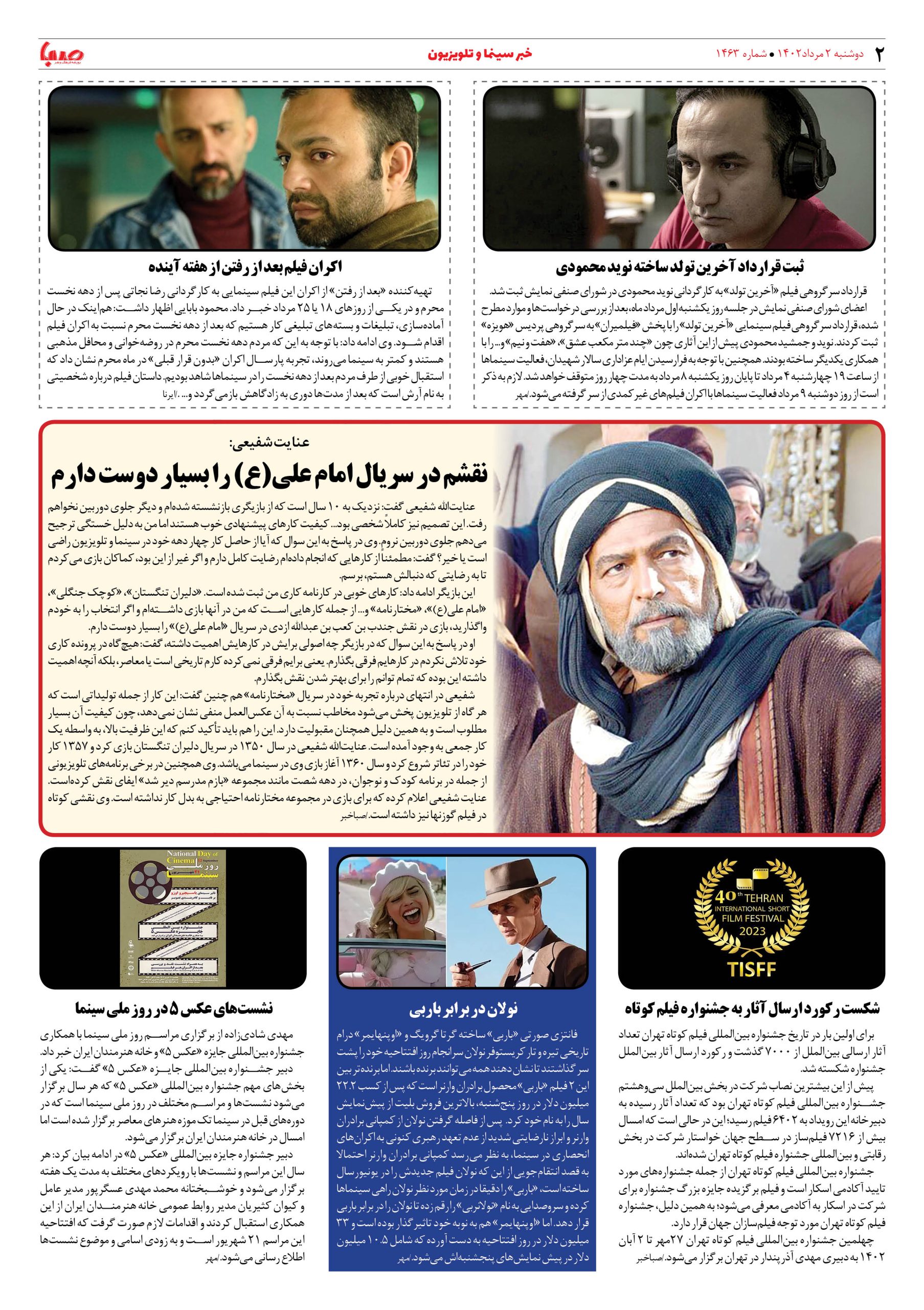 شماره۱۴۶۳| روزنامه صبا دوشنبه۲مرداد