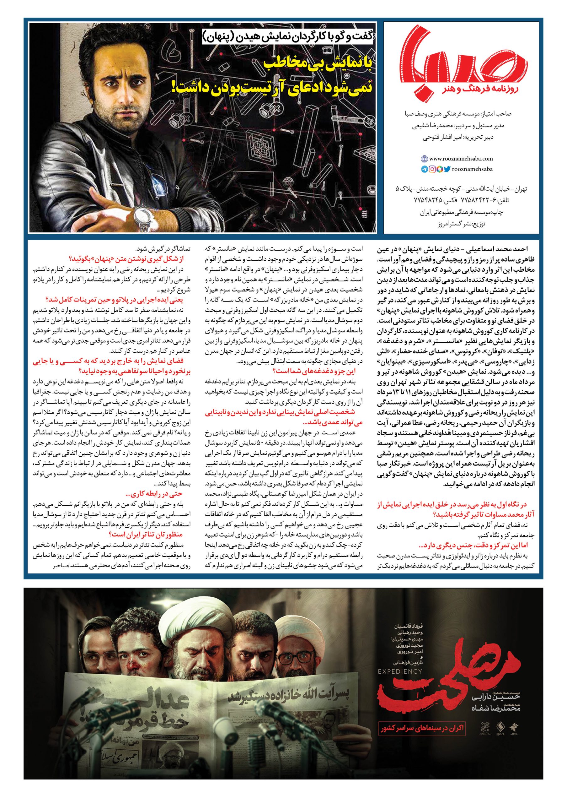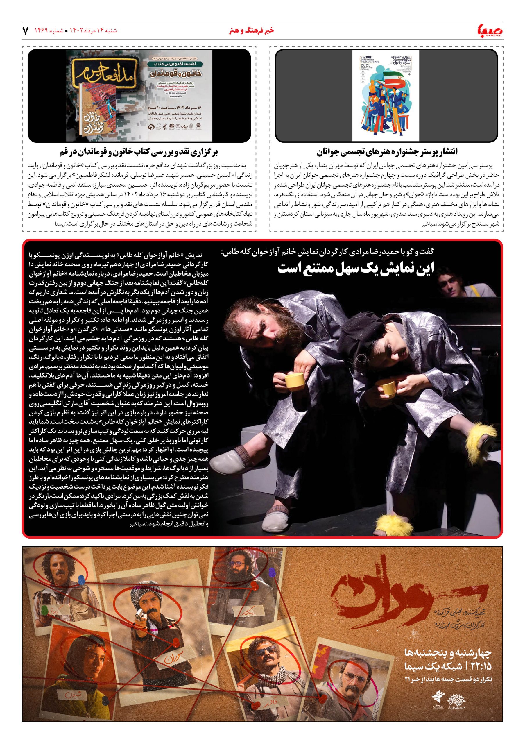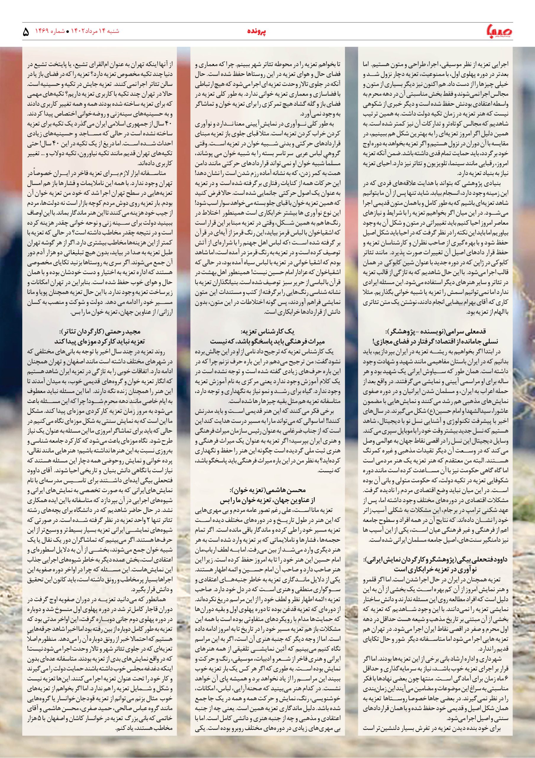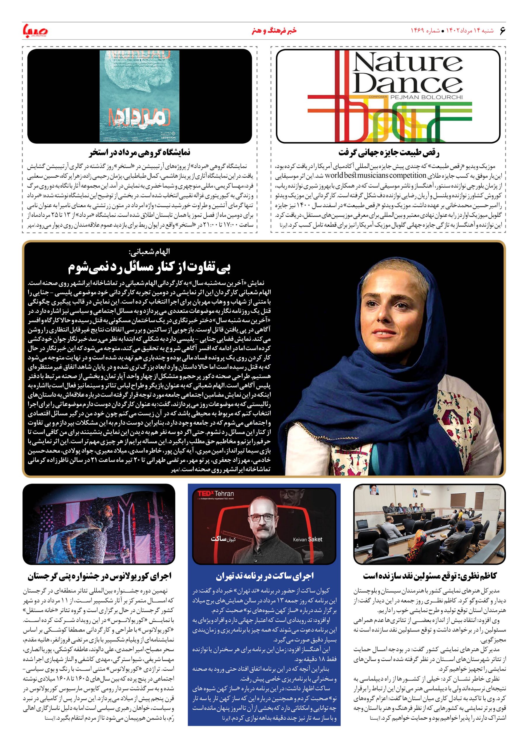 شماره ۱۴۶۹| روزنامه صبا شنبه۱۴مرداد