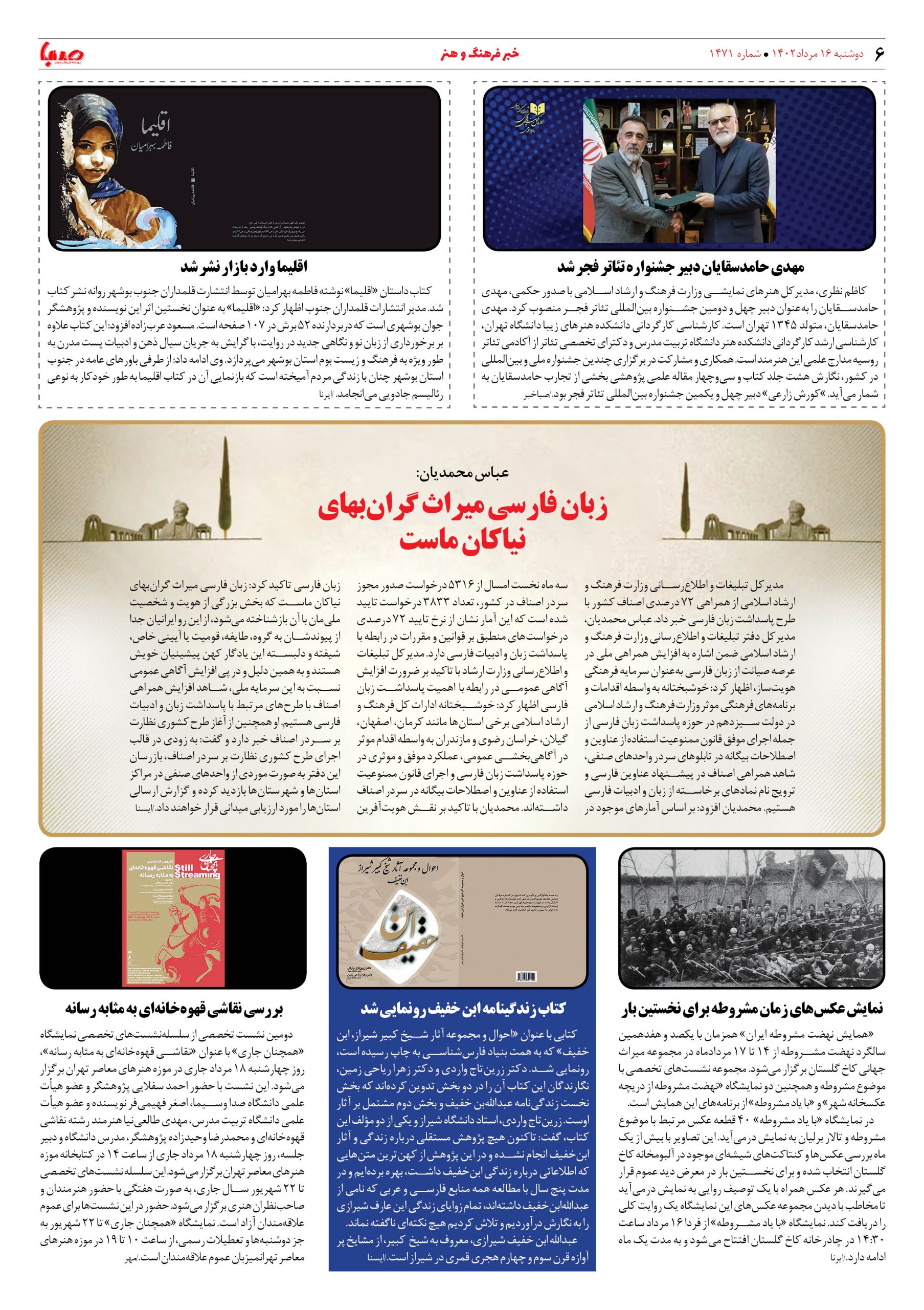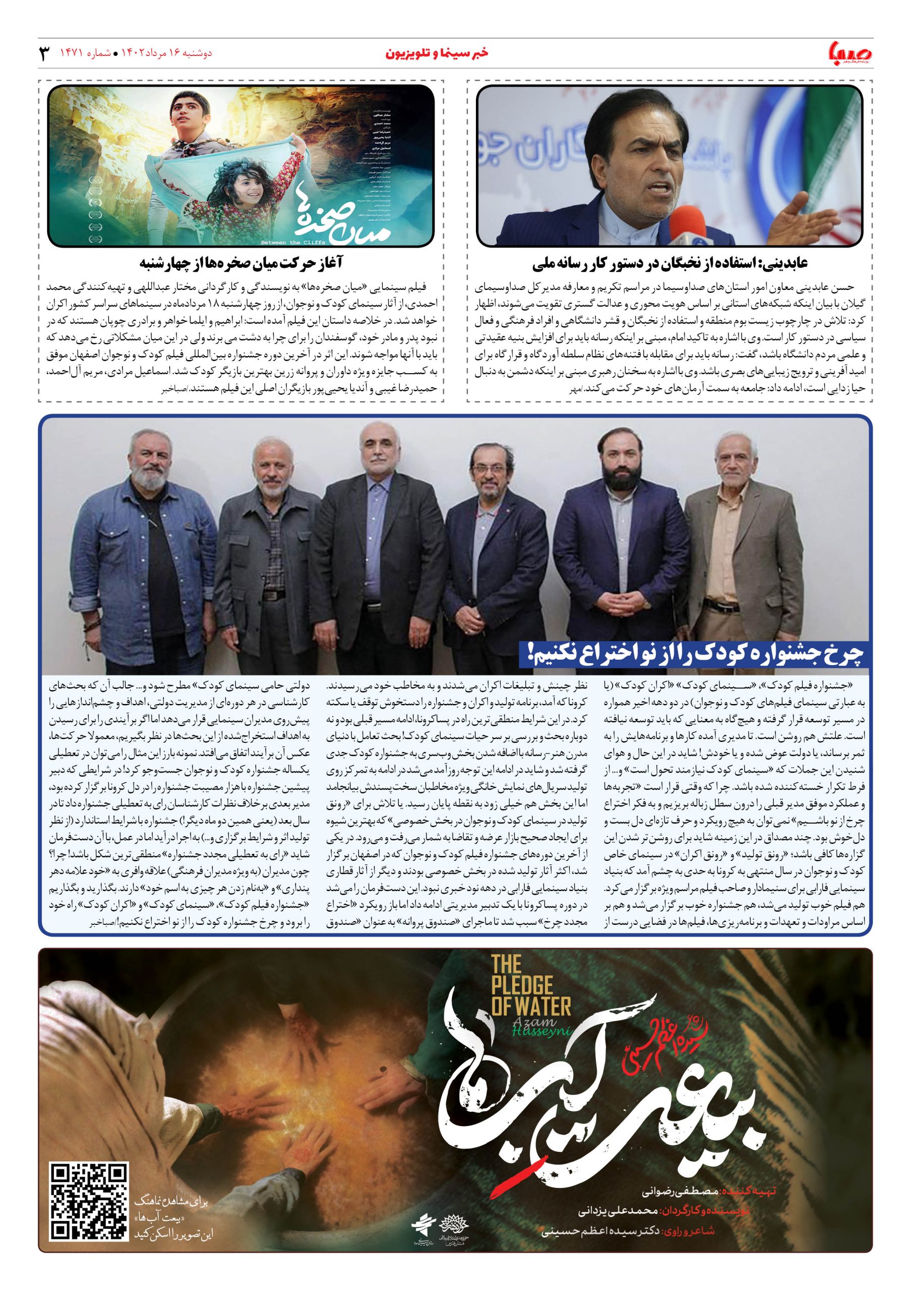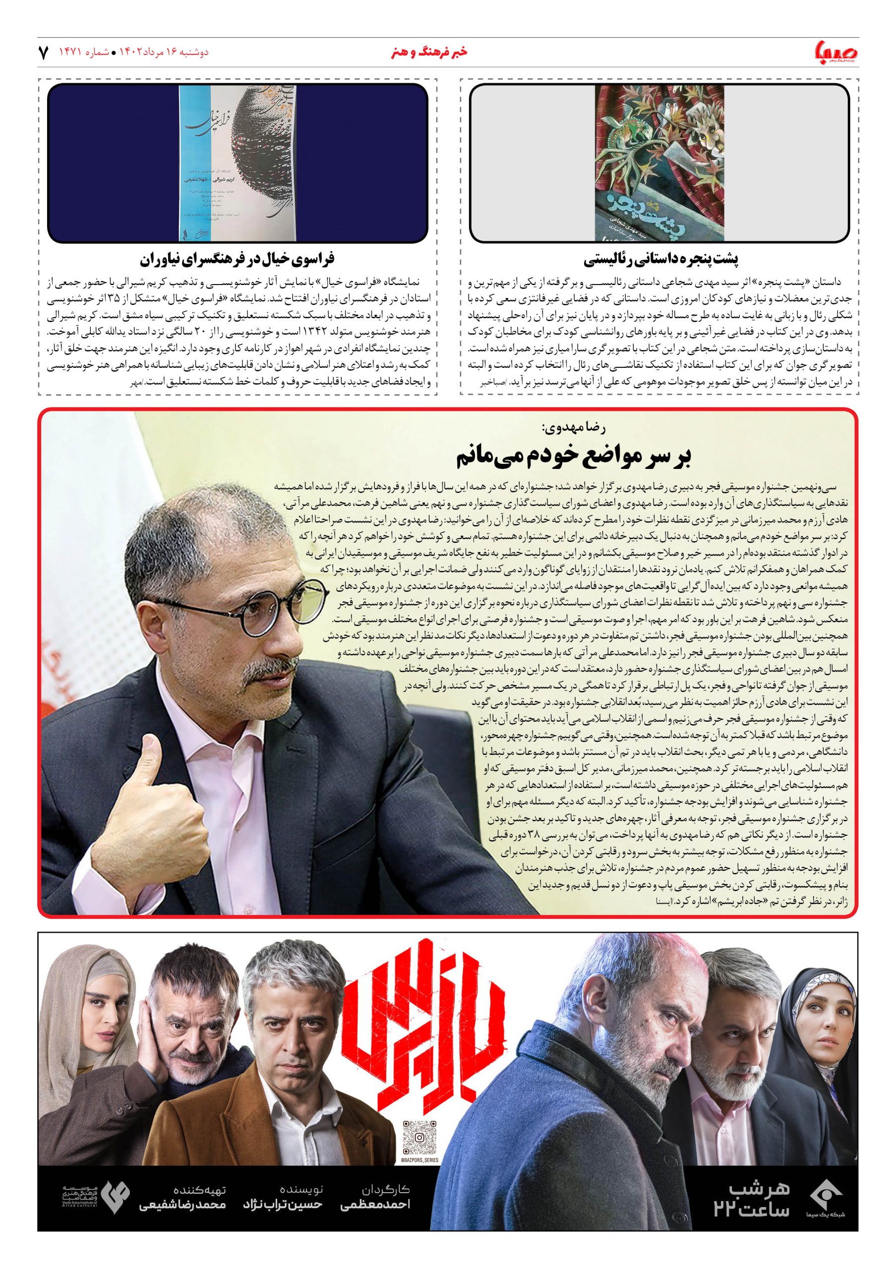 شماره۱۴۷۱| روزنامه صبا دوشنبه۱۶مرداد