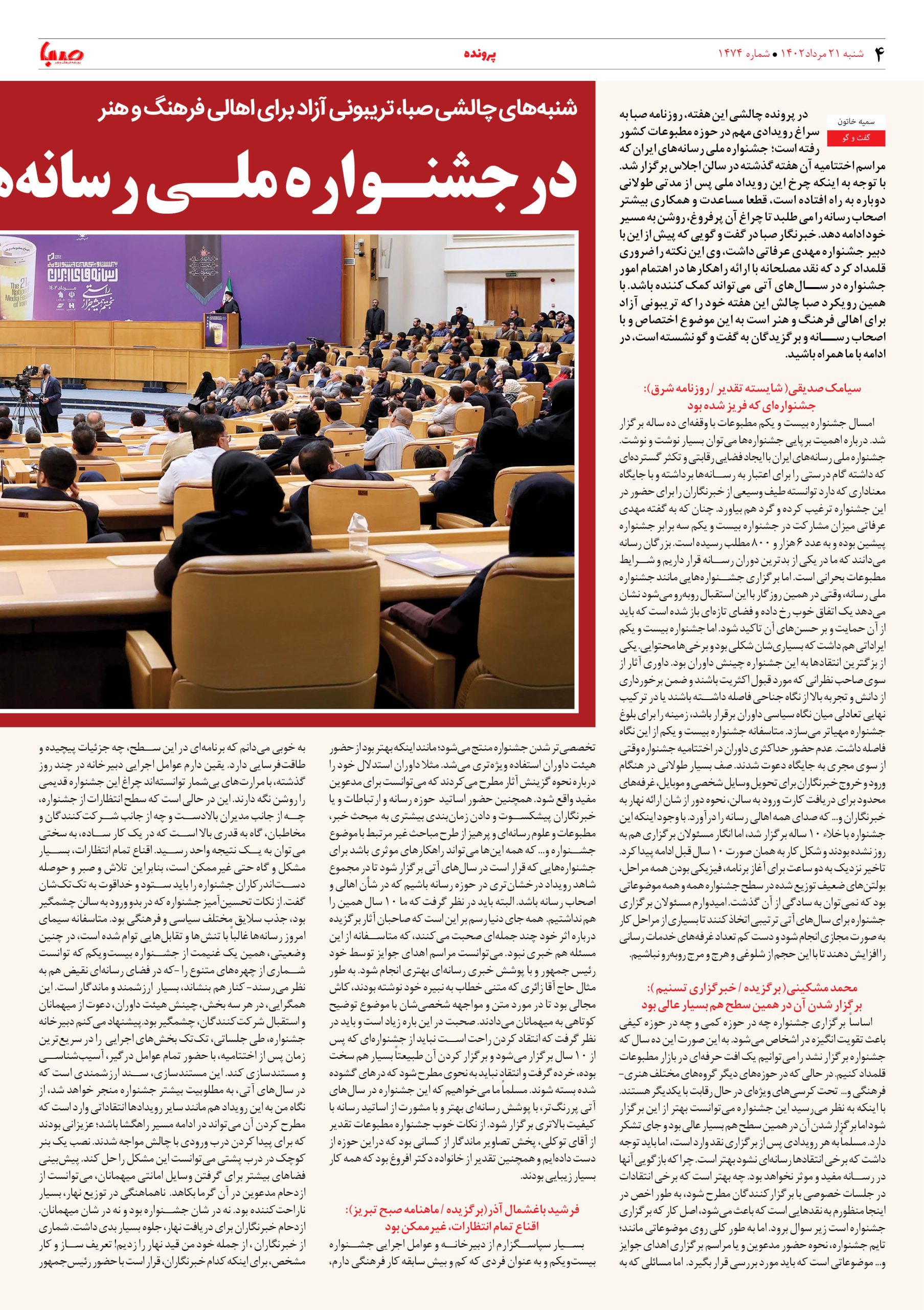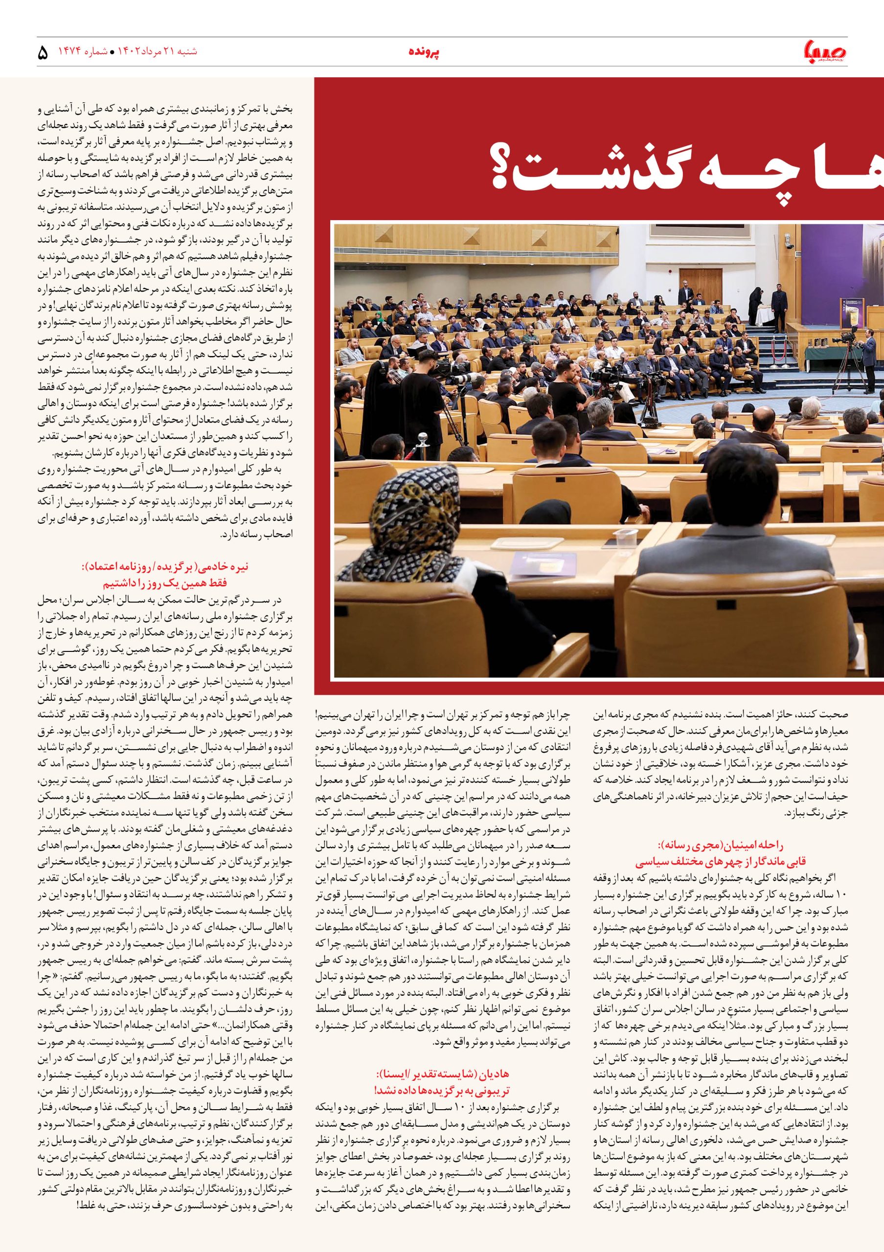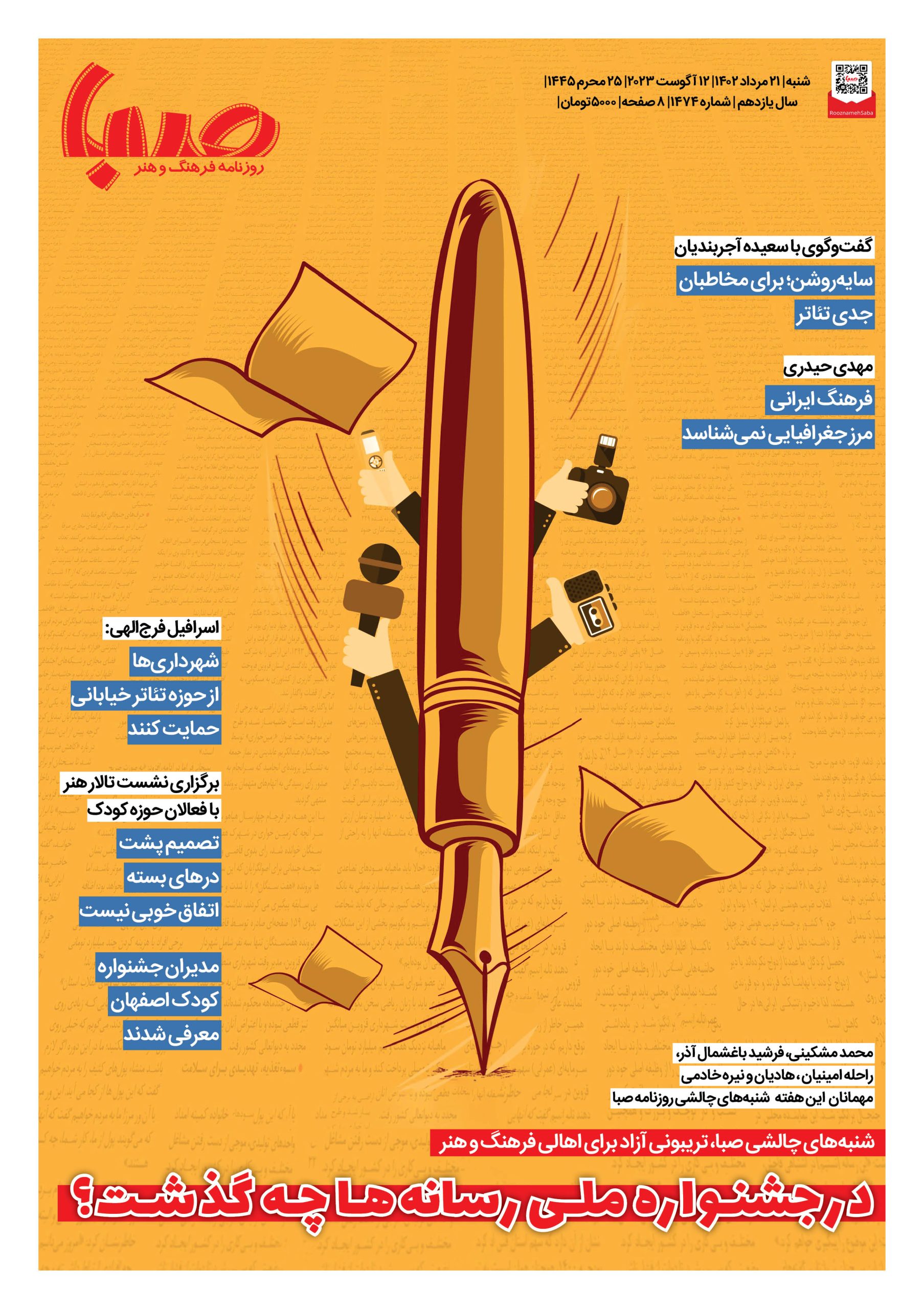 شماره ۱۴۷۴| روزنامه صبا شنبه۲۱مرداد