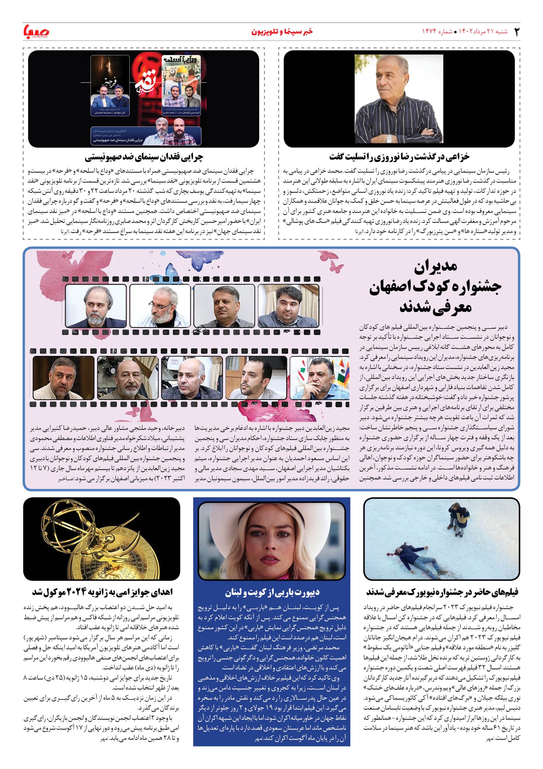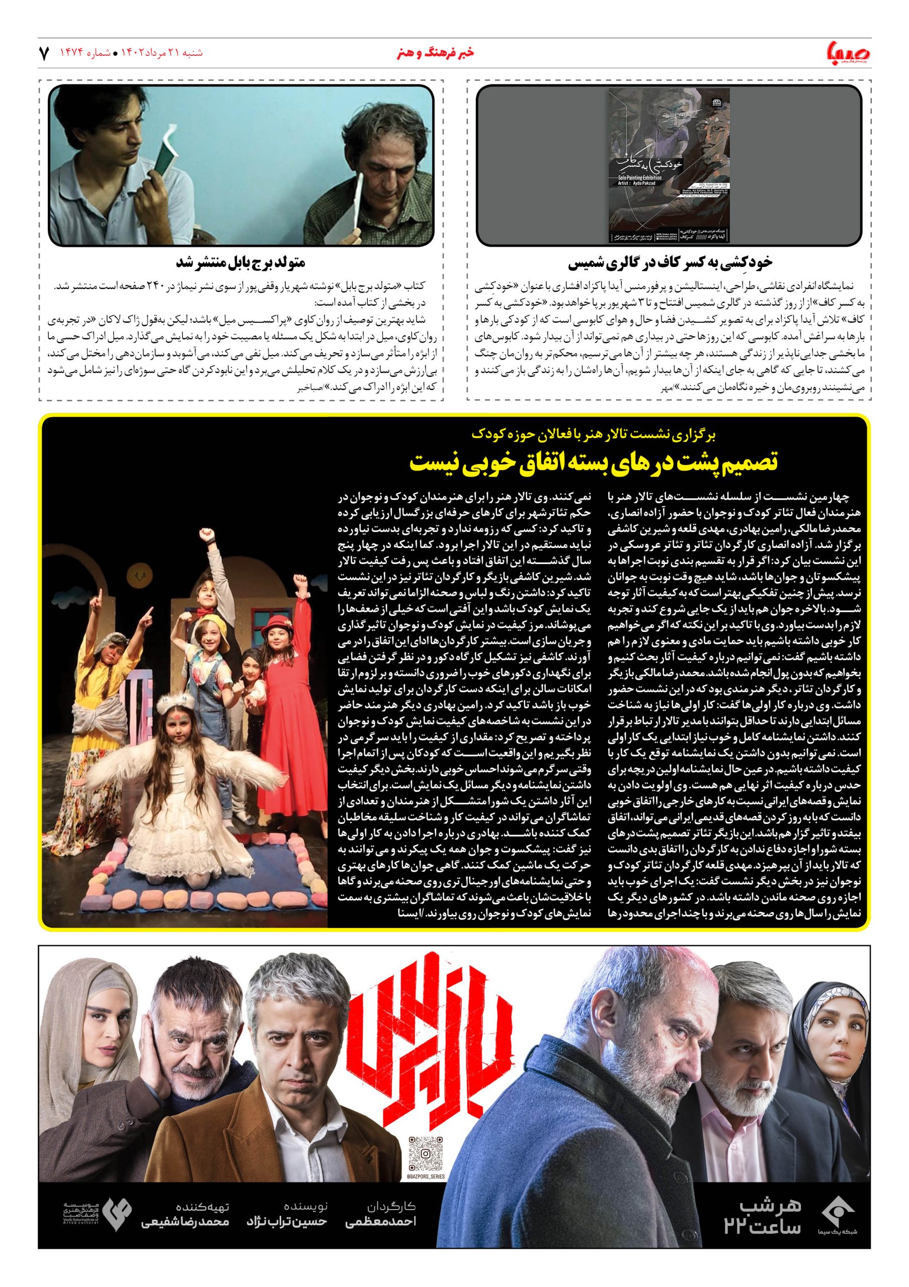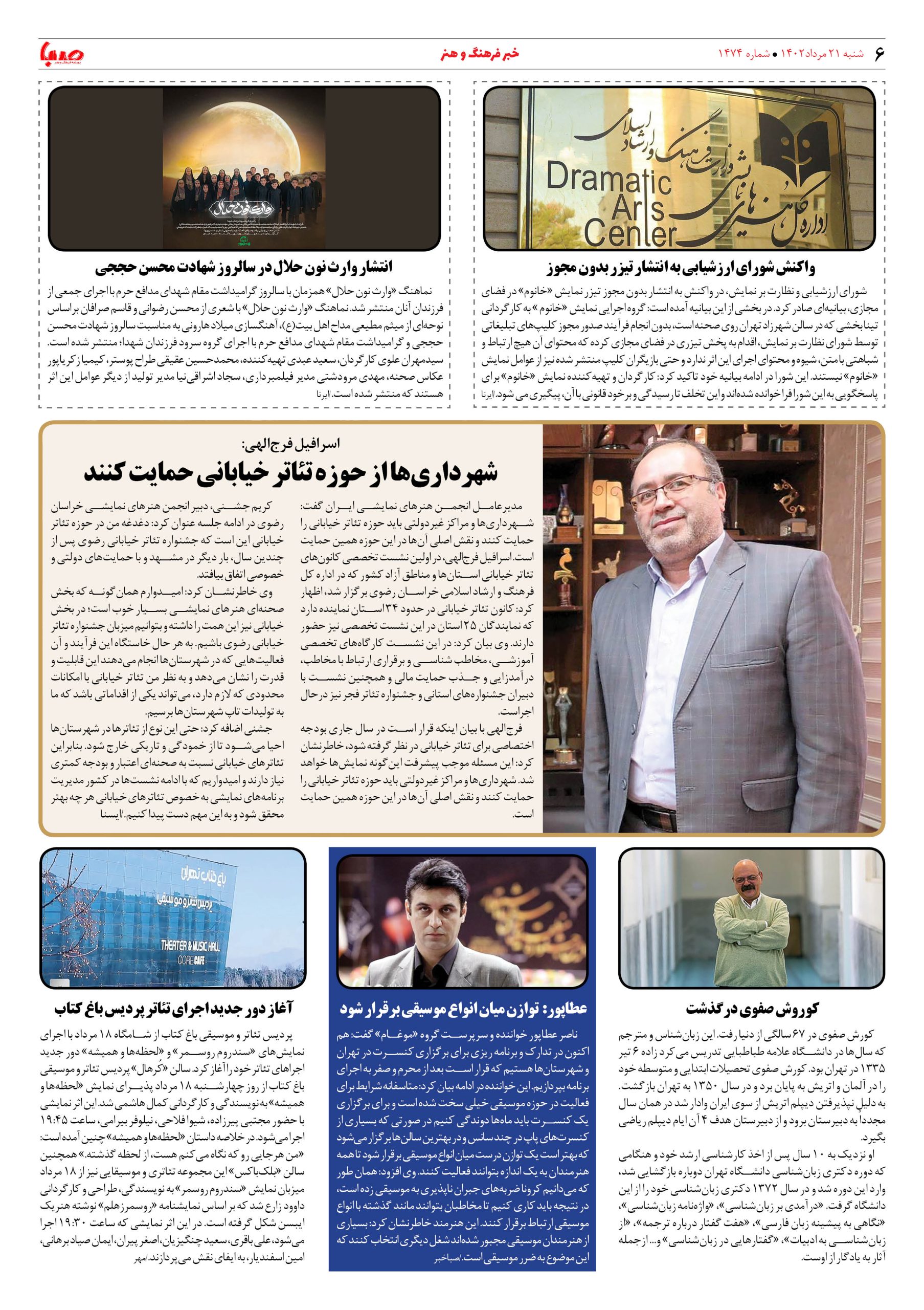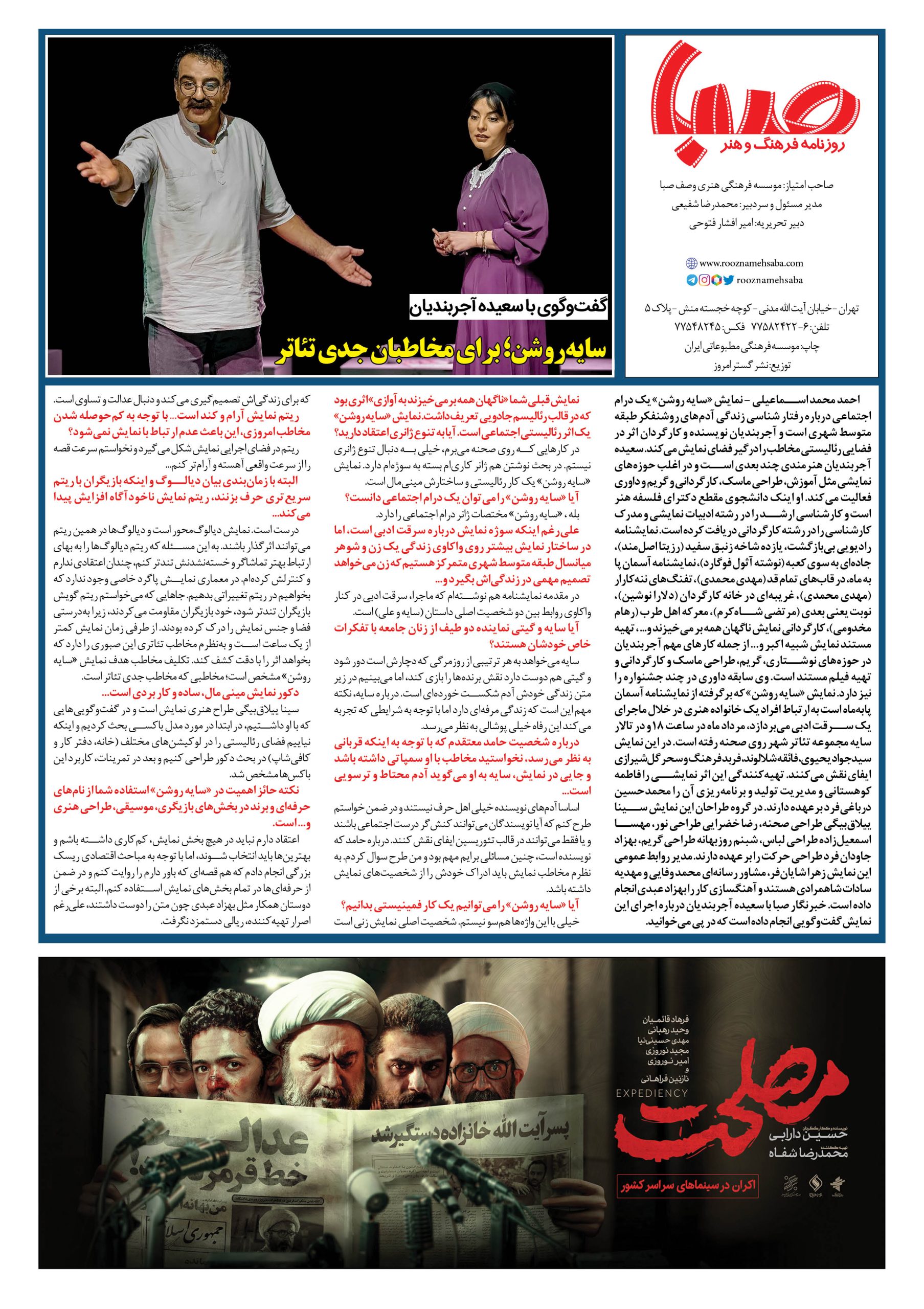 شماره ۱۴۷۴| روزنامه صبا شنبه۲۱مرداد