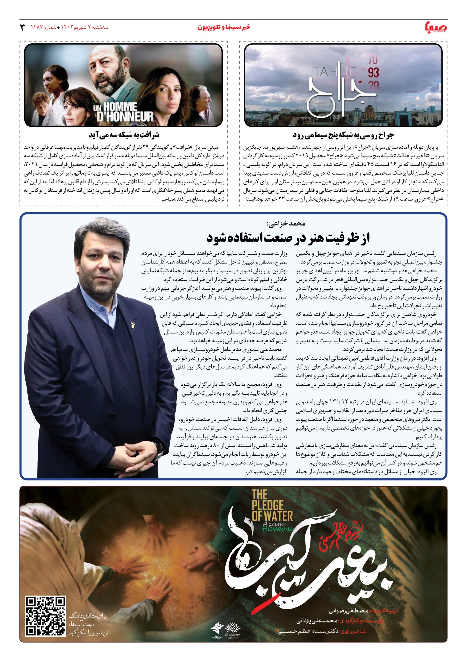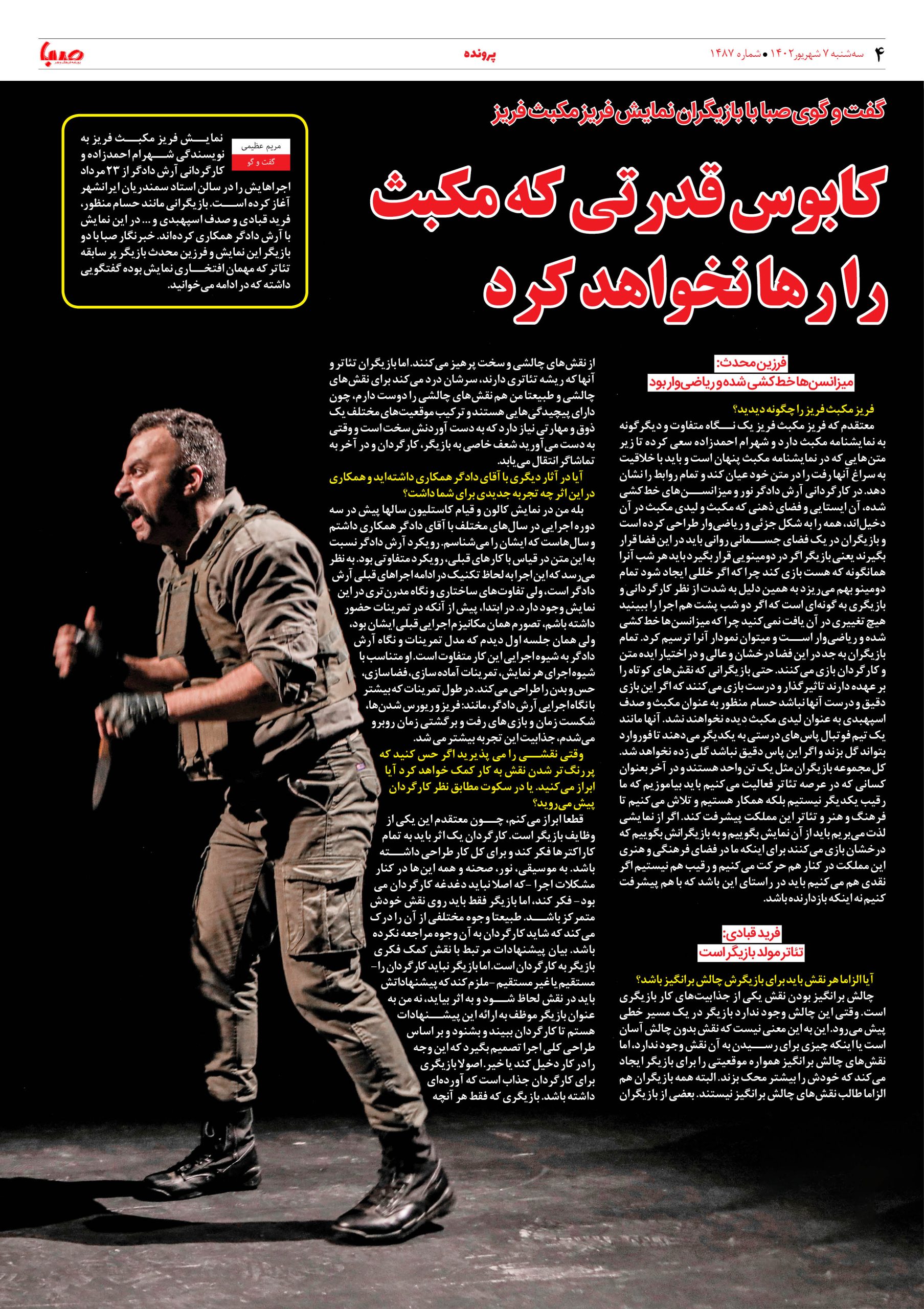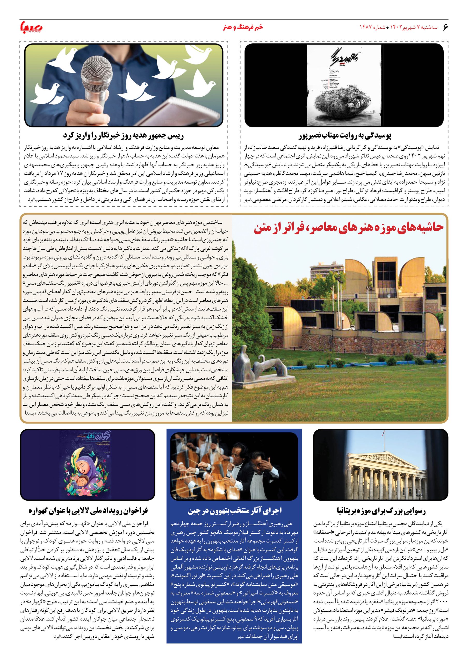 شماره۱۴۸۷| روزنامه صبا سه شنبه ۷ شهریور