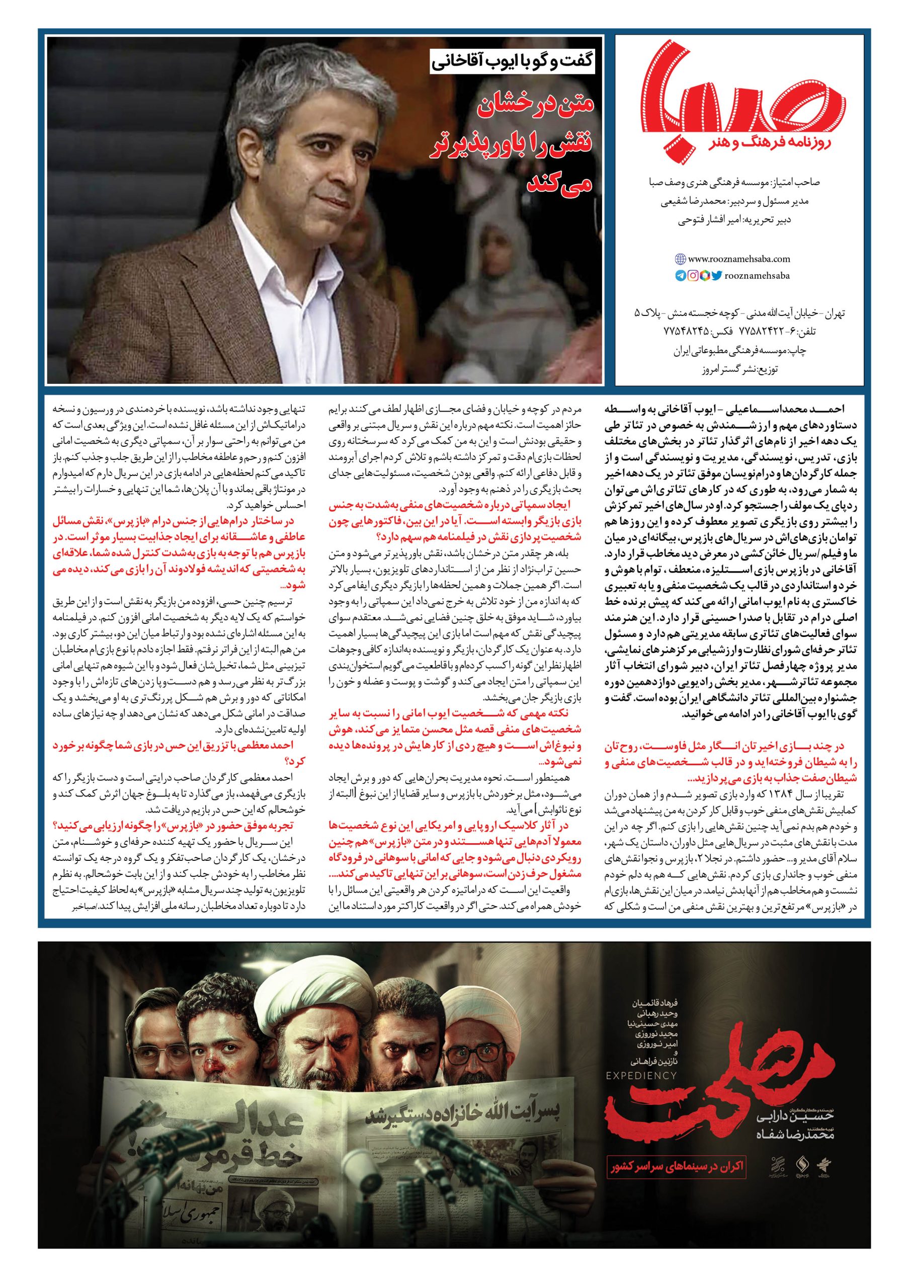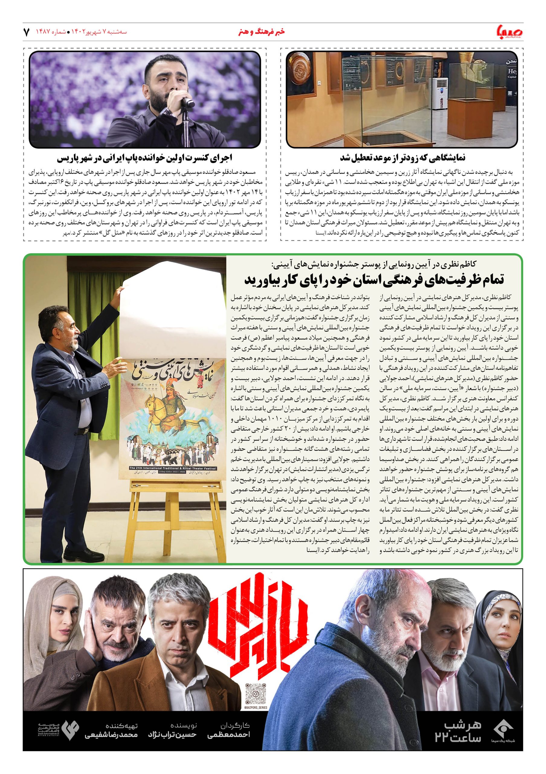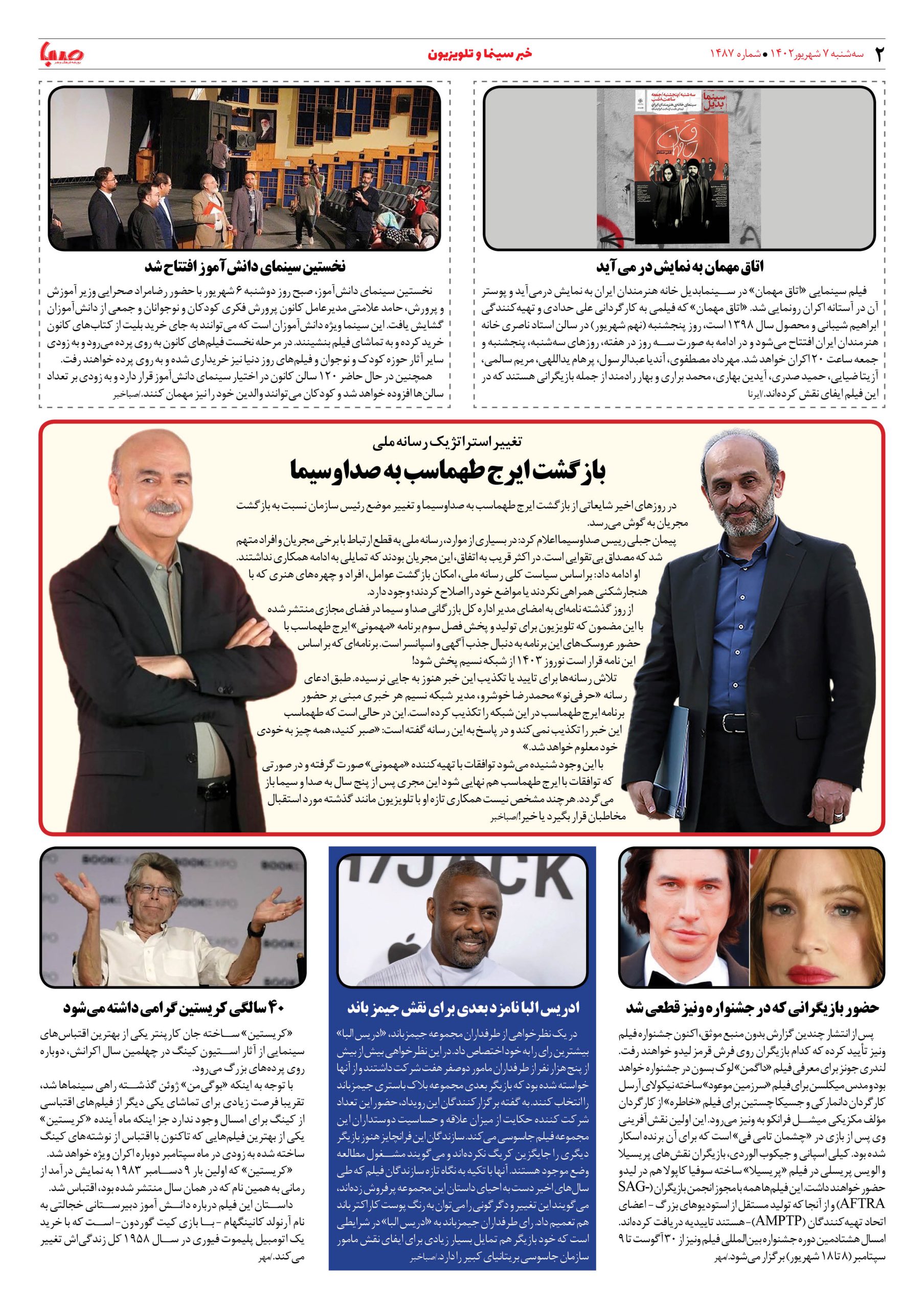 شماره۱۴۸۷| روزنامه صبا سه شنبه ۷ شهریور