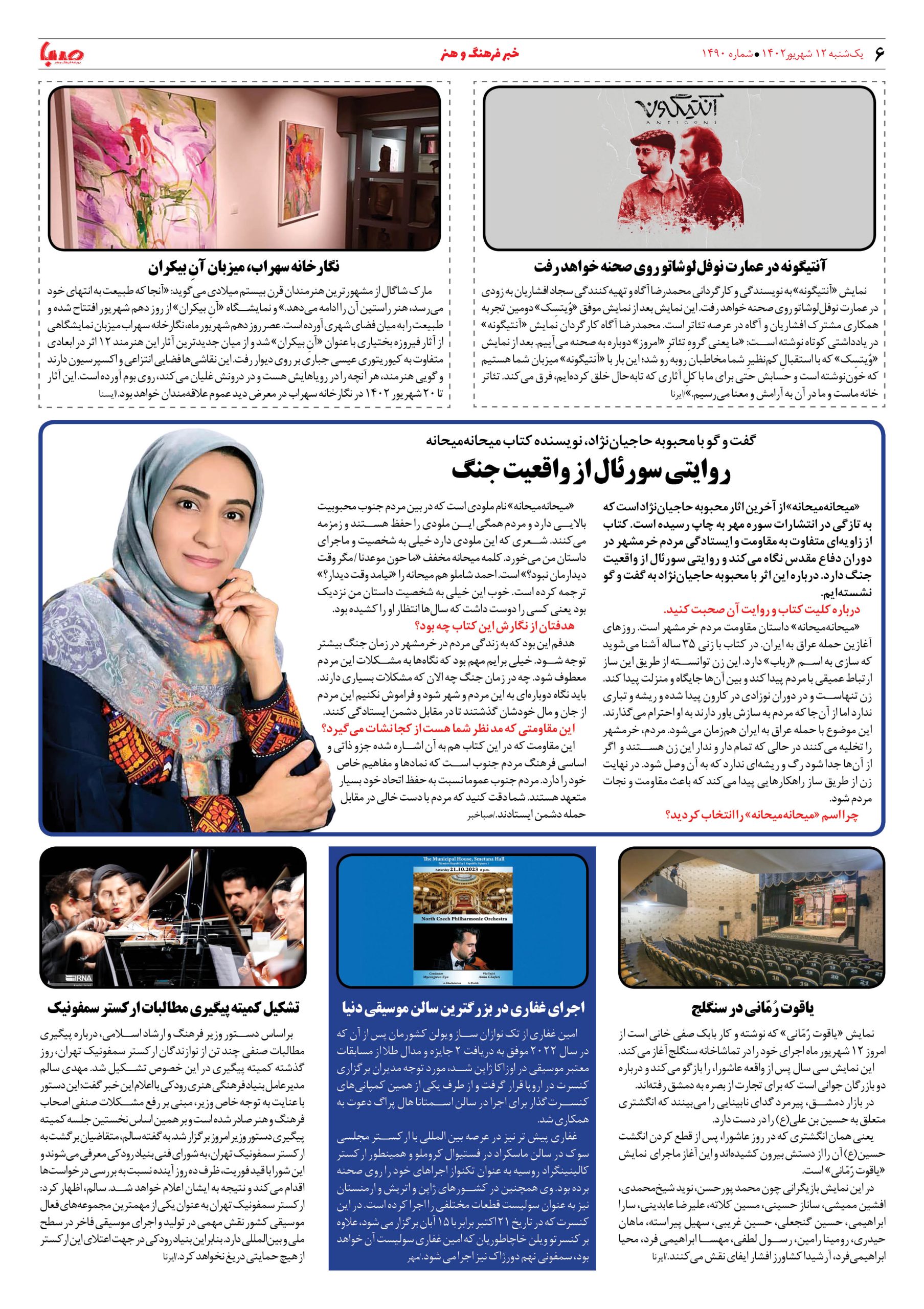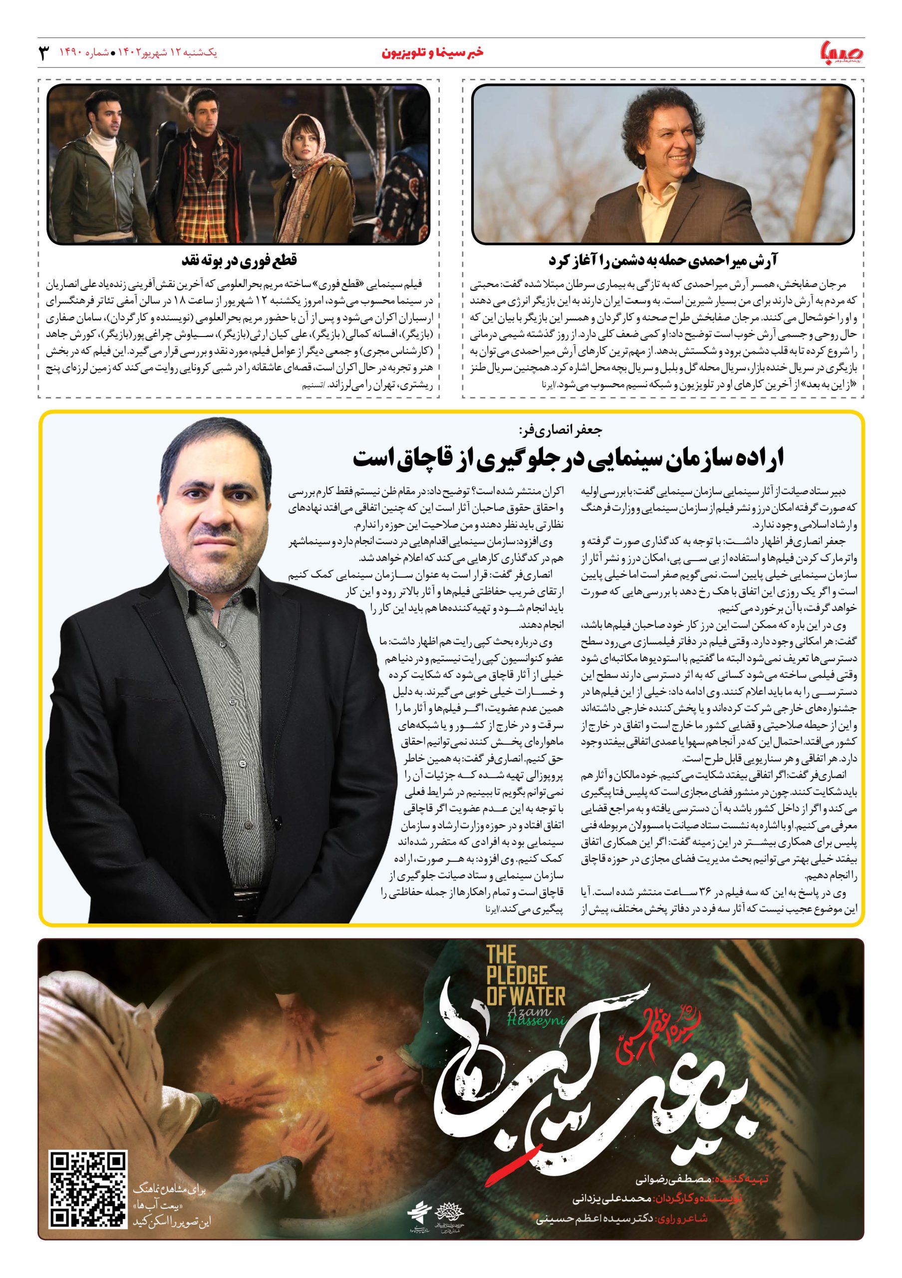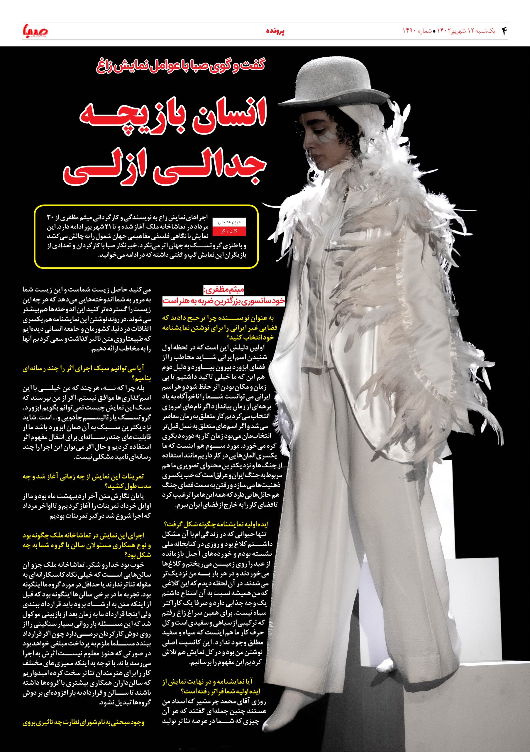 شماره۱۴۹۰| روزنامه صبا یکشنبه ۱۲ شهریور