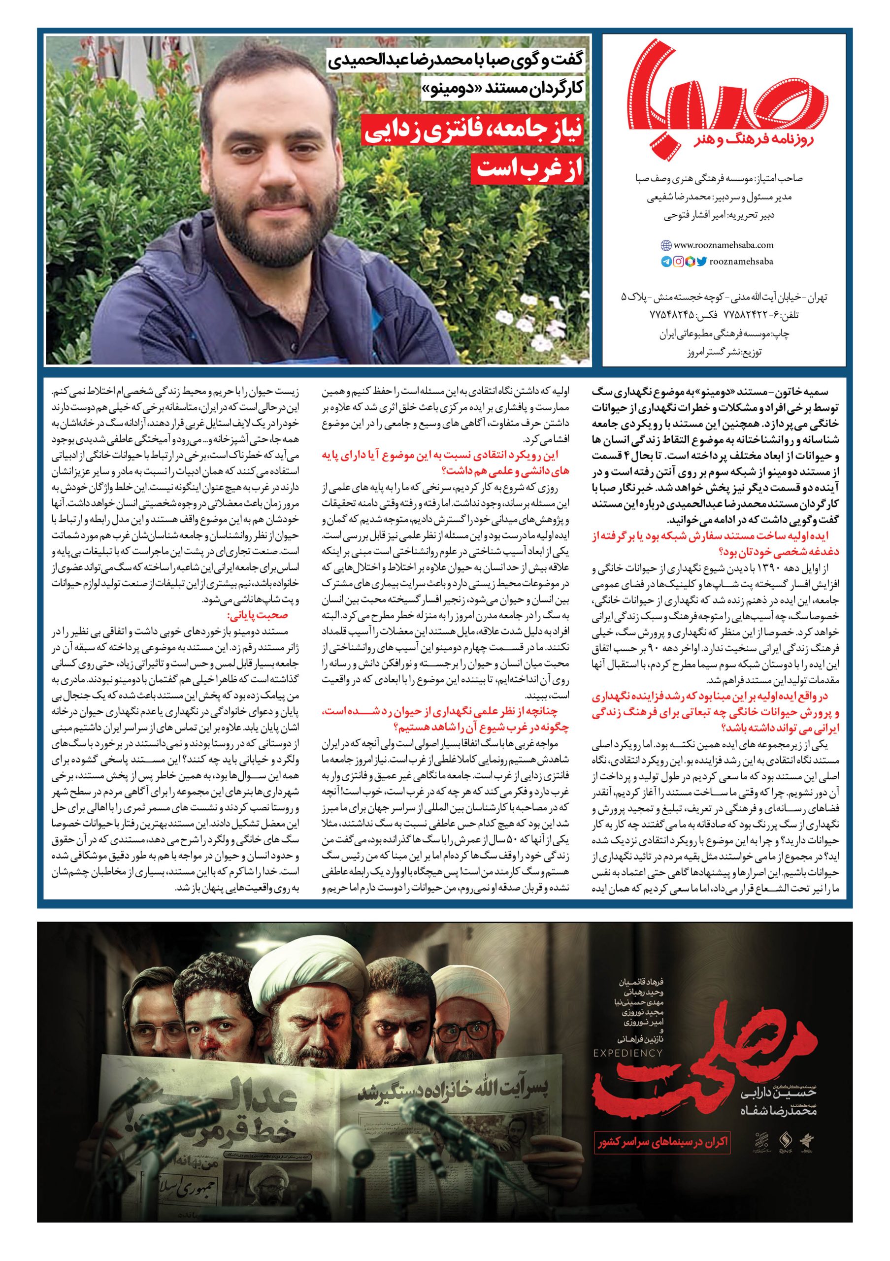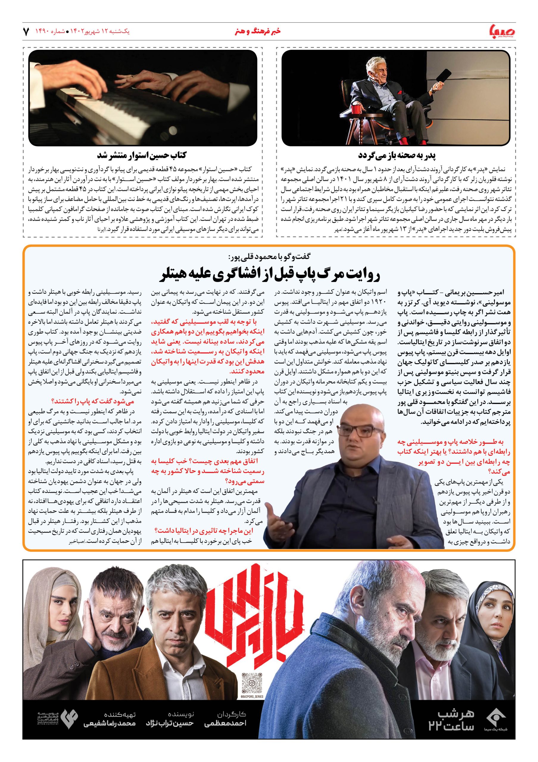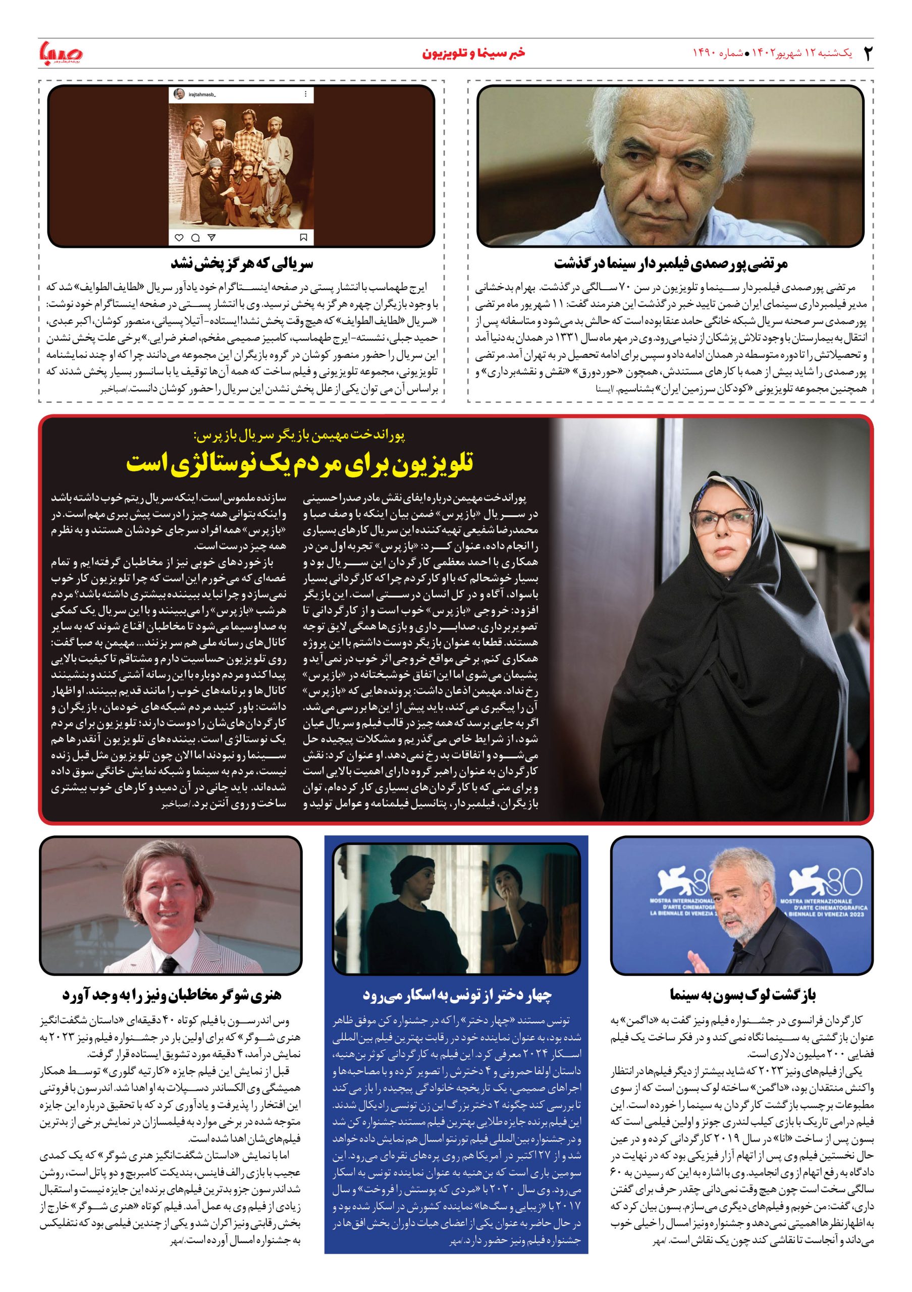 شماره۱۴۹۰| روزنامه صبا یکشنبه ۱۲ شهریور