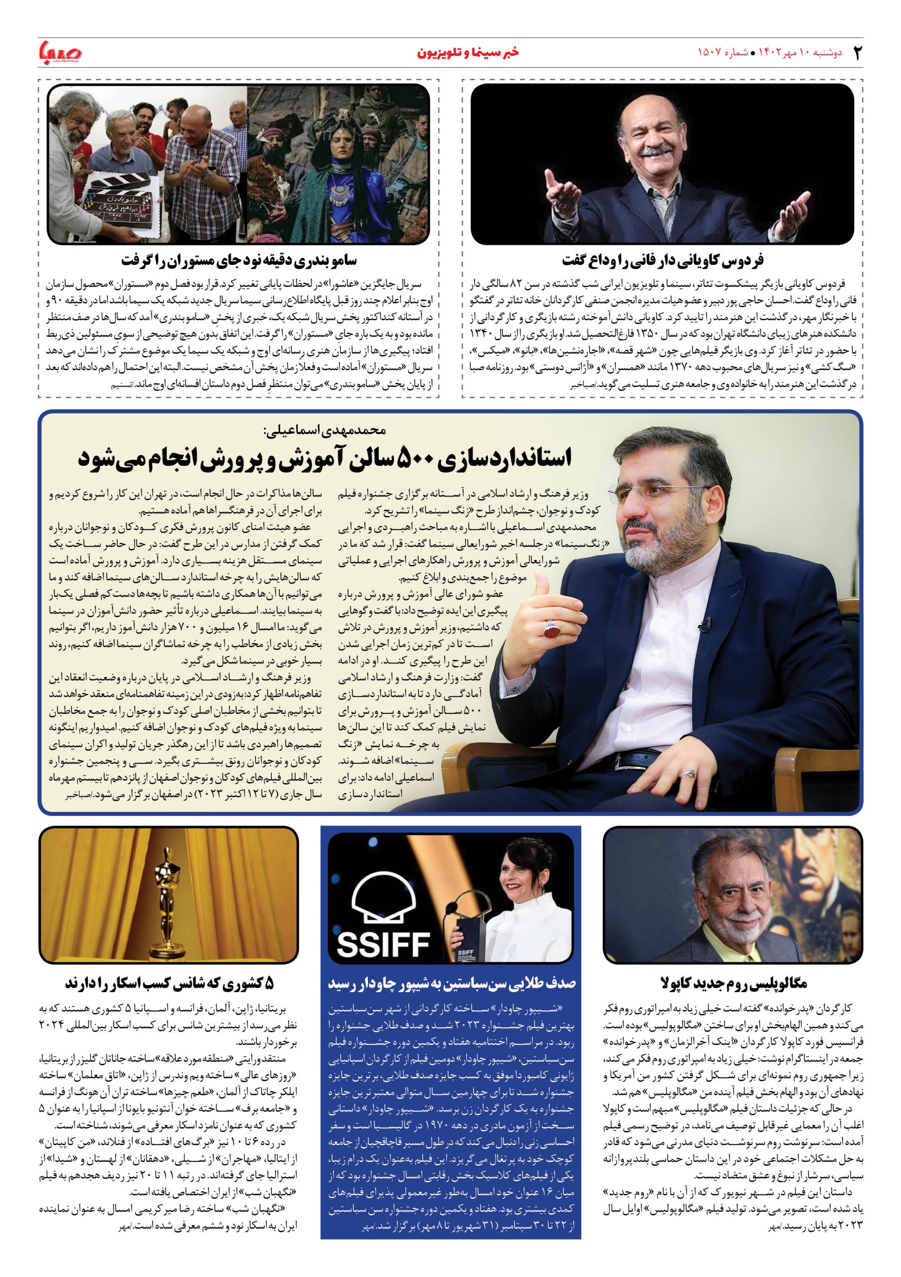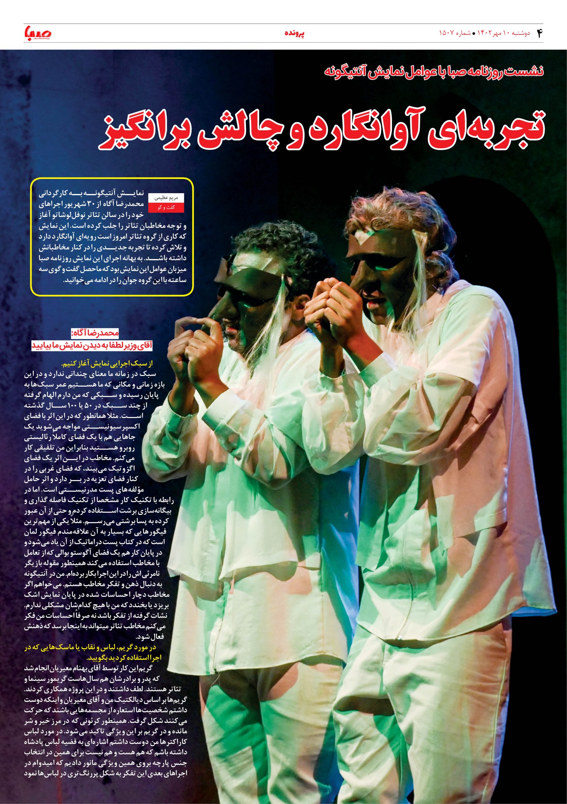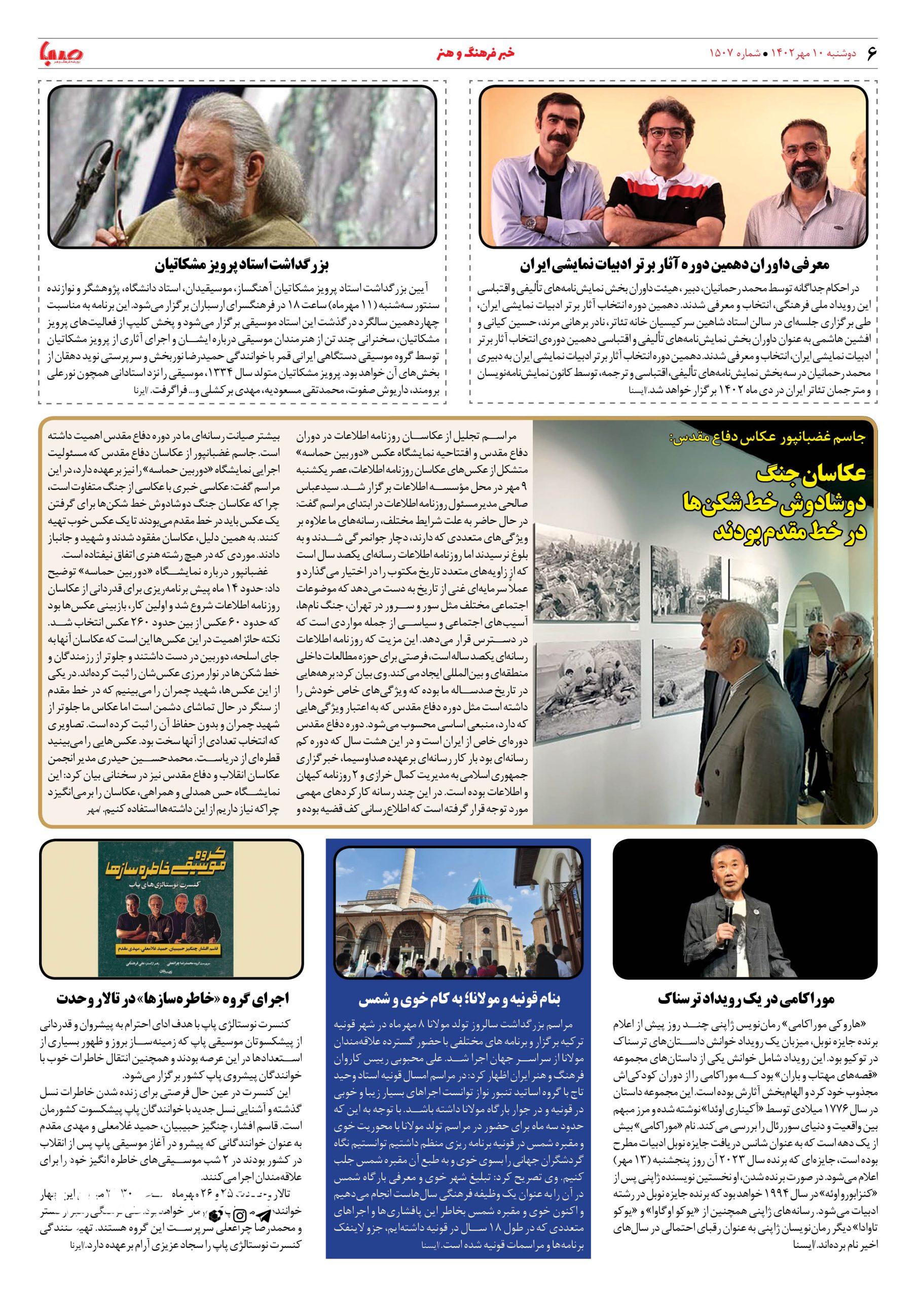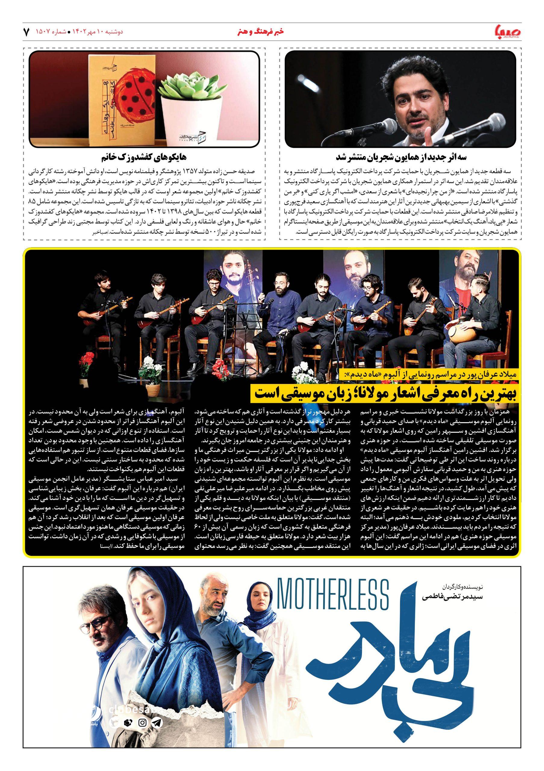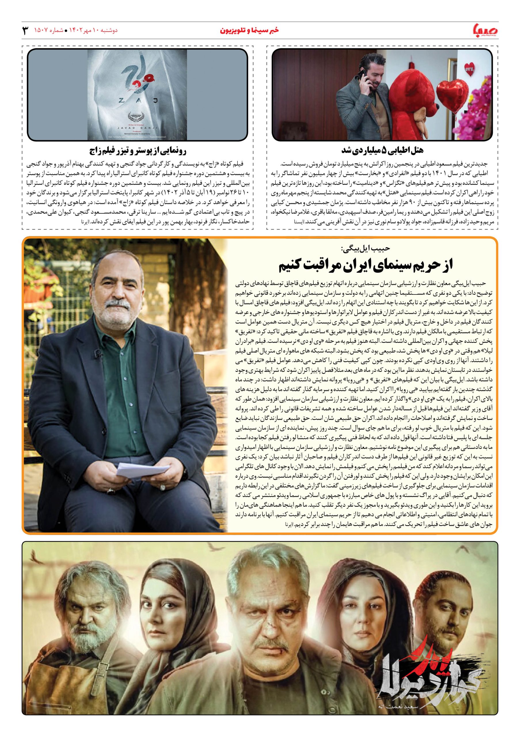 شماره۱۵۰۷| روزنامه صبا دوشنبه ۱۰مهر