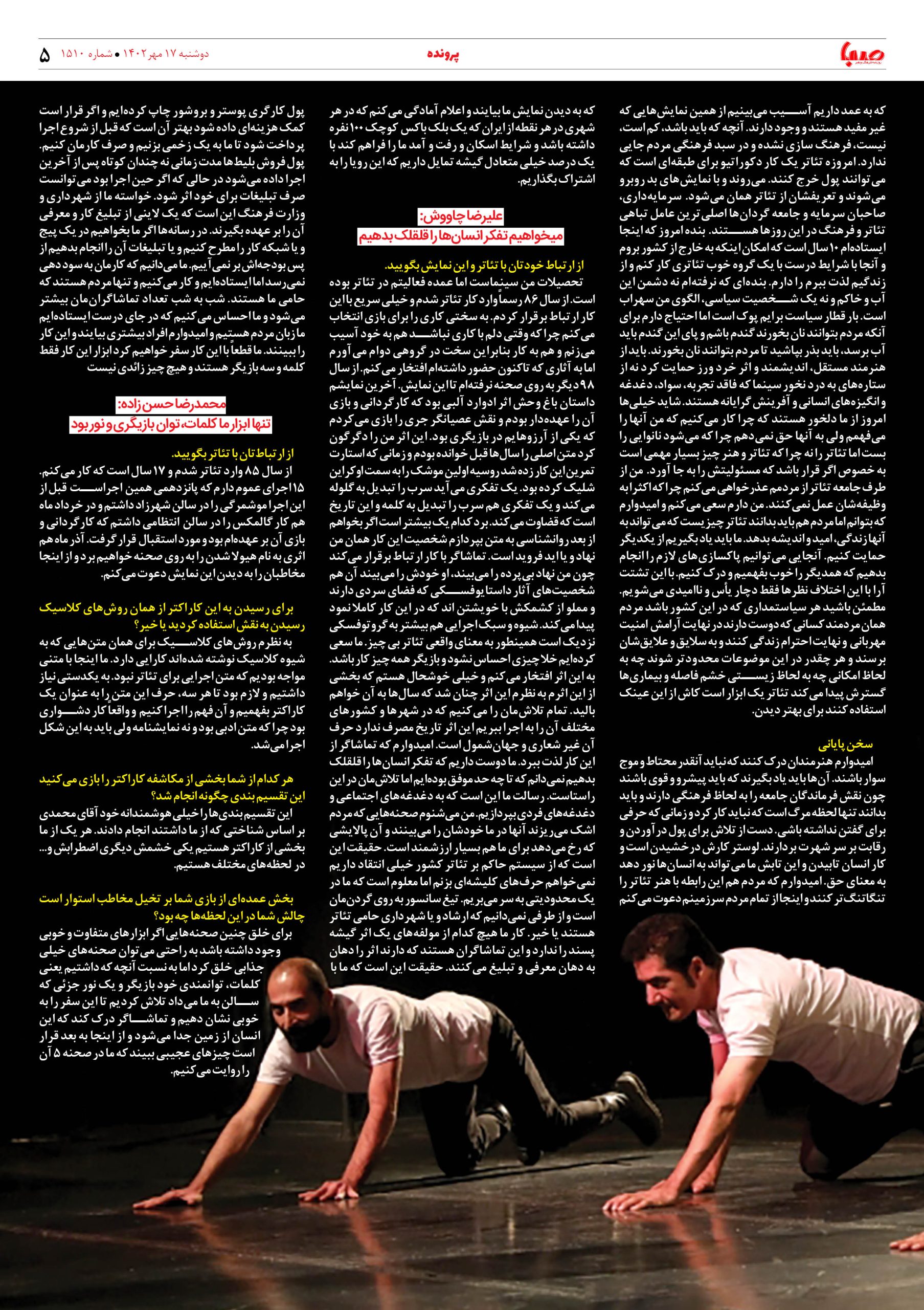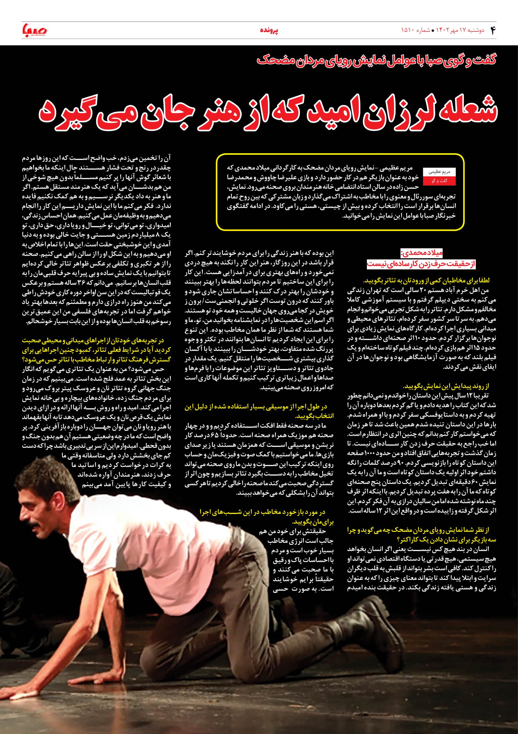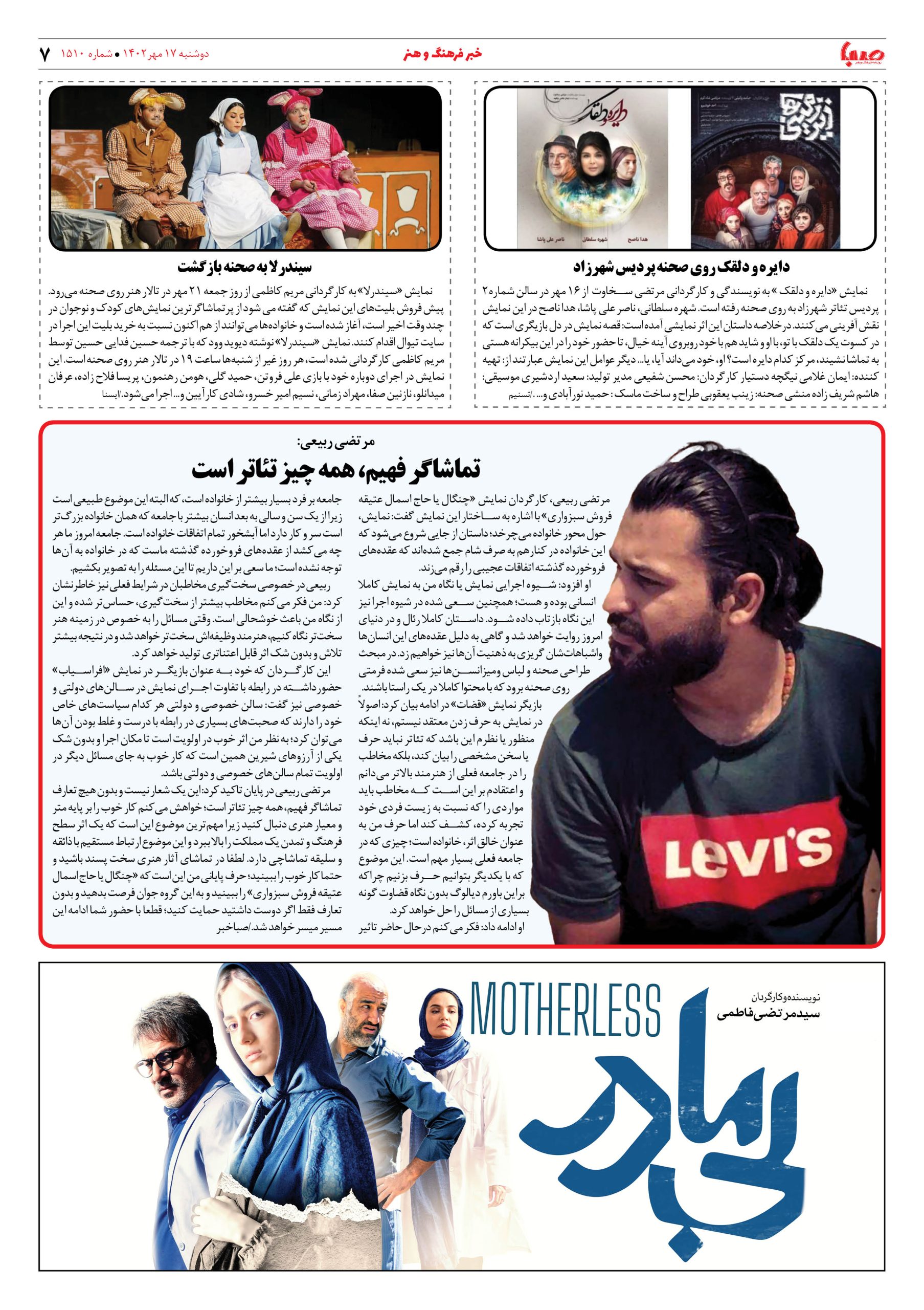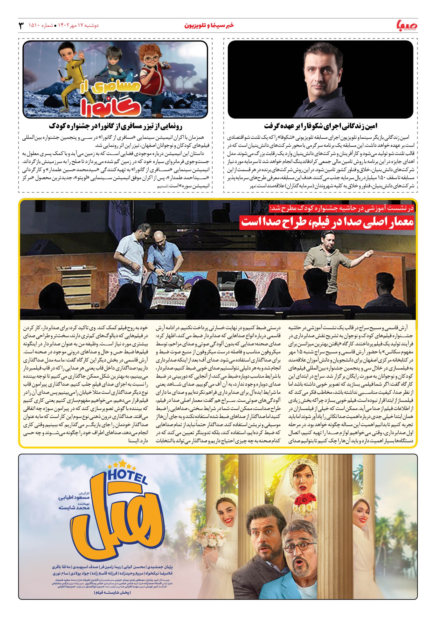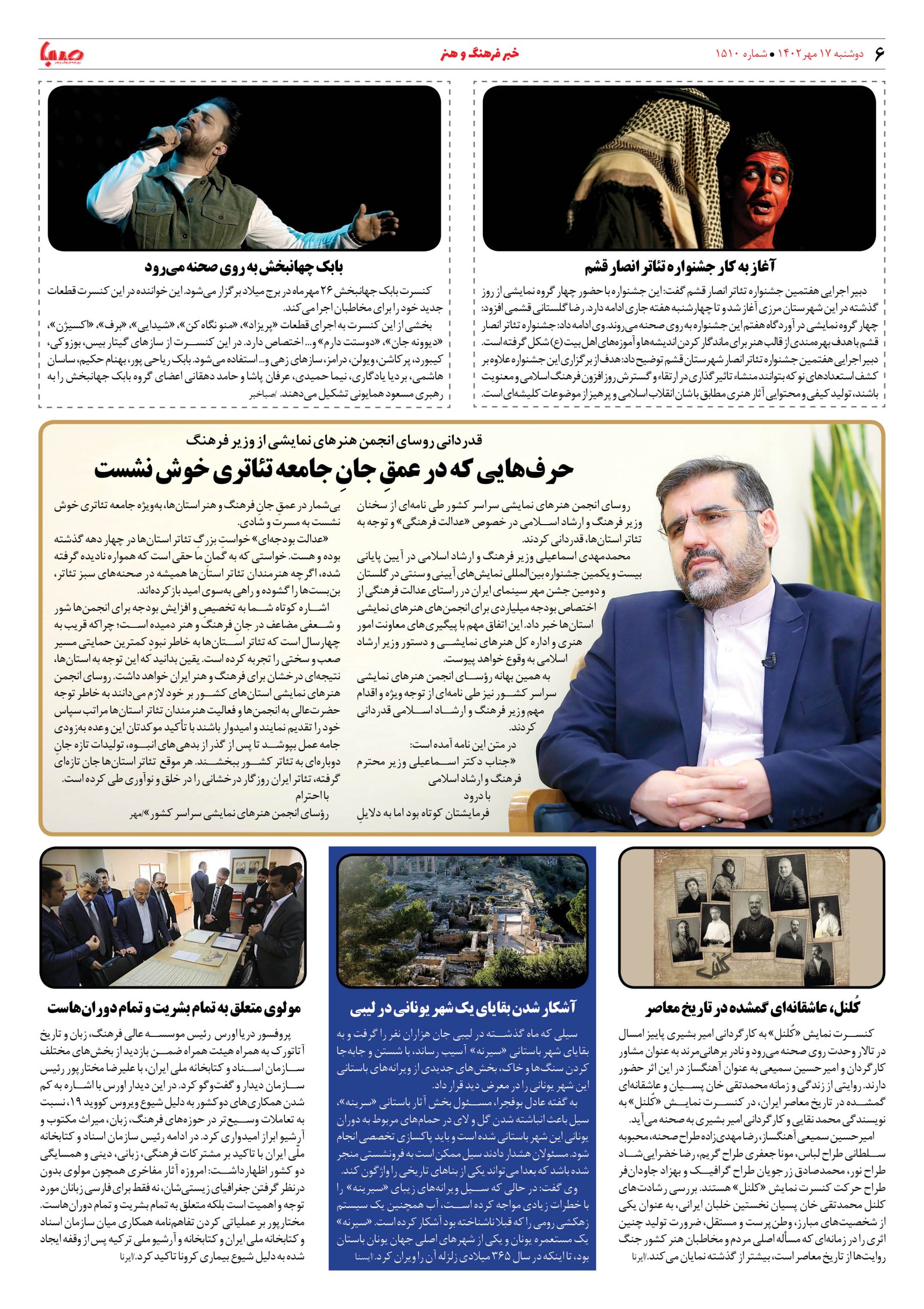 شماره۱۵۱۰| روزنامه صبا دوشنبه ۱۷مهر