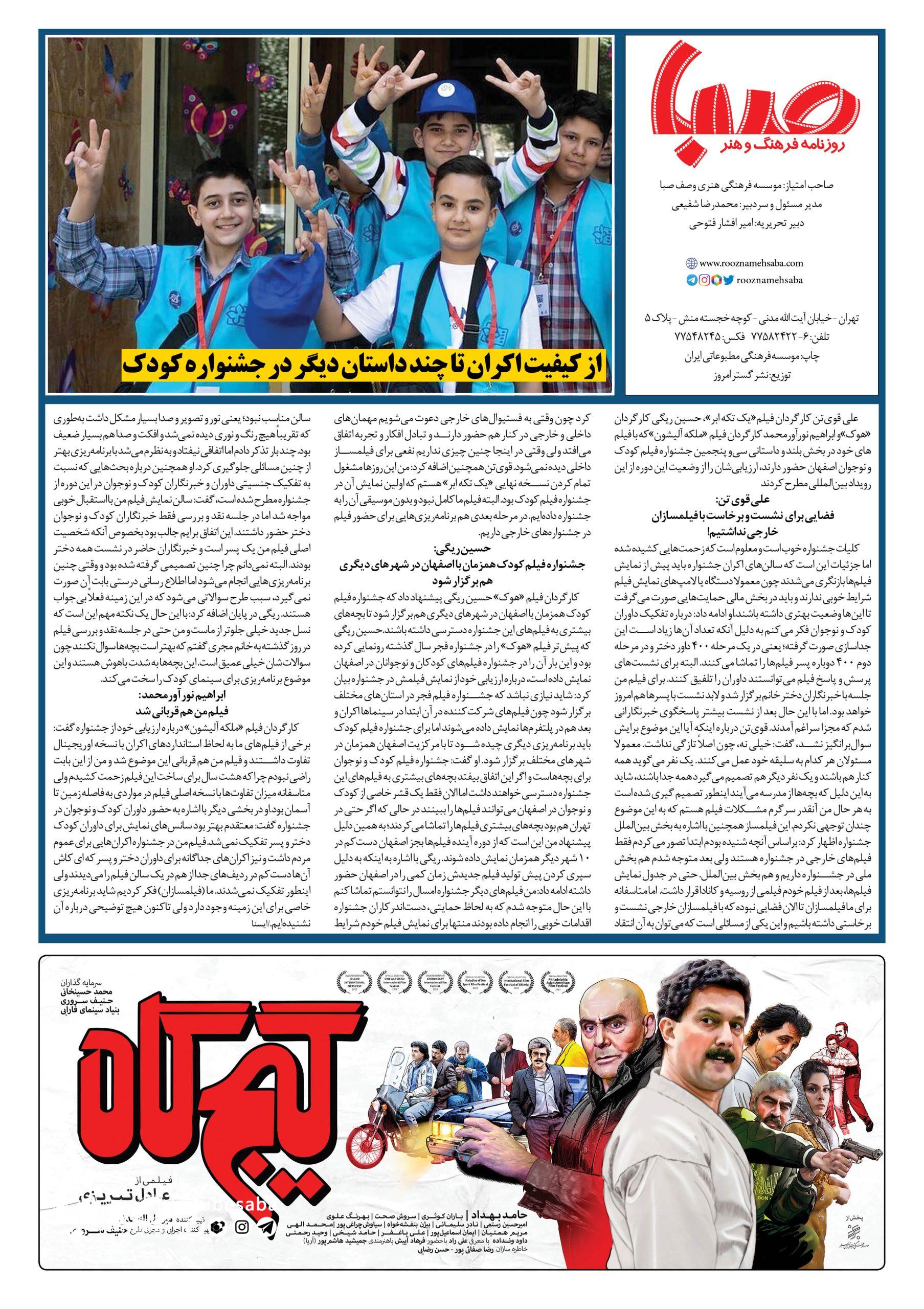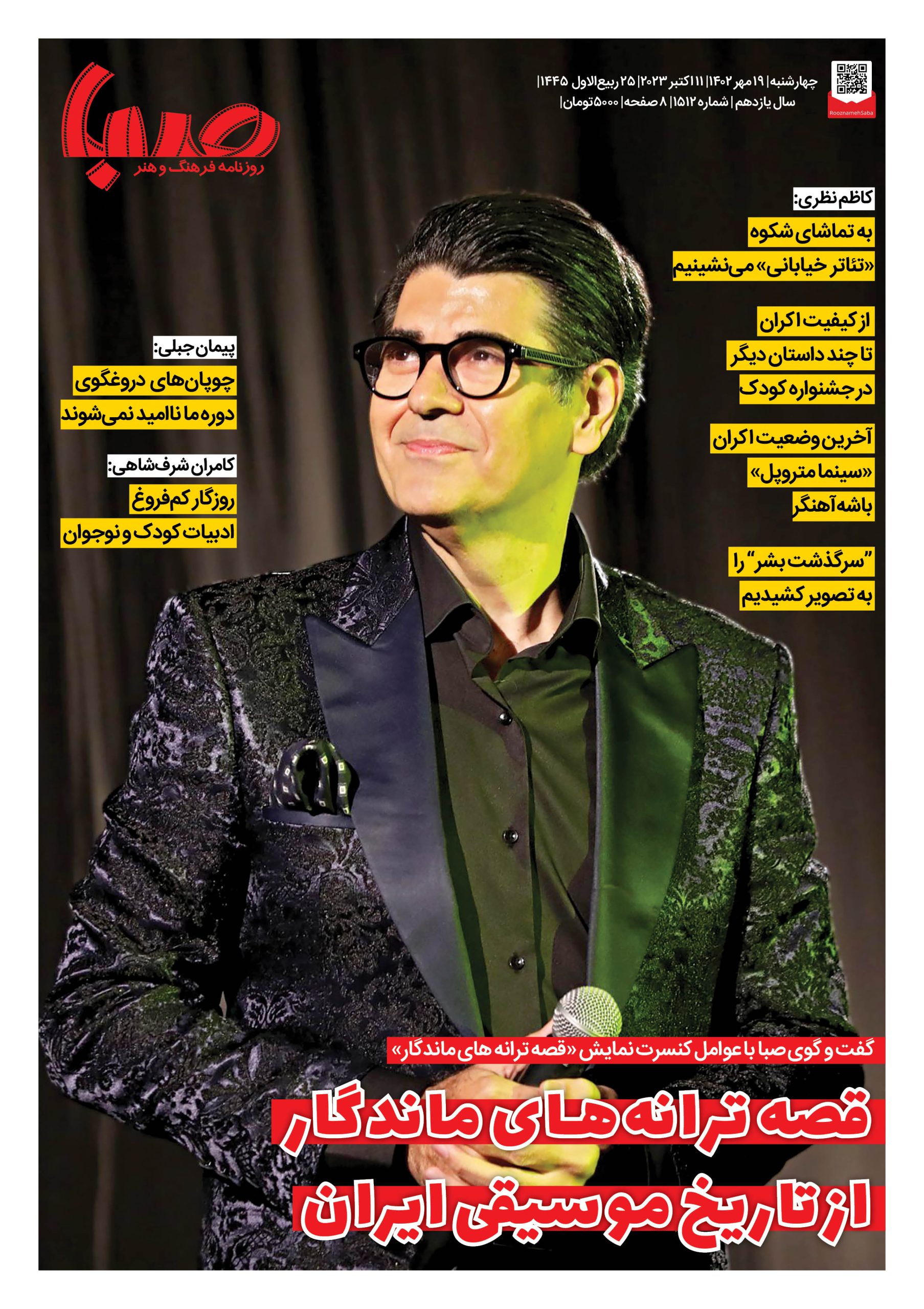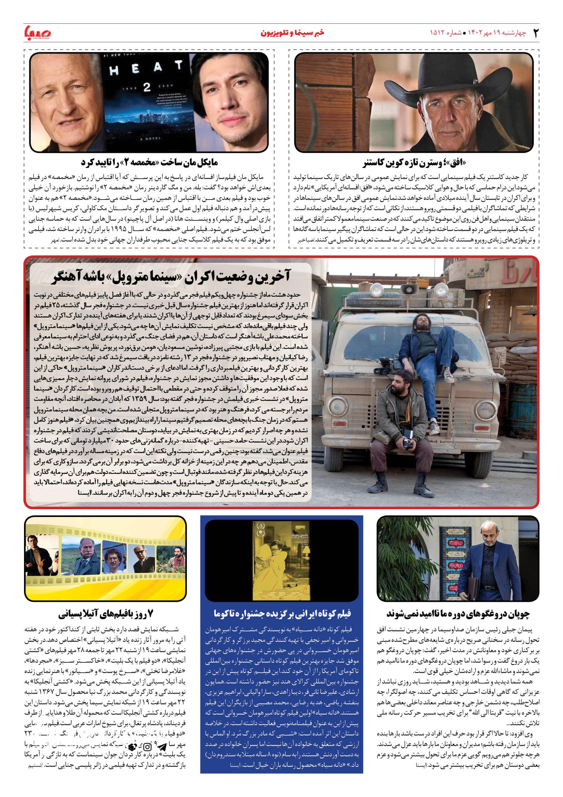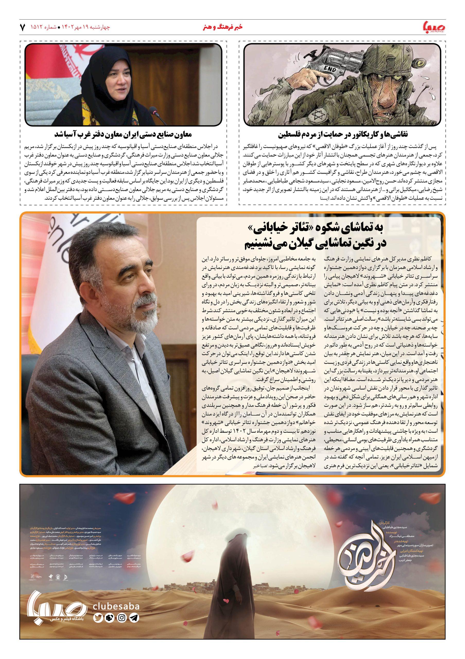 شماره ۱۵۱۲| روزنامه صبا چهارشنبه ۱۹مهر