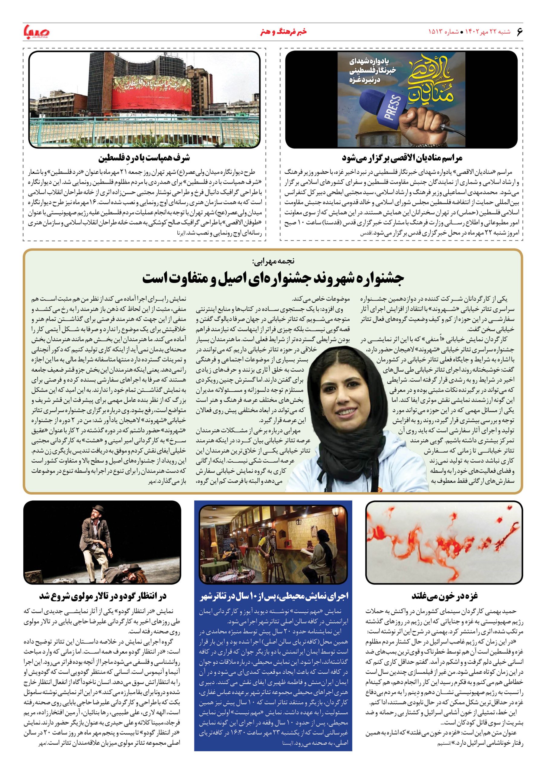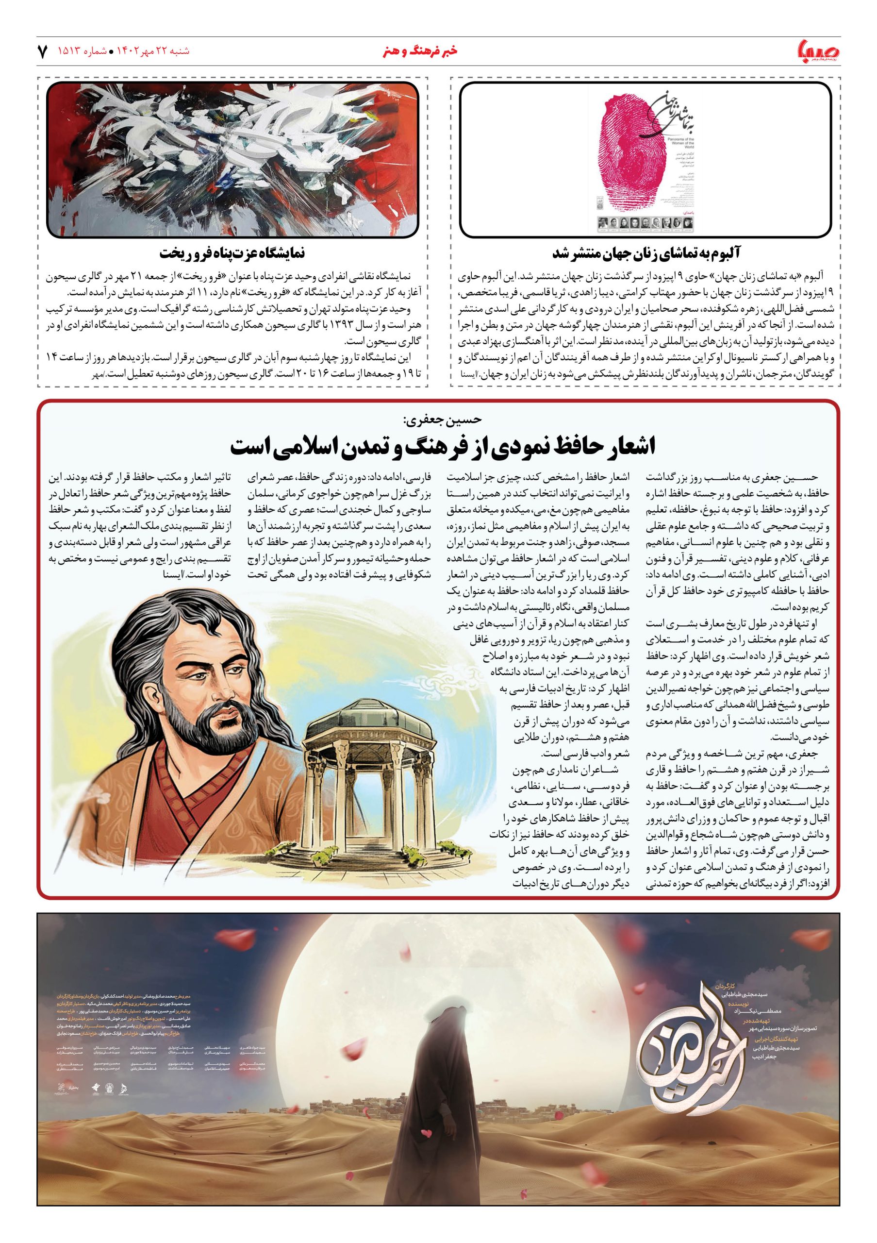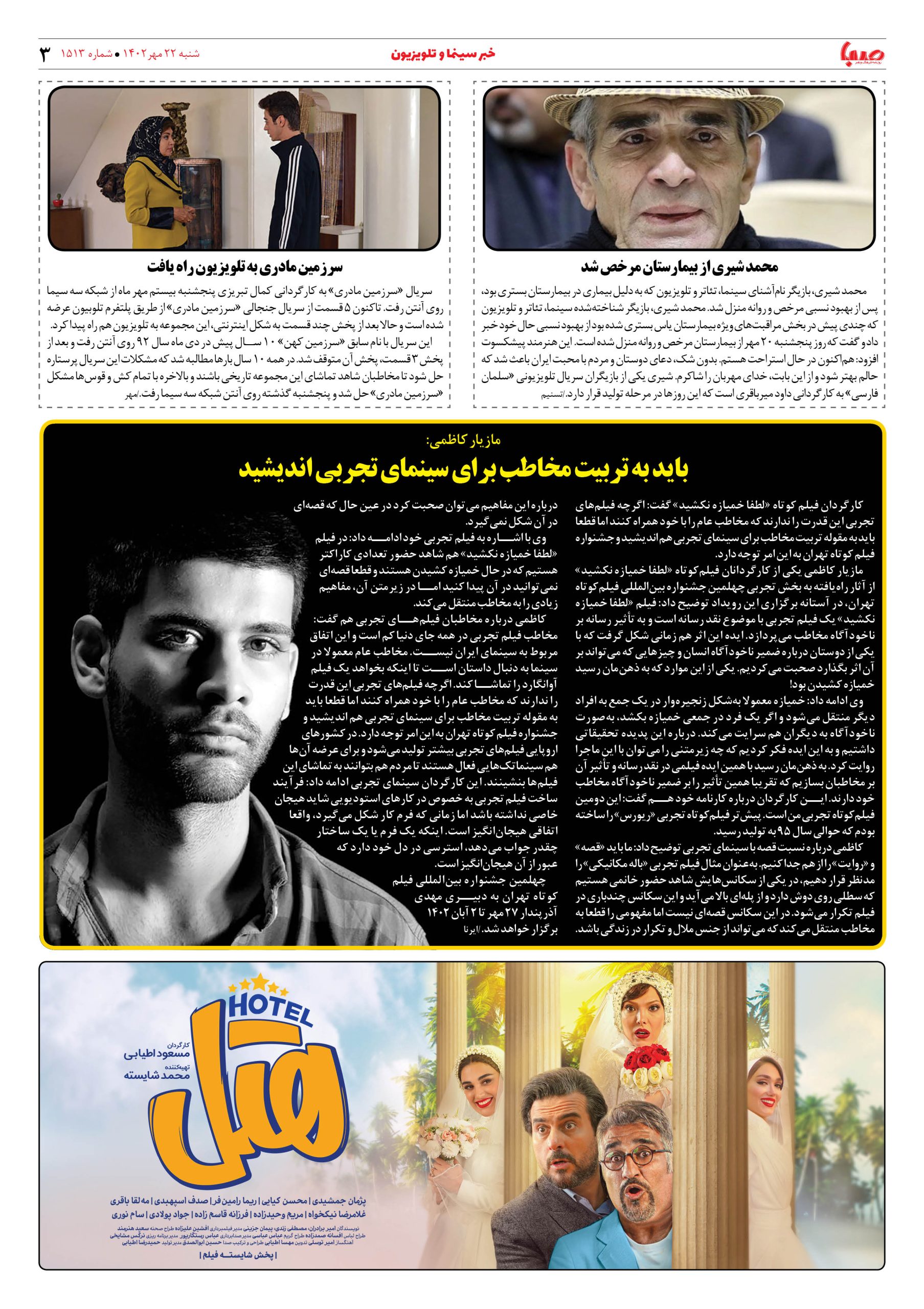 شماره۱۵۱۳| روزنامه صبا شنبه ۲۲مهر