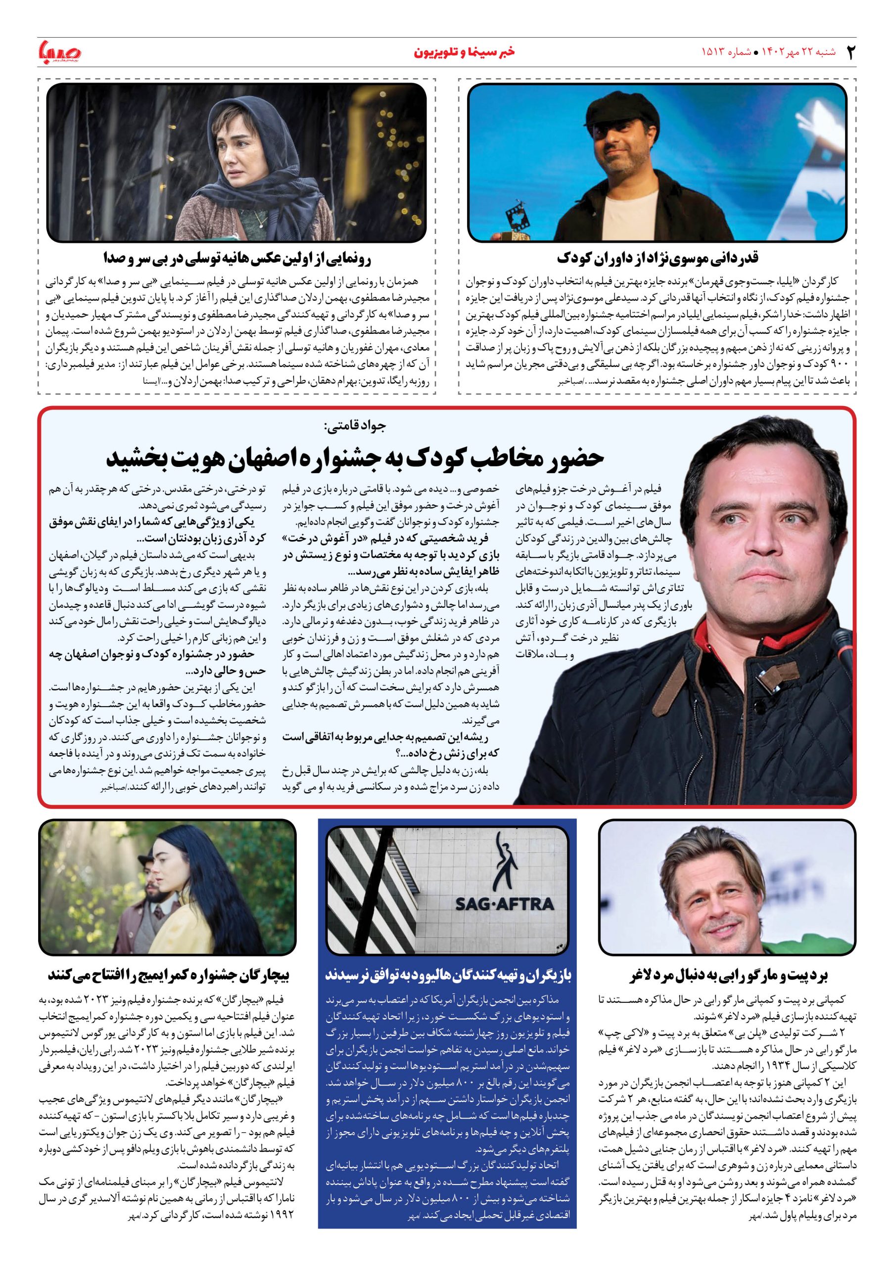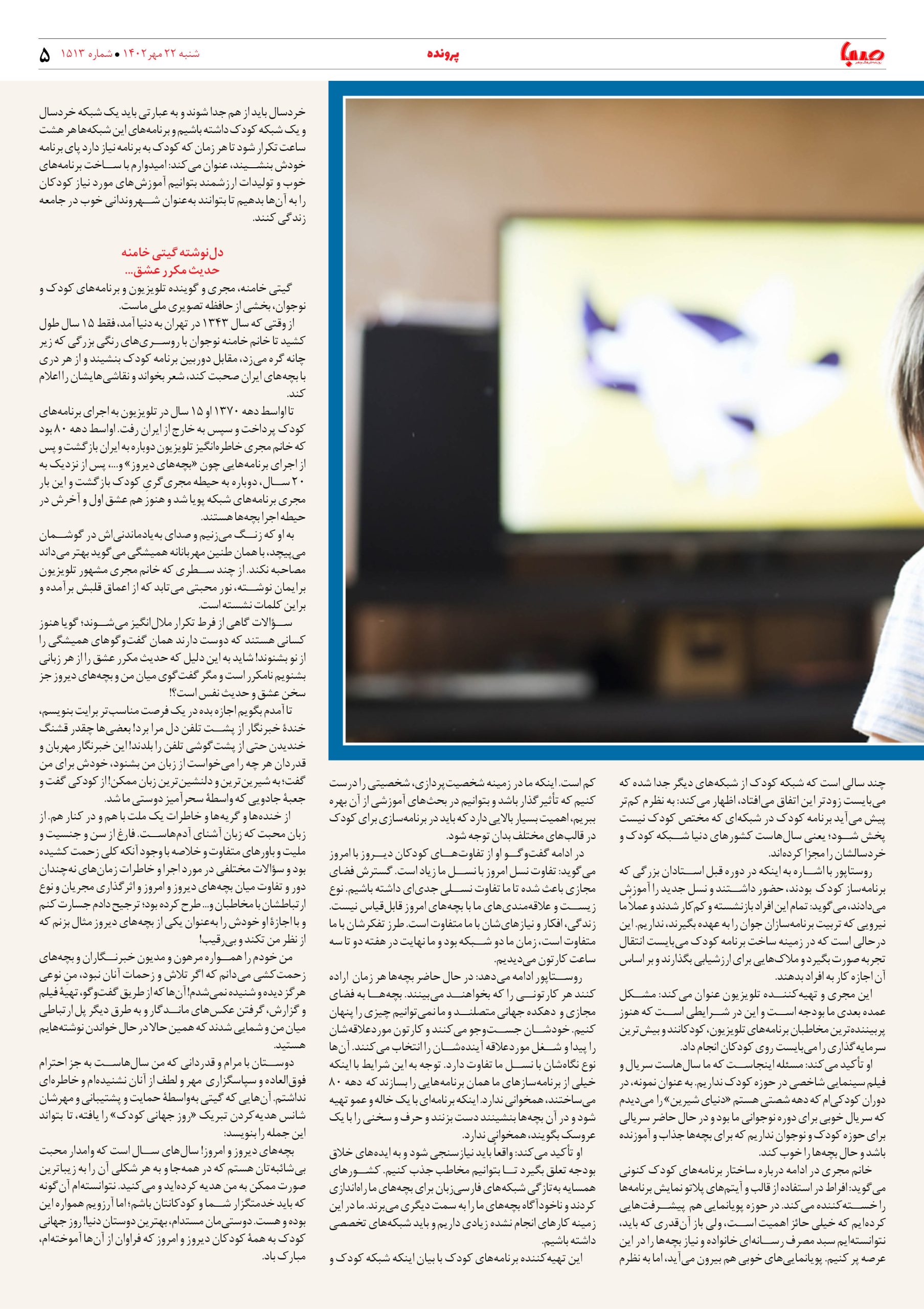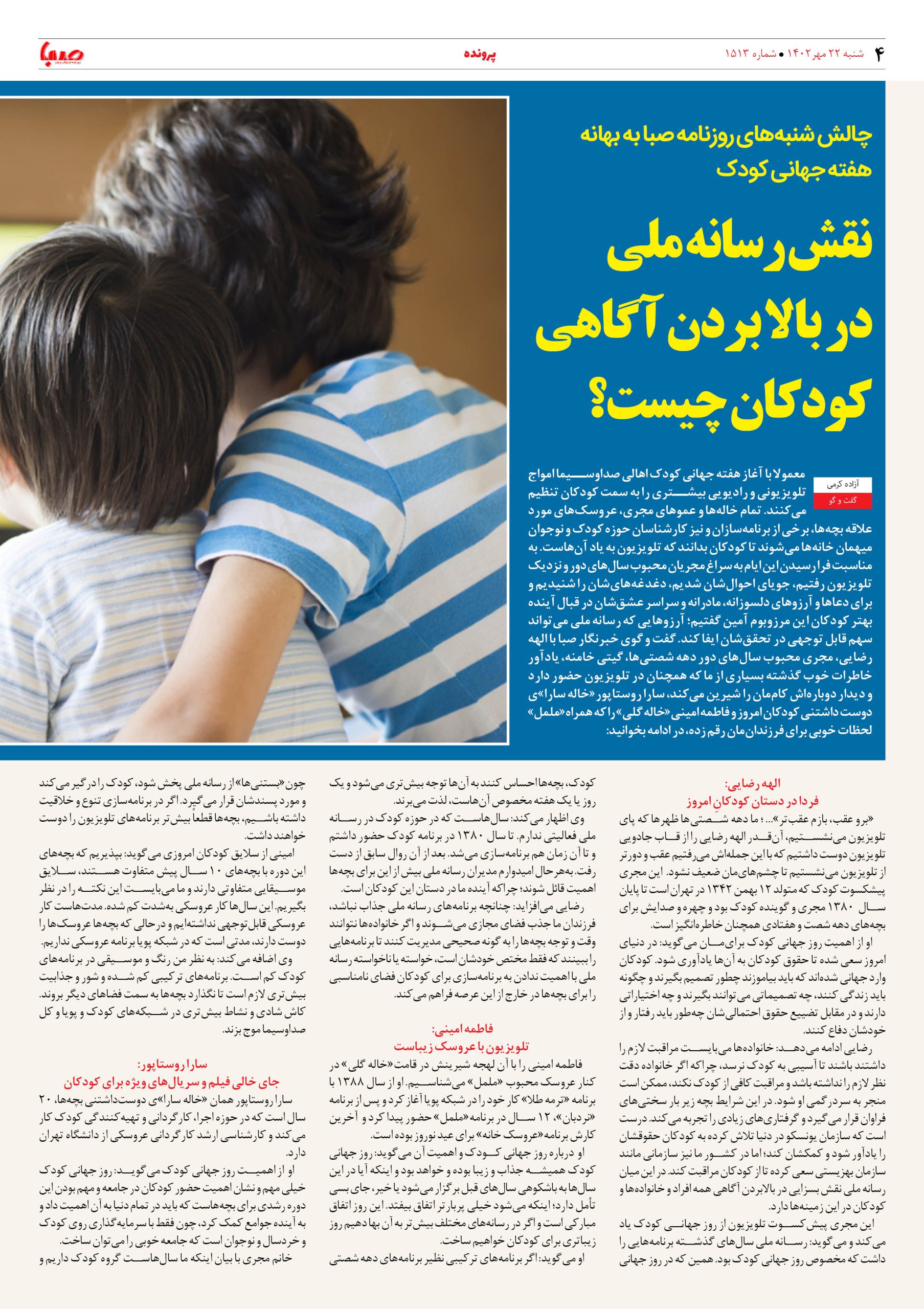 شماره۱۵۱۳| روزنامه صبا شنبه ۲۲مهر