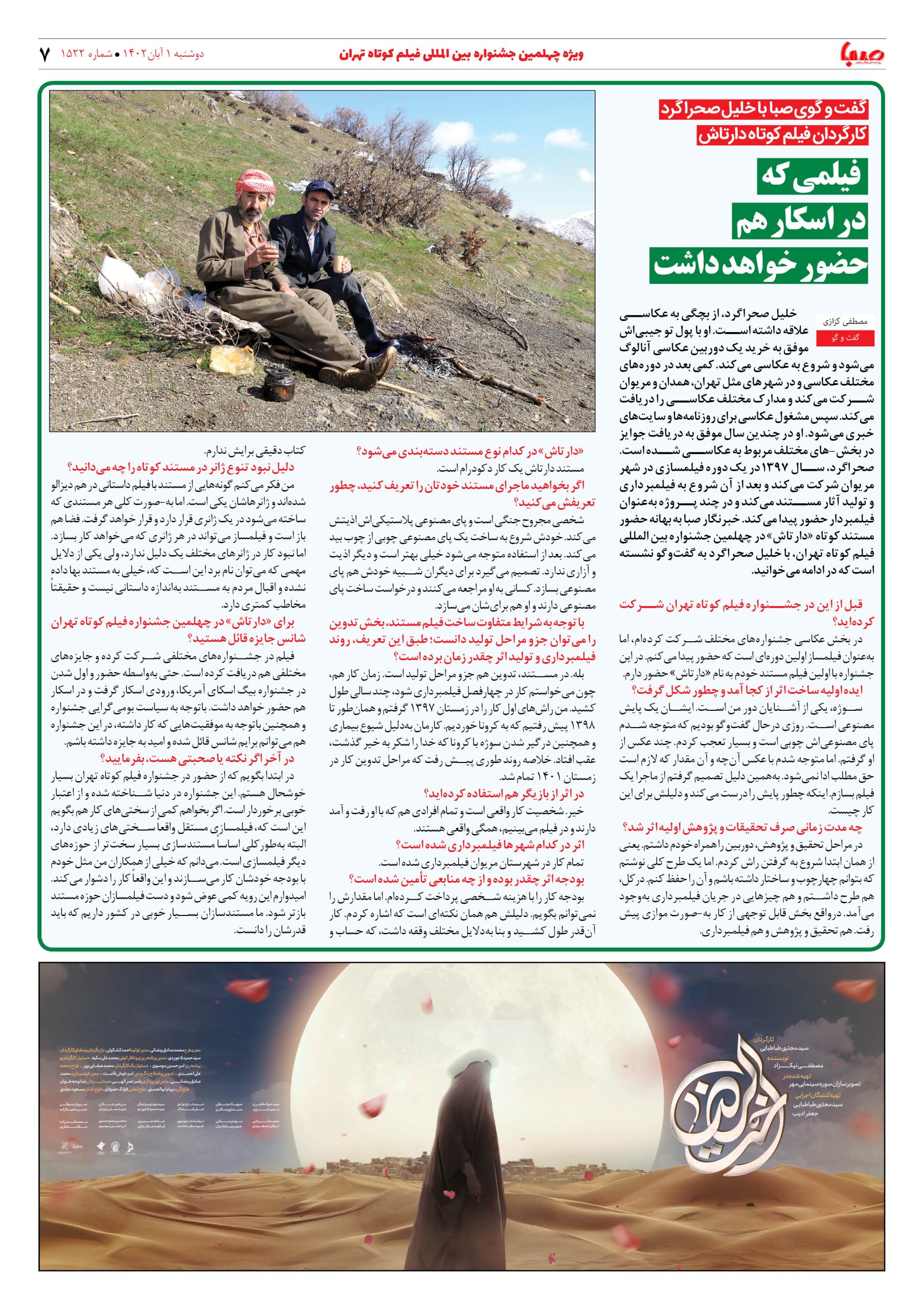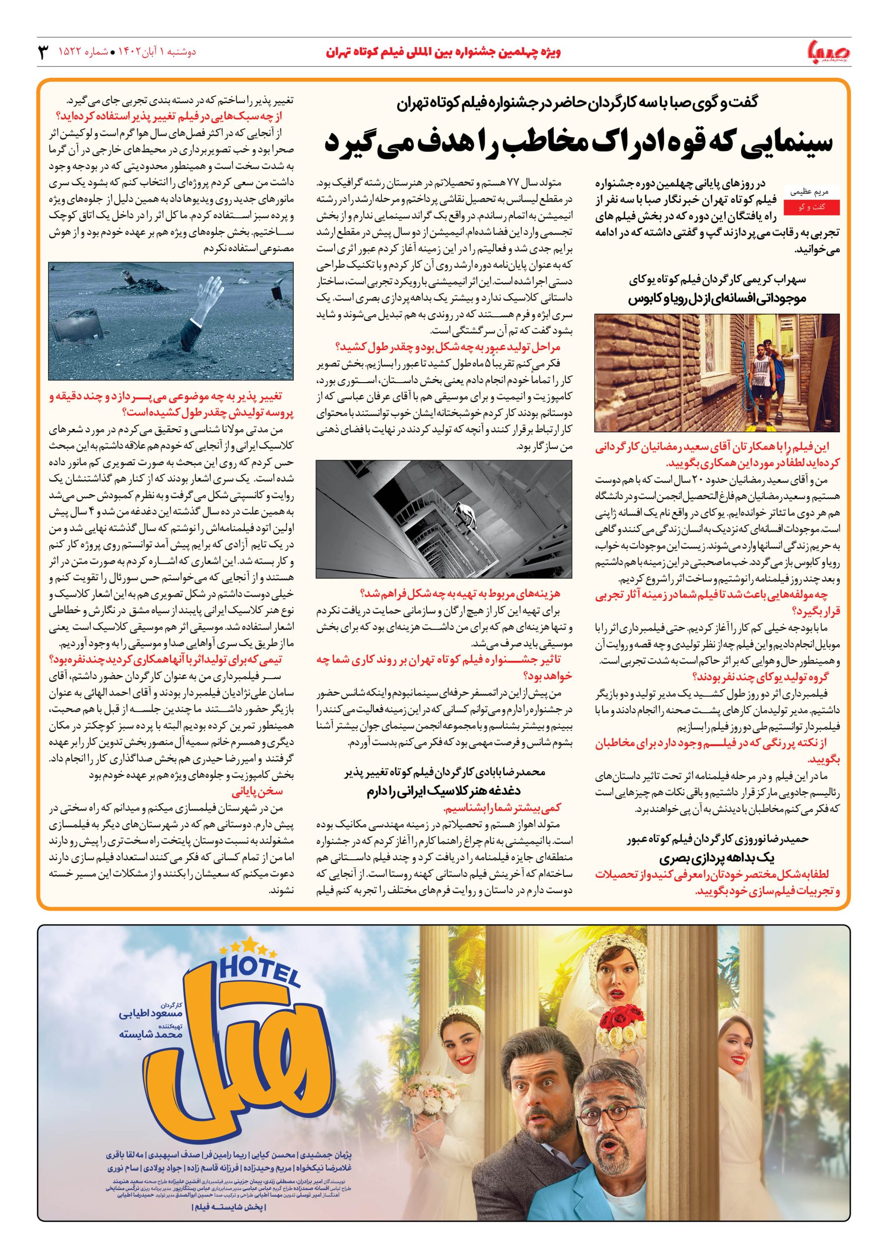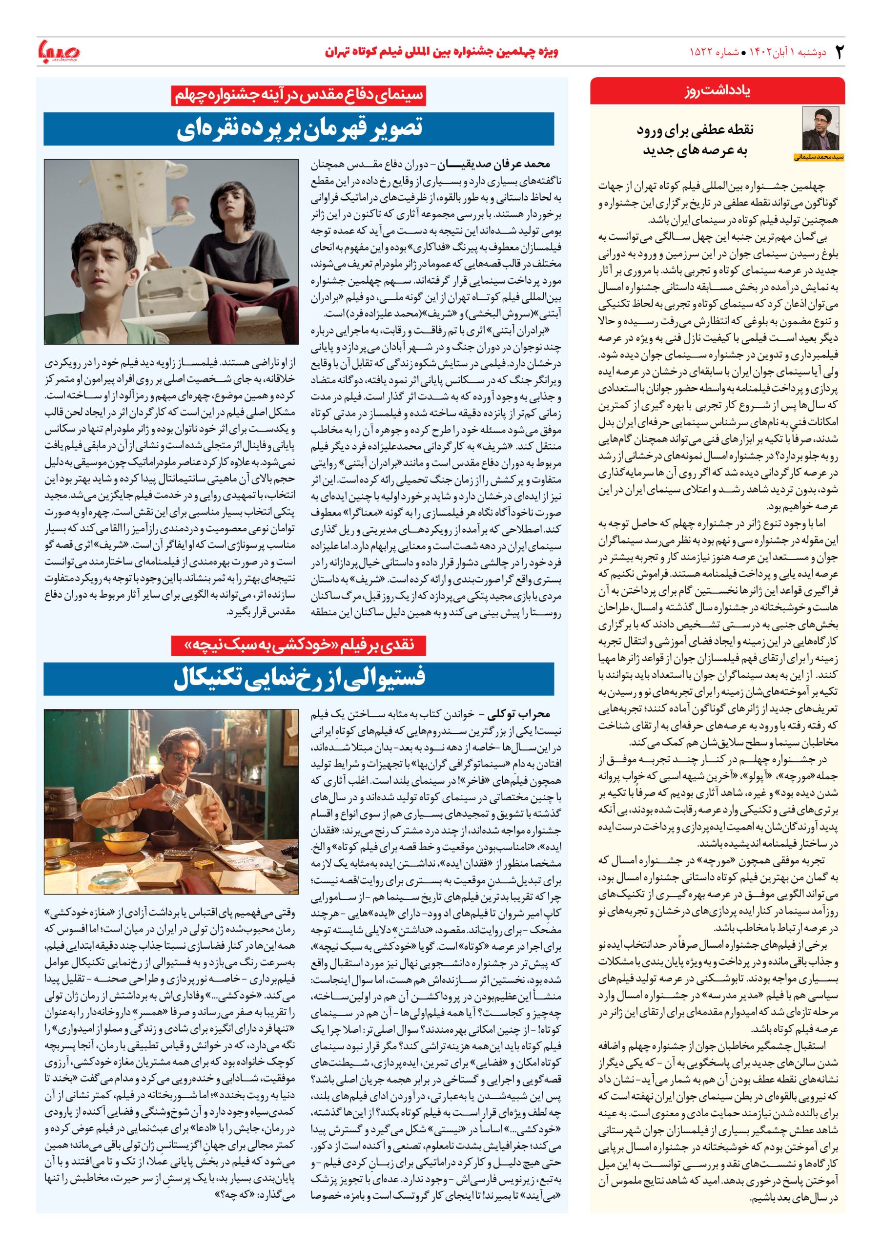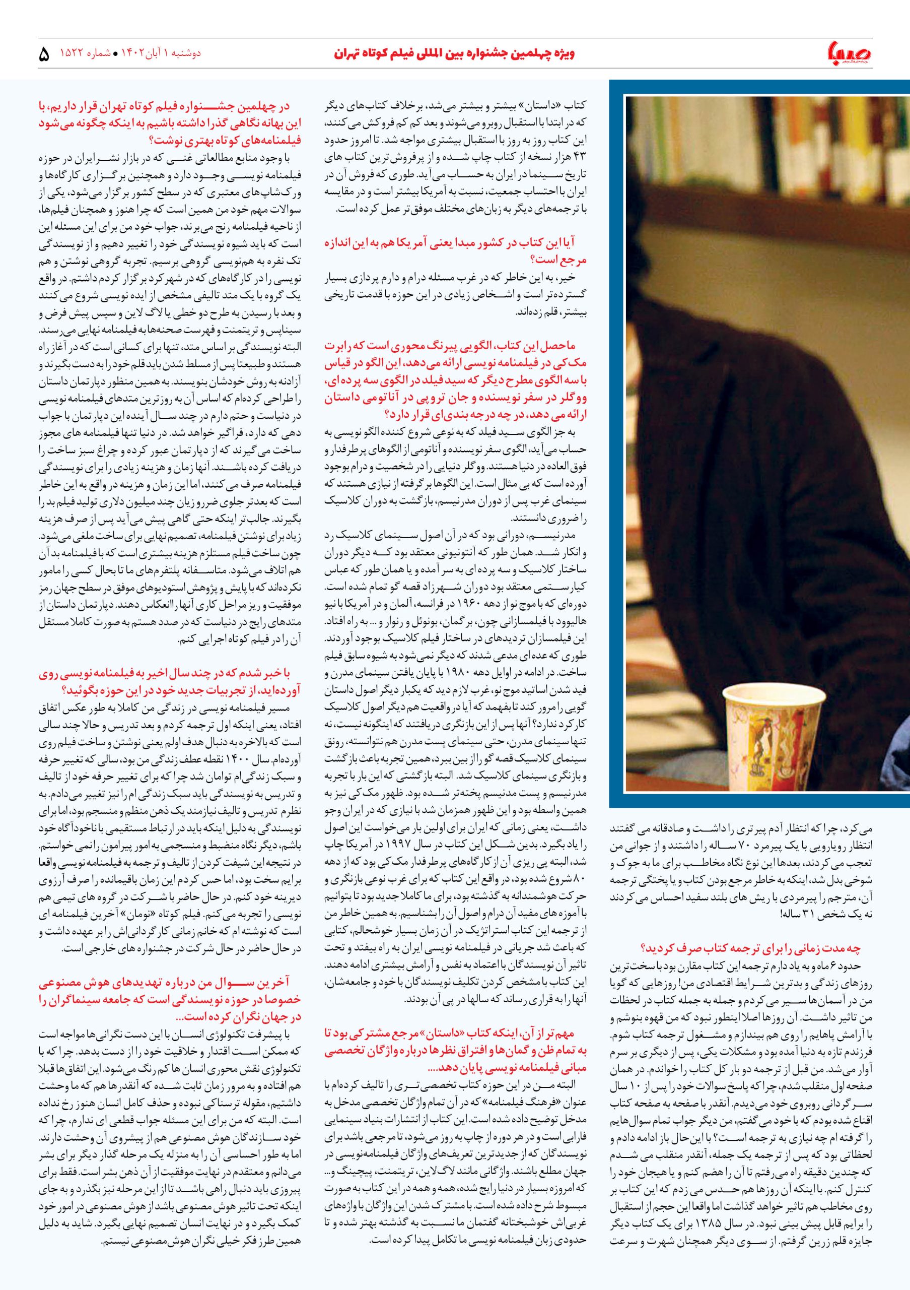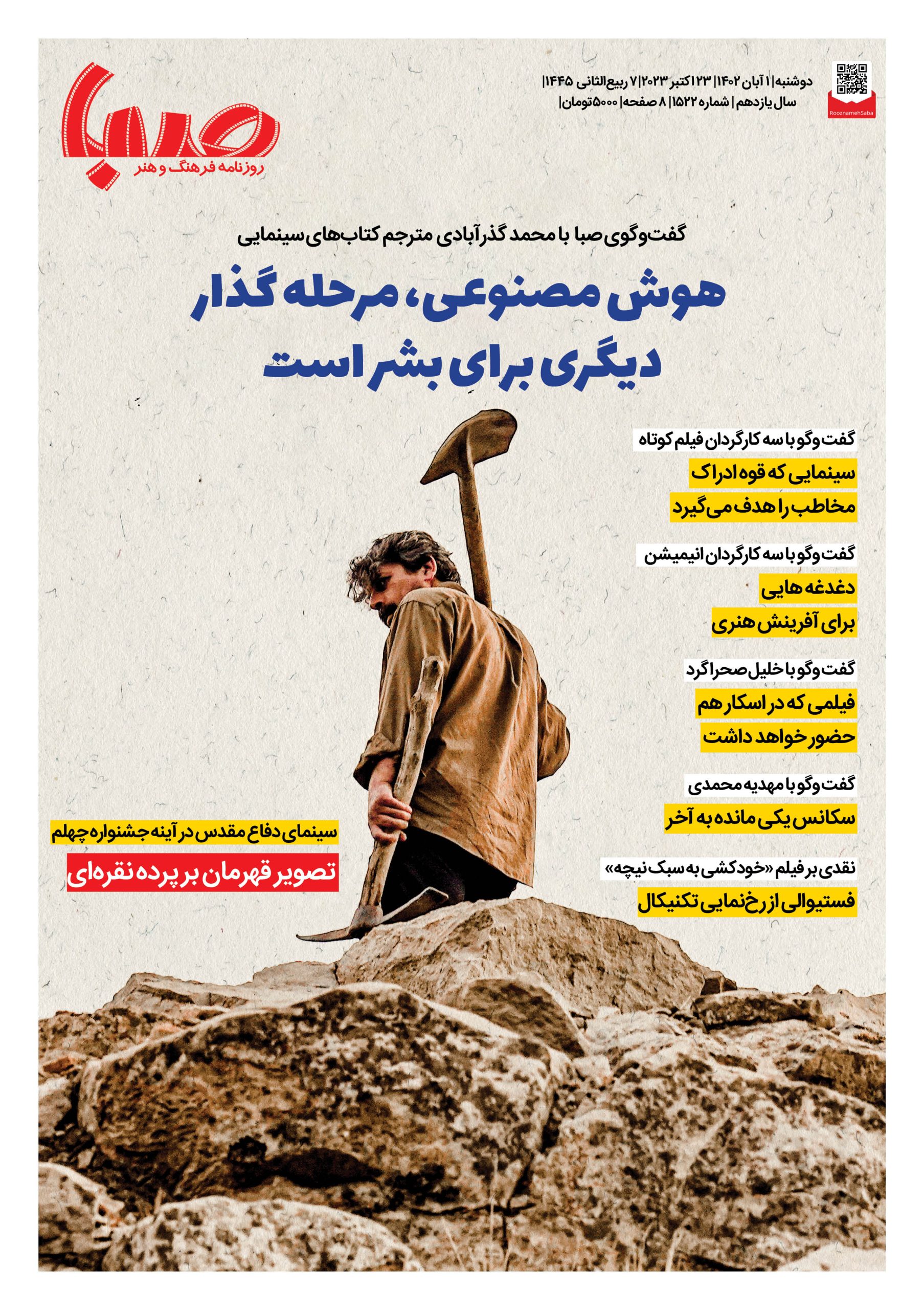شماره۱۵۲۲| روزنامه صبا دوشنبه ۱ آبان