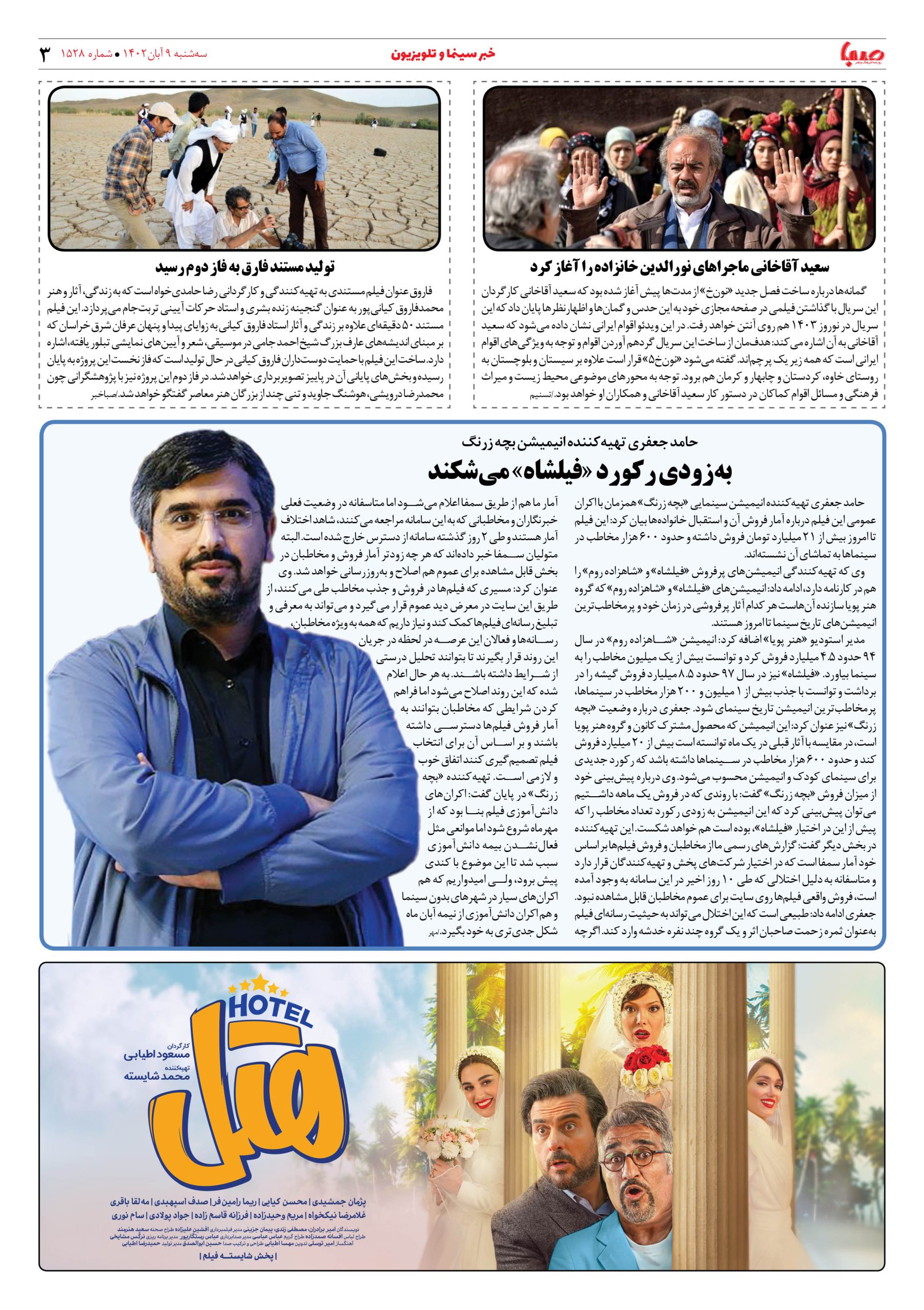 شماره۱۵۲۸| روزنامه صباسه شنبه ۹ آبان