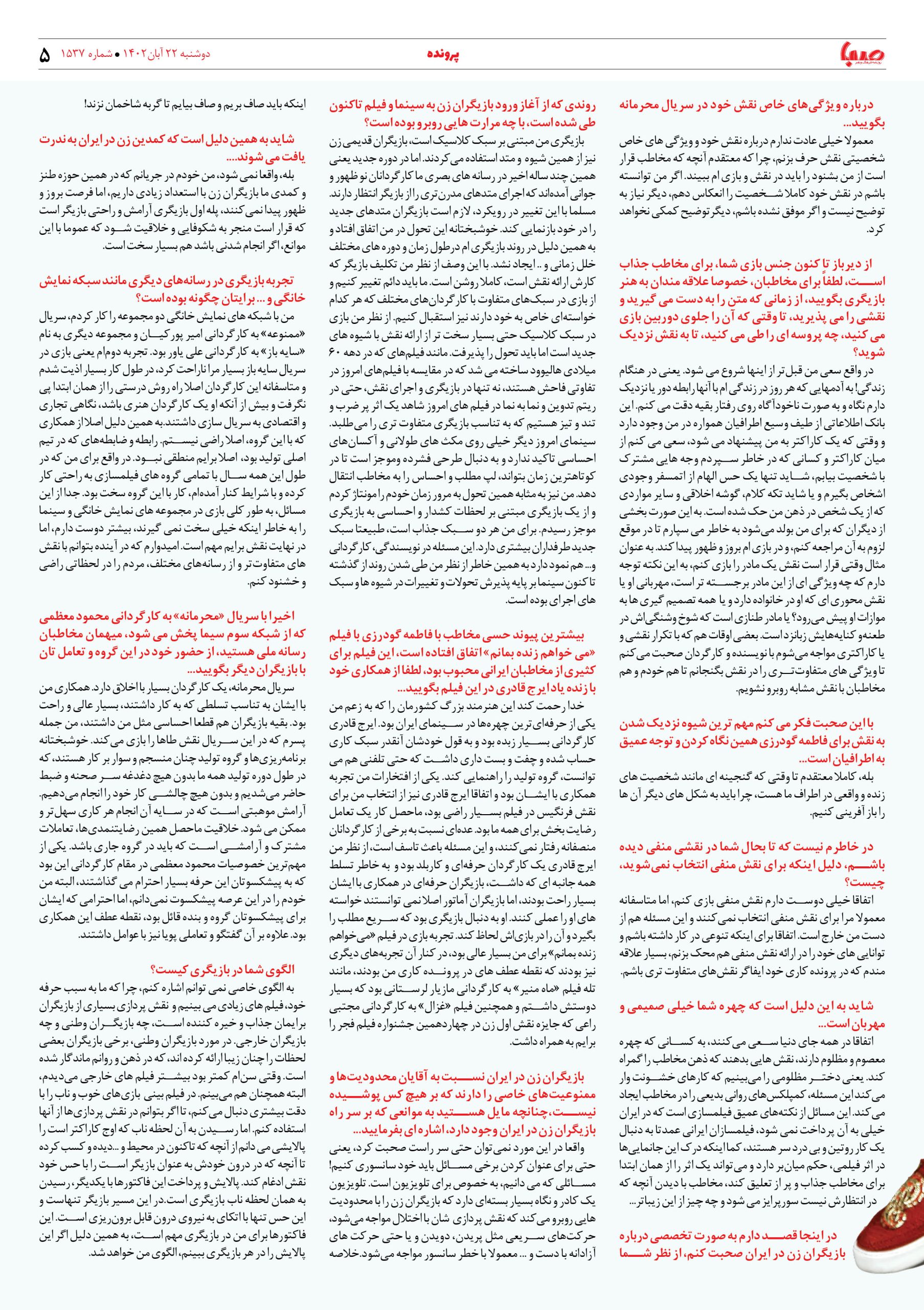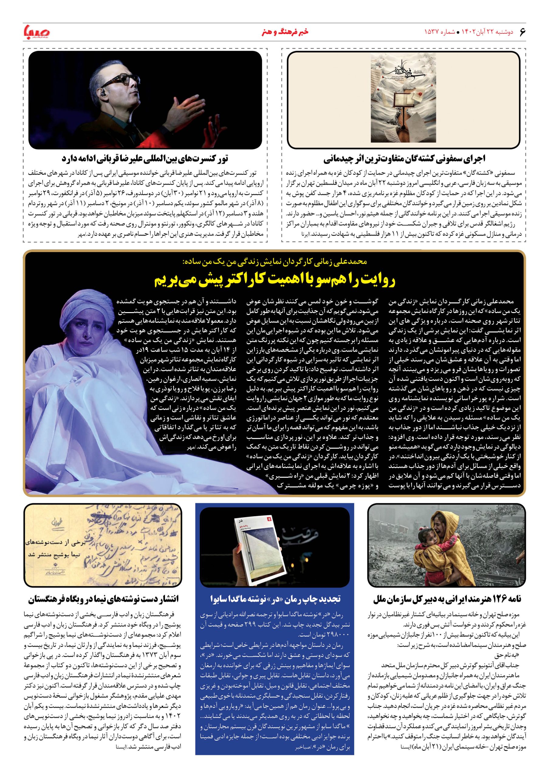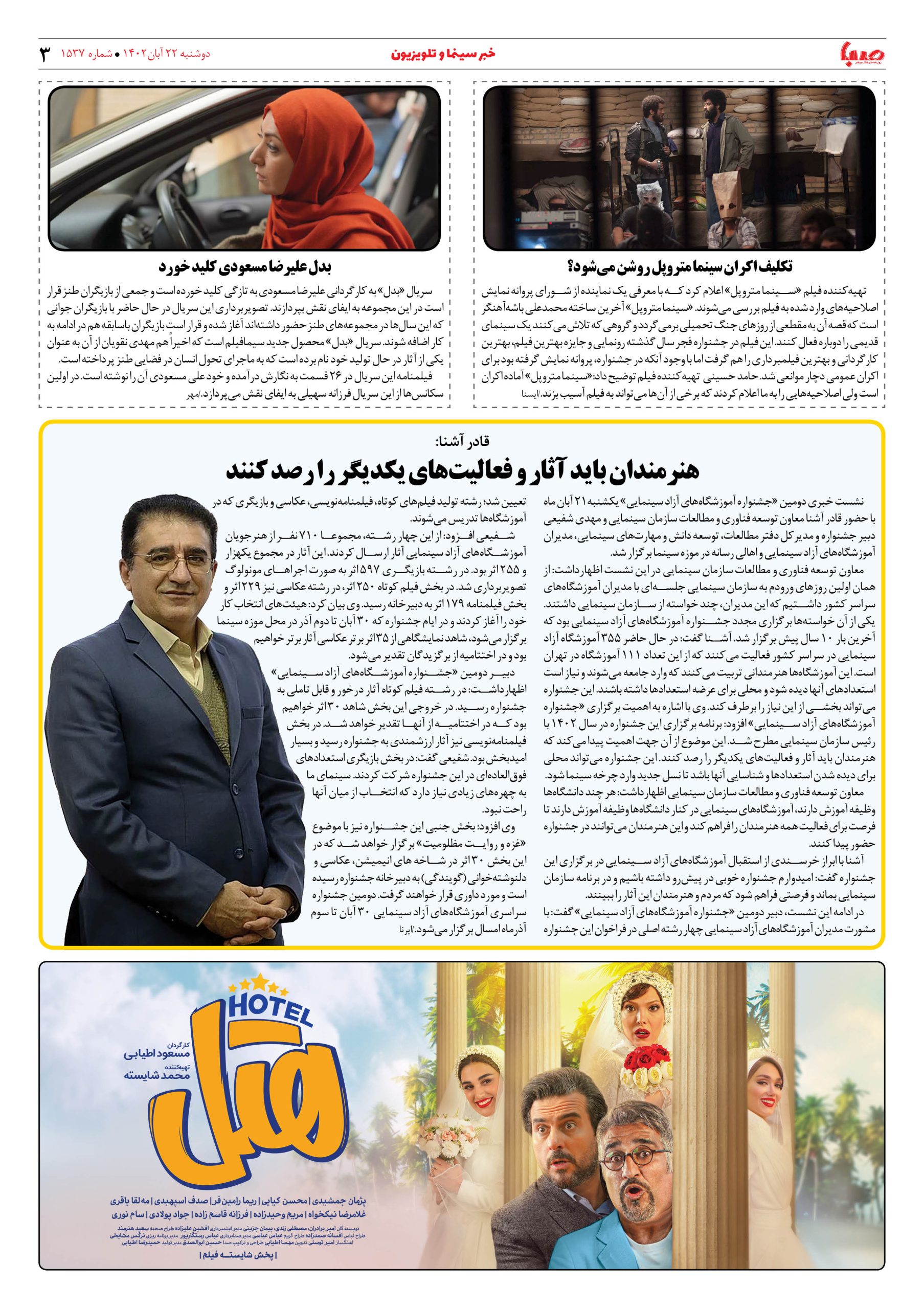 شماره۱۵۳۷| روزنامه صبا دوشنبه ۲۲ آبان