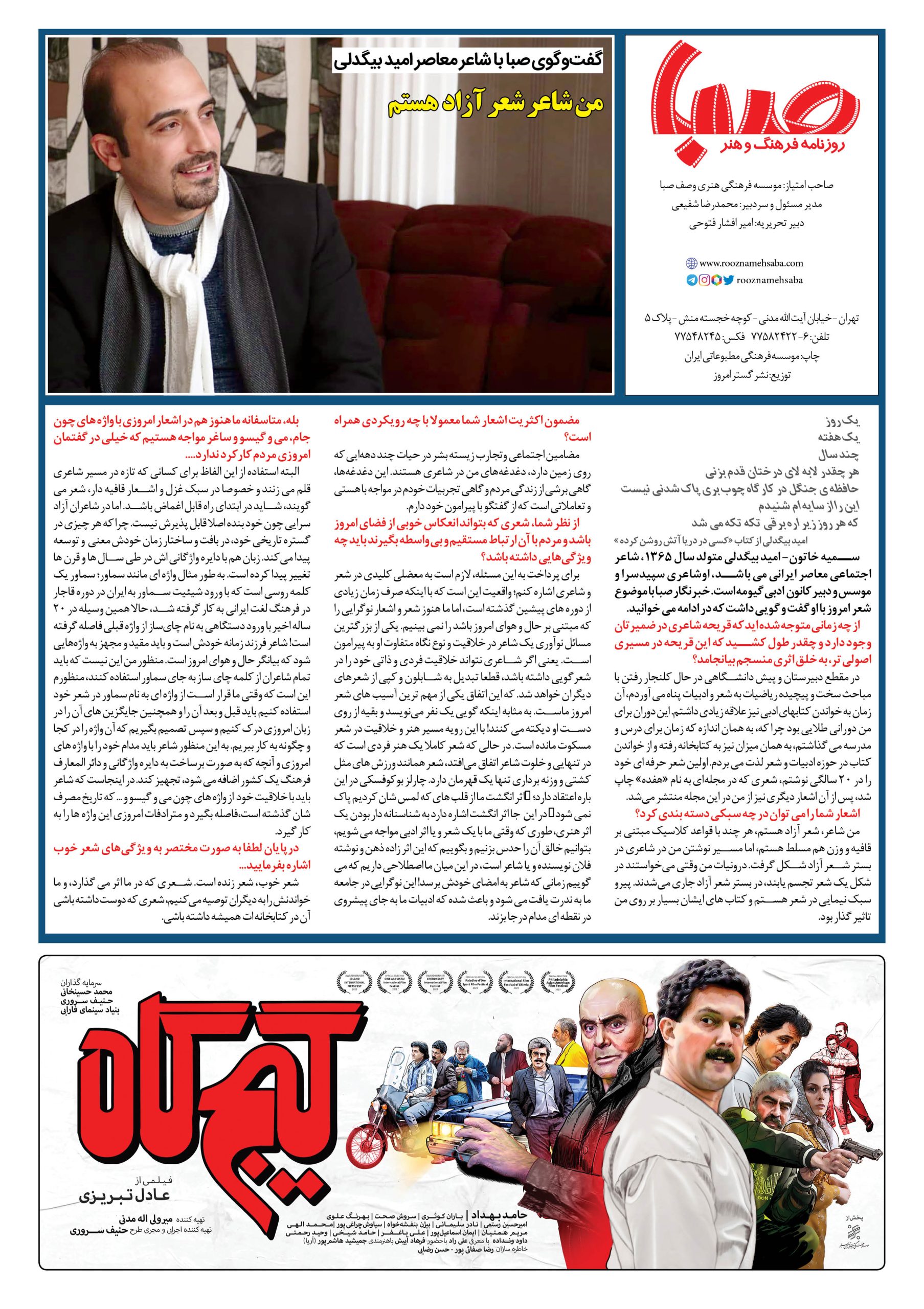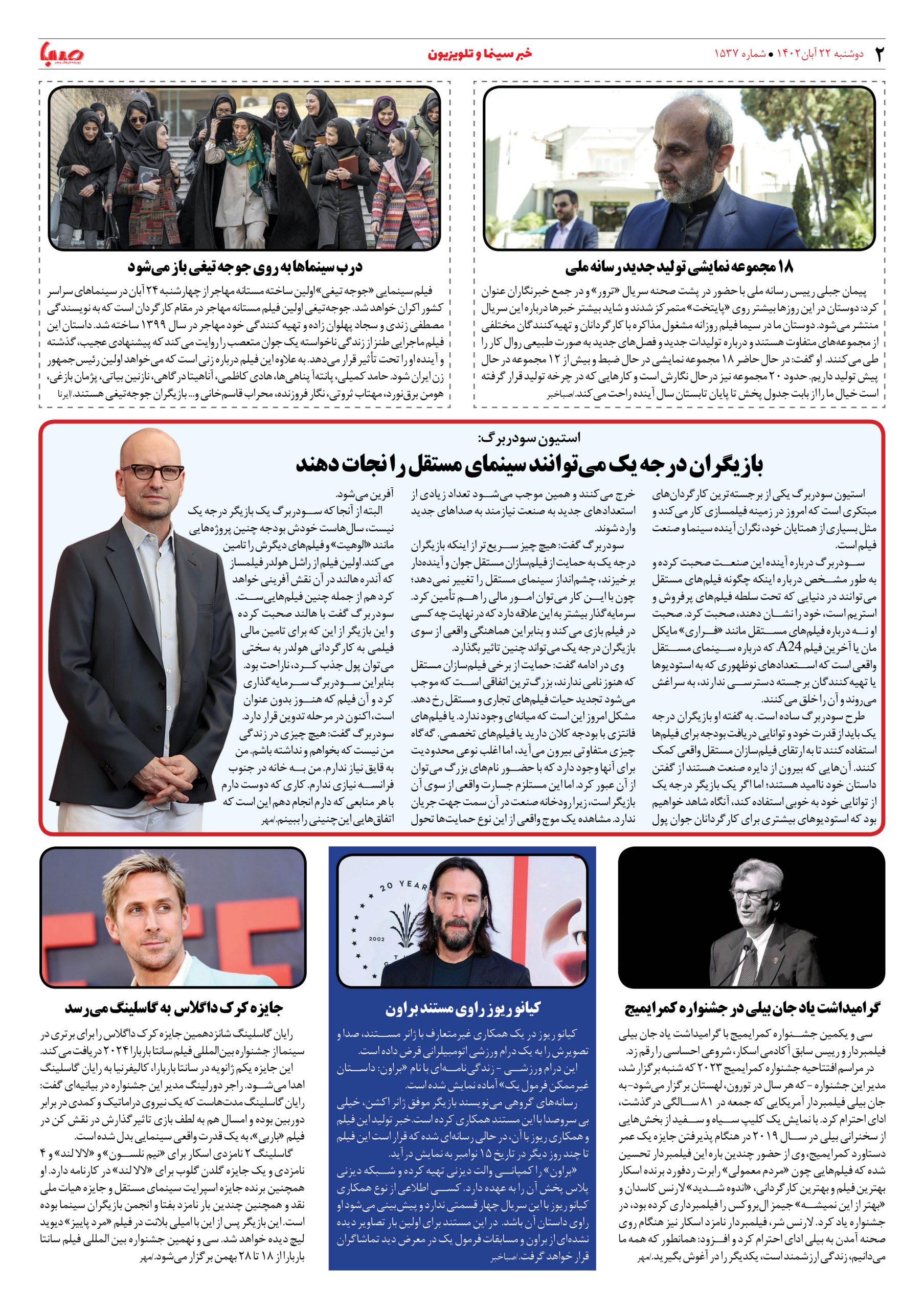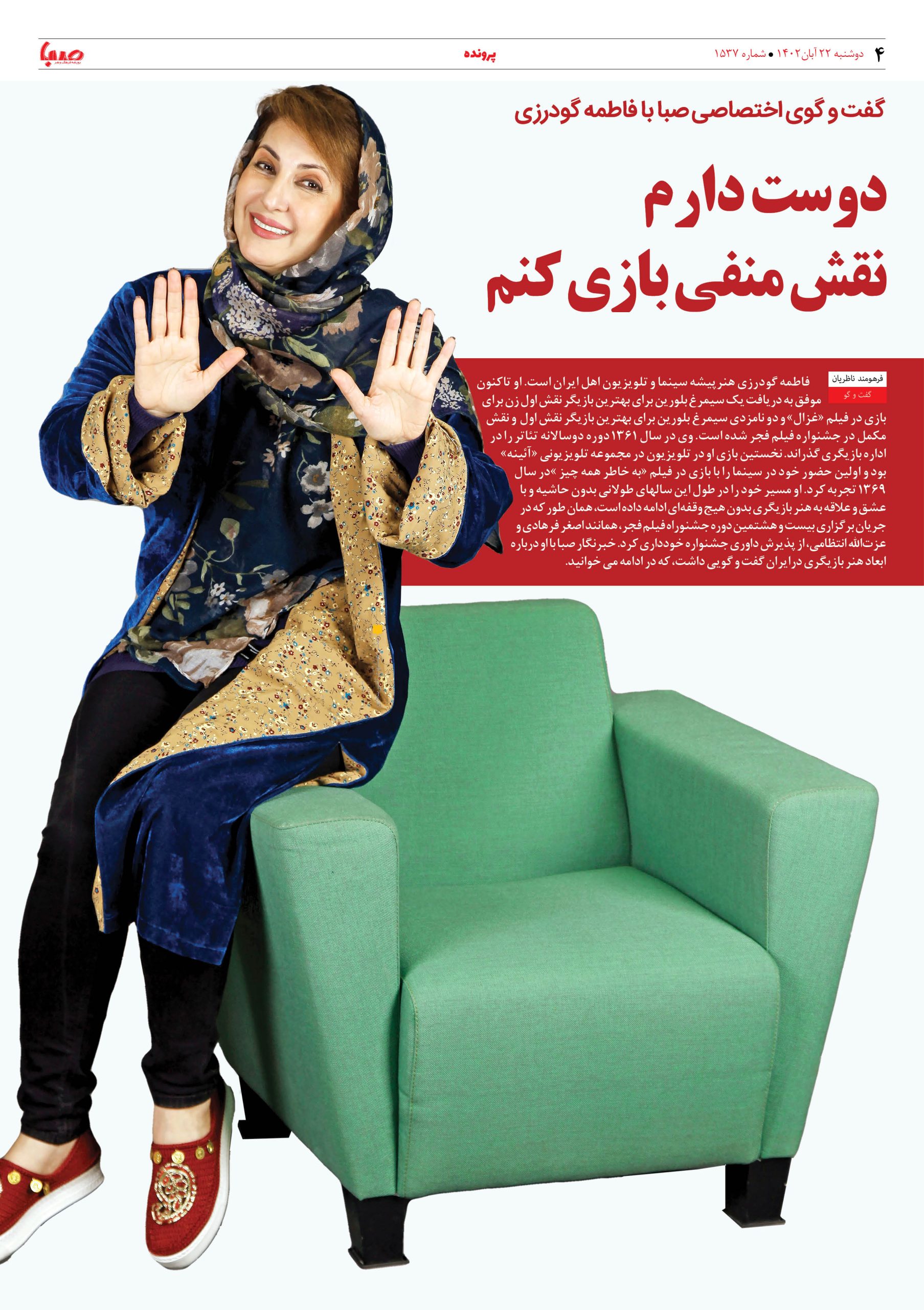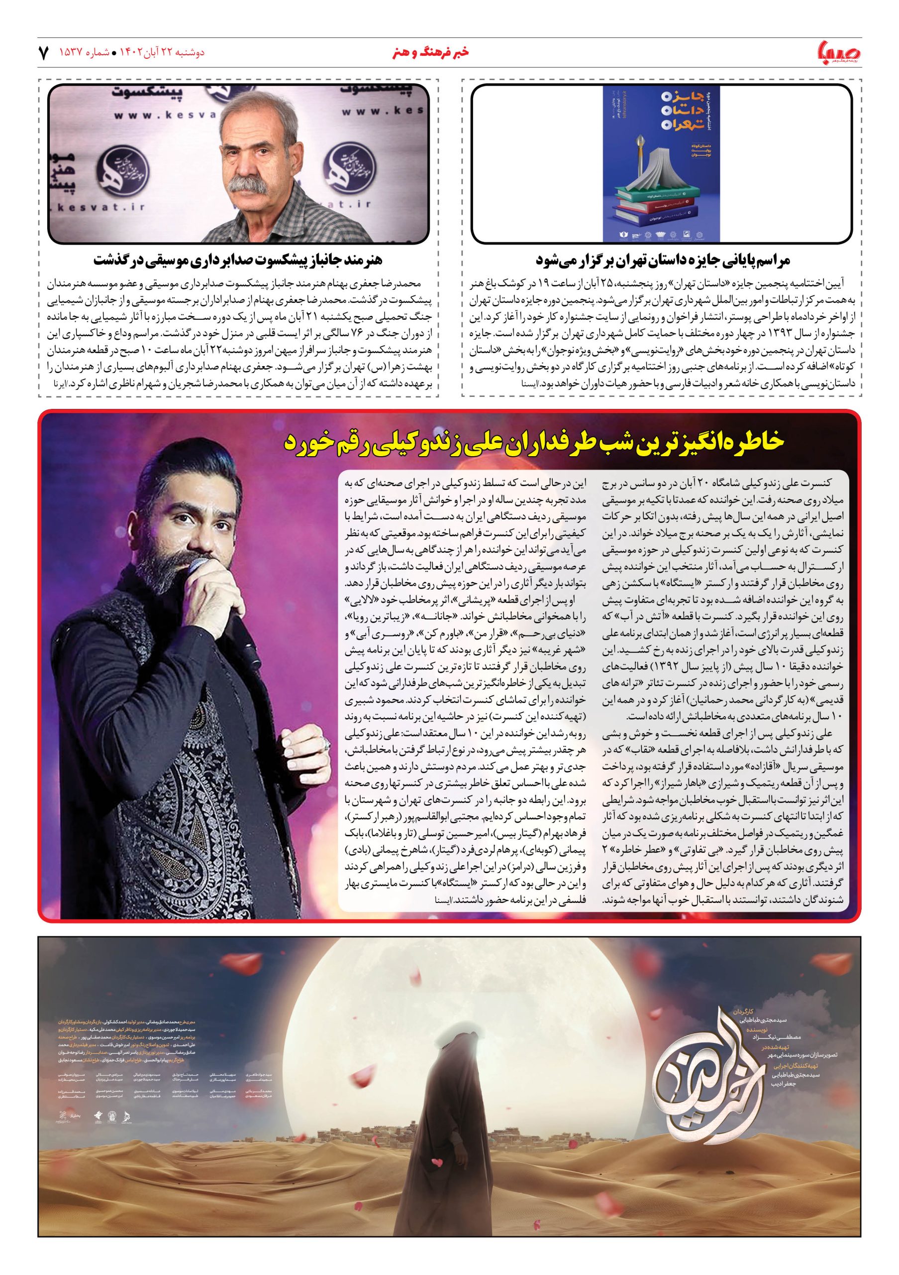شماره۱۵۳۷| روزنامه صبا دوشنبه ۲۲ آبان